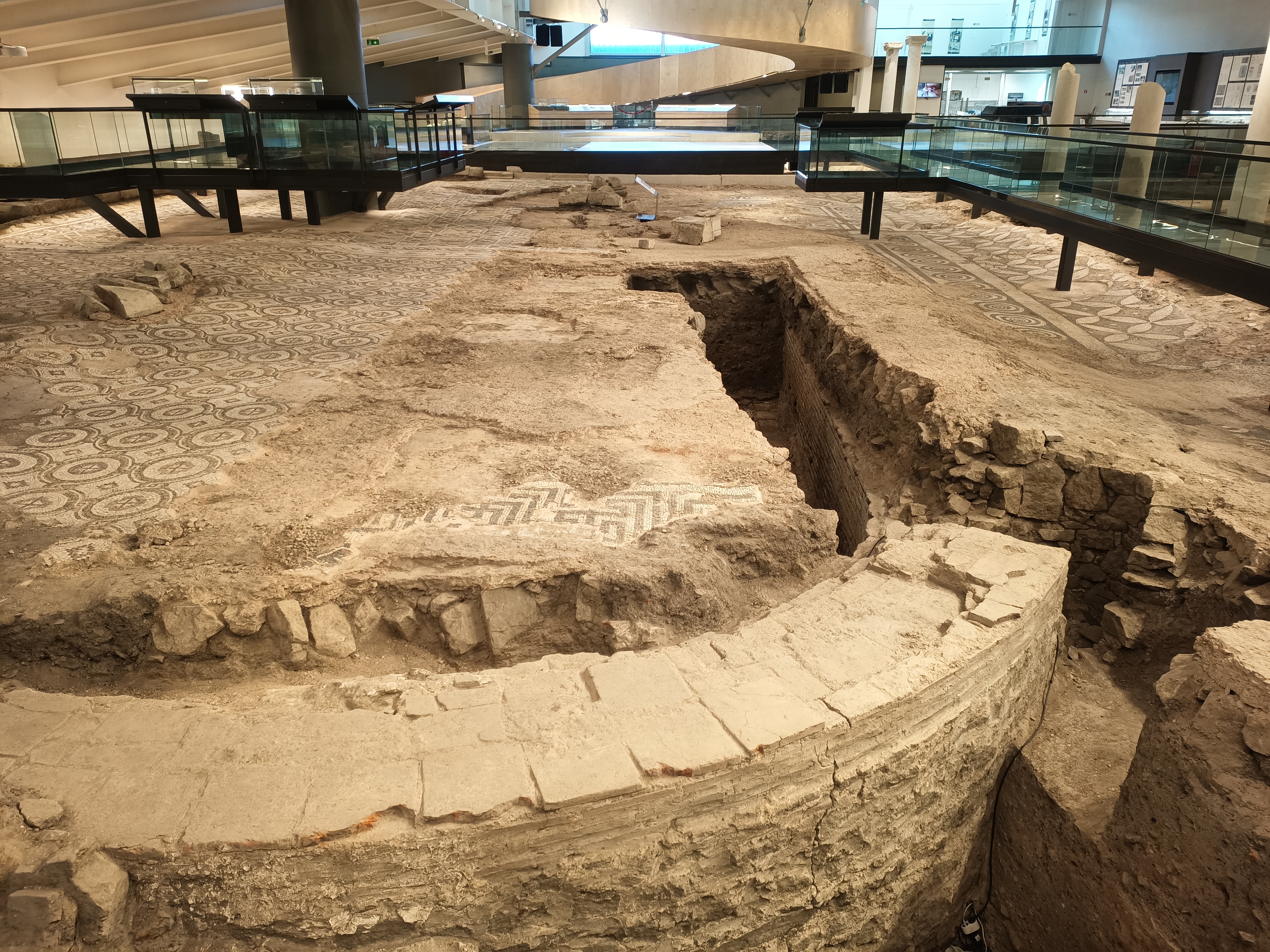 バルカン半島でも最大規模のバシリカで、4世紀頃につくられた初期キリスト教の貴重な床モザイクが大規模に保存されている。