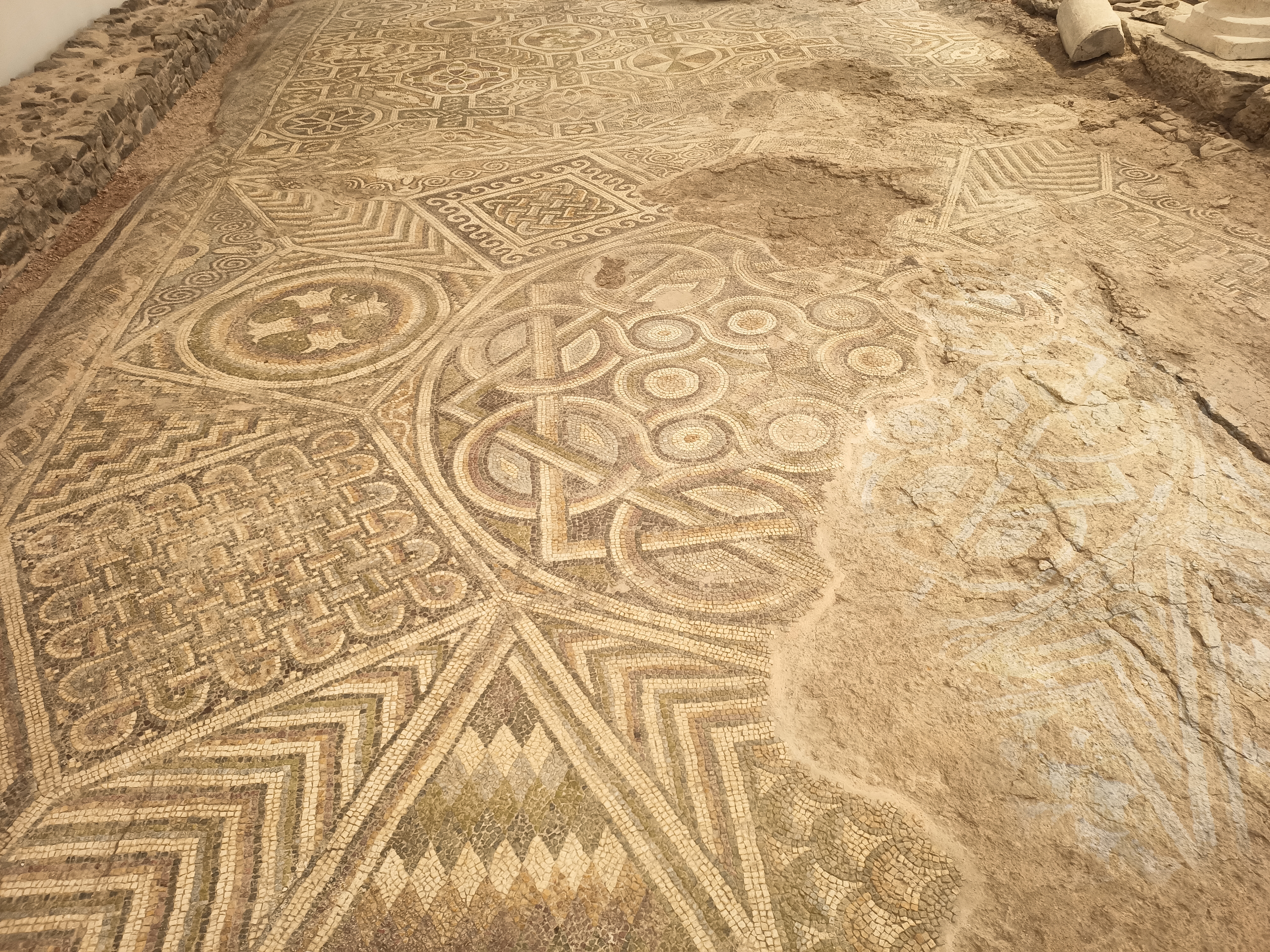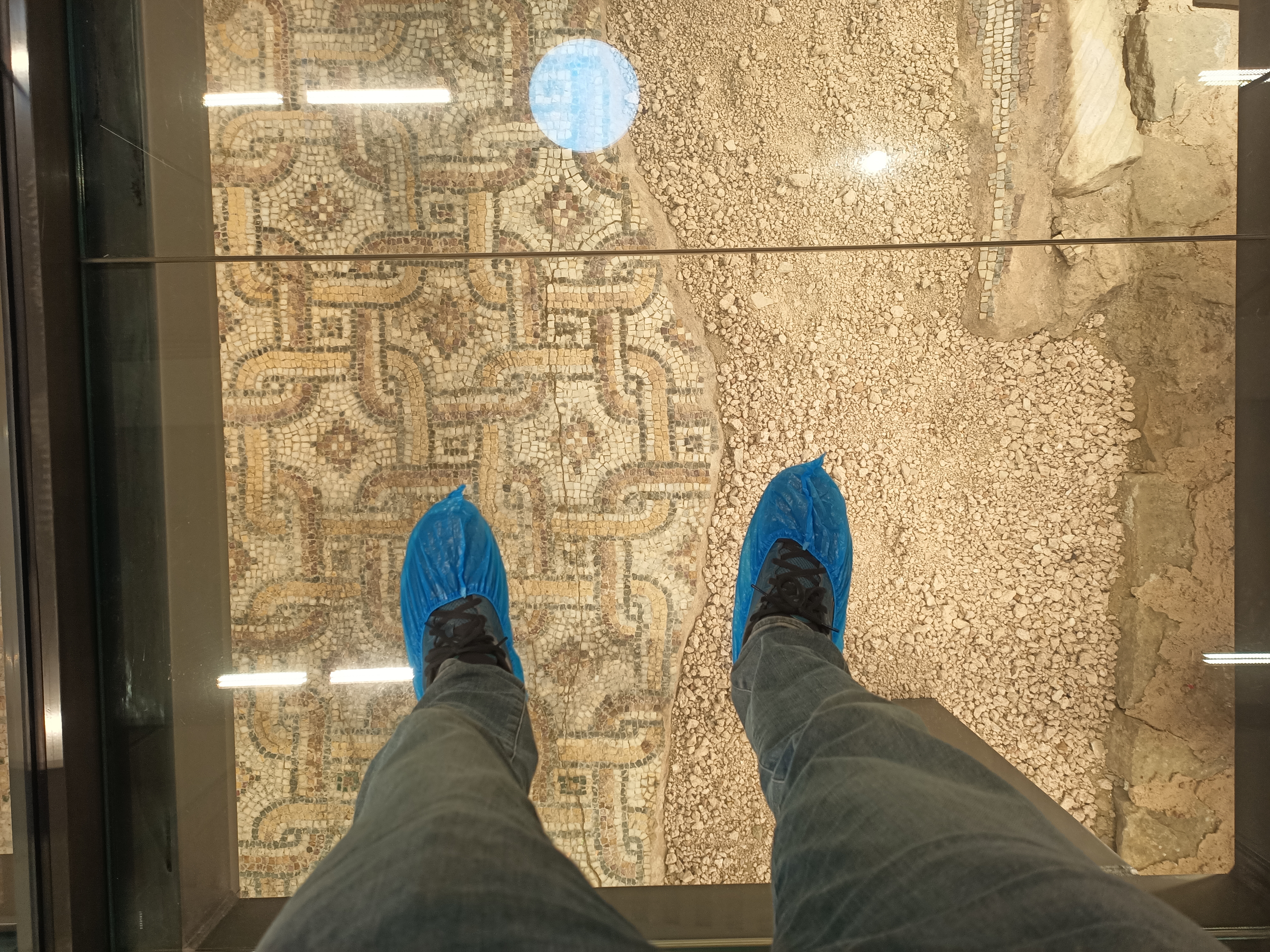 内部はこんな感じで、もはや教会感はないけれど、床モザイクの修復と保全に全振りした施設となっていた。