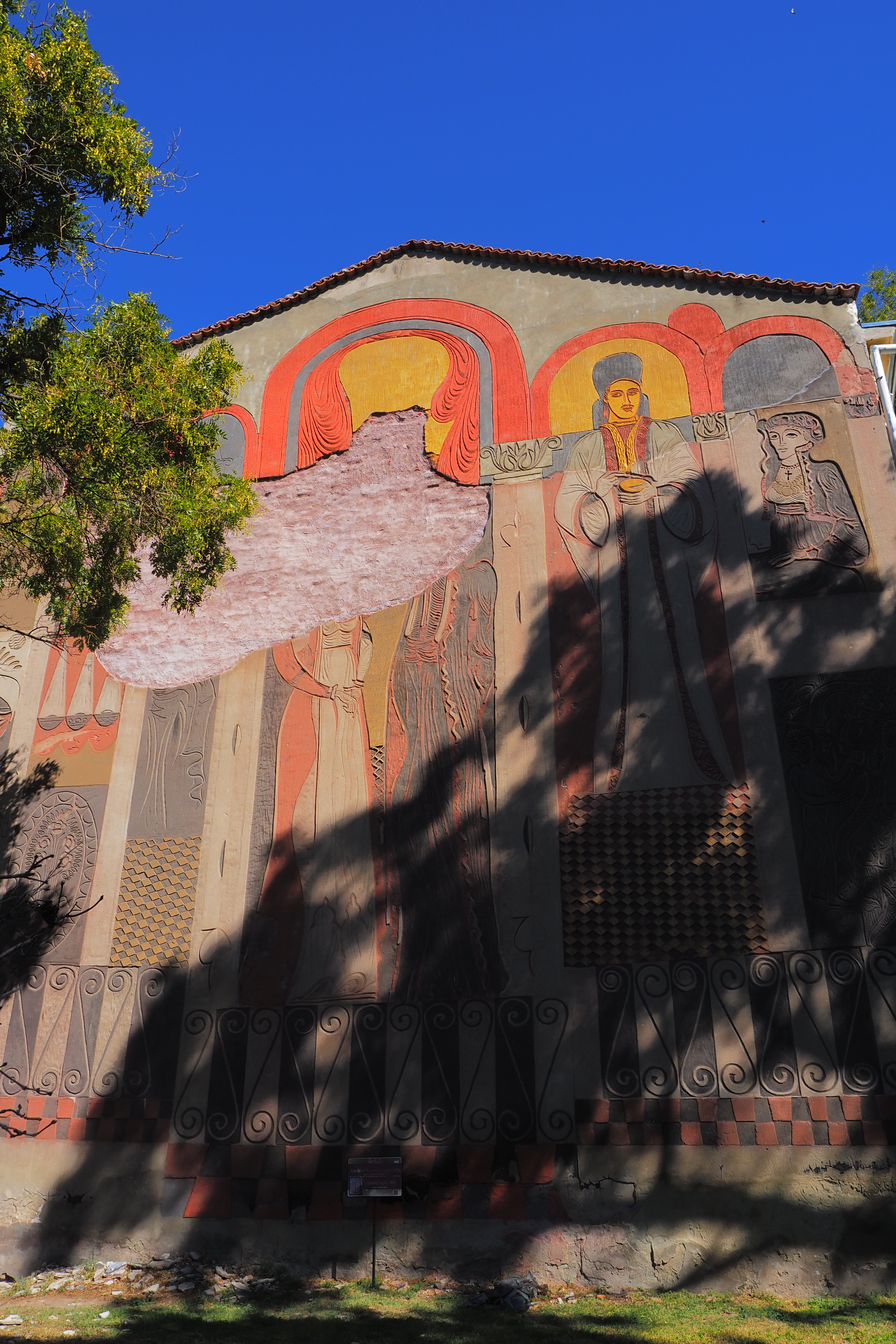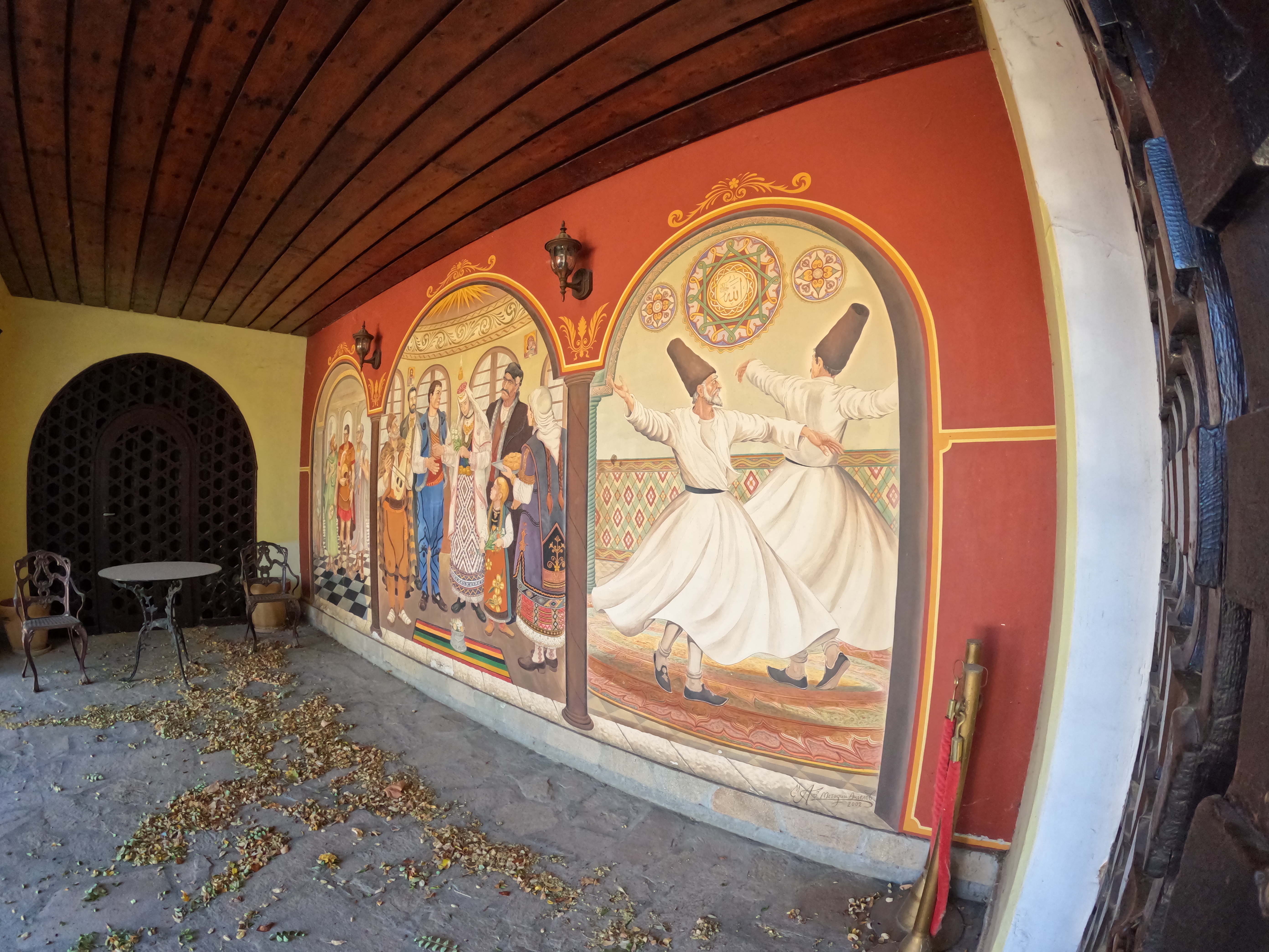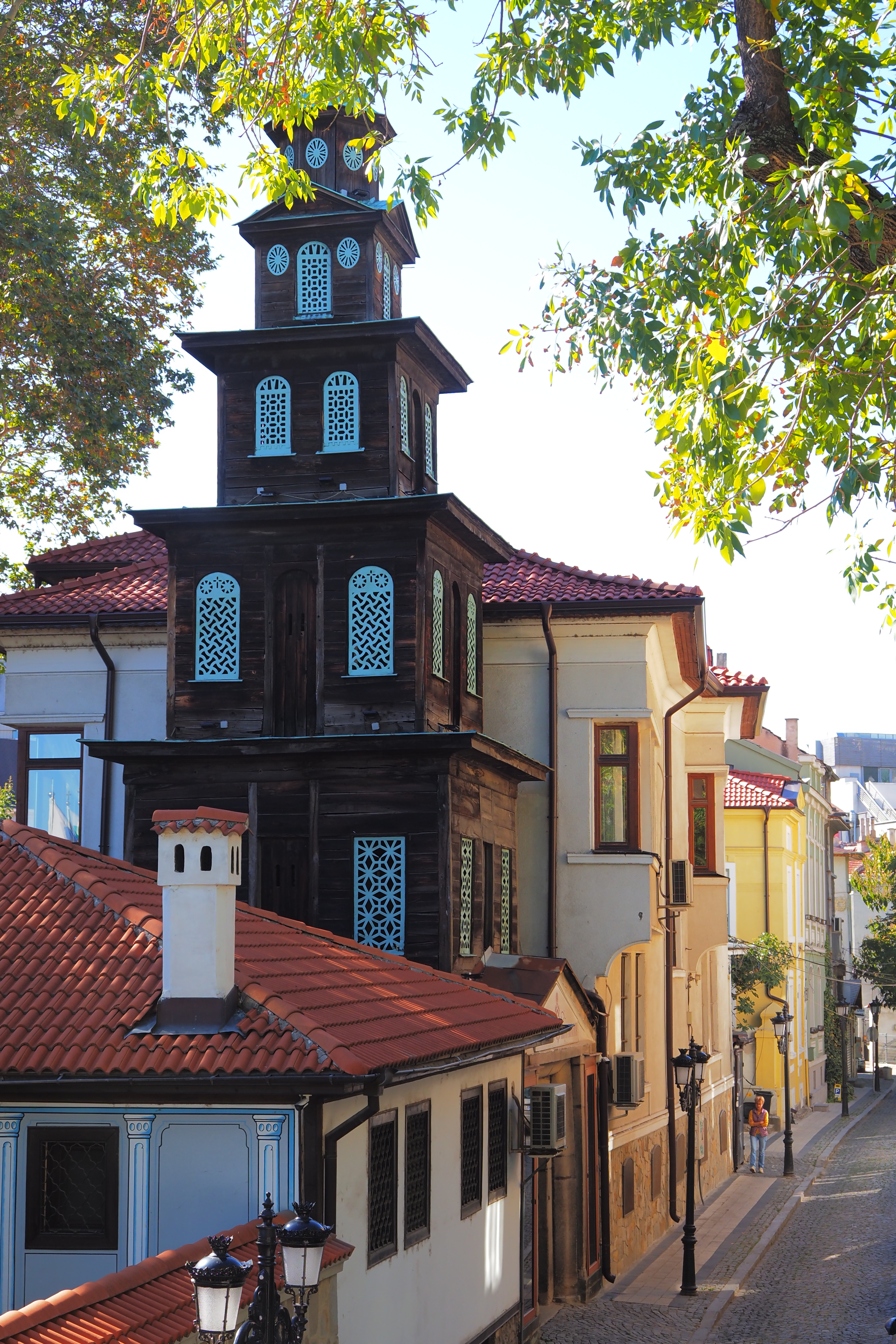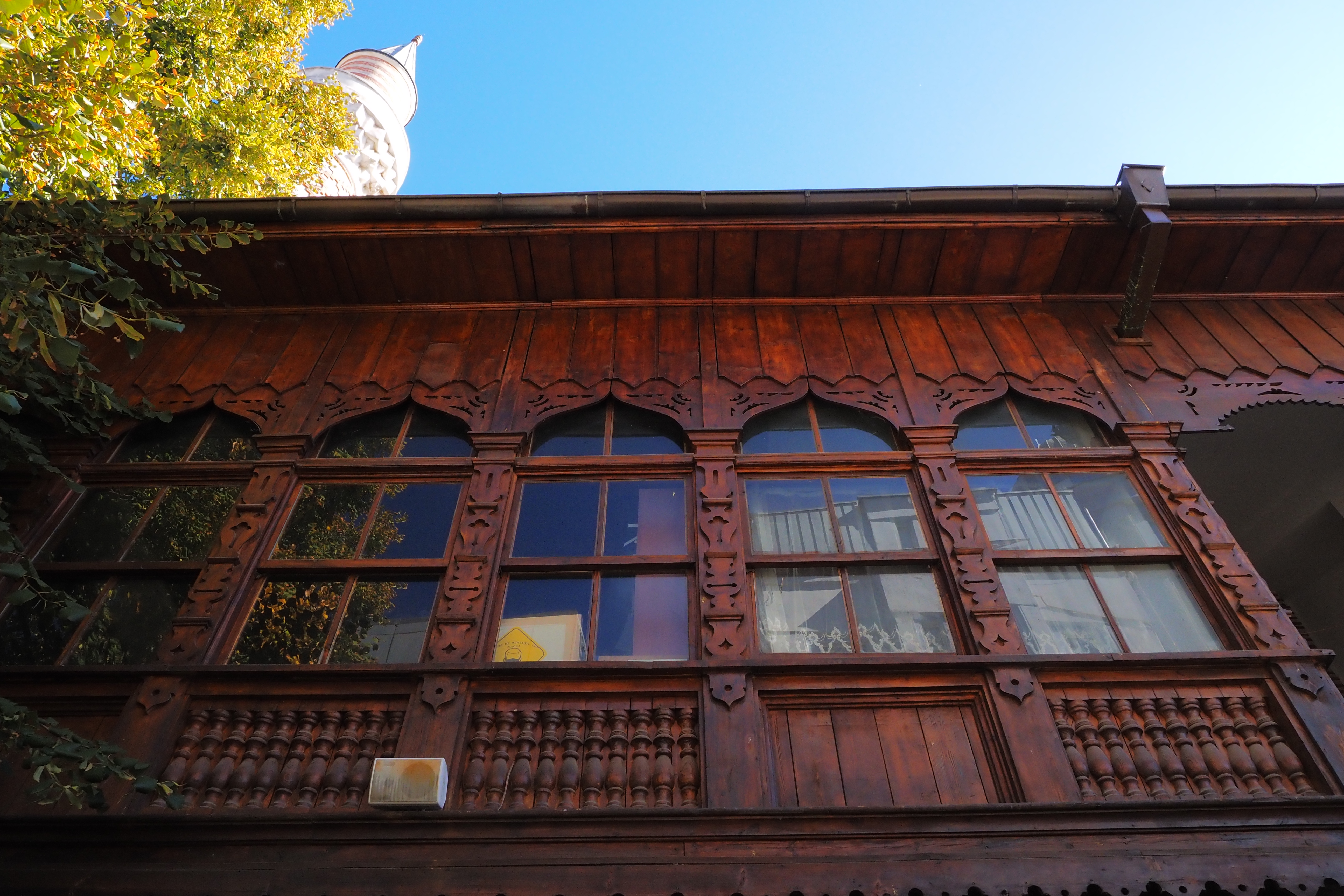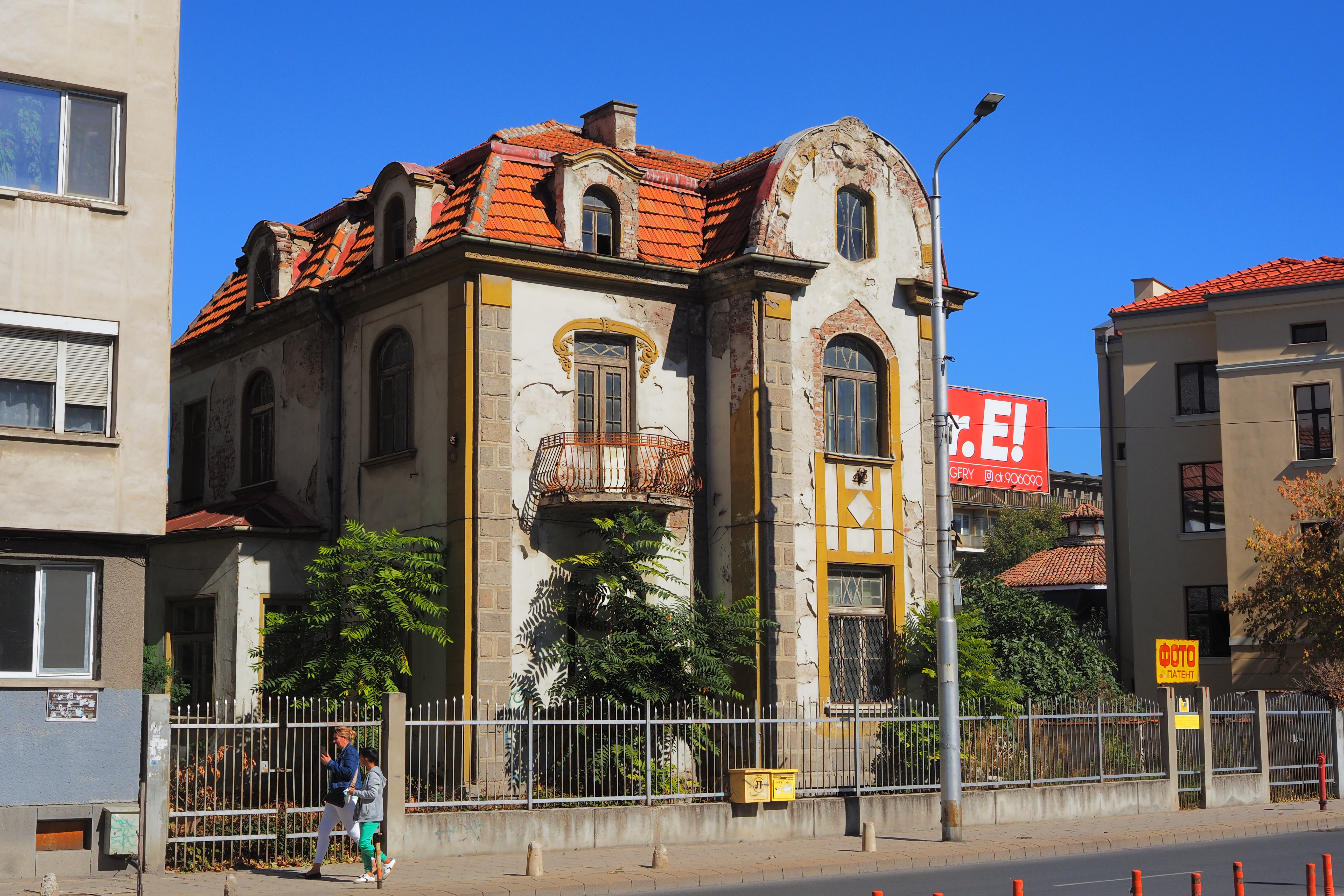 これは「ブルガリア復興様式」とよばれるもので、19世紀にオスマン帝国から解放され自治が始まると、ブルガリア民族復興運動の中心的な都市だったプロヴディヴには経済的に成功した裕福な市民が出てきて、彼らは民族アイデンティティを示す手段としてこういった邸宅を建てたらしい。上層階が張り出した様式なんかは、オスマン建築の影響も強く受けている。