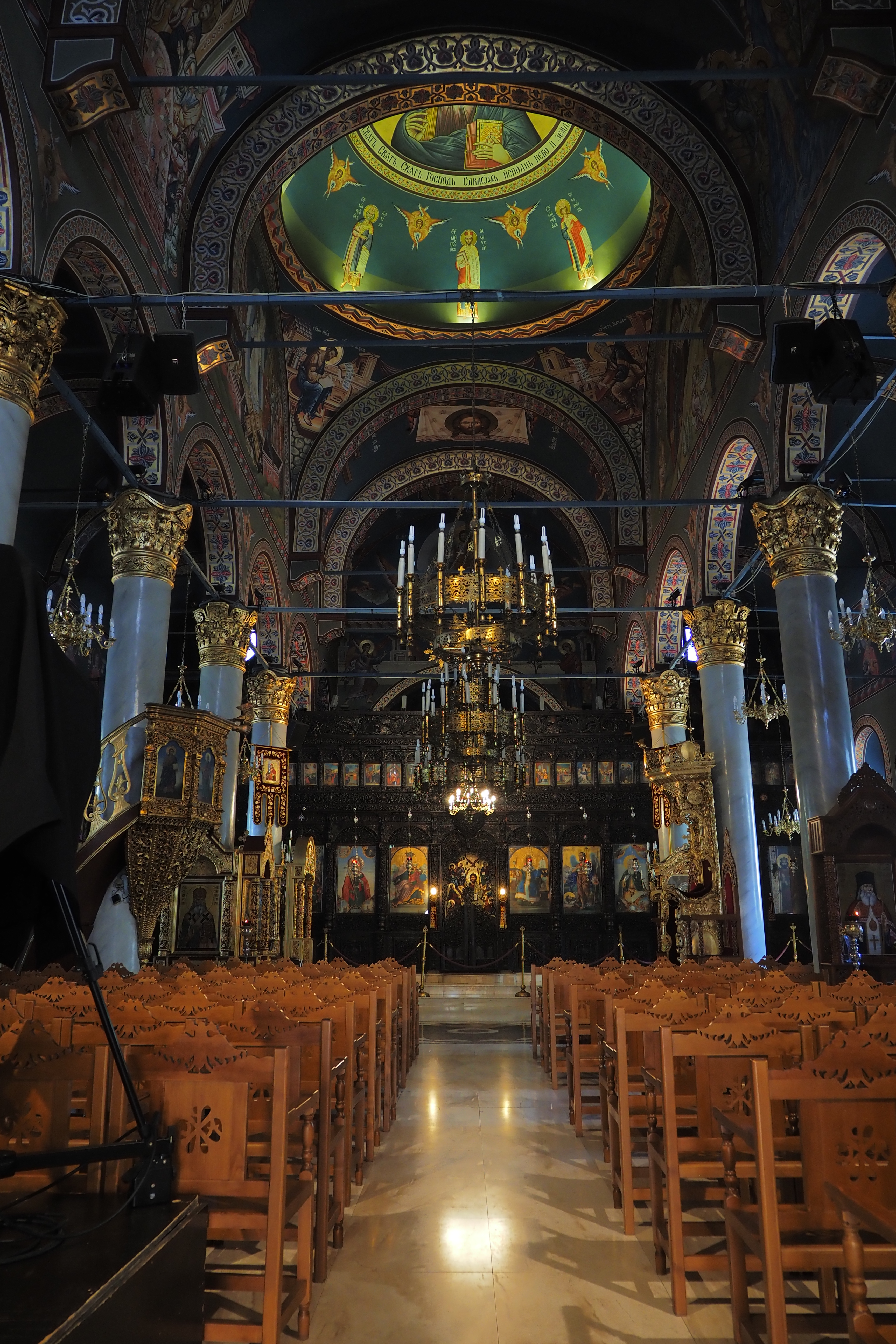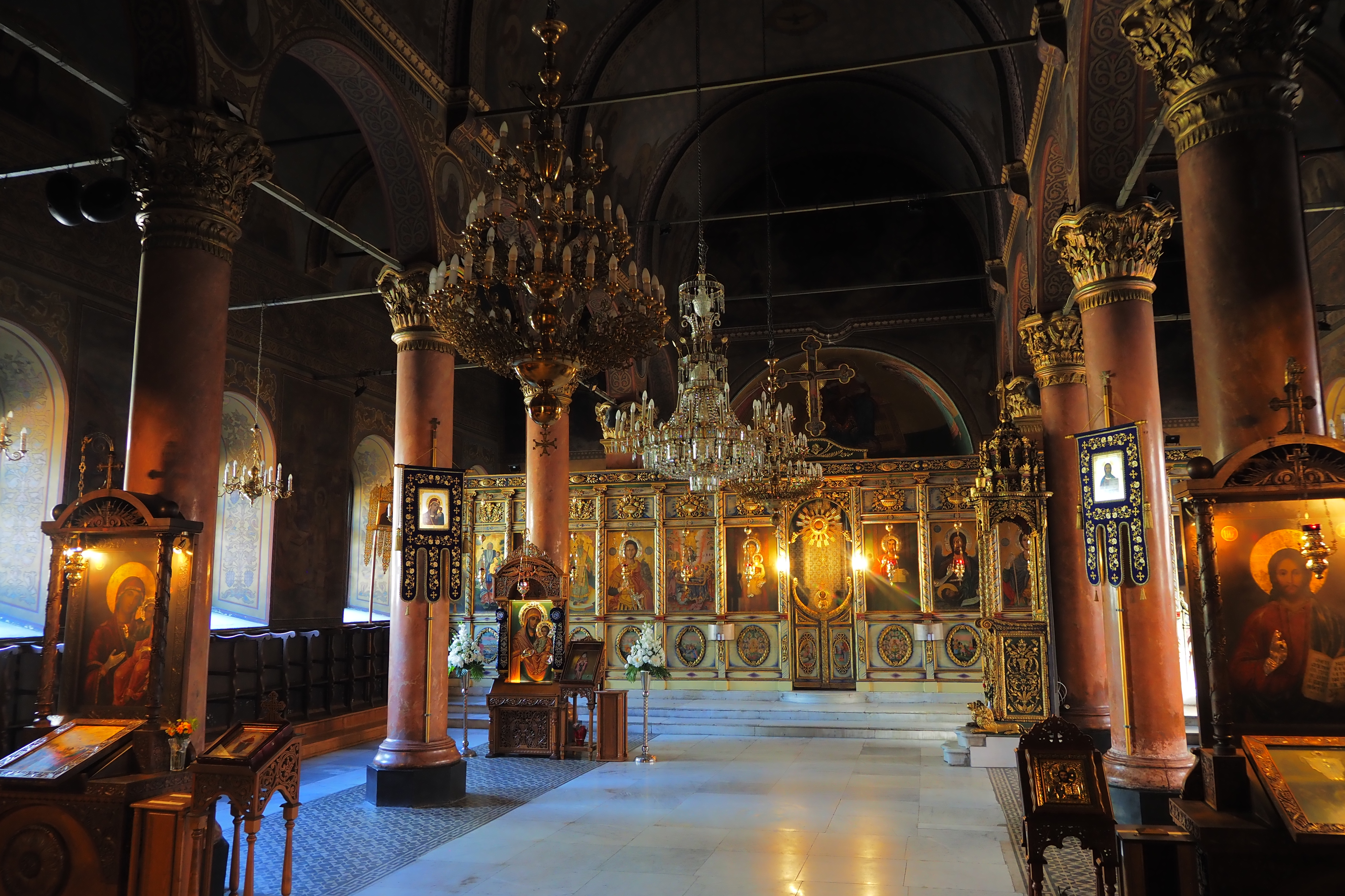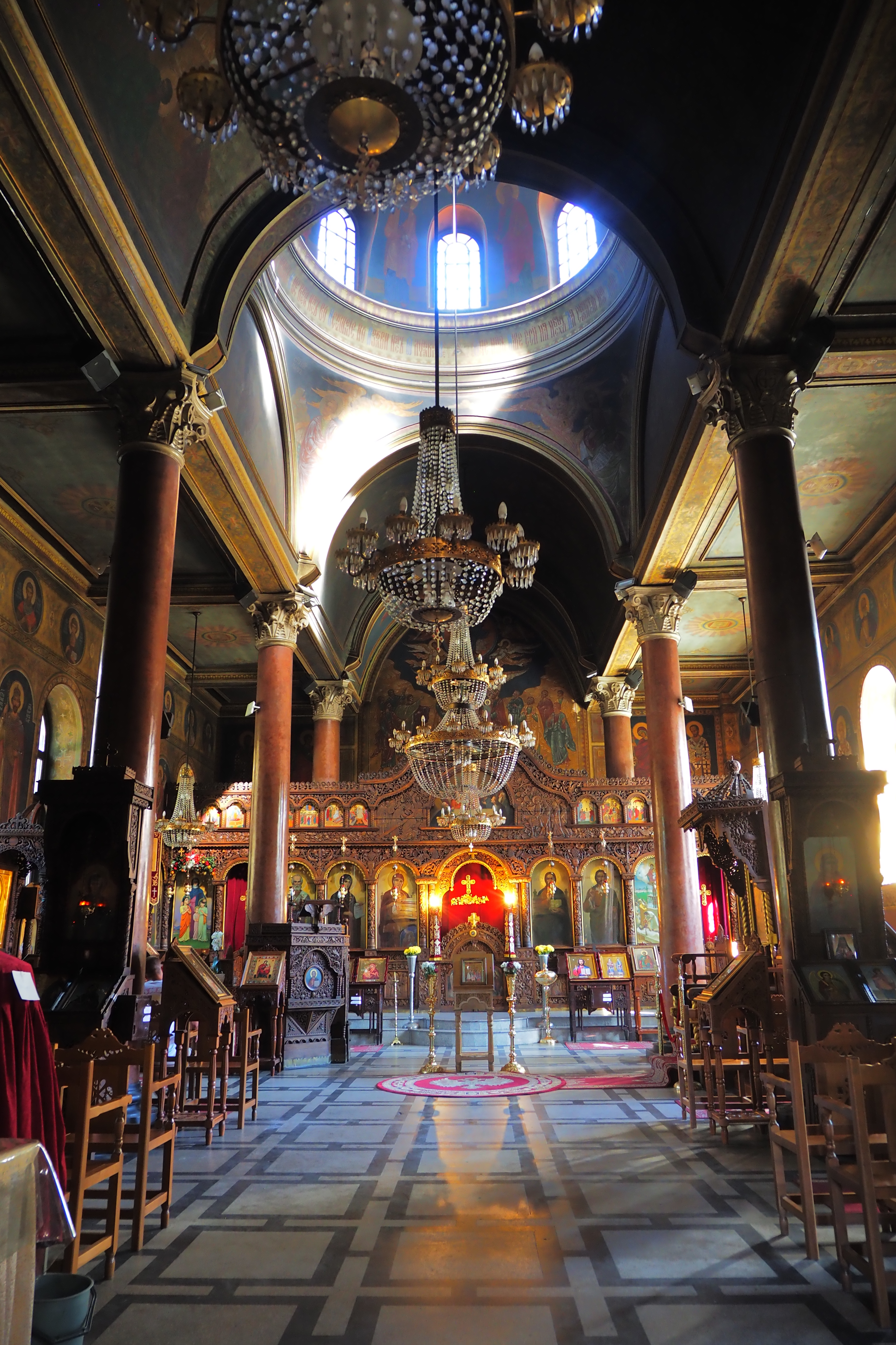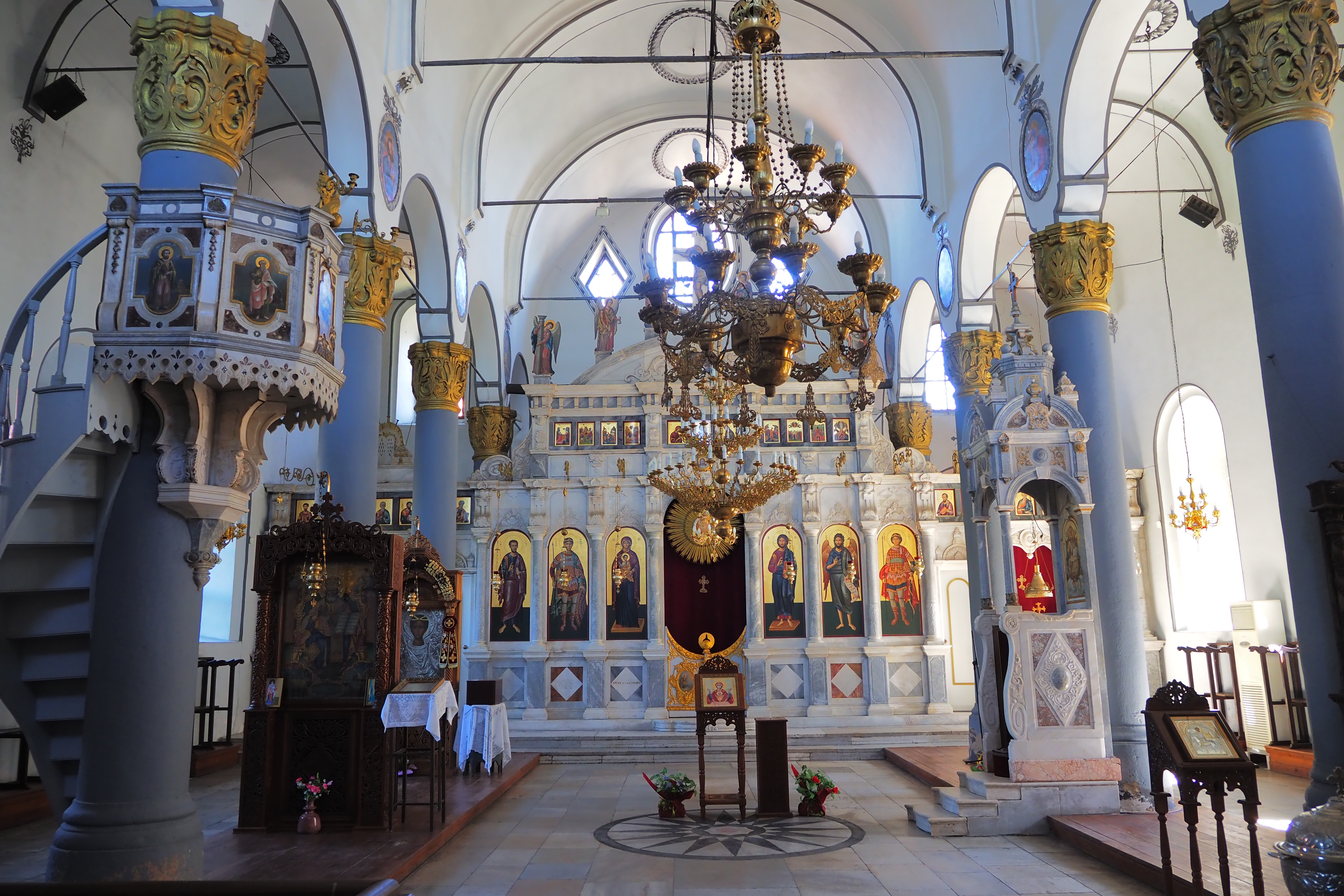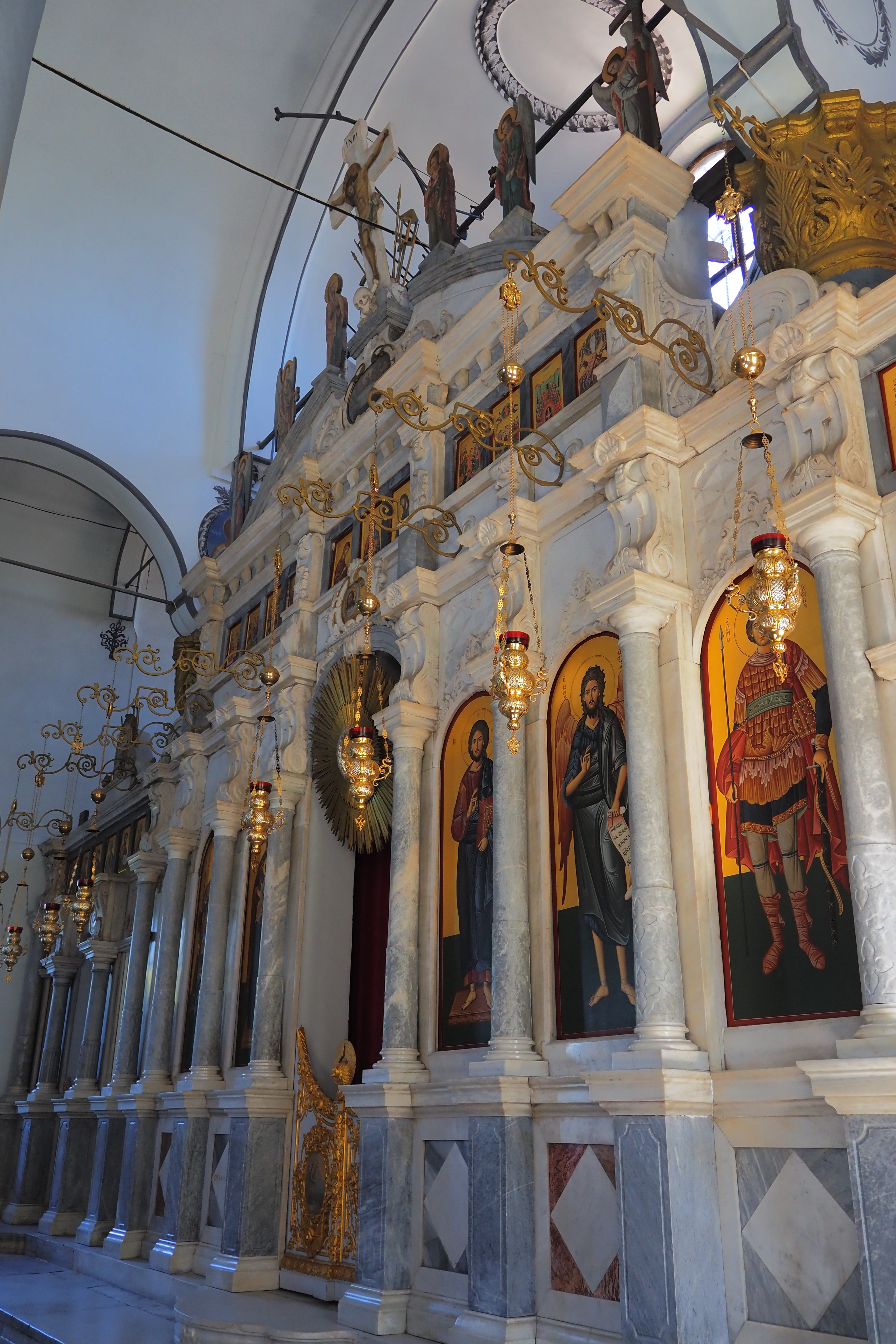 内部は白と金がベースとなっていて、祭壇は明確にイコノスタシスによって区切られていて見えない。