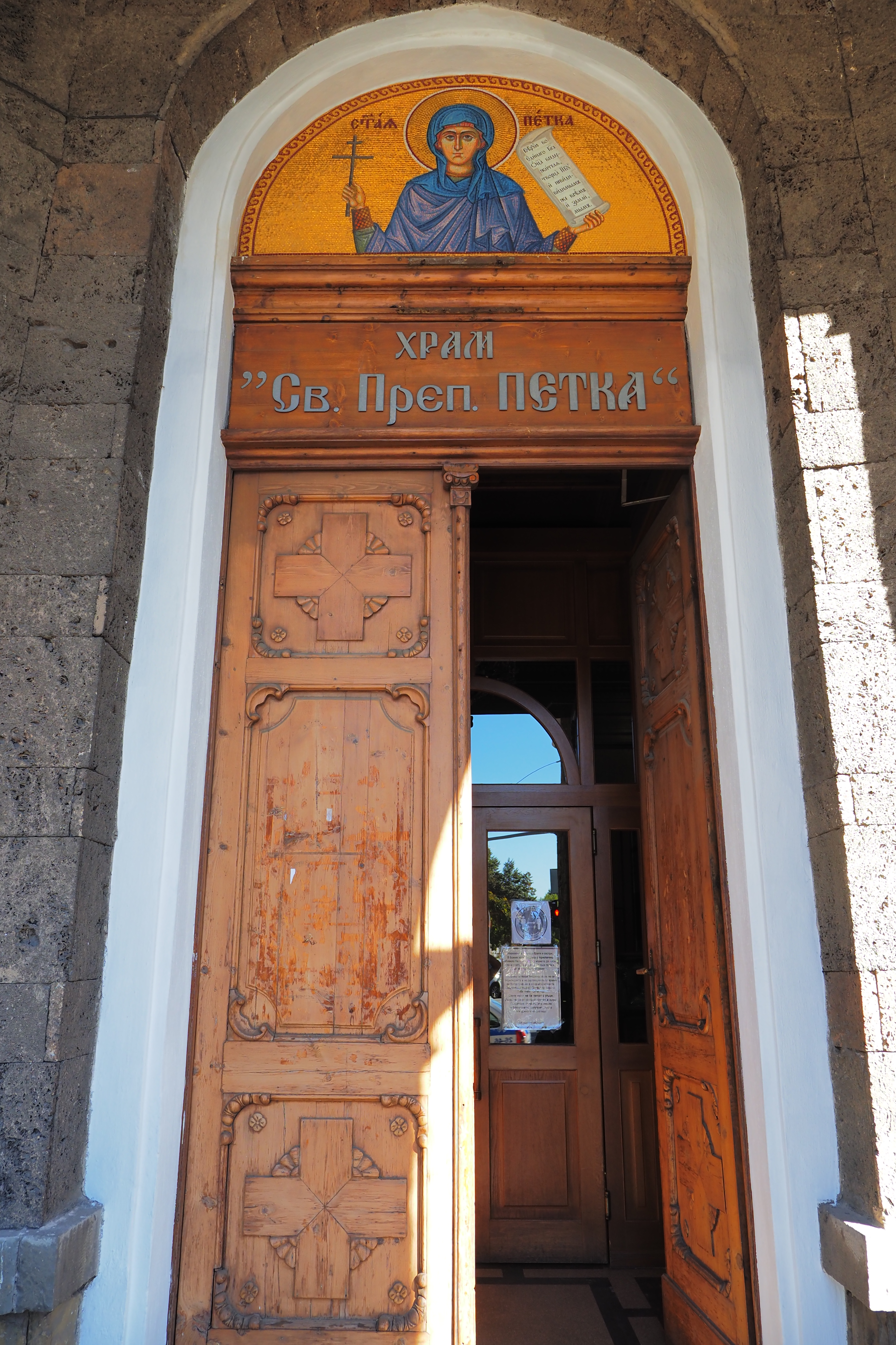 フォーラムから通りを挟んで向こう側に立派な鐘楼が見えたのでやってきた Sveta Petka Nova Church; 聖ペトカ・ノヴァ正教会.