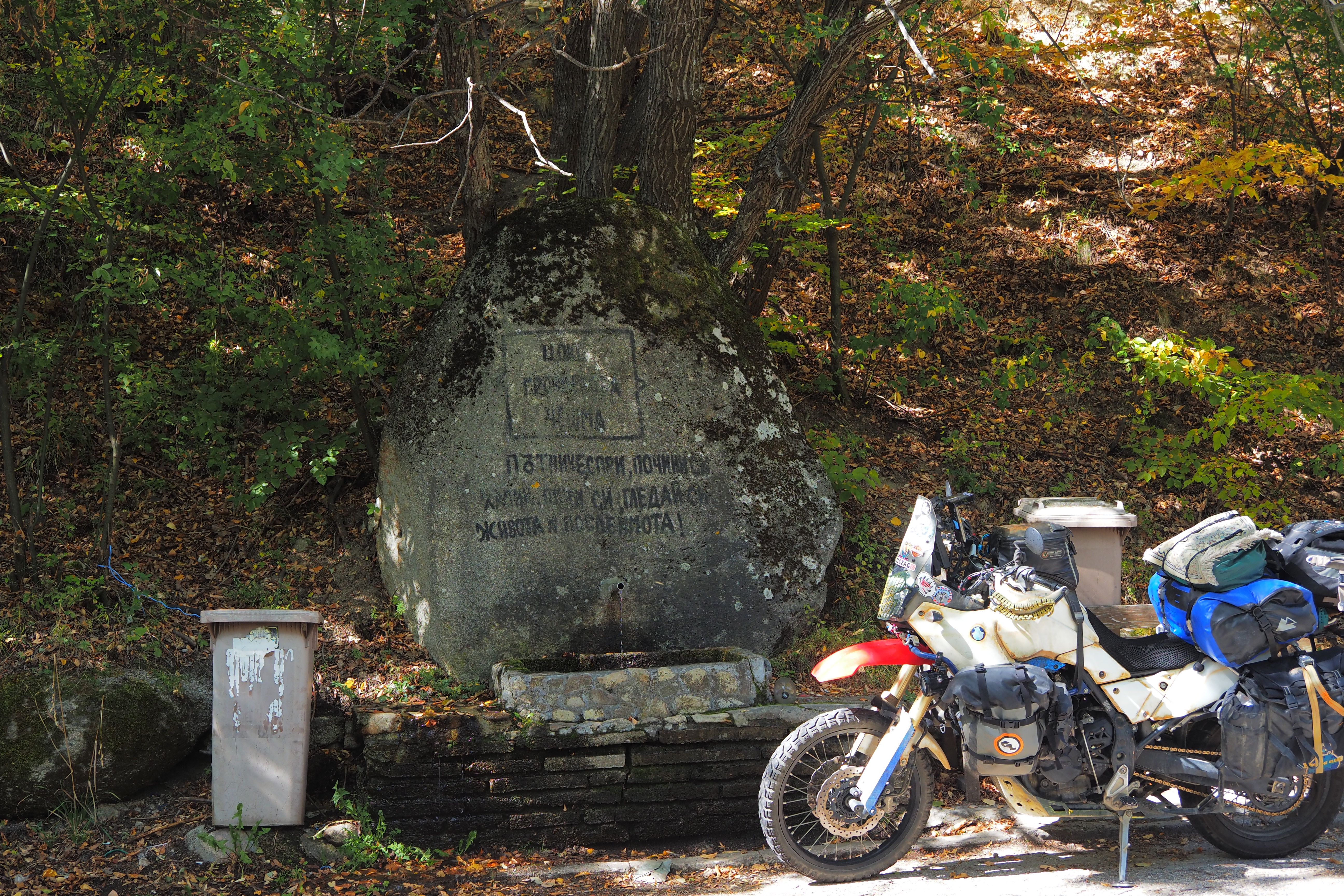湧き水が出る岩に書かれたブルガリア語を翻訳にかけると 「旅人よ止まれ。人生の終わりと来世!」とのこと。はて🤔