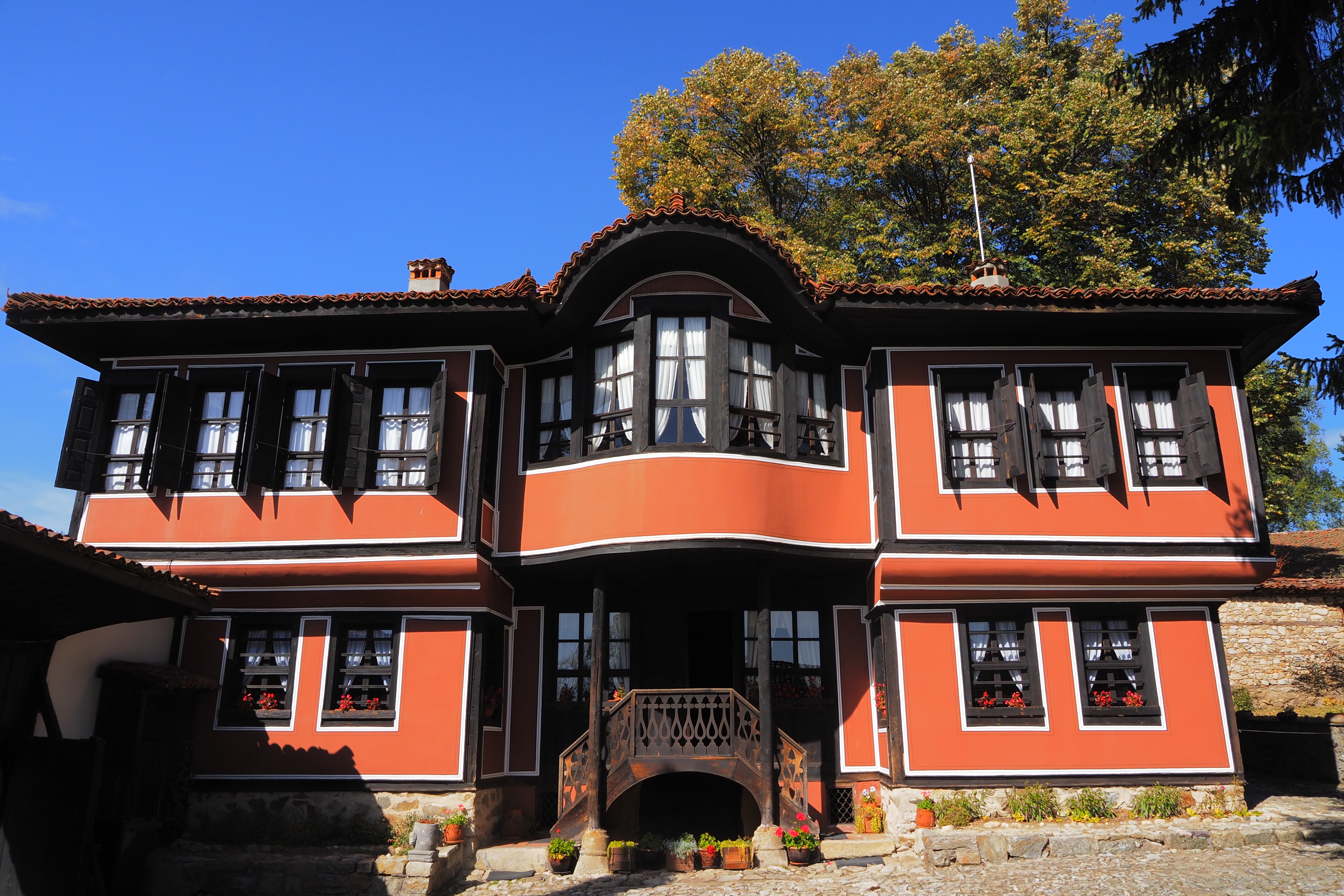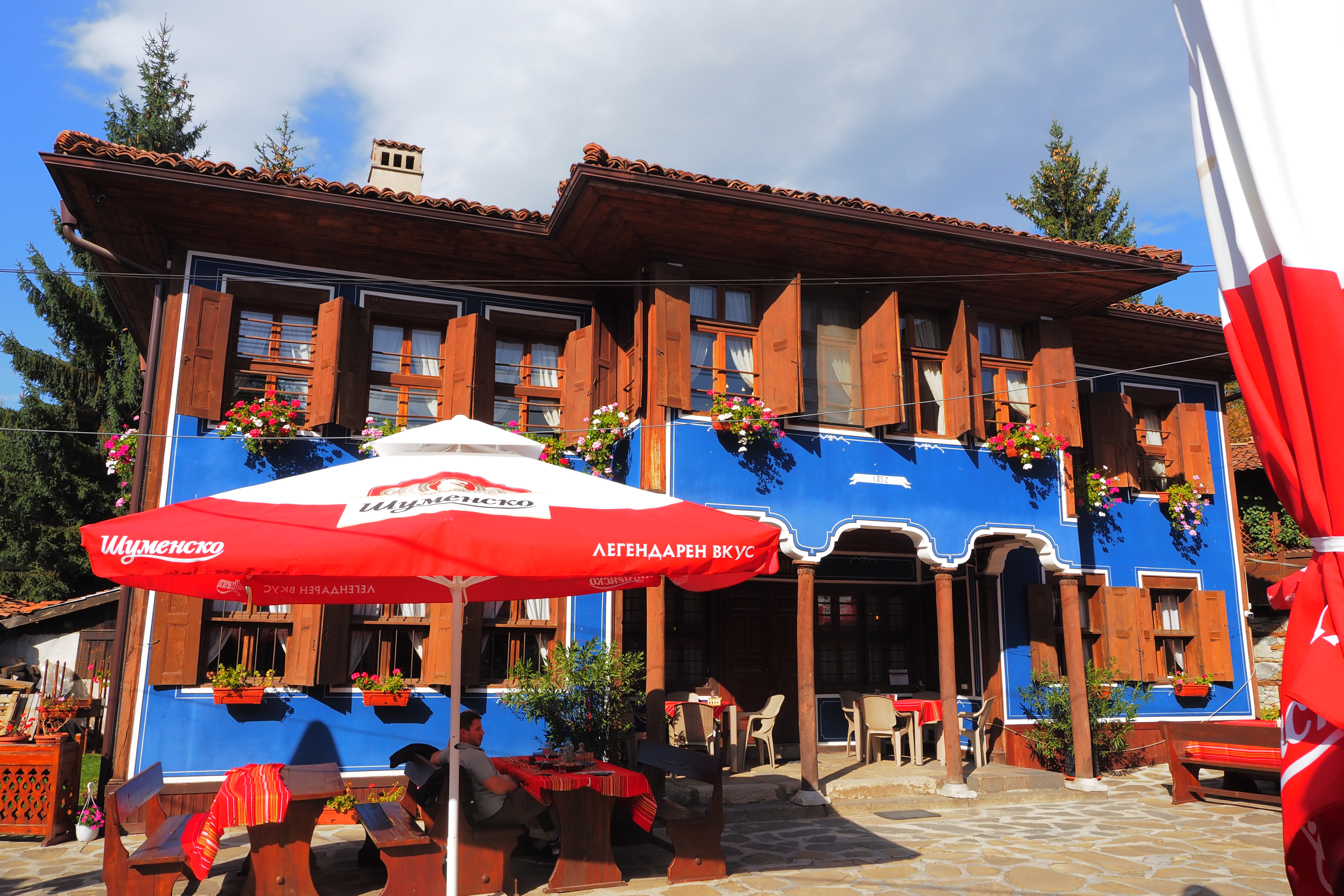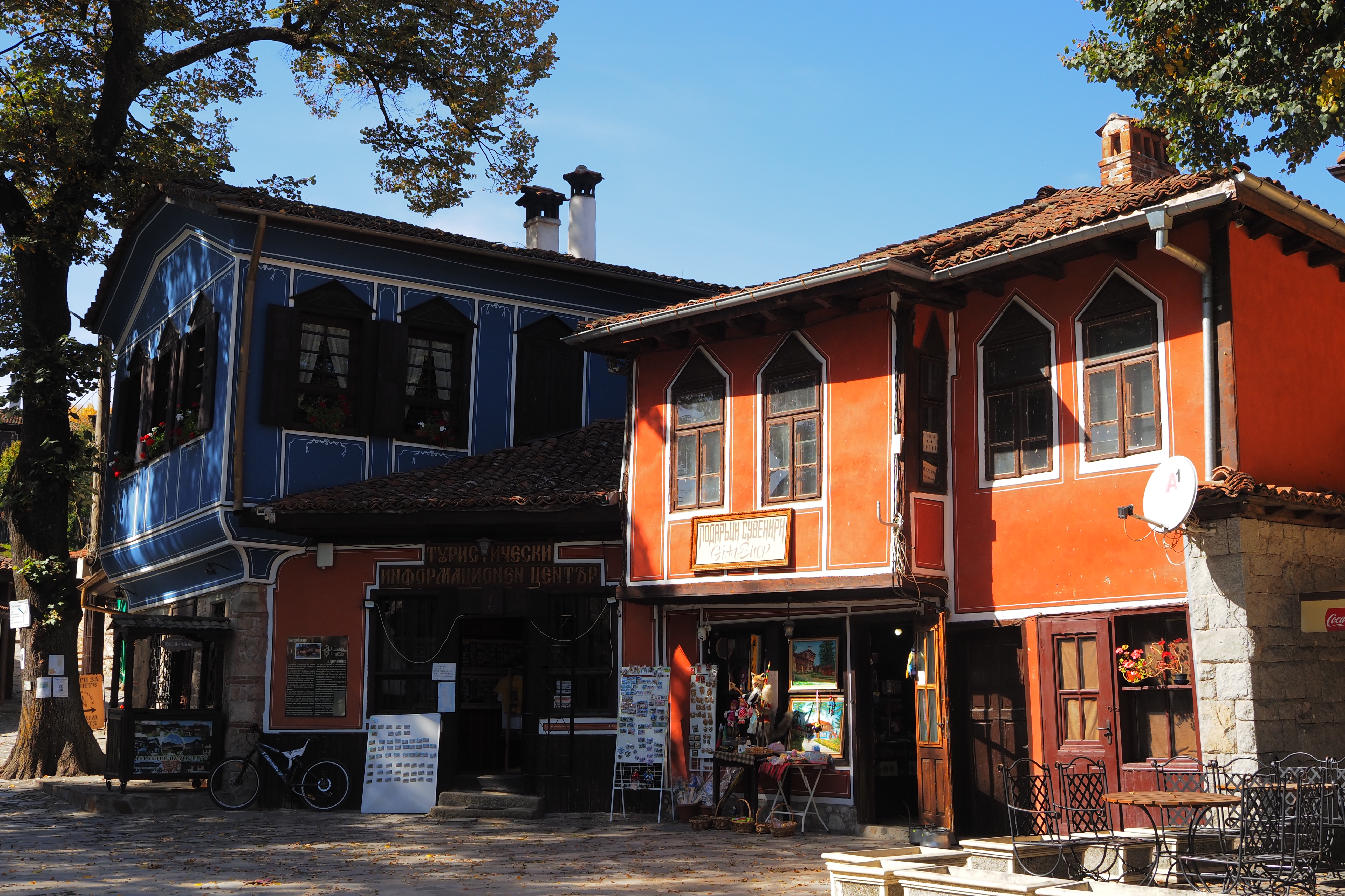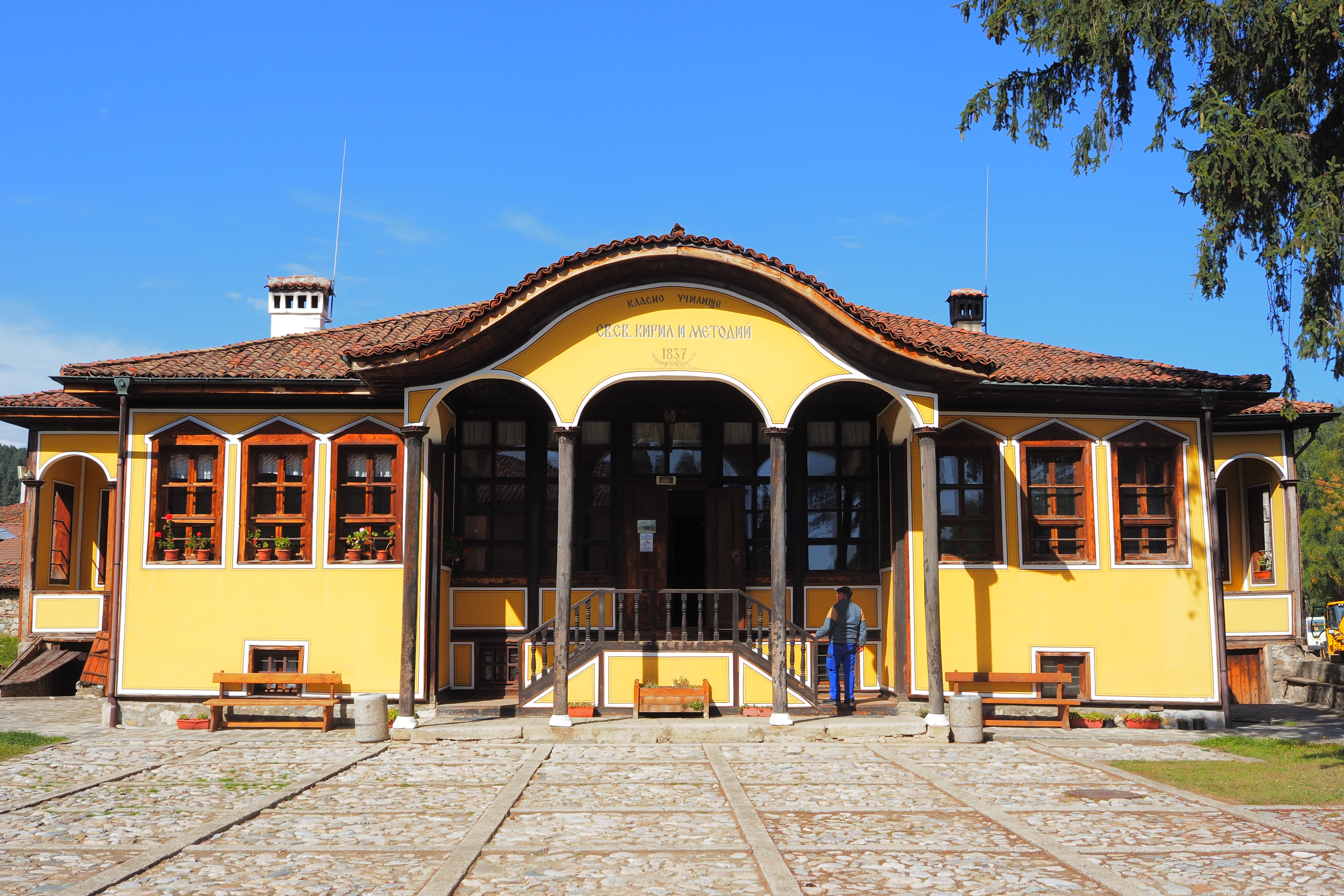 プロヴディヴ編でも触れた通り、露土戦争から1878年のブルガリア解放に至るまでのブルガリア民族復興運動が盛んになっていた時期に建てられた いわゆる「ブルガリア・ルネサンス」のリバイバル建築だけど、1階部分が石づくりで2階部分に張り出しの木造がのる典型的なパターンとは少し違う。鮮やかなパステルカラーに彩色された外壁と、木造の階段・列柱、窓枠なんかが共通してる。