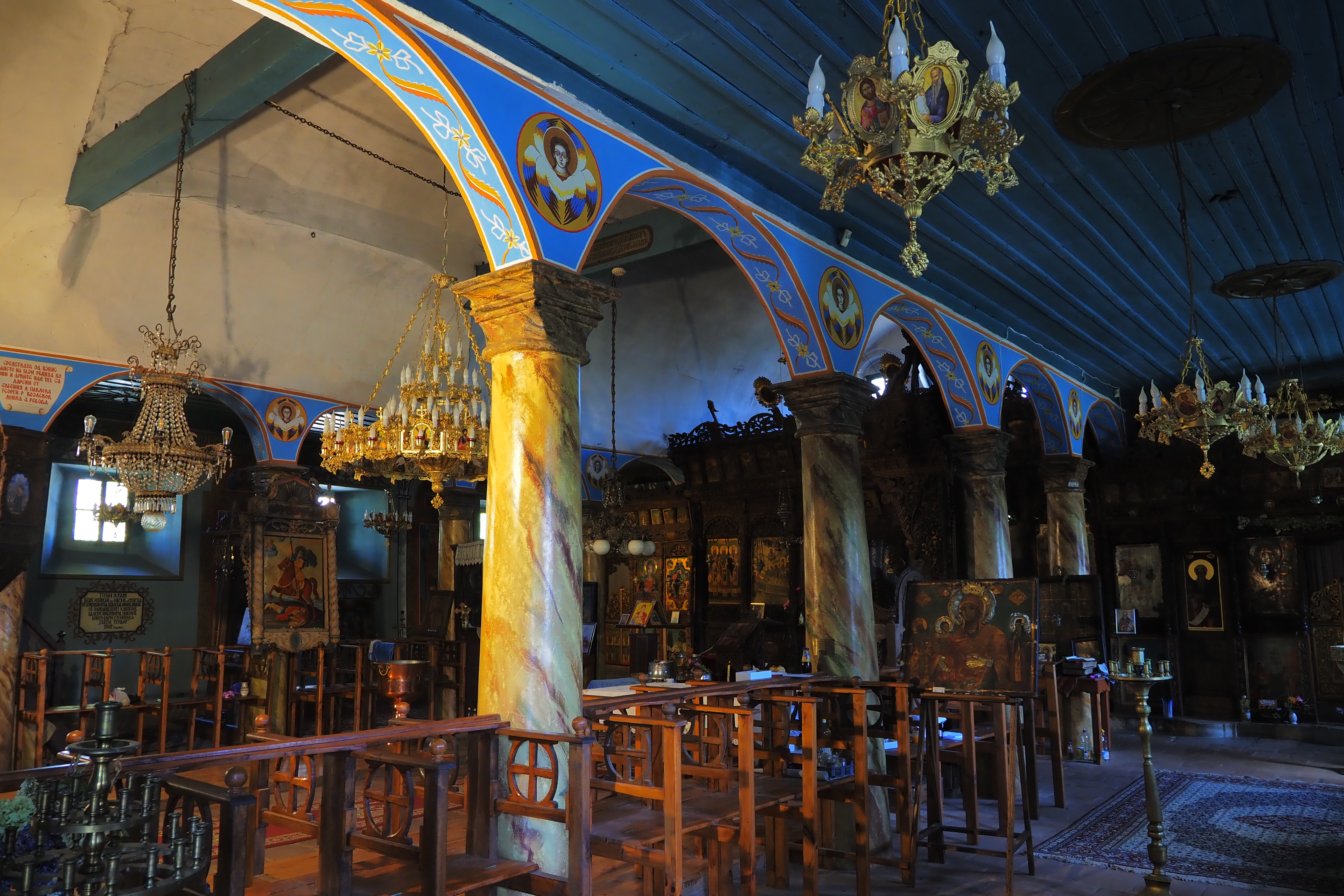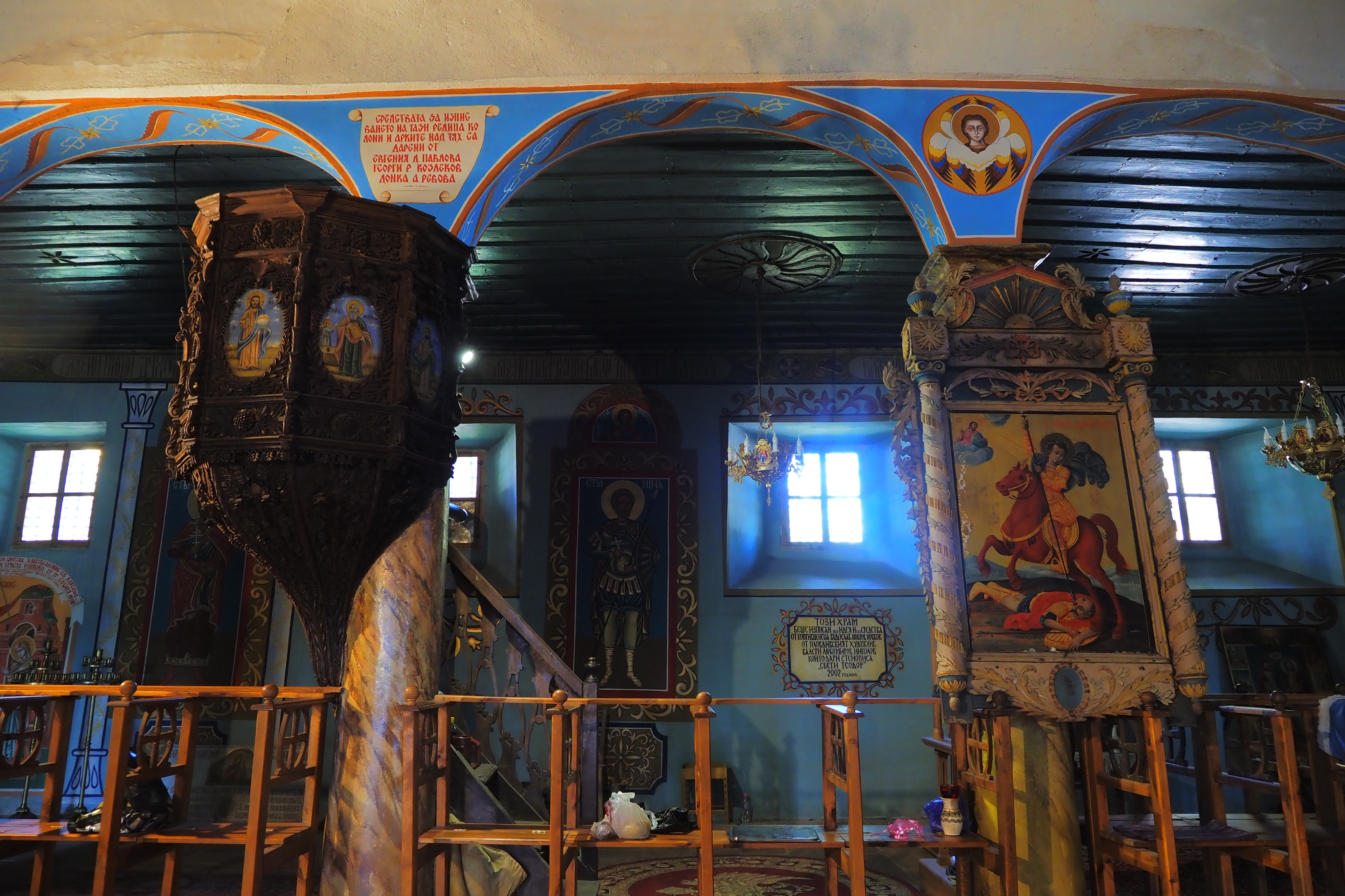 素通りしてしまいそうな地方正教会も、よくみると ビザンティン風な鐘楼ドームの下部にトルコ北西部で見た列柱バルコニーのミナレットを連想するような構造があって、ブルガリア地方伝統の素焼き瓦の屋根に列柱+アーチのナルテックス と、色んな要素が組み合わさってるのがわかる。
