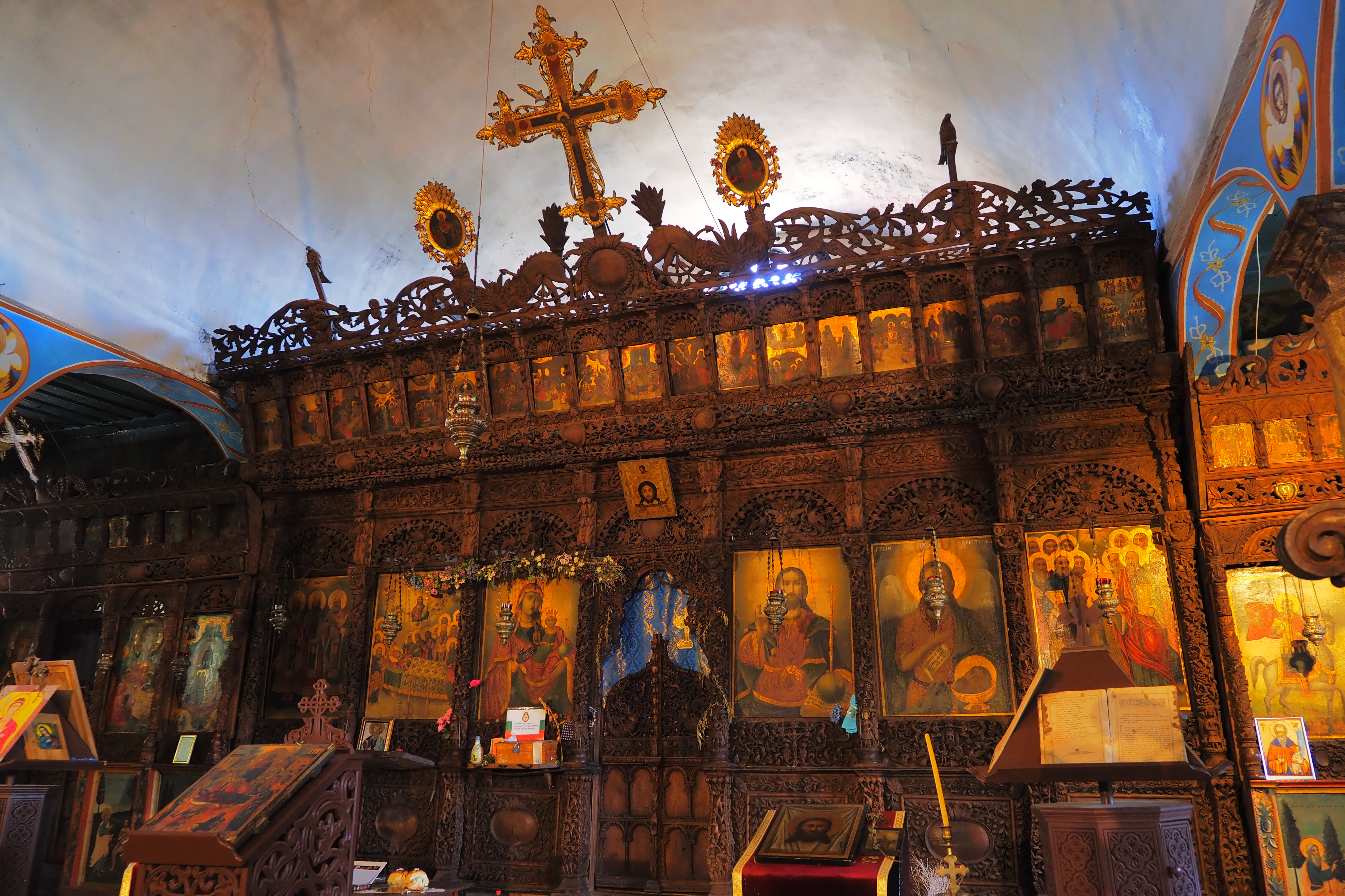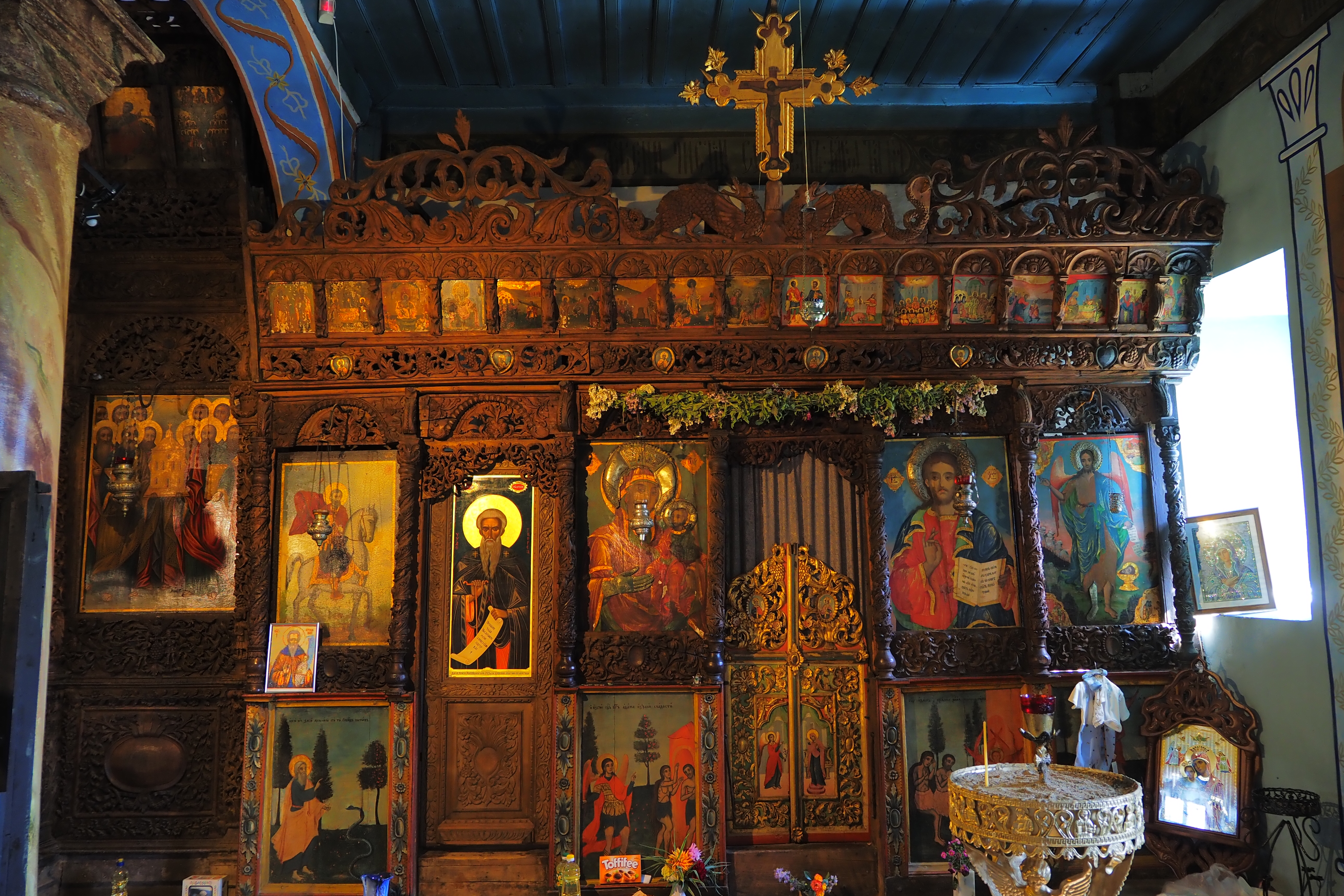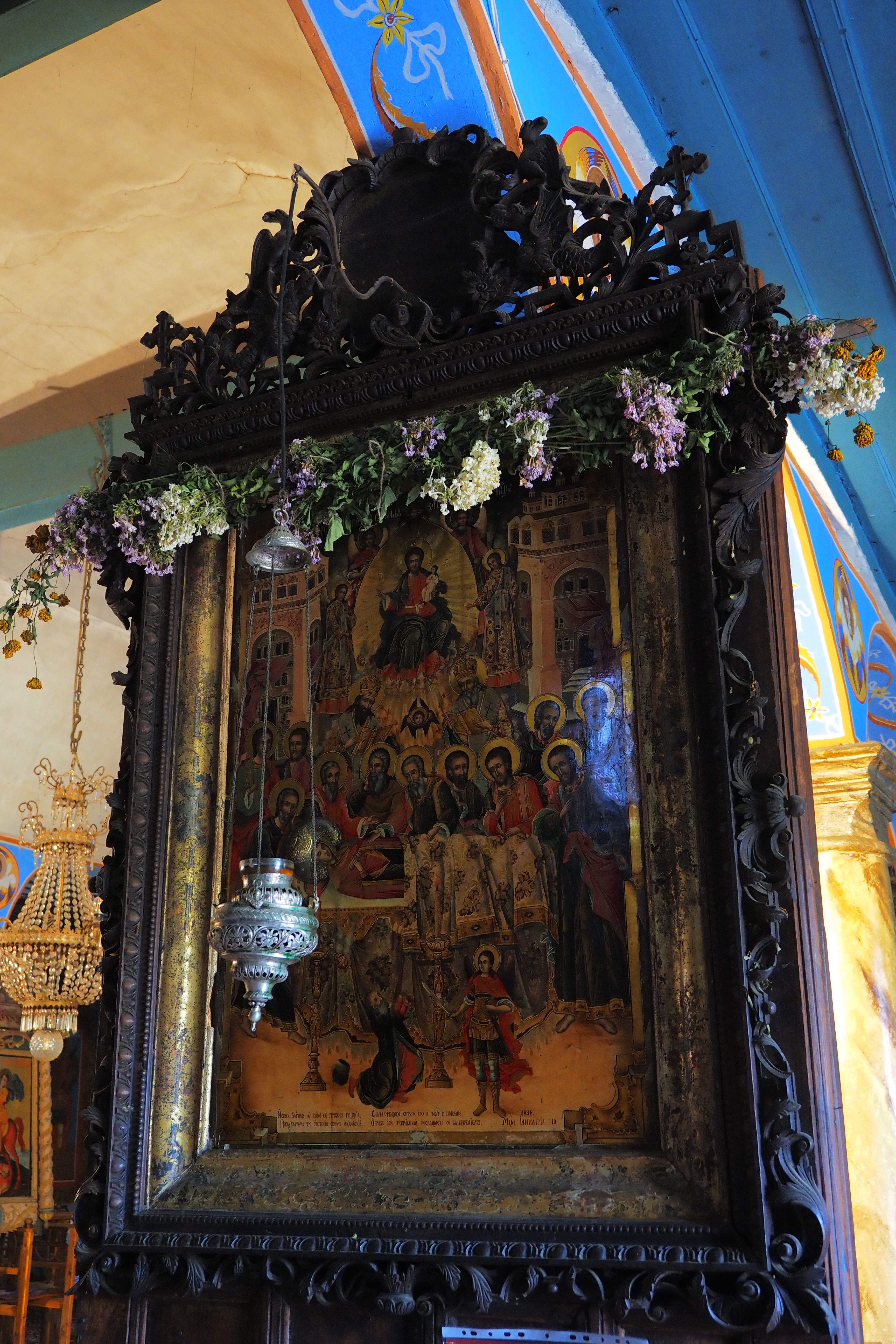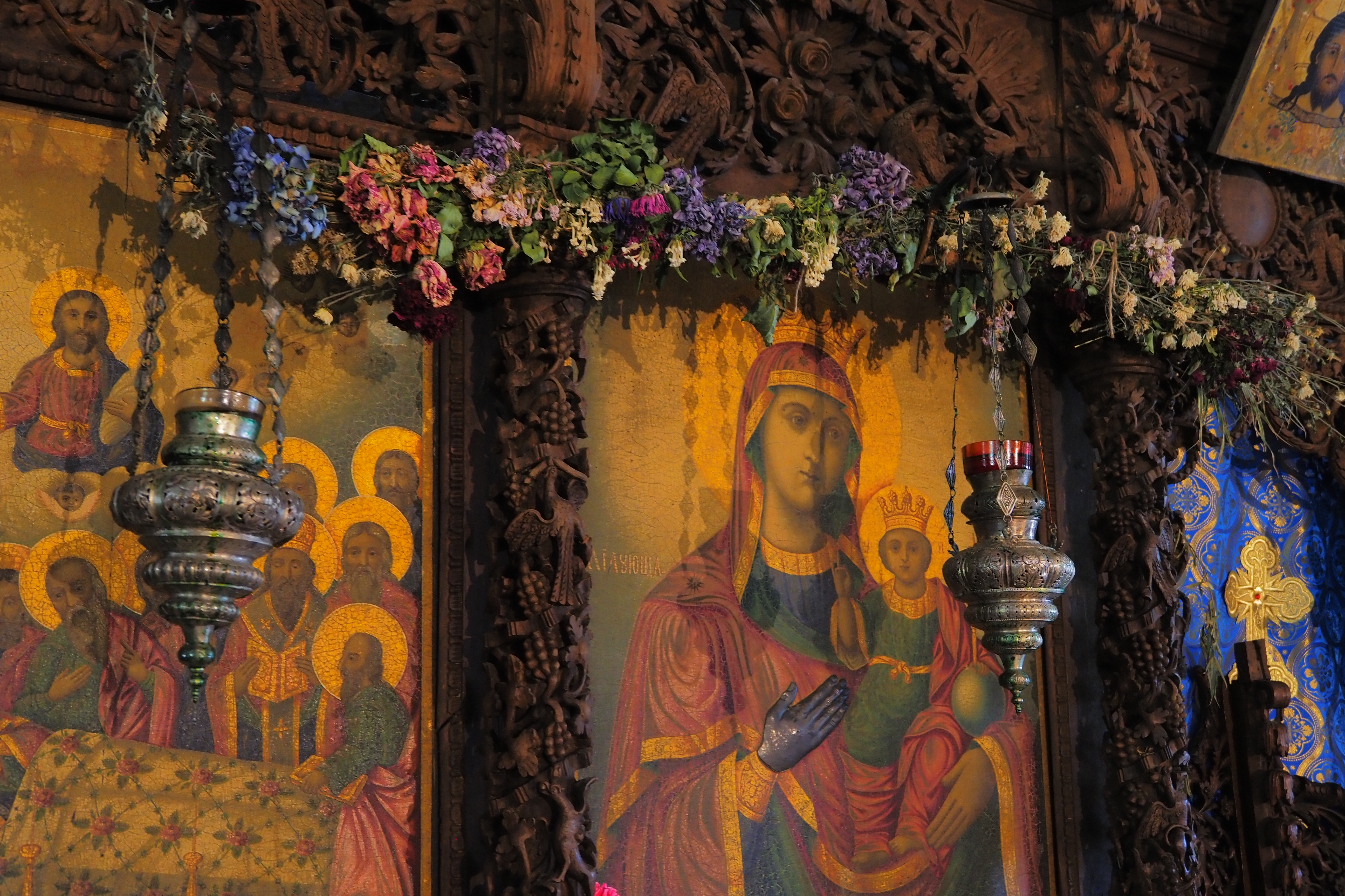1821年に彫られた木彫りのイコノスタシスと、1830年代に描かれたアイコン。