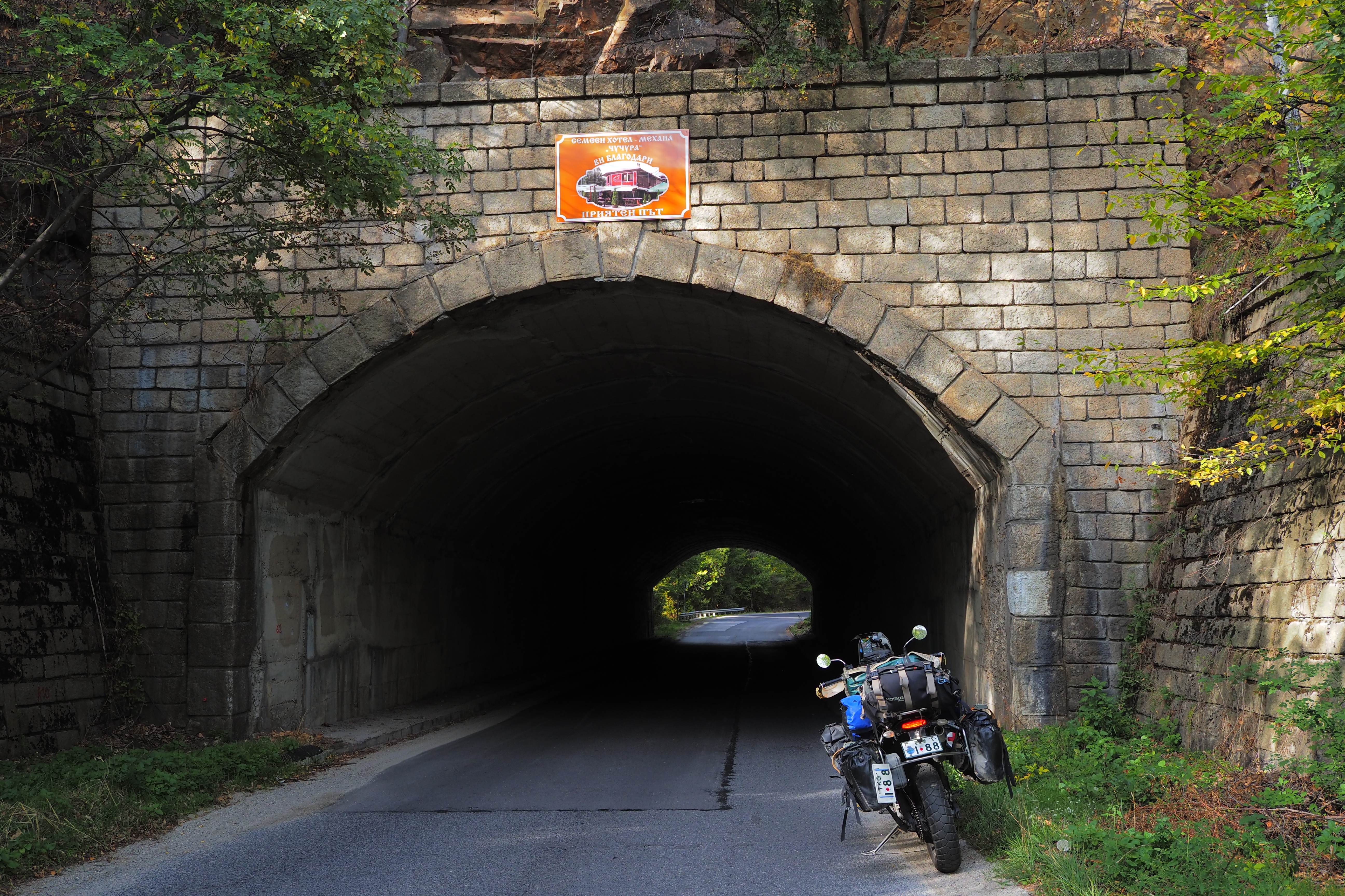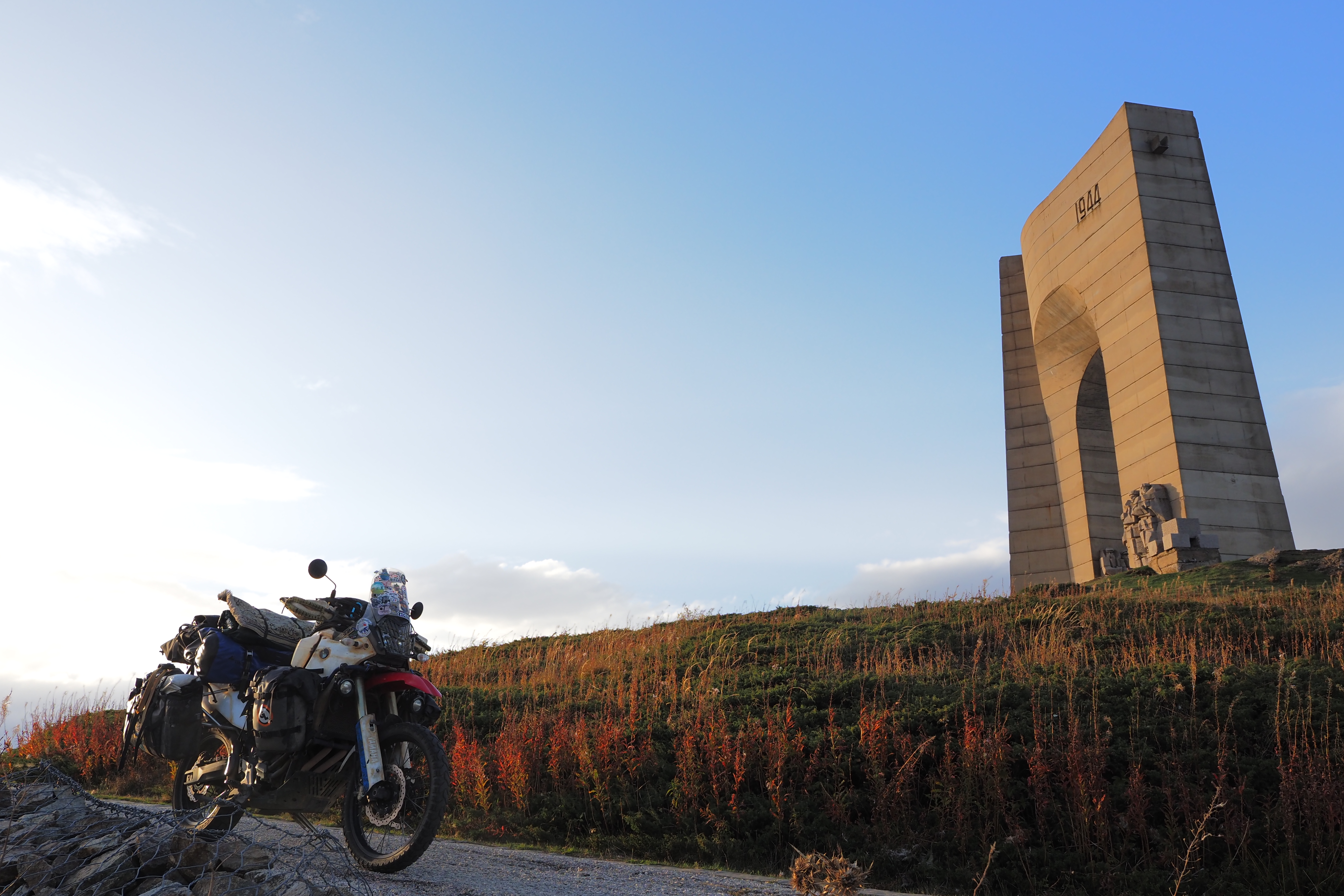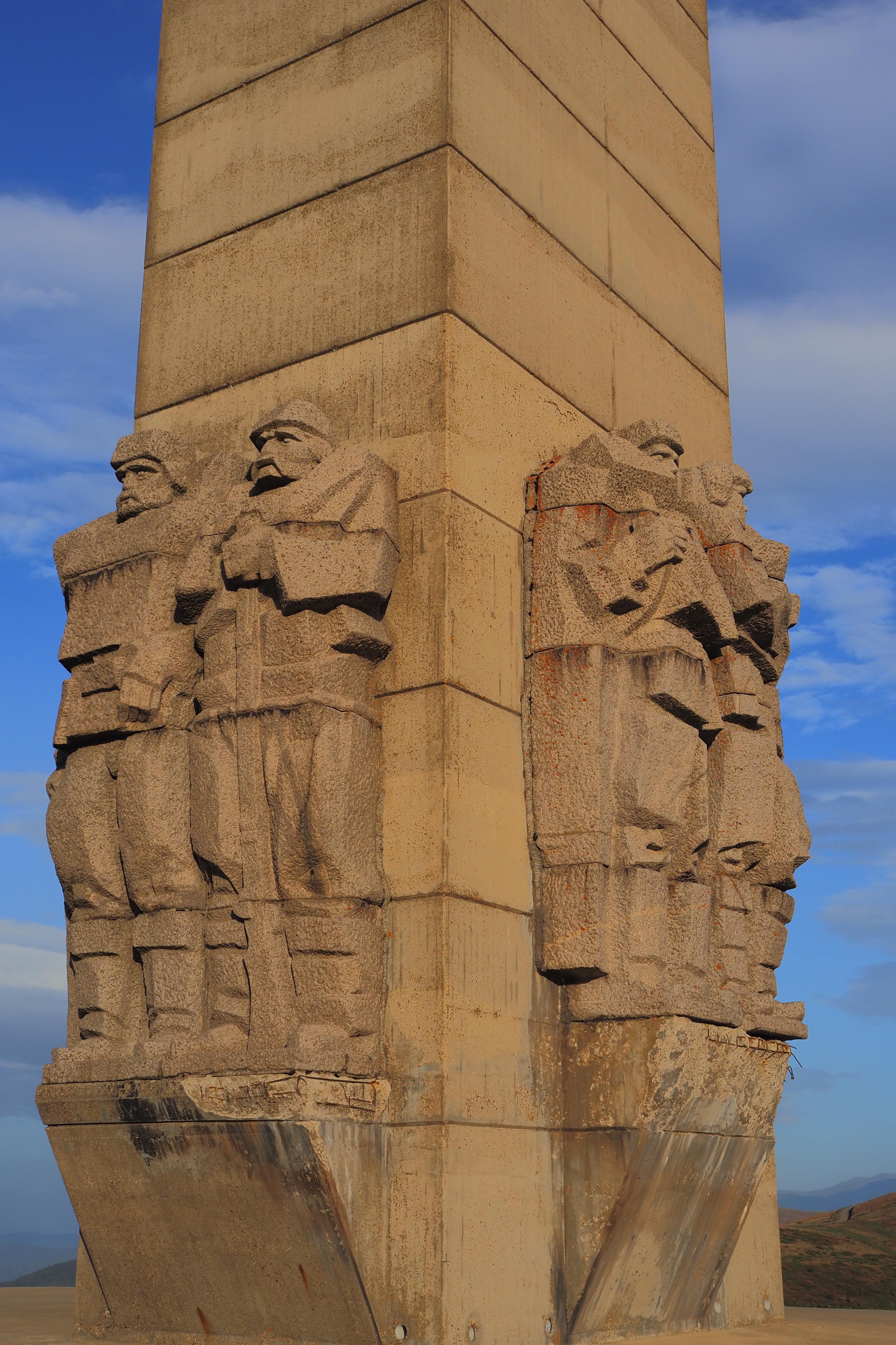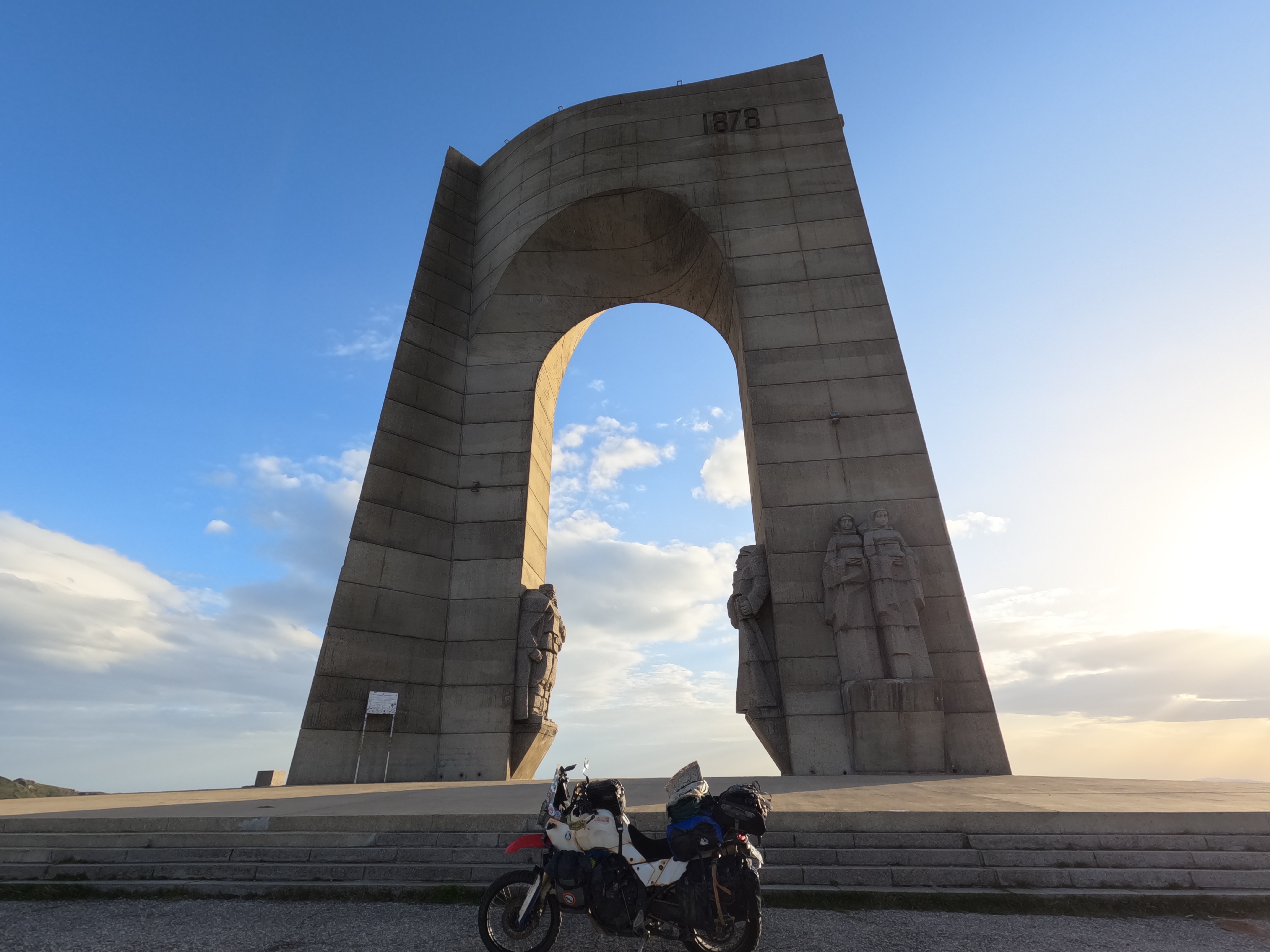 この道の頂点、Troyan Pass; トロヤン峠(またの名を Beklemeto; ベクレメト)に超巨大なコンクリートのアーチ型モニュメントが建っている。