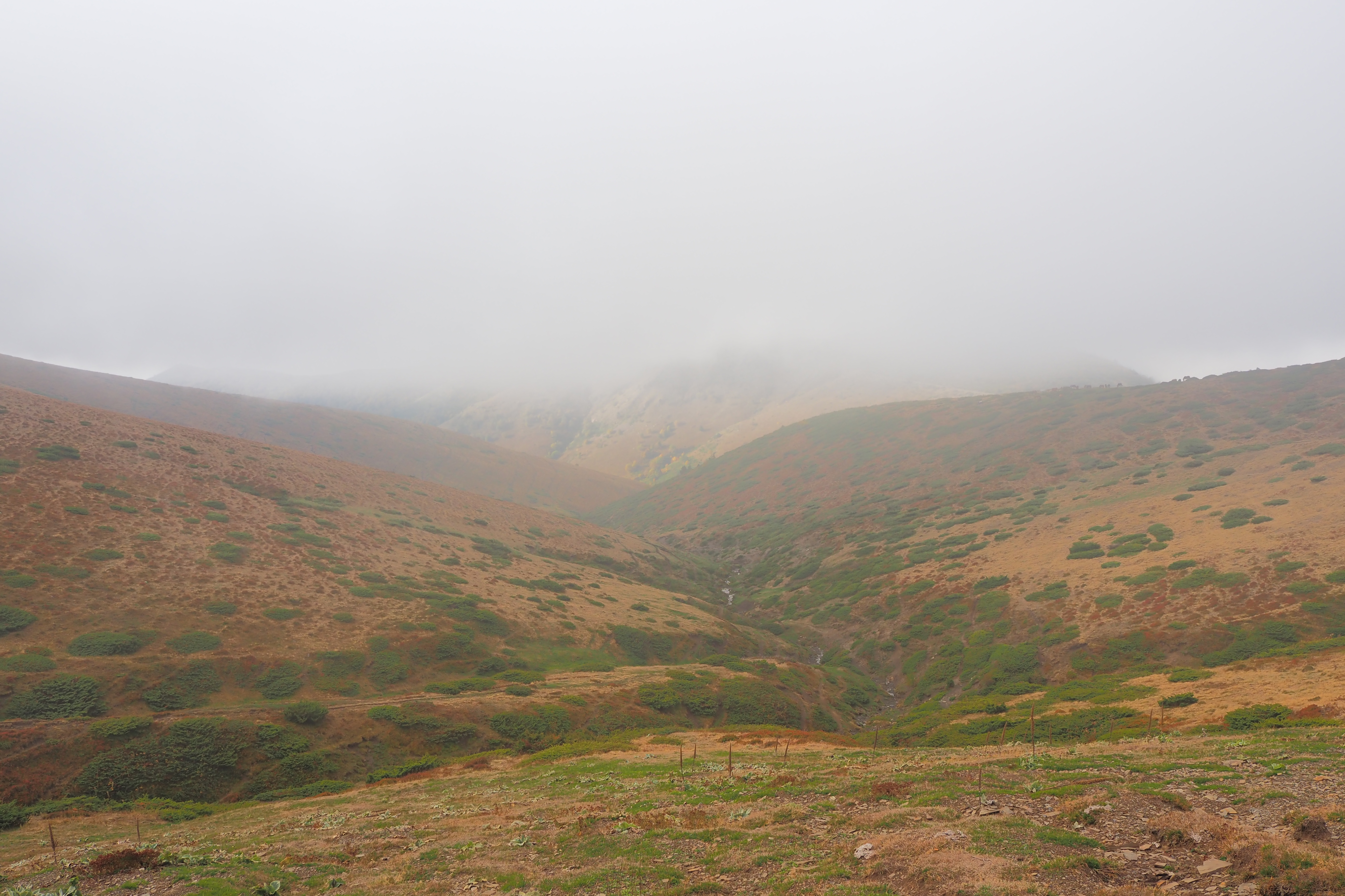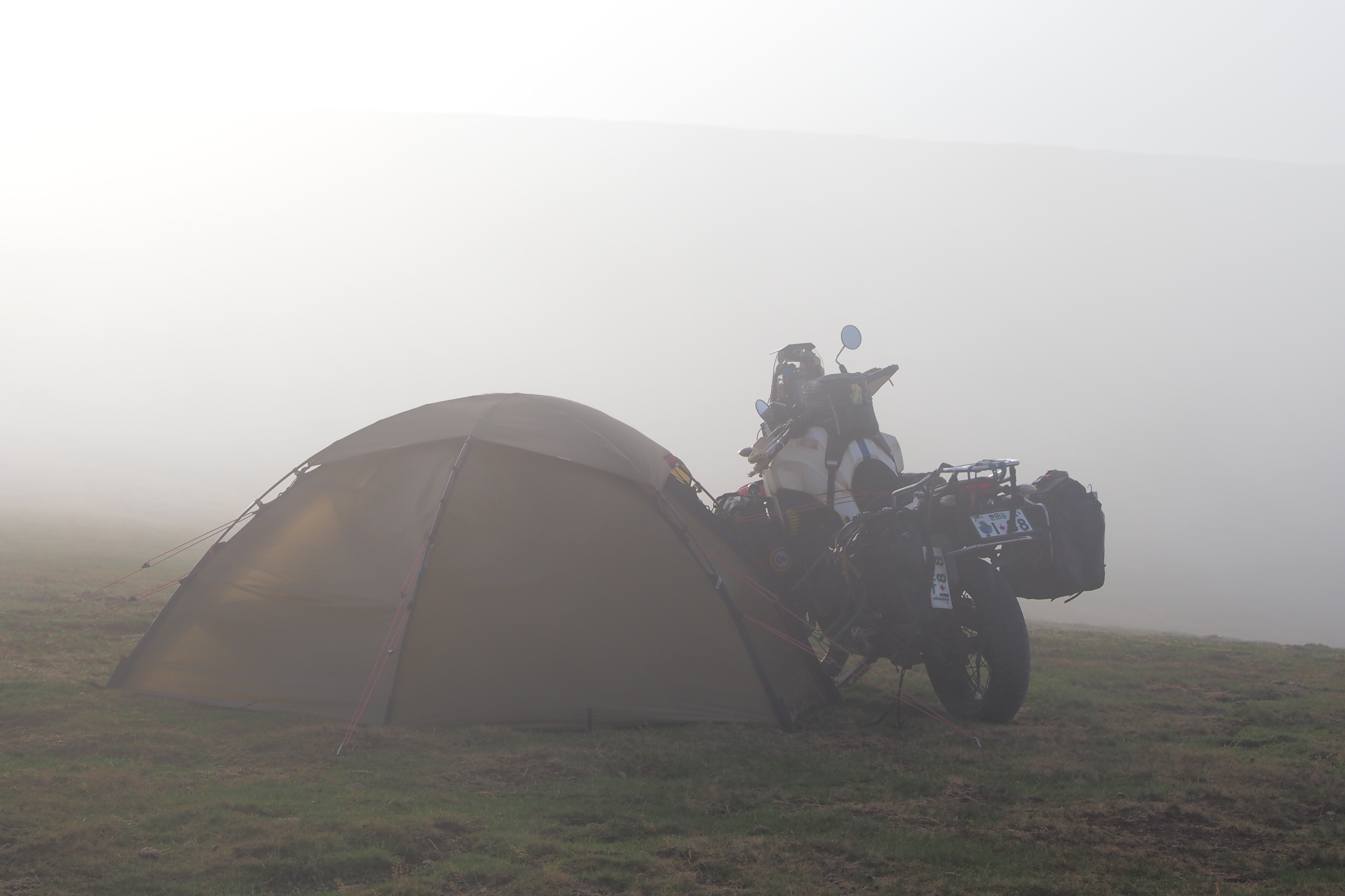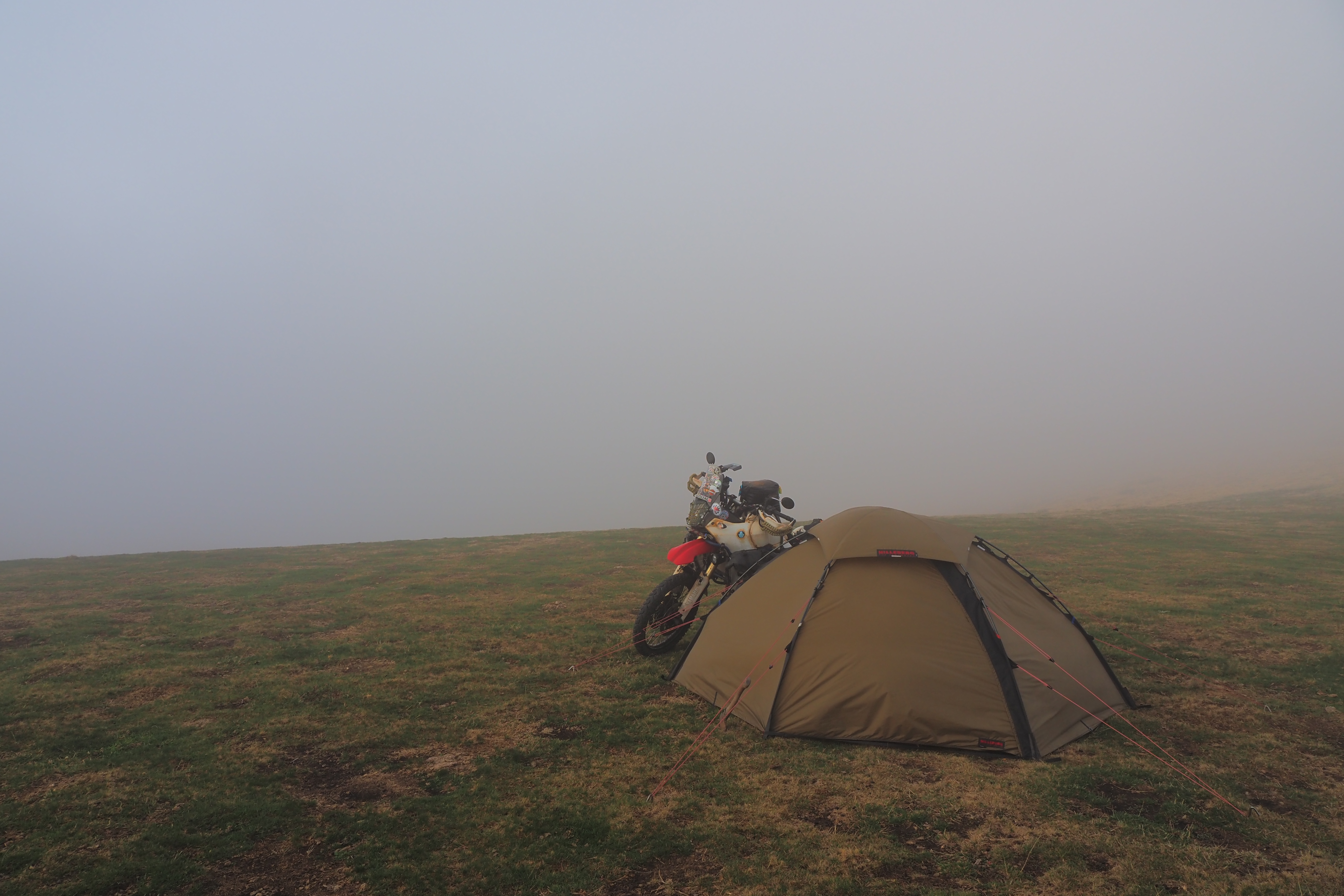風も強くて、谷の向こうから湧き上がってくる霧が物凄い勢いでテントに吹き付ける。
