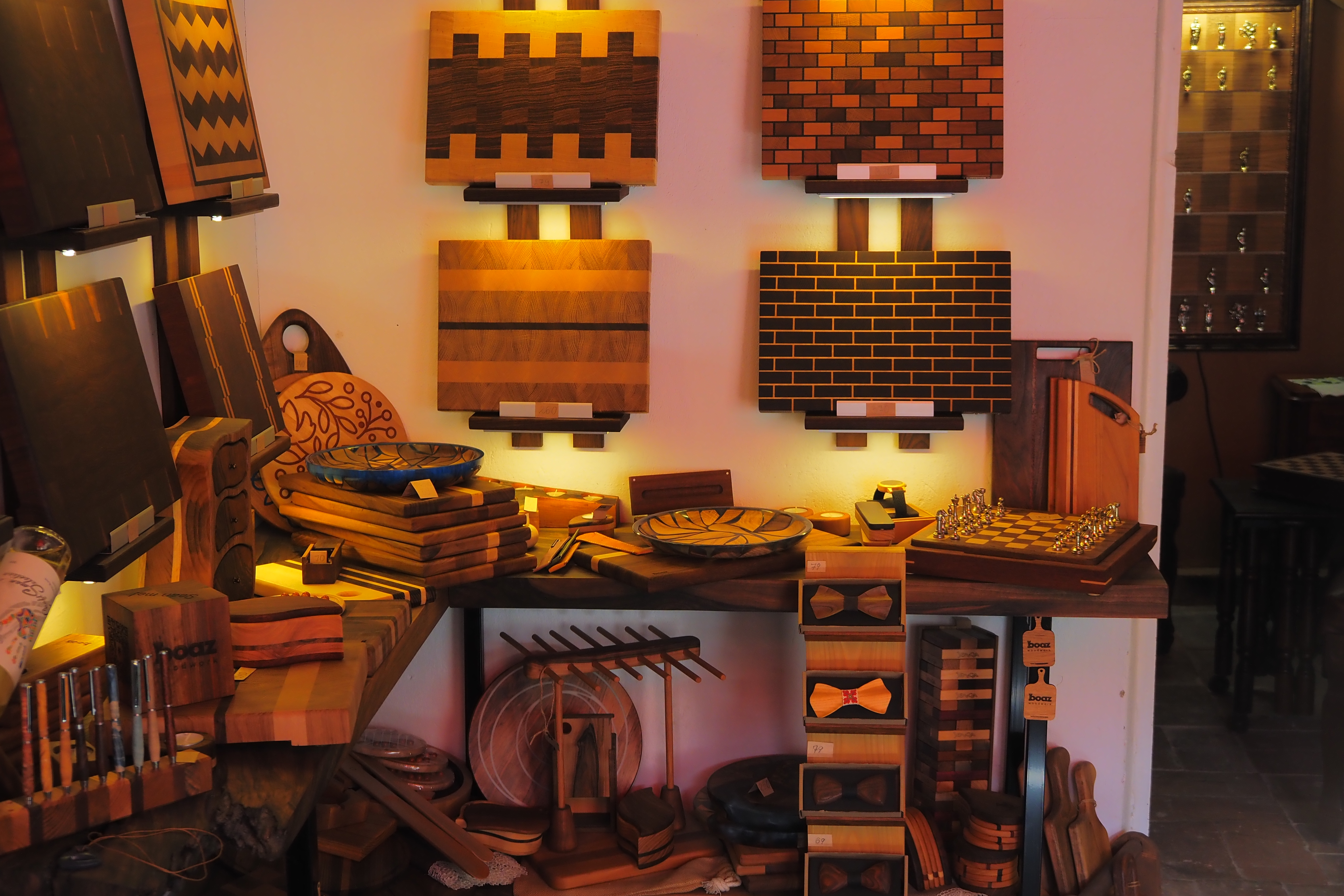 職人さんの工房兼お店が沢山あって、素敵なお土産がウィンドウ内に並ぶ。