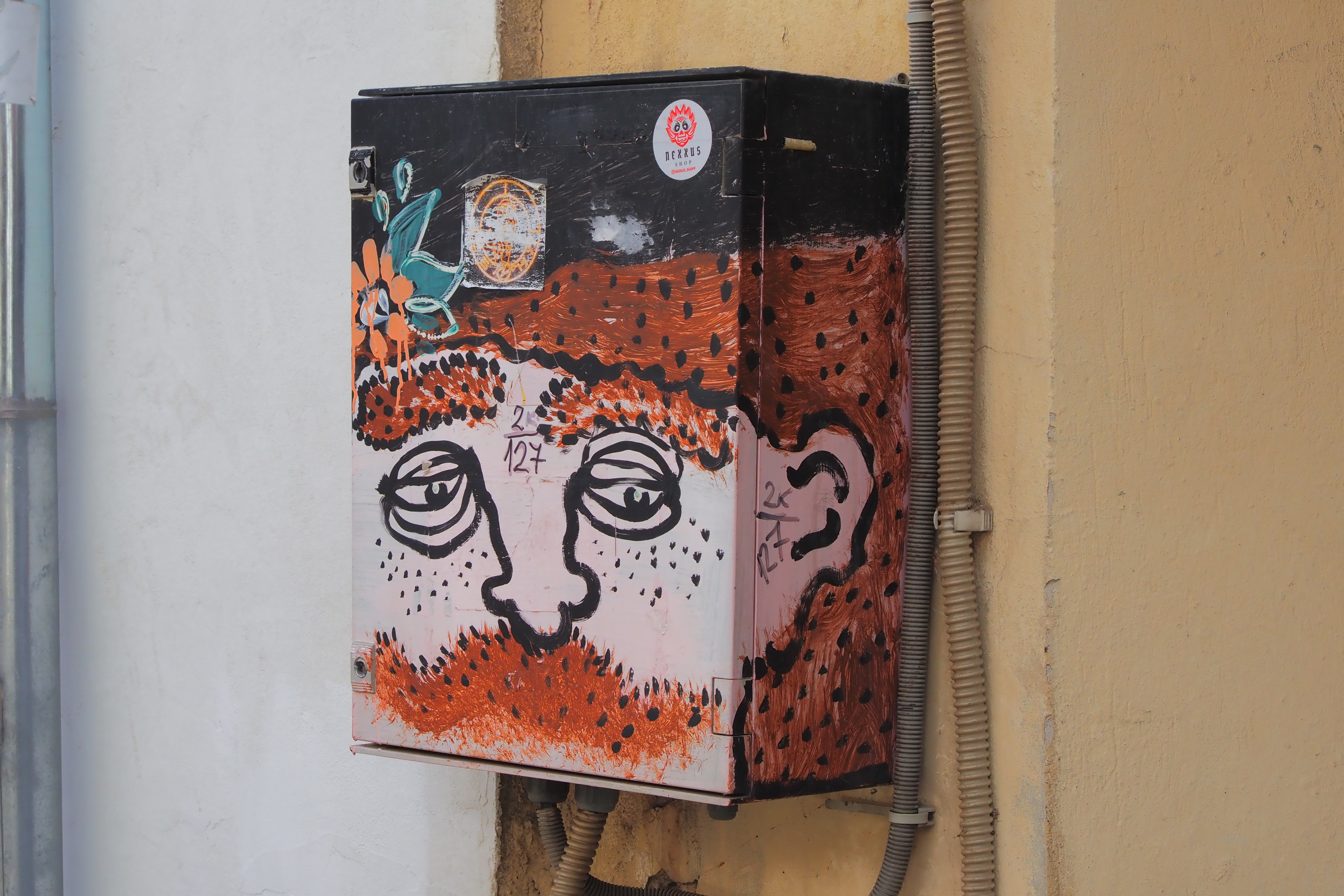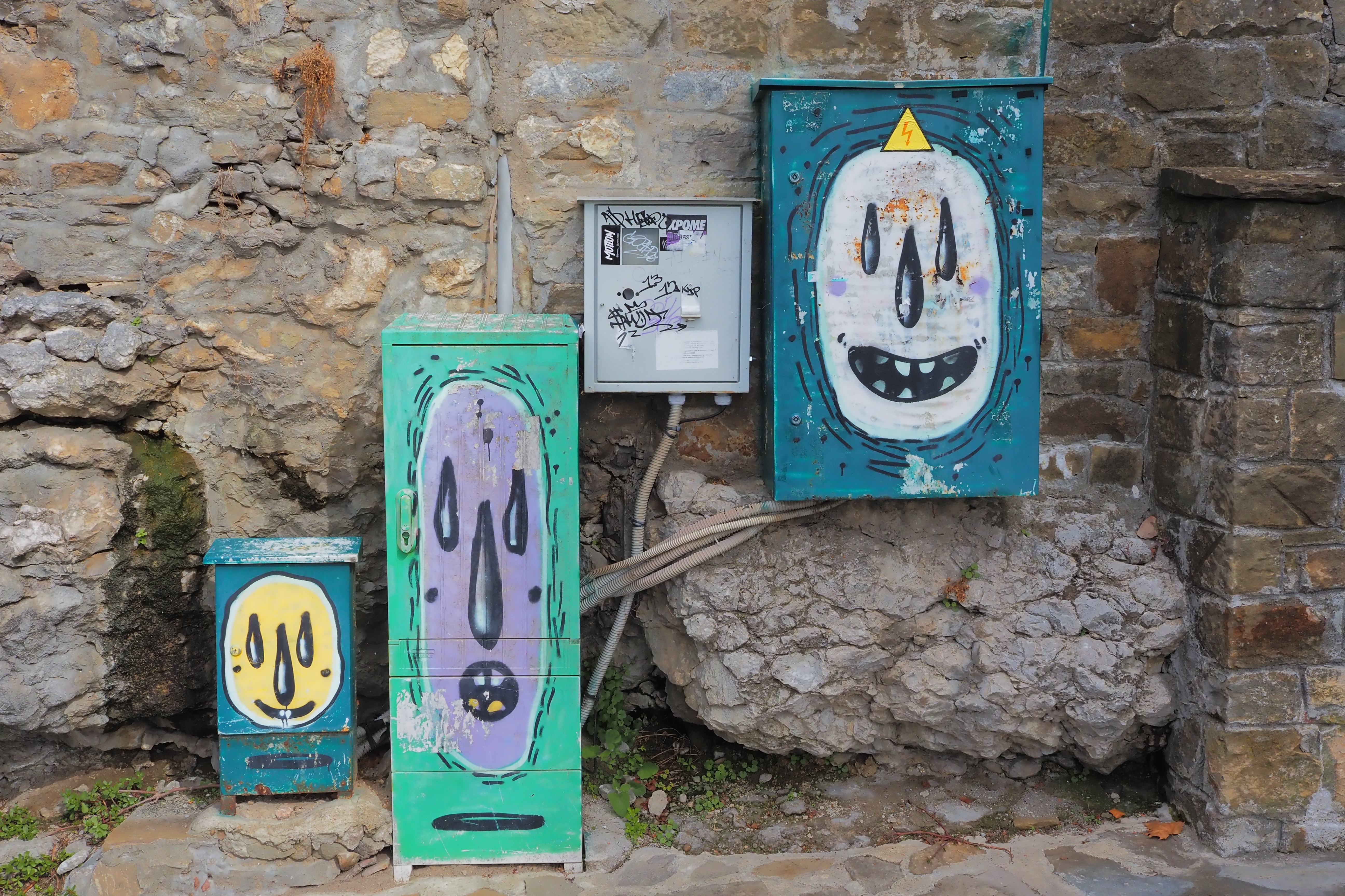 アートになった配電ボードと、イルミナティかと思ったらただの警備会社だったセキュリティ・ステッカー。