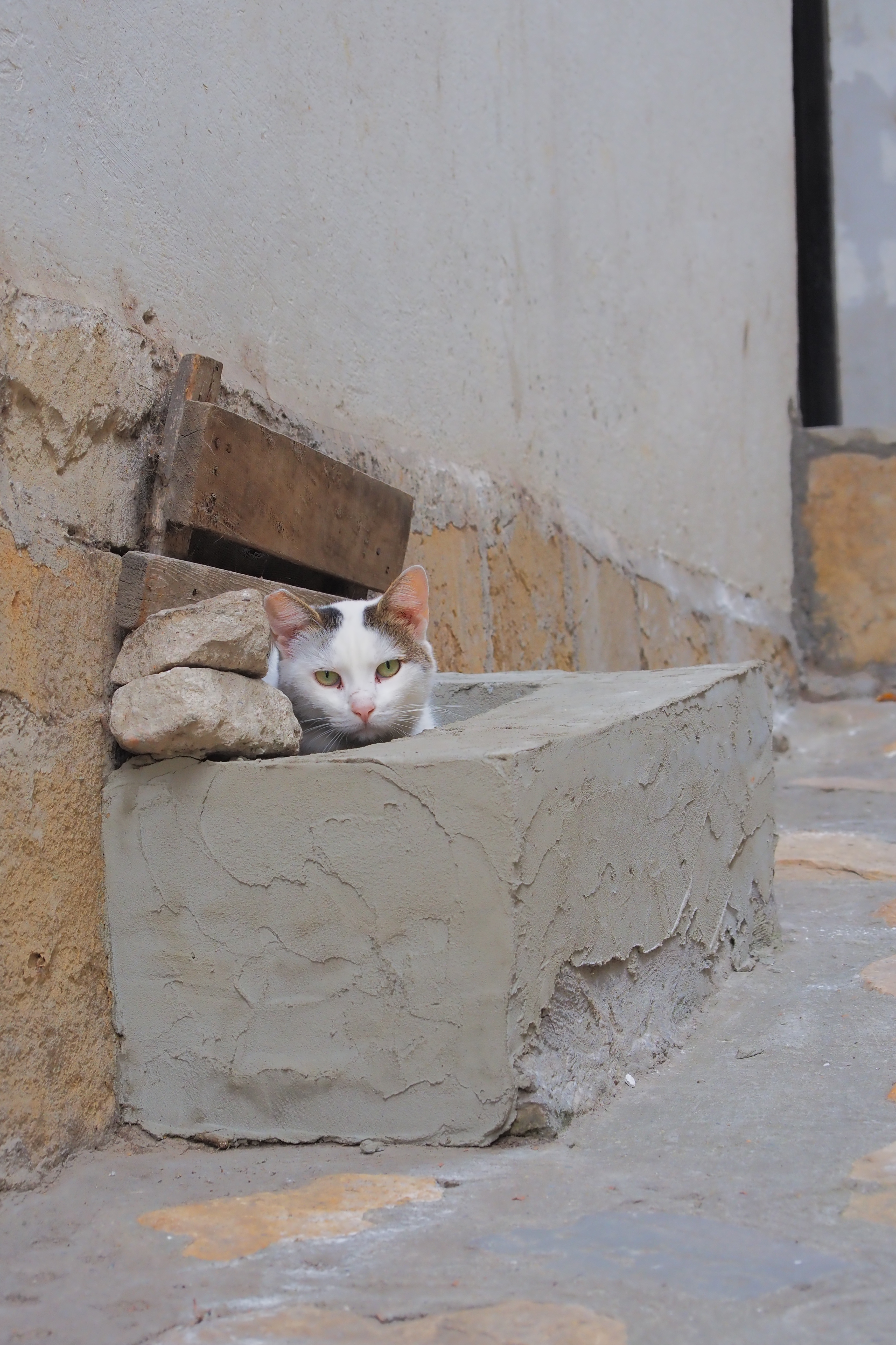 異邦者の訪れにひょっこりにゃんが偵察にやってきた。