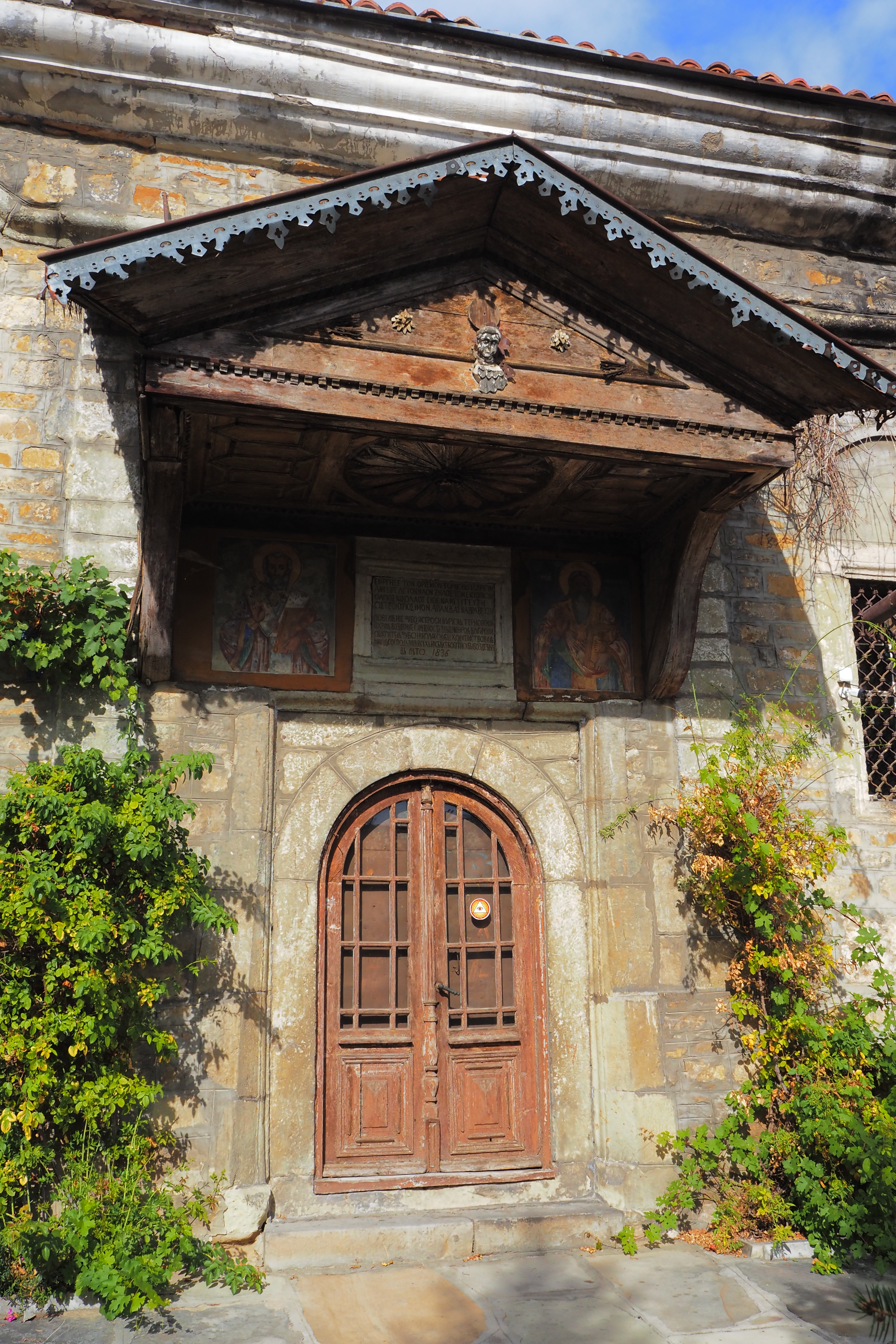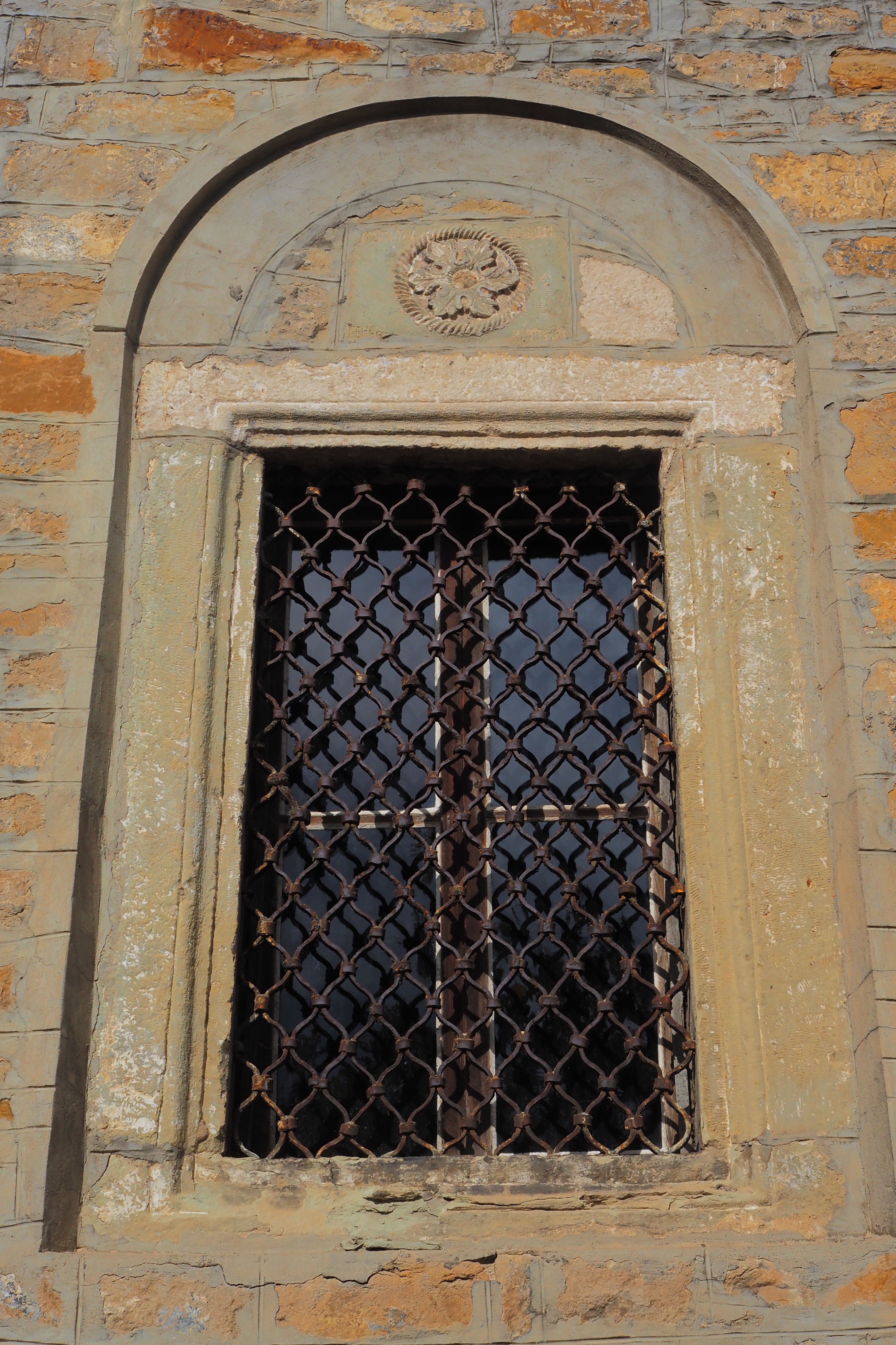 ビザンティン風のドーム・列柱を伴う鐘楼は基礎部分が石づくりになっていて、教会南側にある入口には印象的な木造の庇構造が、窓枠にも特徴的な彫刻と、鉄材の格子 が施されていてディテールを見ていくとより面白い。