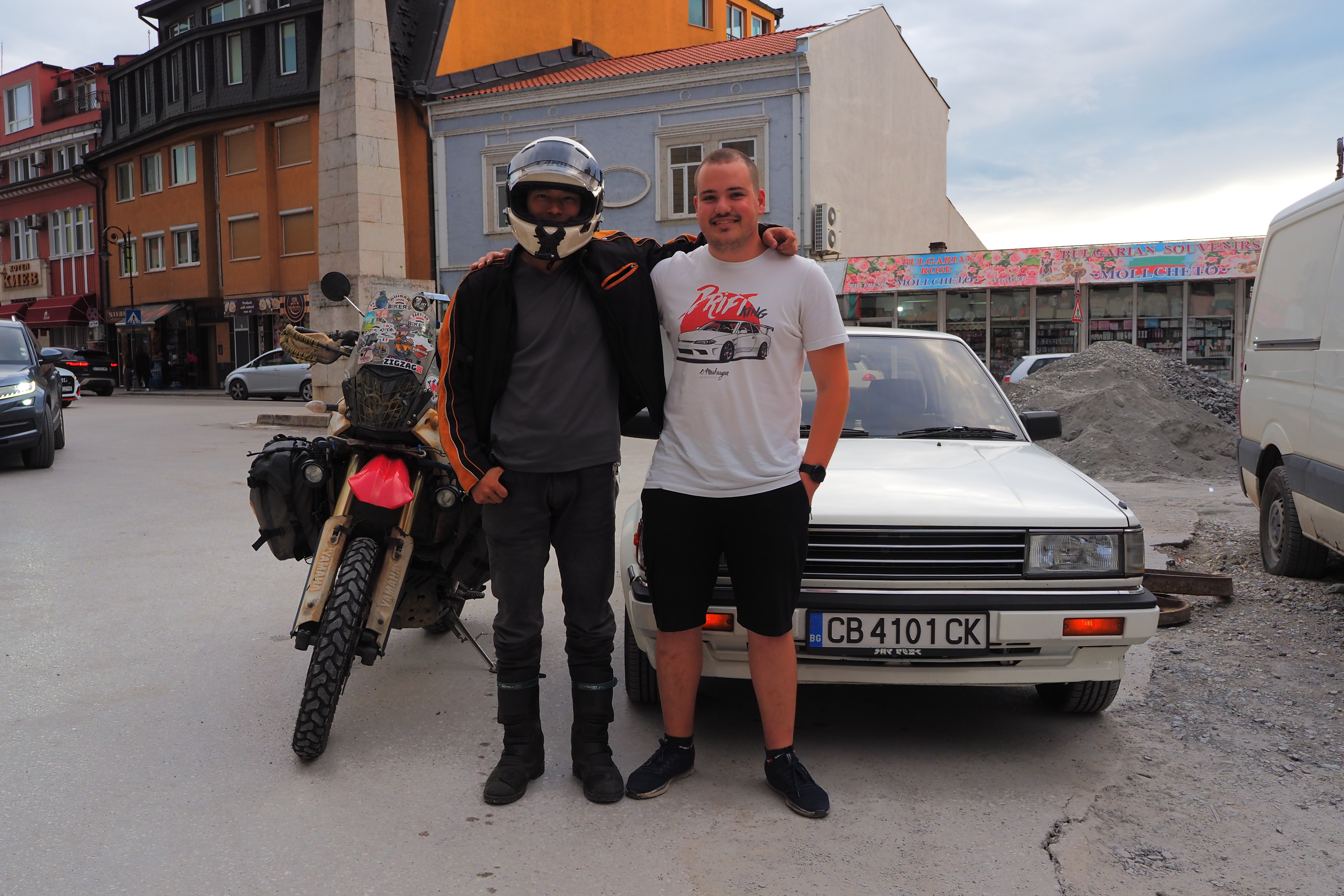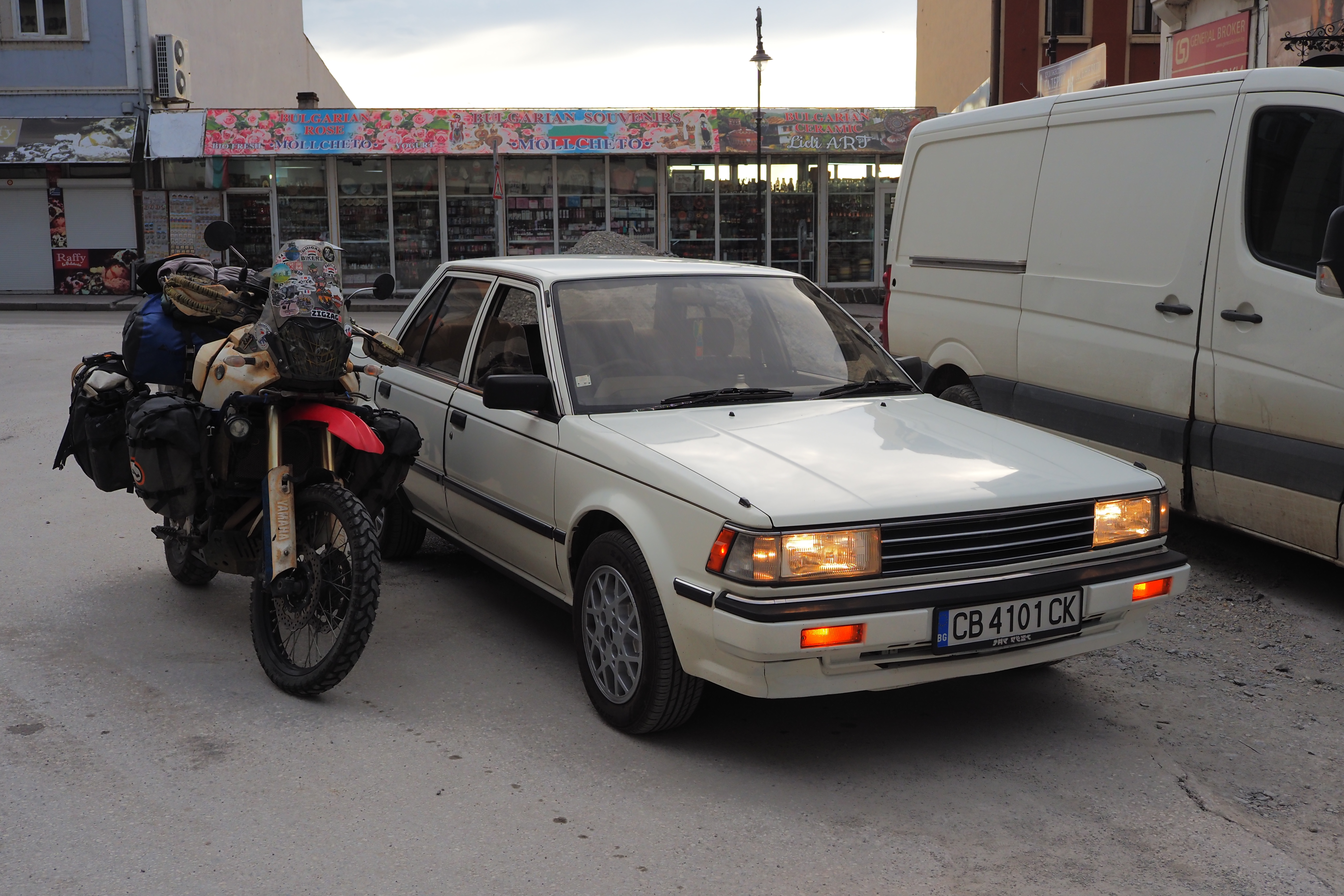 2020年製Yamaha発動機のバイクと、1985年製Nissanの車が ブルガリアで出会うという珍事だったのであった。