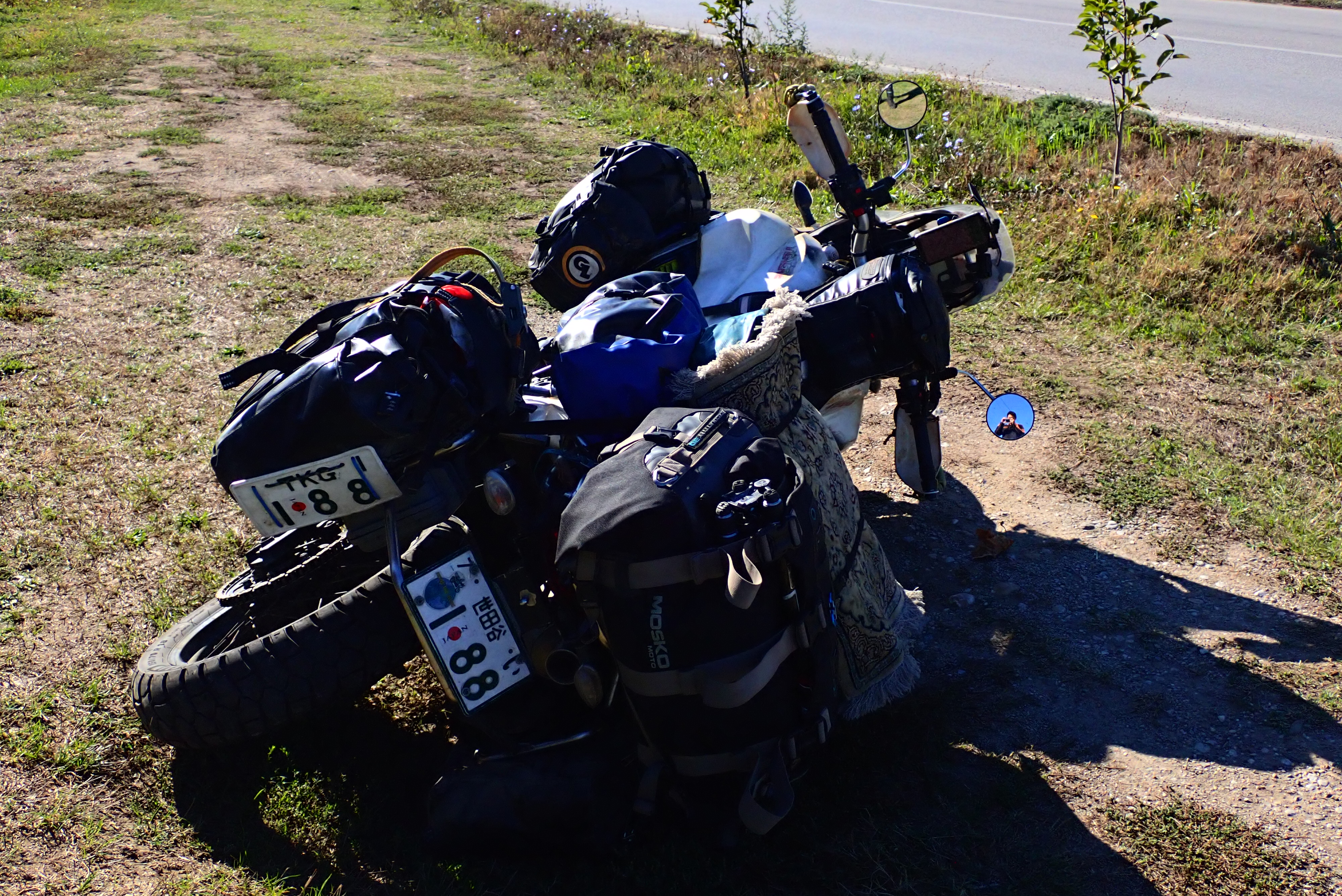 とかよそ見しながら発進したら、地面の起伏にタイヤを取られて転倒。