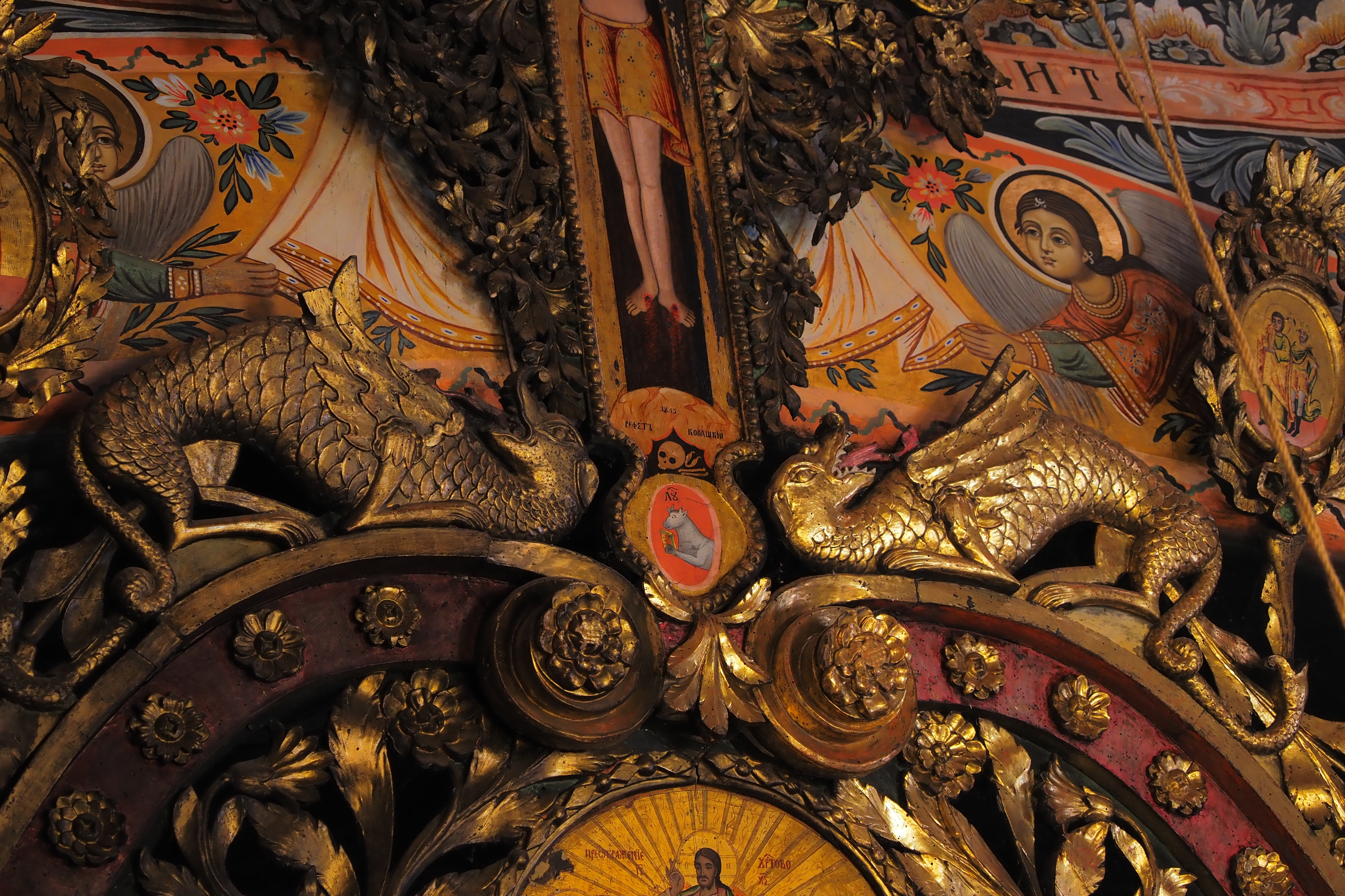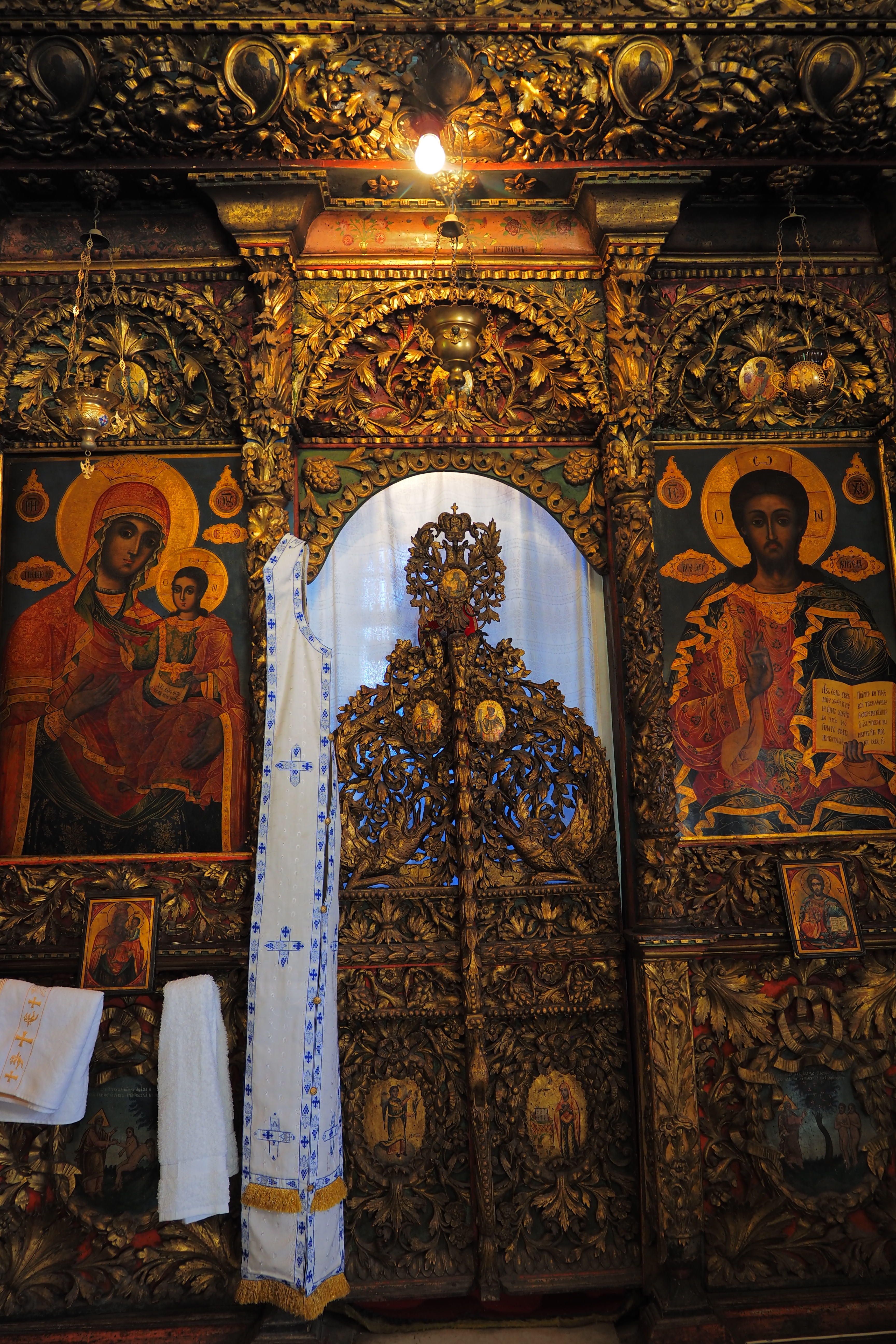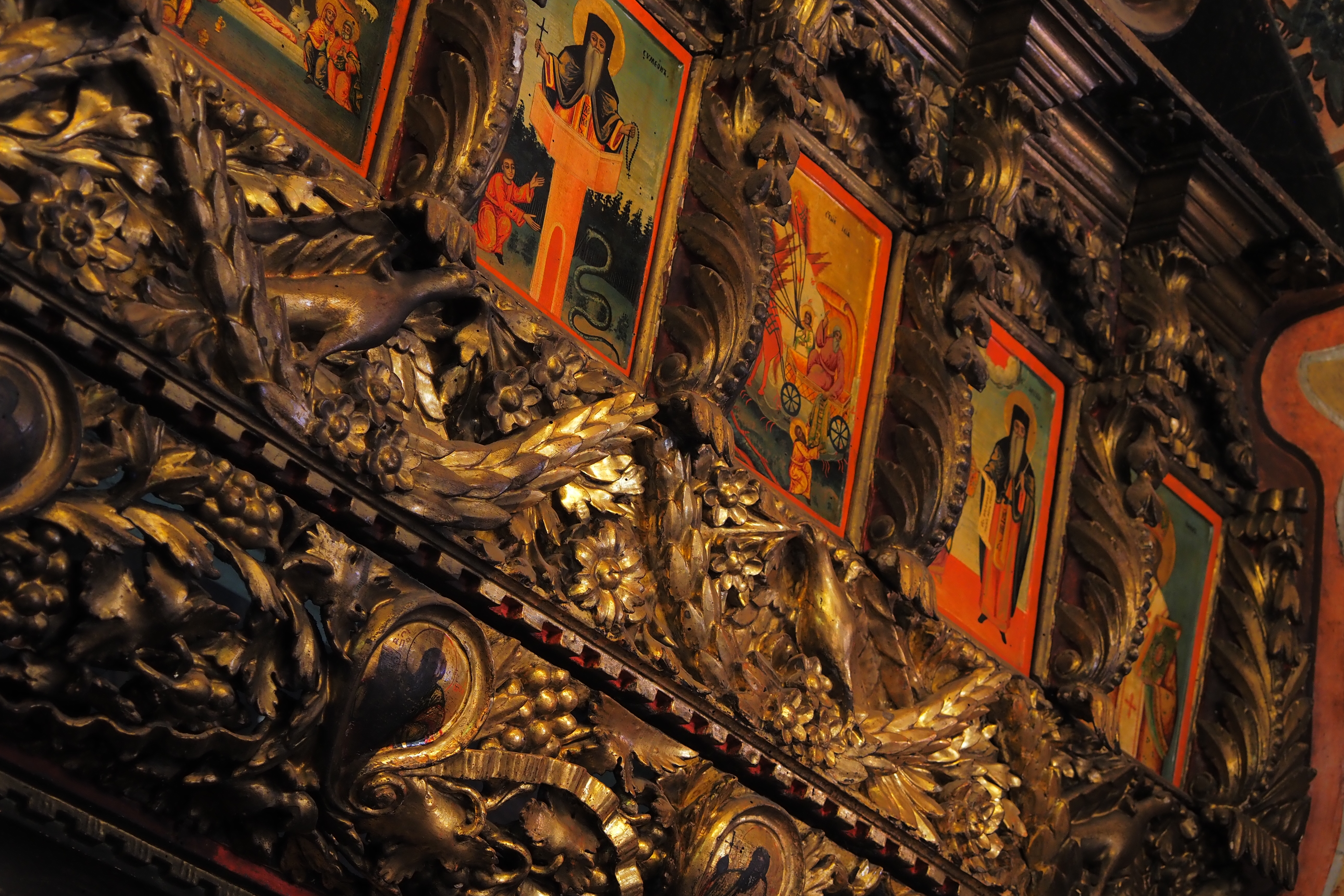 金メッキが施されているというイコノスタシスの木彫もすごい迫力だ。