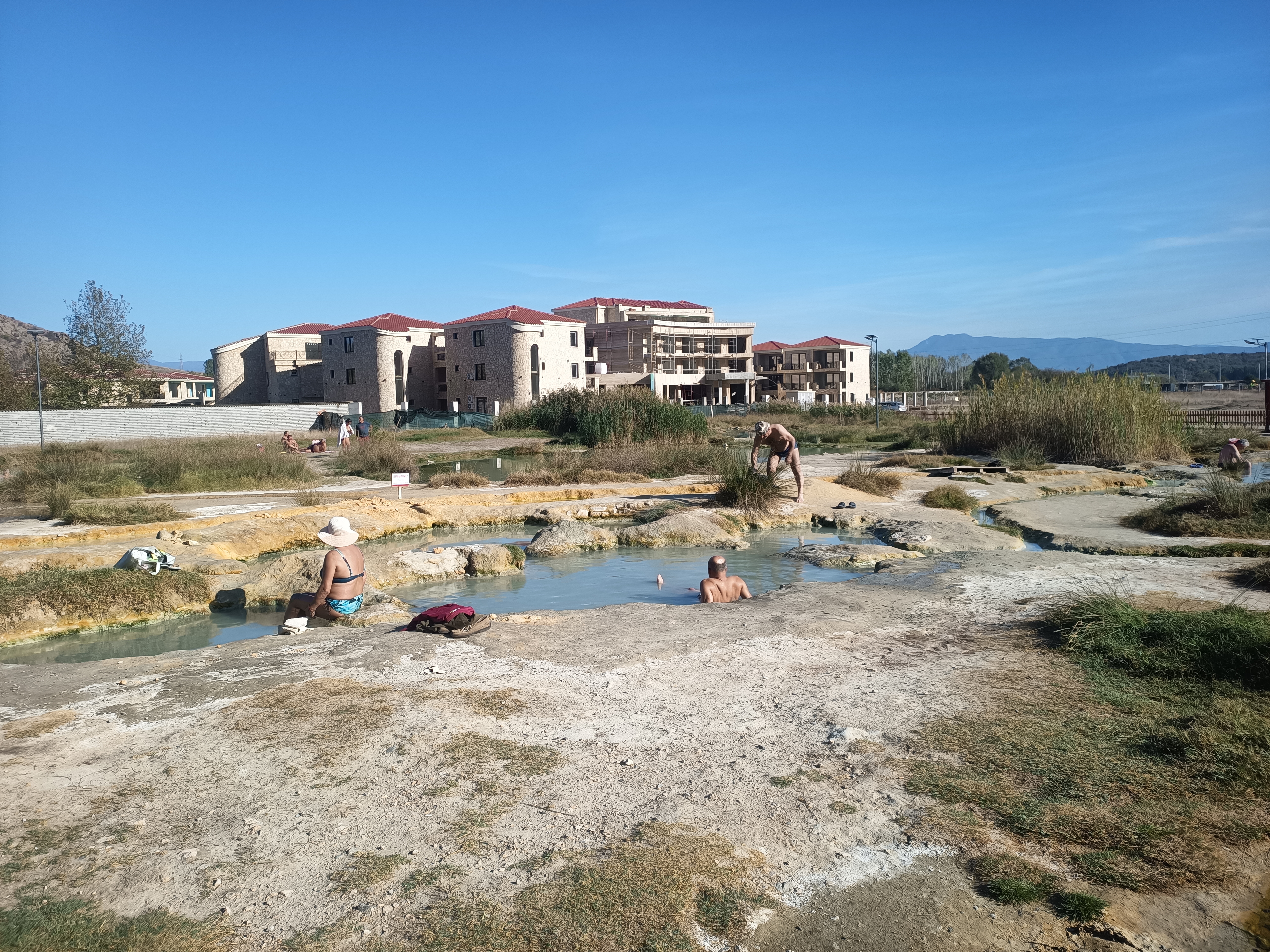 Mineral Bath Rupite には、ちいさな池みたいなかんじでいくつかの天然温泉が点在してる。既にジモティがいい湯だな状態なので、管理人も簡易脱衣所で水着に着替えてトライ。