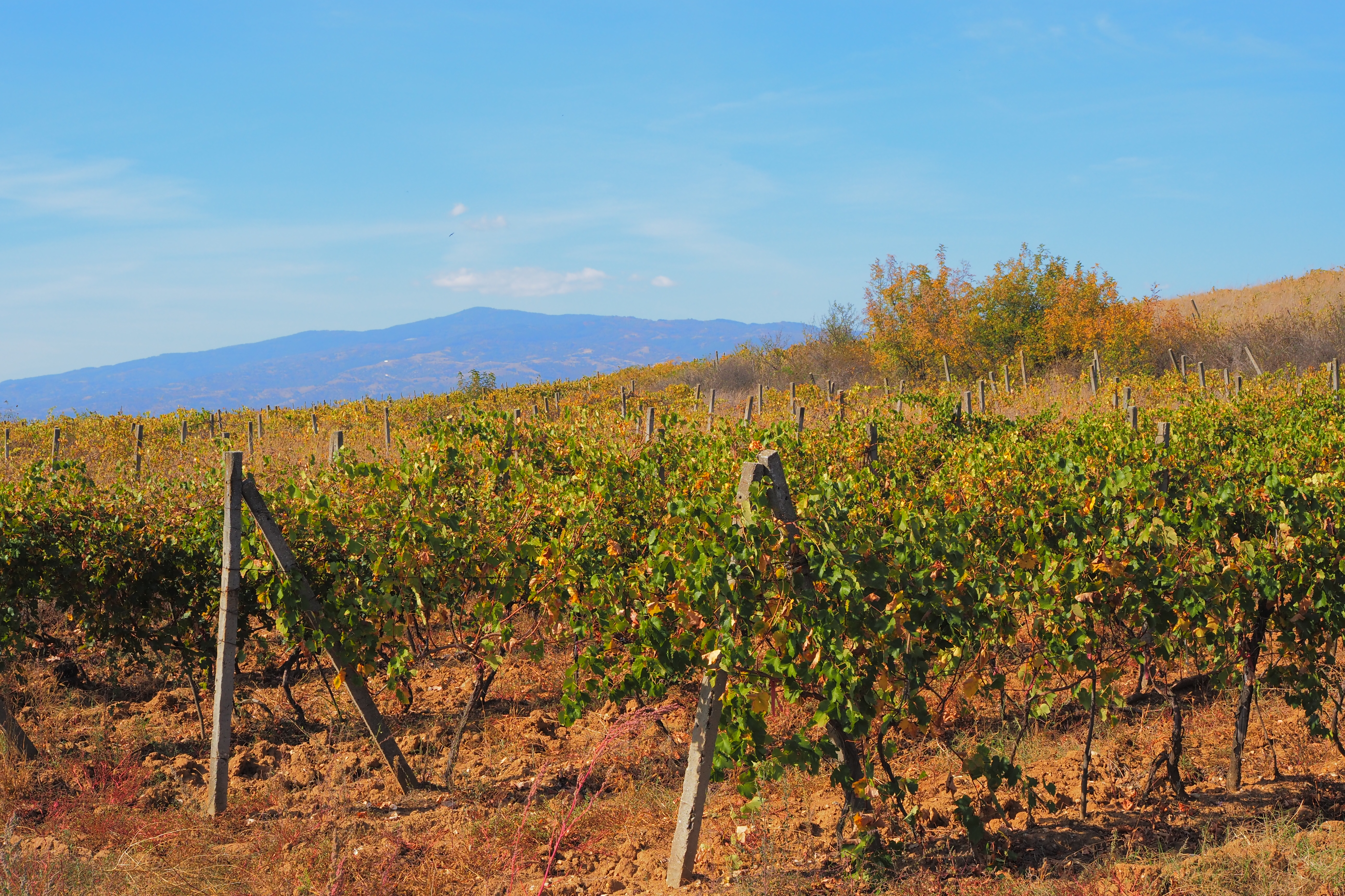 ブルガリアのブドウ畑を抜けて、キャンプ場から少し西側にある Rupite; ルピテという街の方へと向かう。