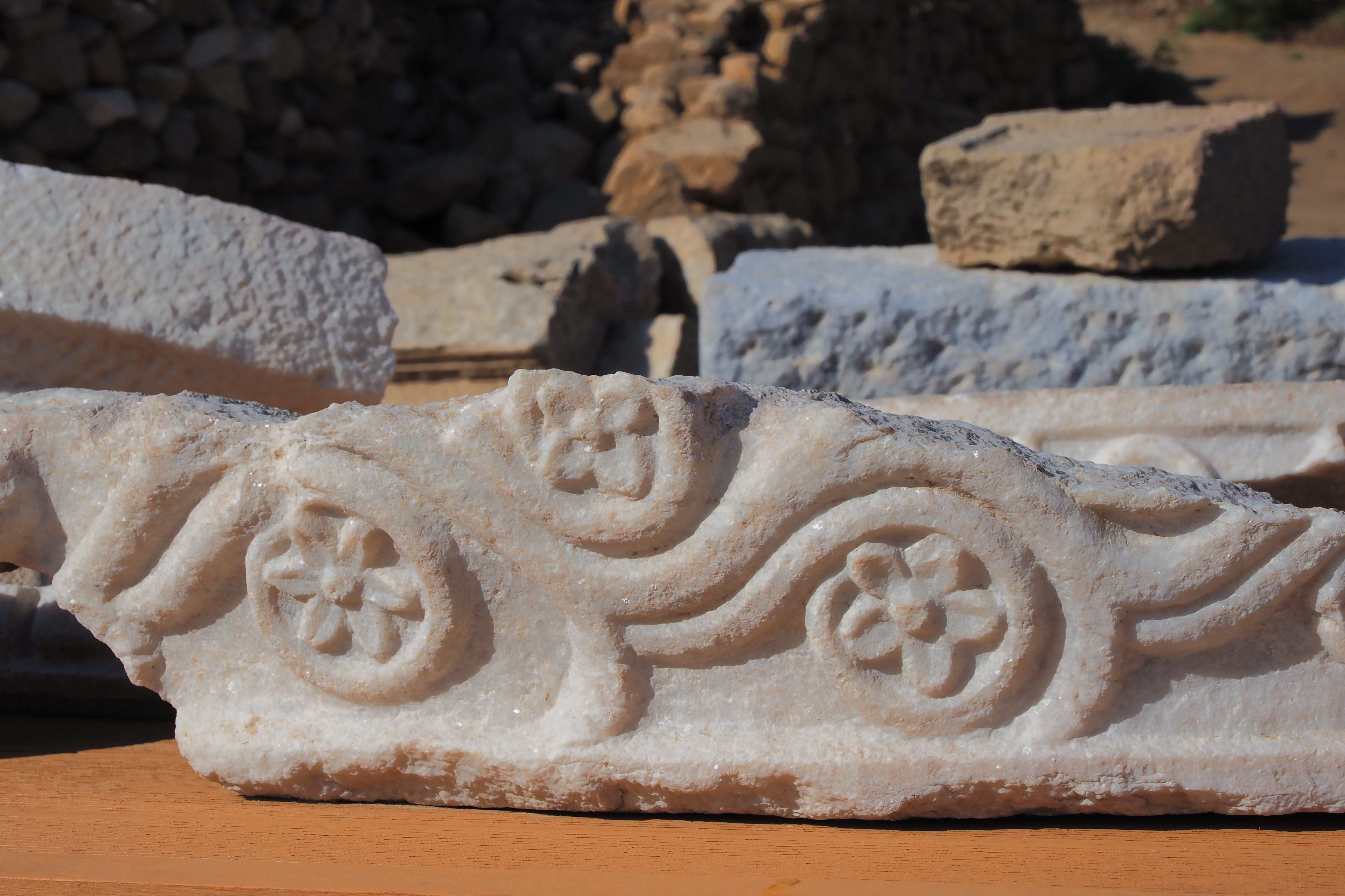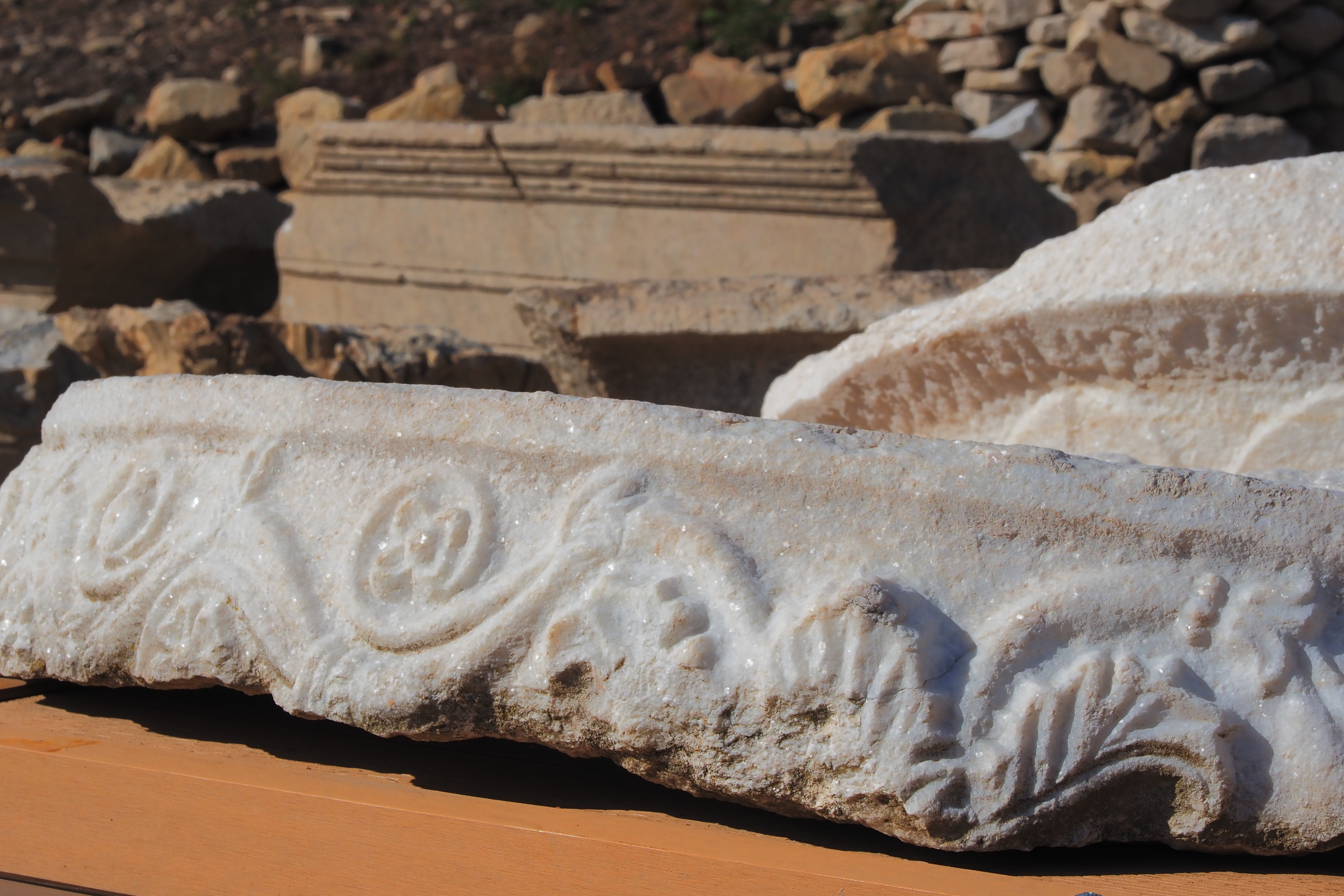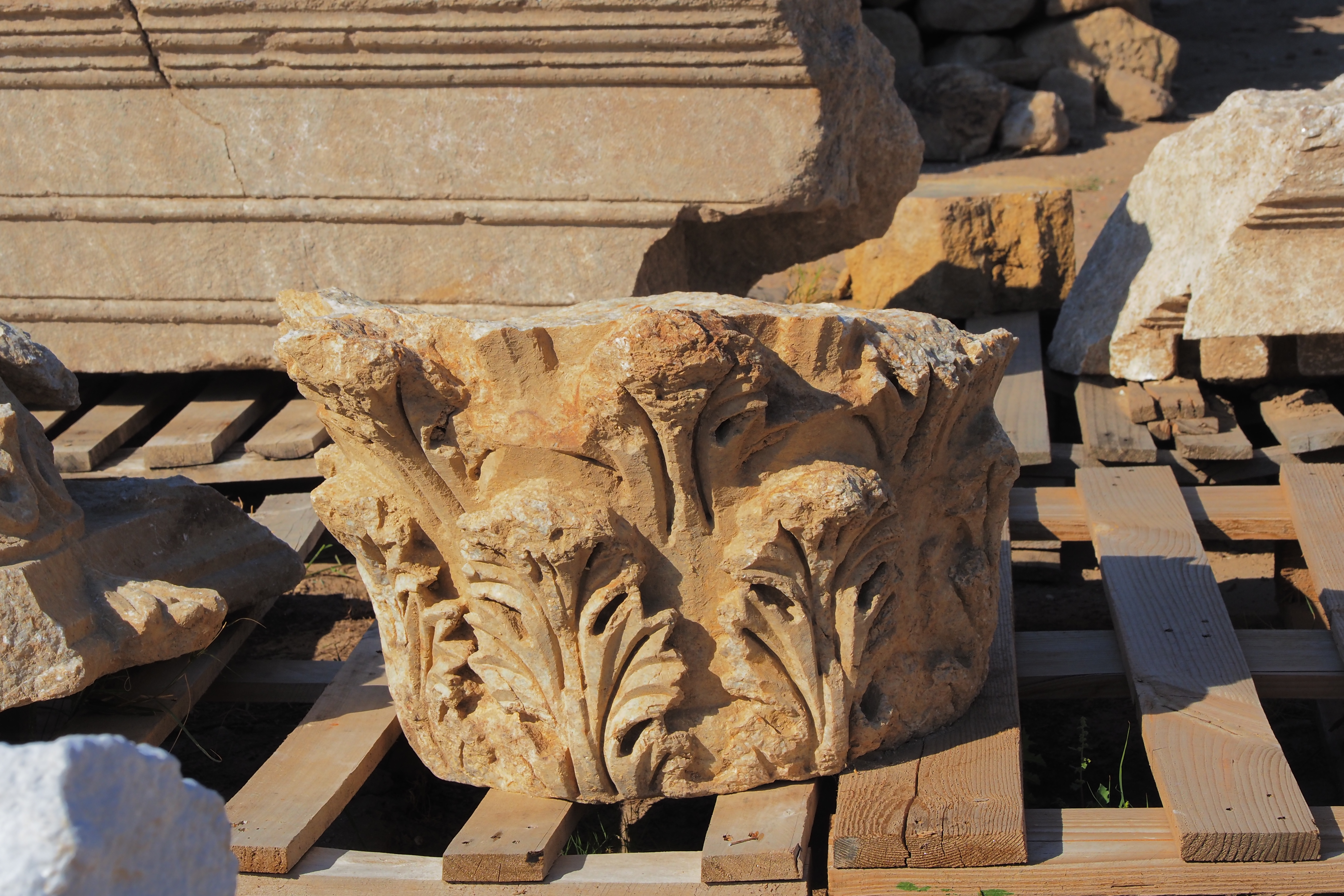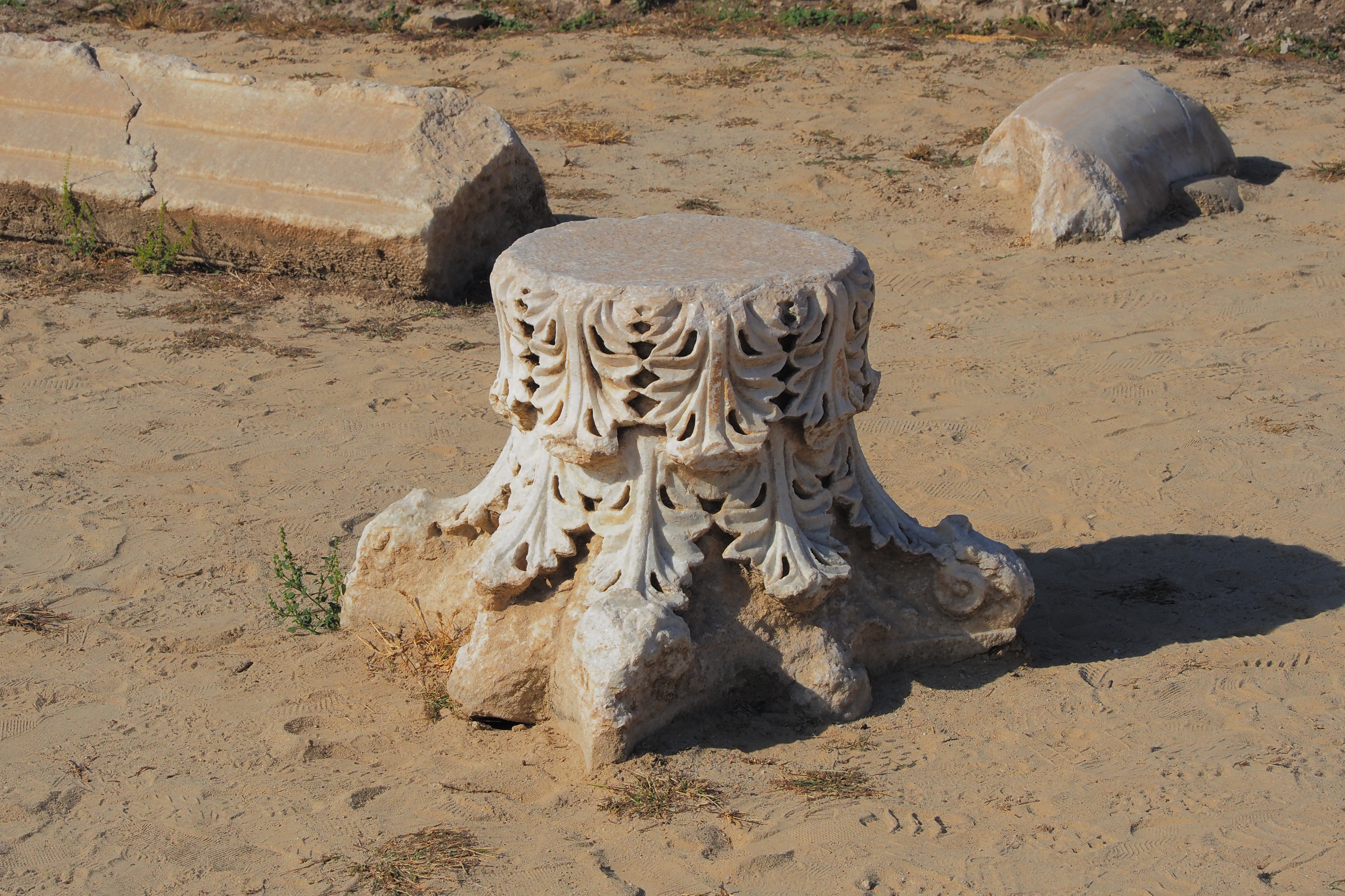 サイトに散在する柱頭やモニュメントの破片。
