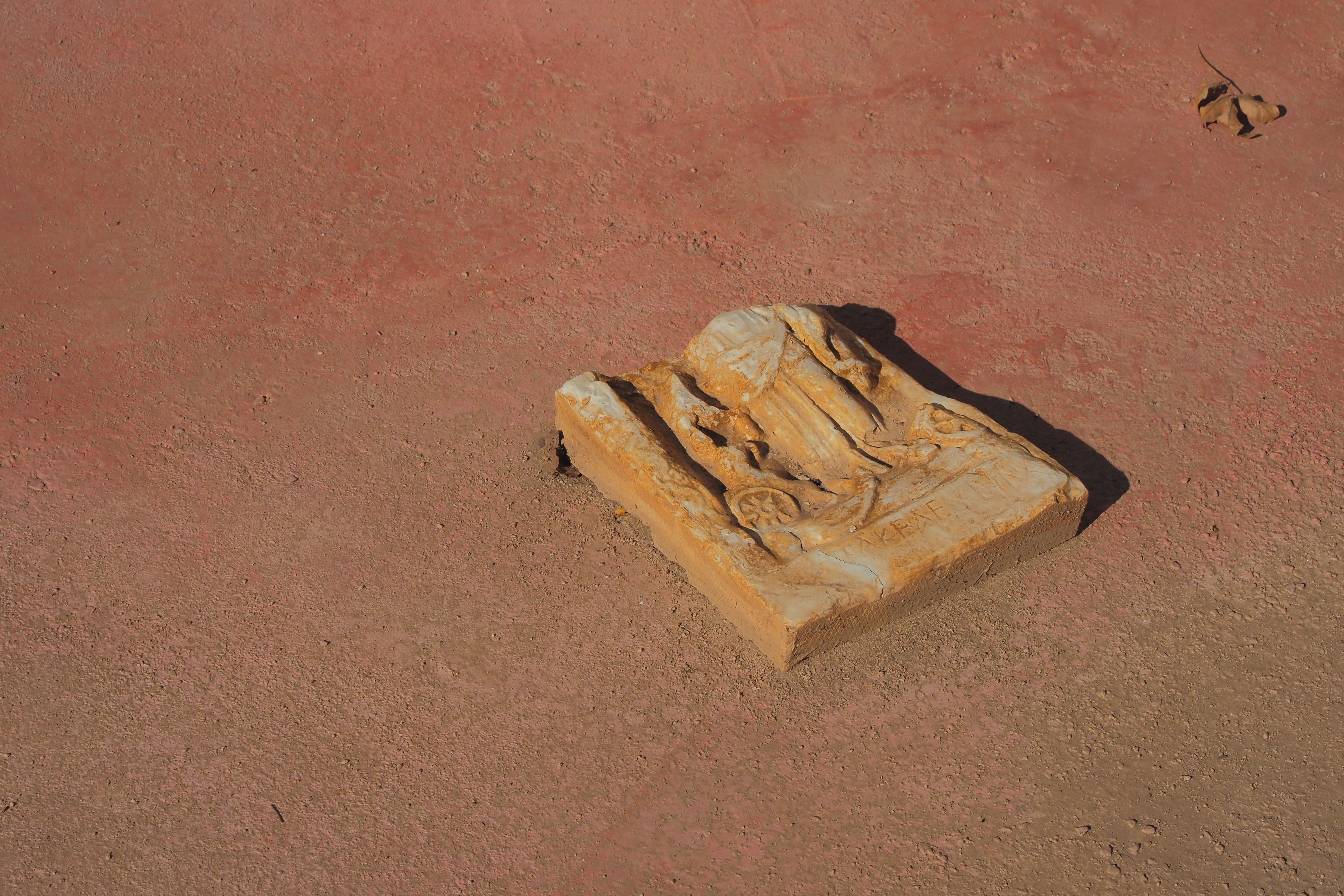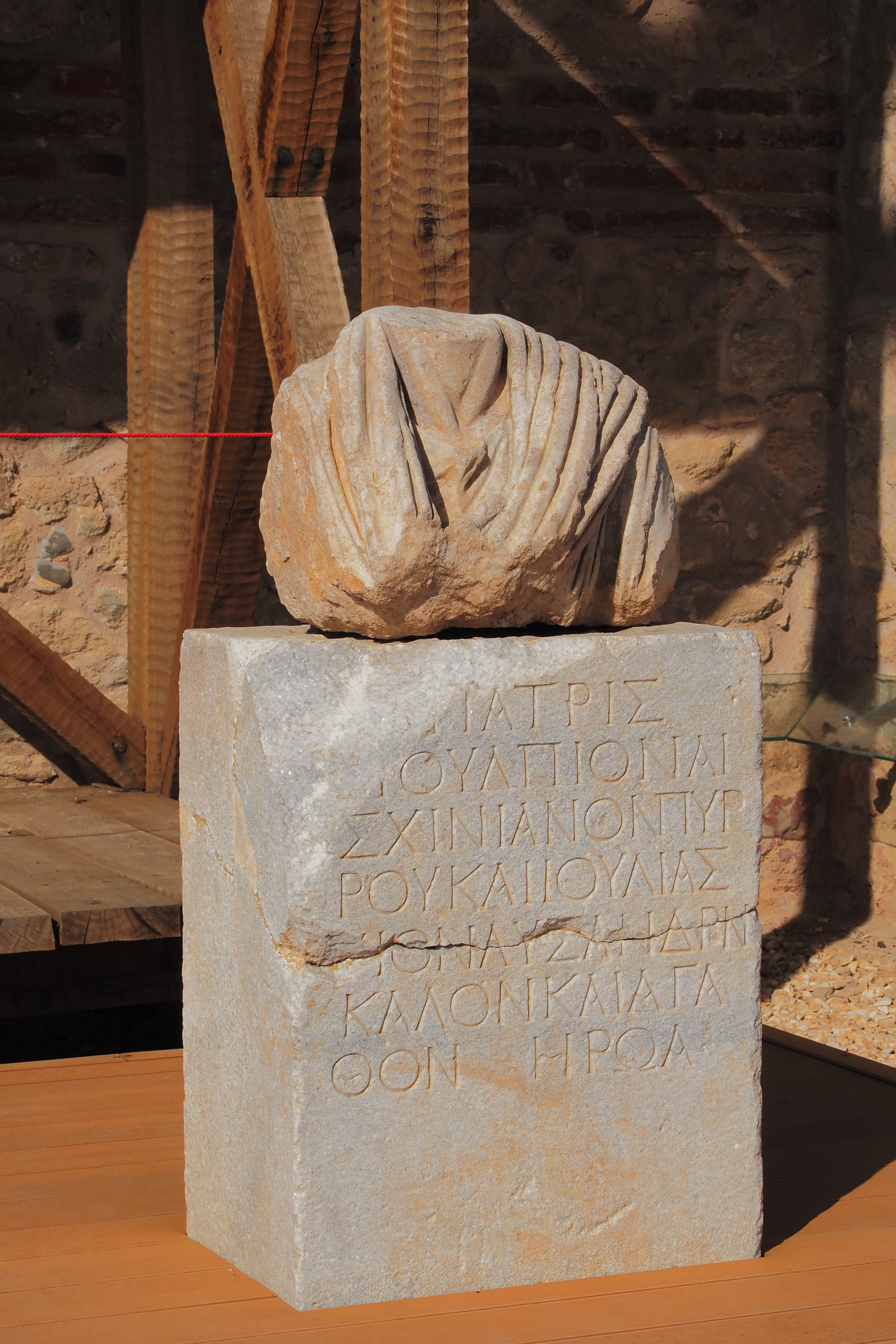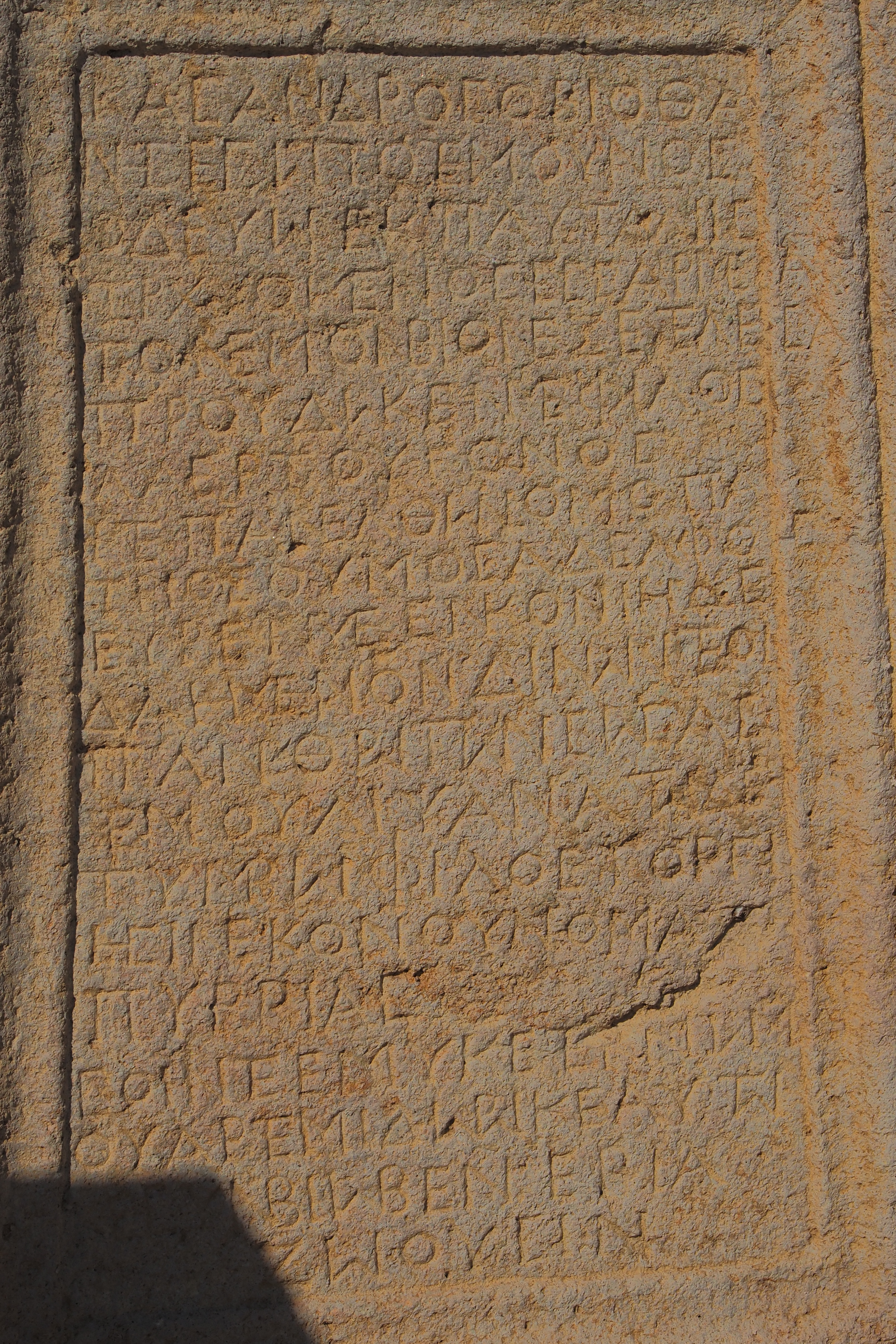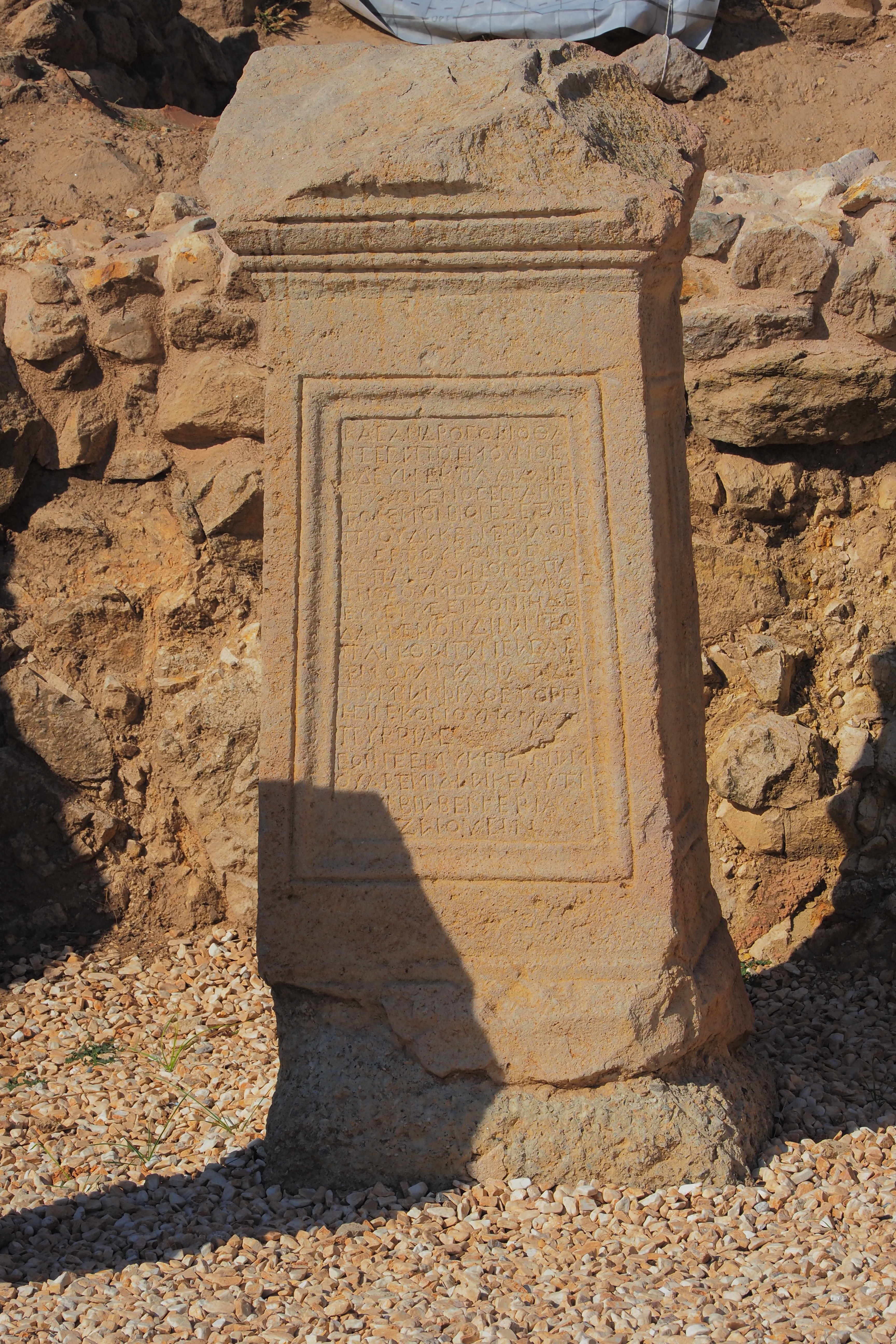 遺跡西側の墓地から発見された碑文で 古代ギリシア文字が彫られている。