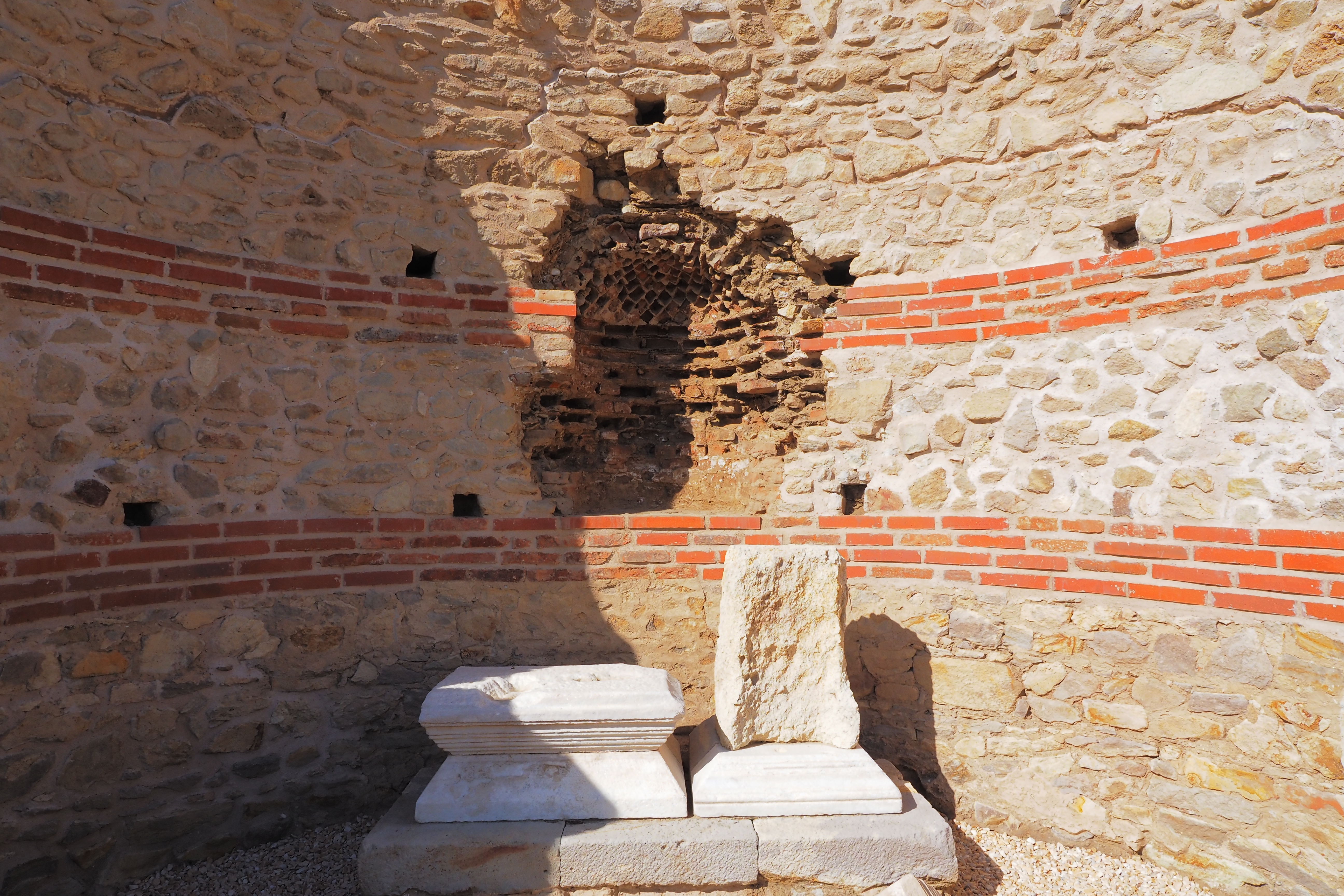 紀元前356~339年に古代マケドニア人の入植地として建設された都市で、その時の政者はかの有名なアレキサンダー大王の父 フィリッポス2世だ。ローマ期の4世紀と5世紀 2度にわたる巨大な地震によって5~6世紀ごろには既に荒廃していたという。