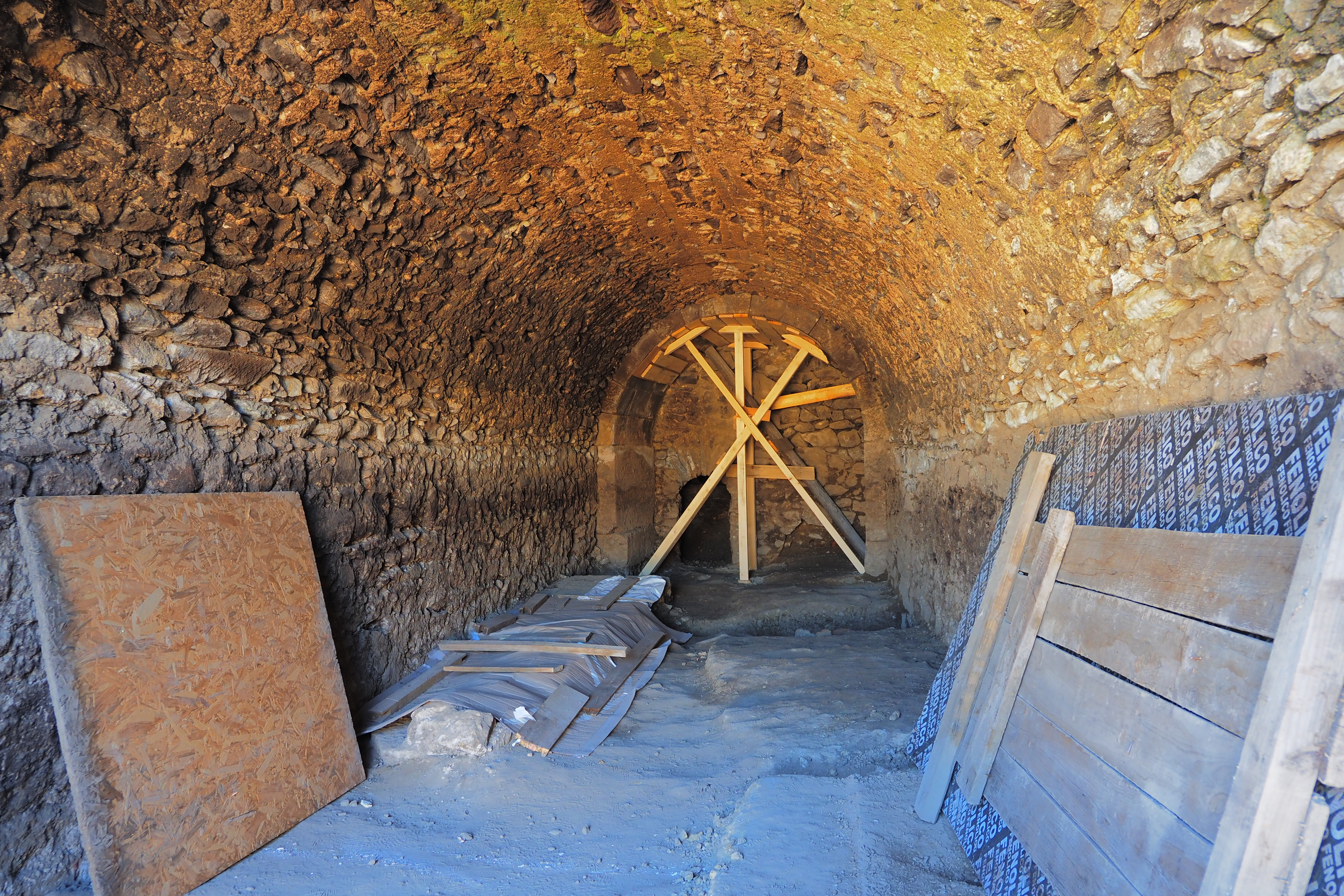 実はちょうどここから 2024年7月(管理人が訪れるわずか3カ月前)に古代ギリシア神ヘルメスの像が発見されて 今はペトリチ市歴史博物館に収蔵されている。当時キリスト教化が進む中で 異教とされつつあった古代の神を 必死でこの地下空間に隠したんじゃないかと考えられている。