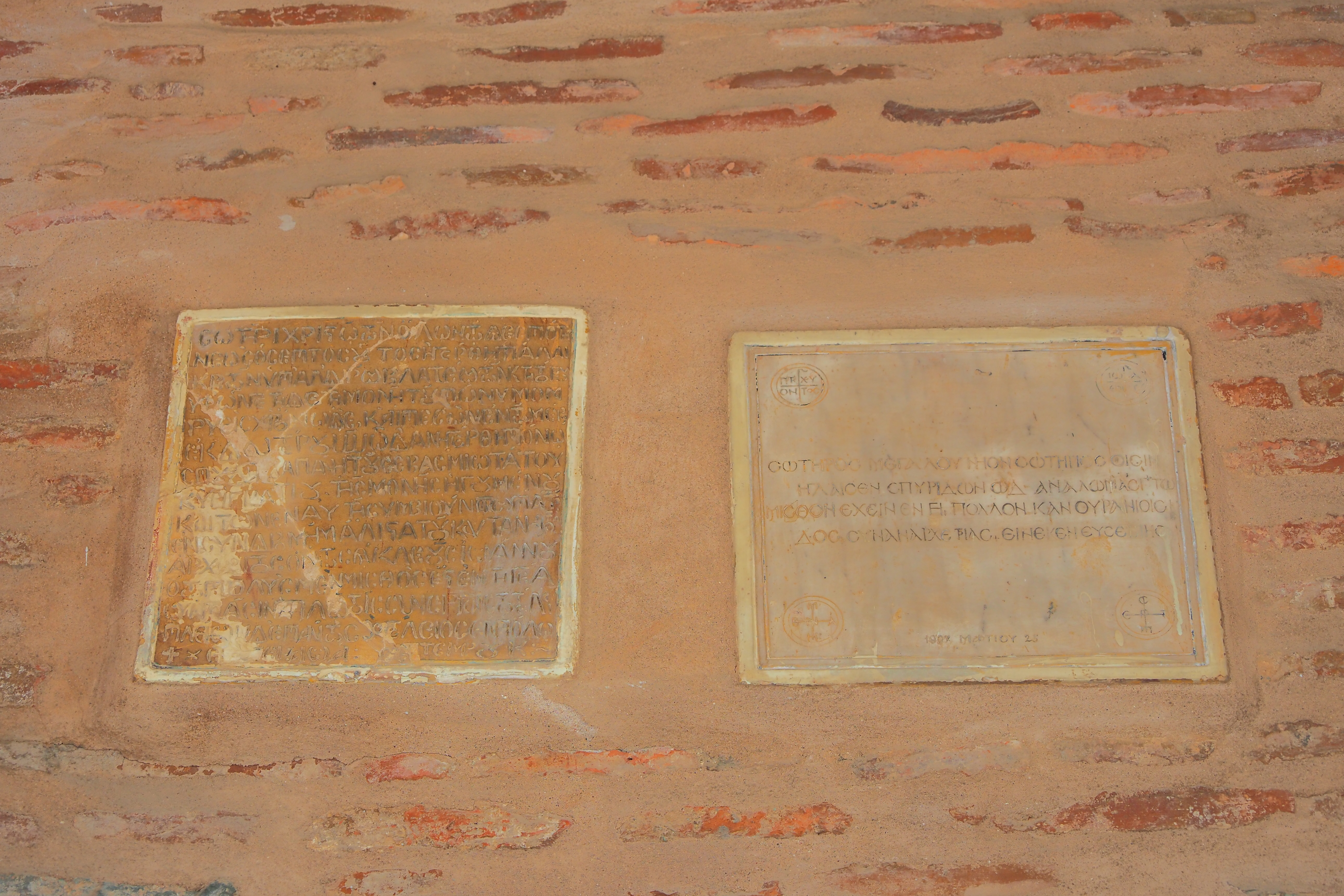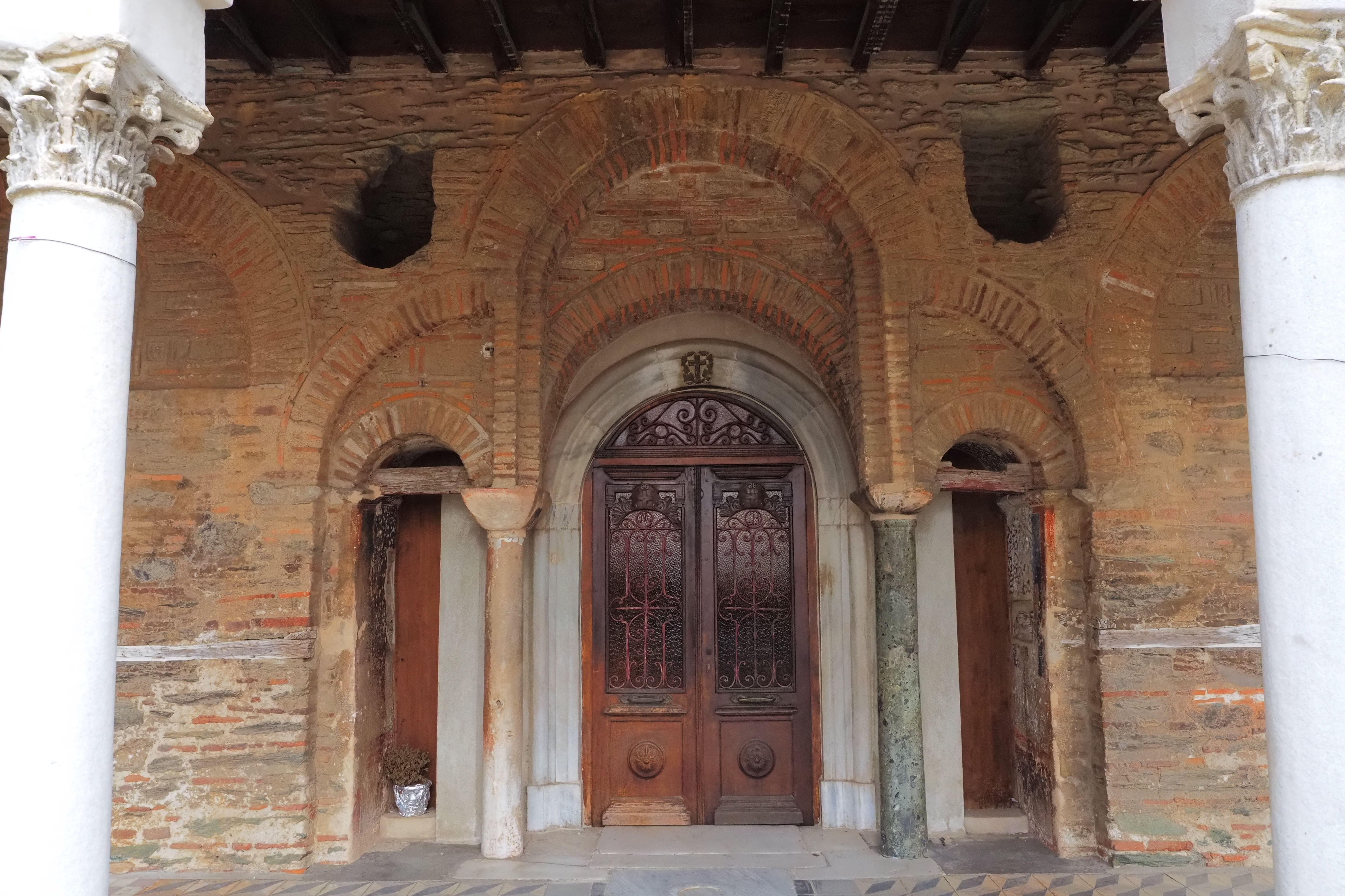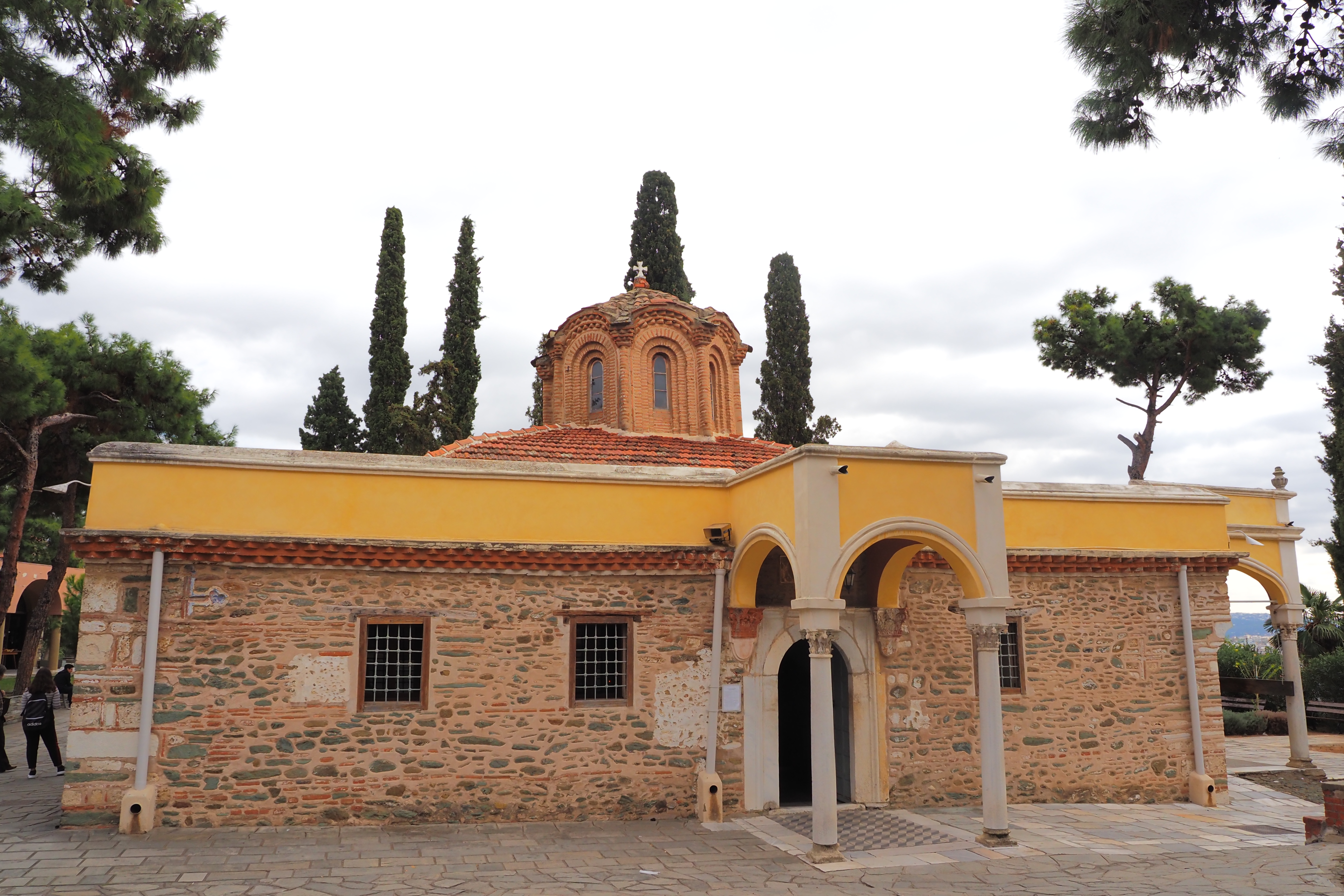 外壁のパステルイエローがちょっと気になったけど、実は14世紀当時の構造が大部分残っている。スタウロペギオンという特殊性のためか、テッサロニキ陥落後もモスク化を免れてる。