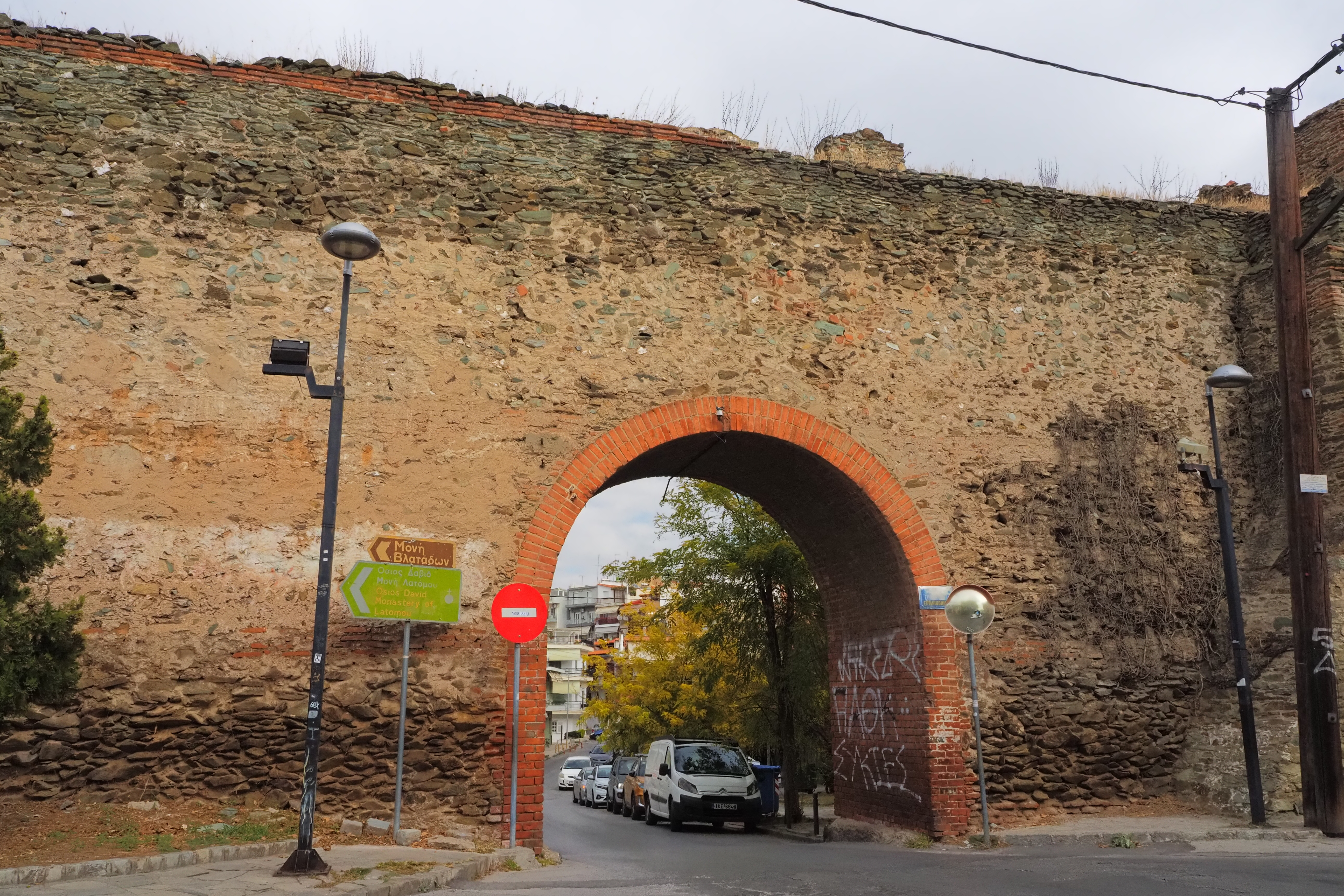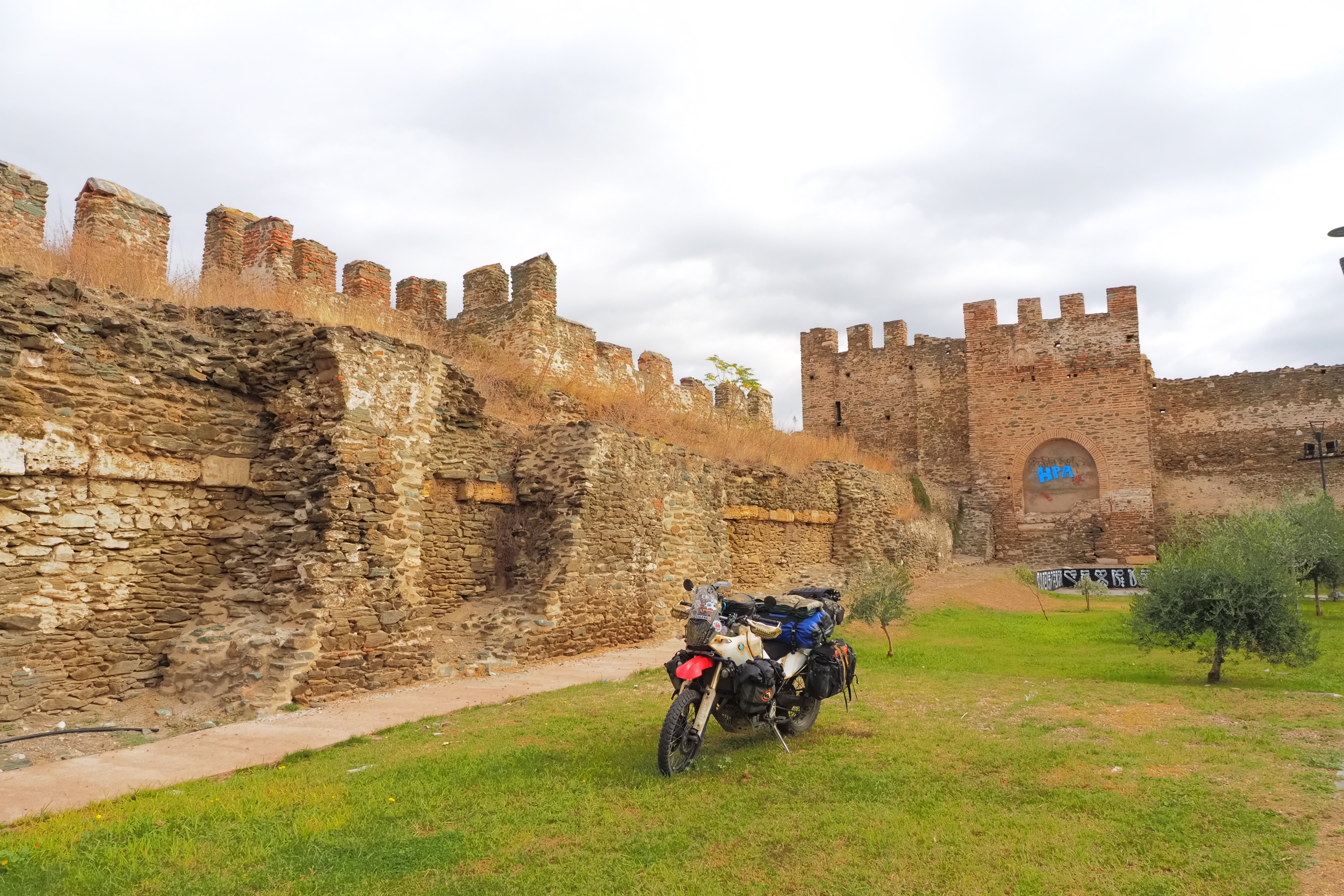 先述の通り、4世紀ごろのローマ期に基礎部分が築かれたテッサロニキの城壁は その後もビザンツ帝国時代 オスマン帝国時代と 支配者が変われど街の防衛ラインとして 増築・強化されながら使われ続ける。