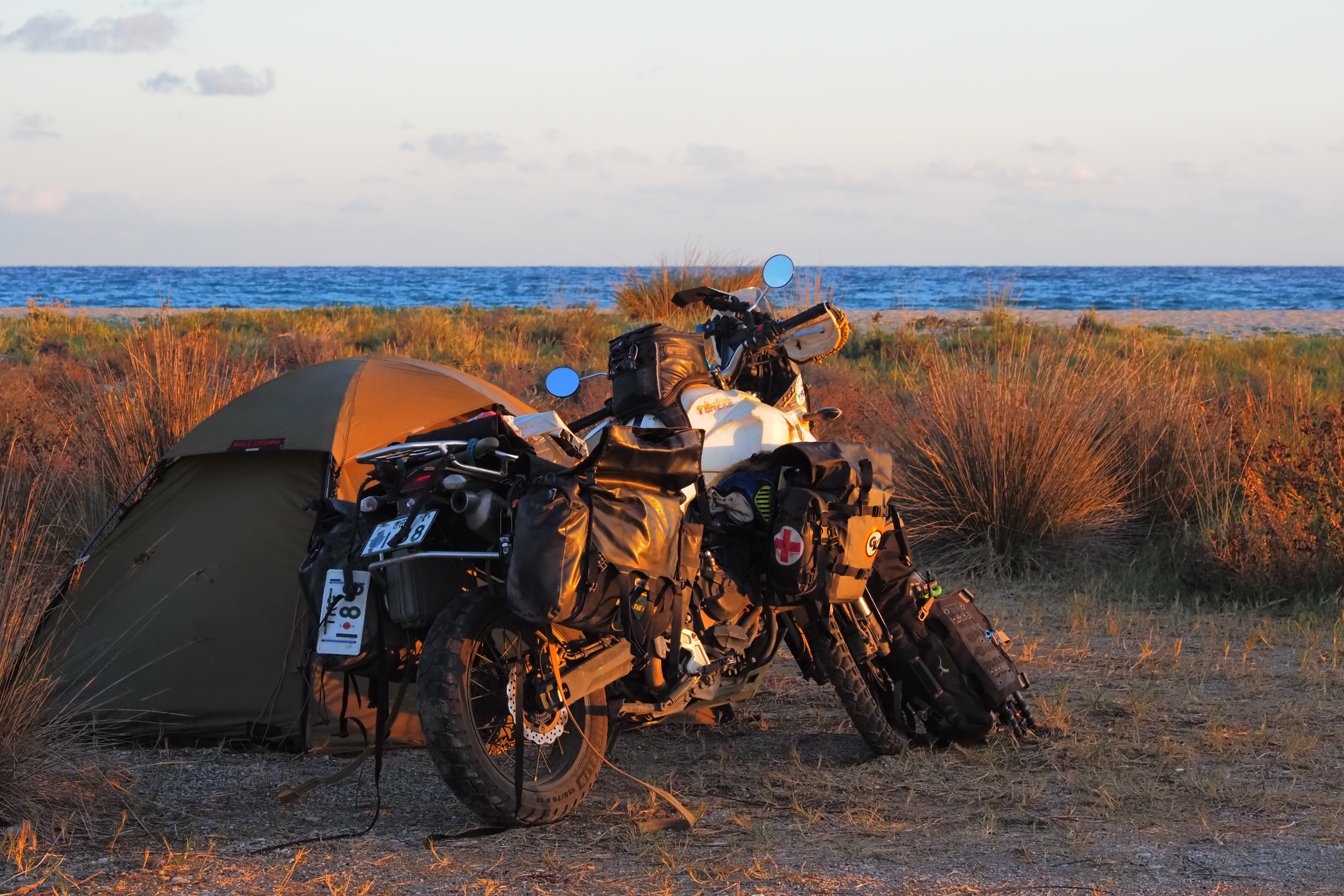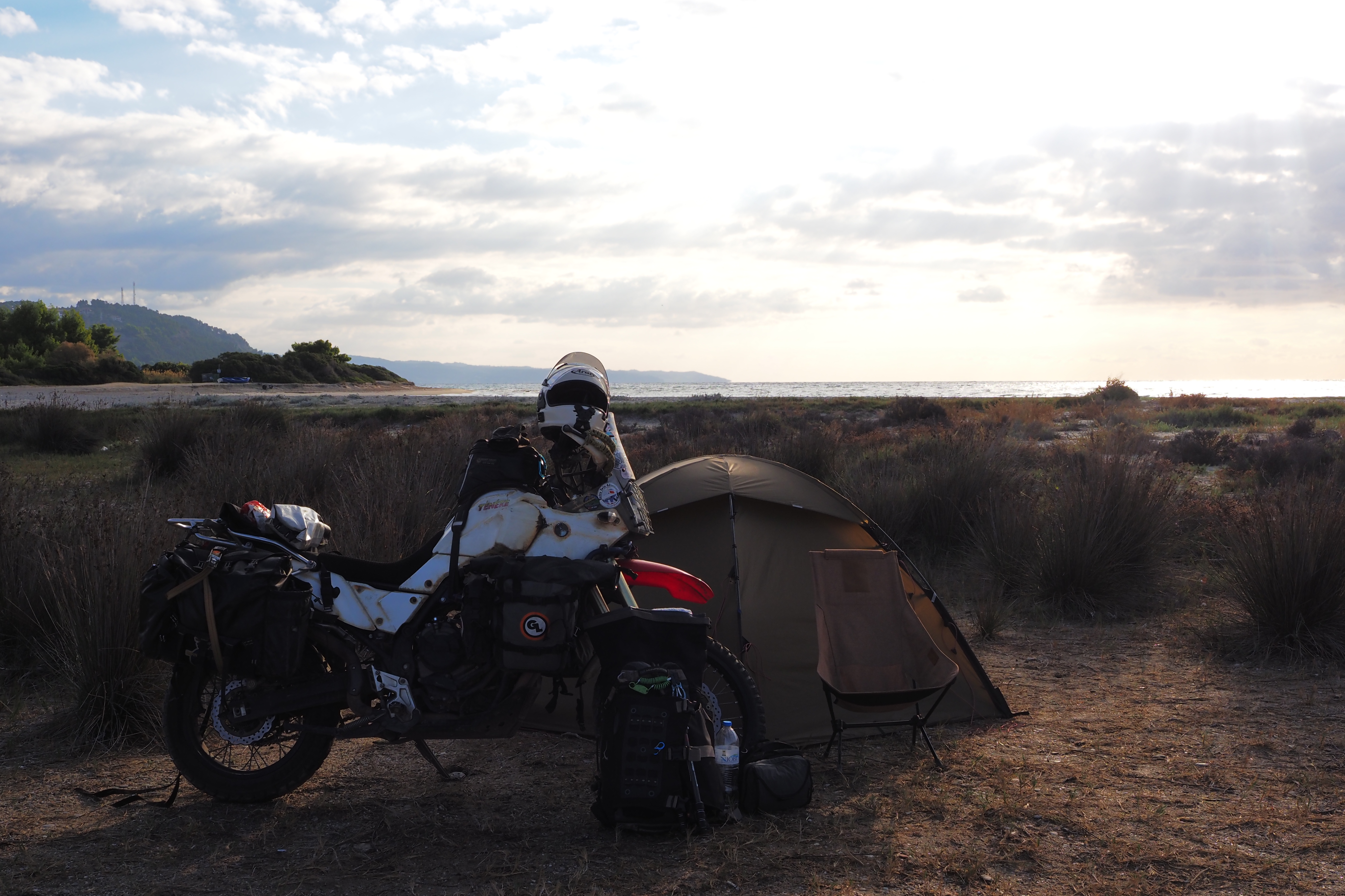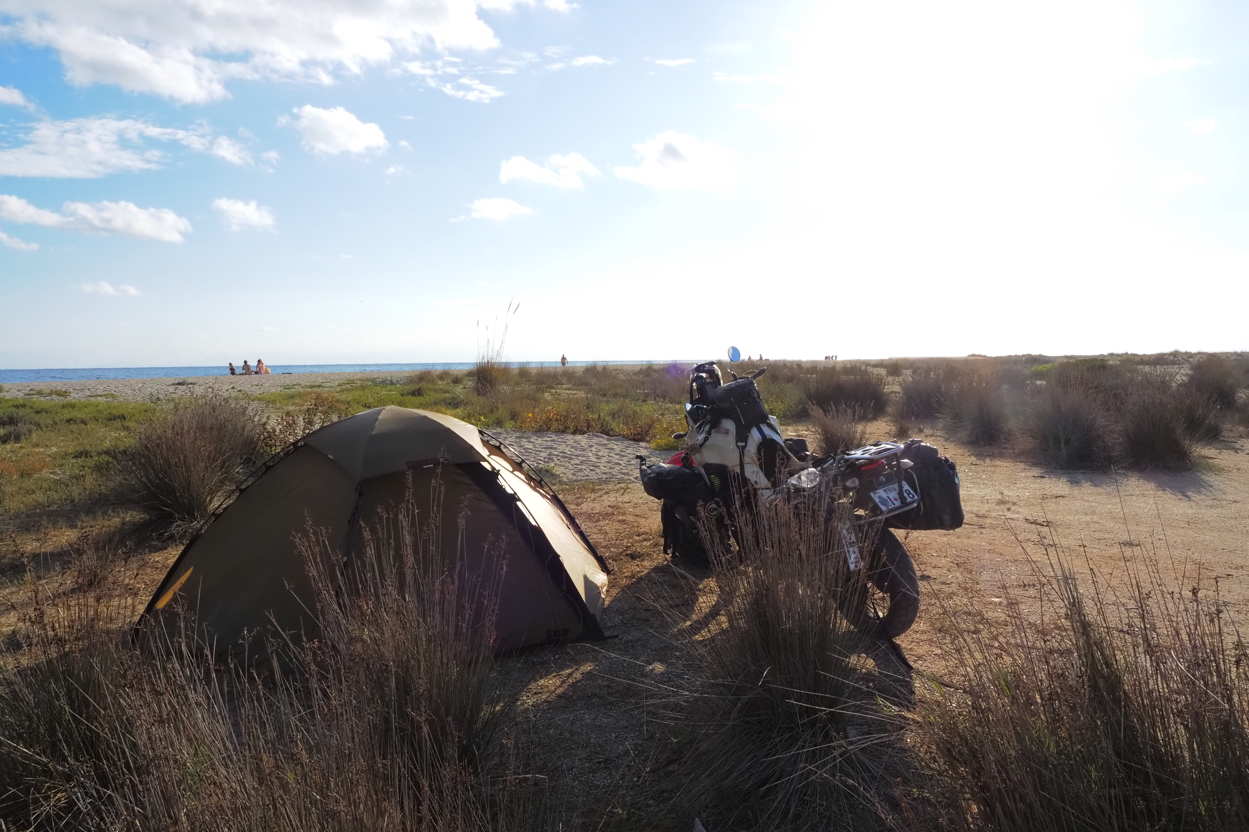 ロケーションが最高すぎるので、砂が深くなるぎりぎり手前の場所で野営決定。