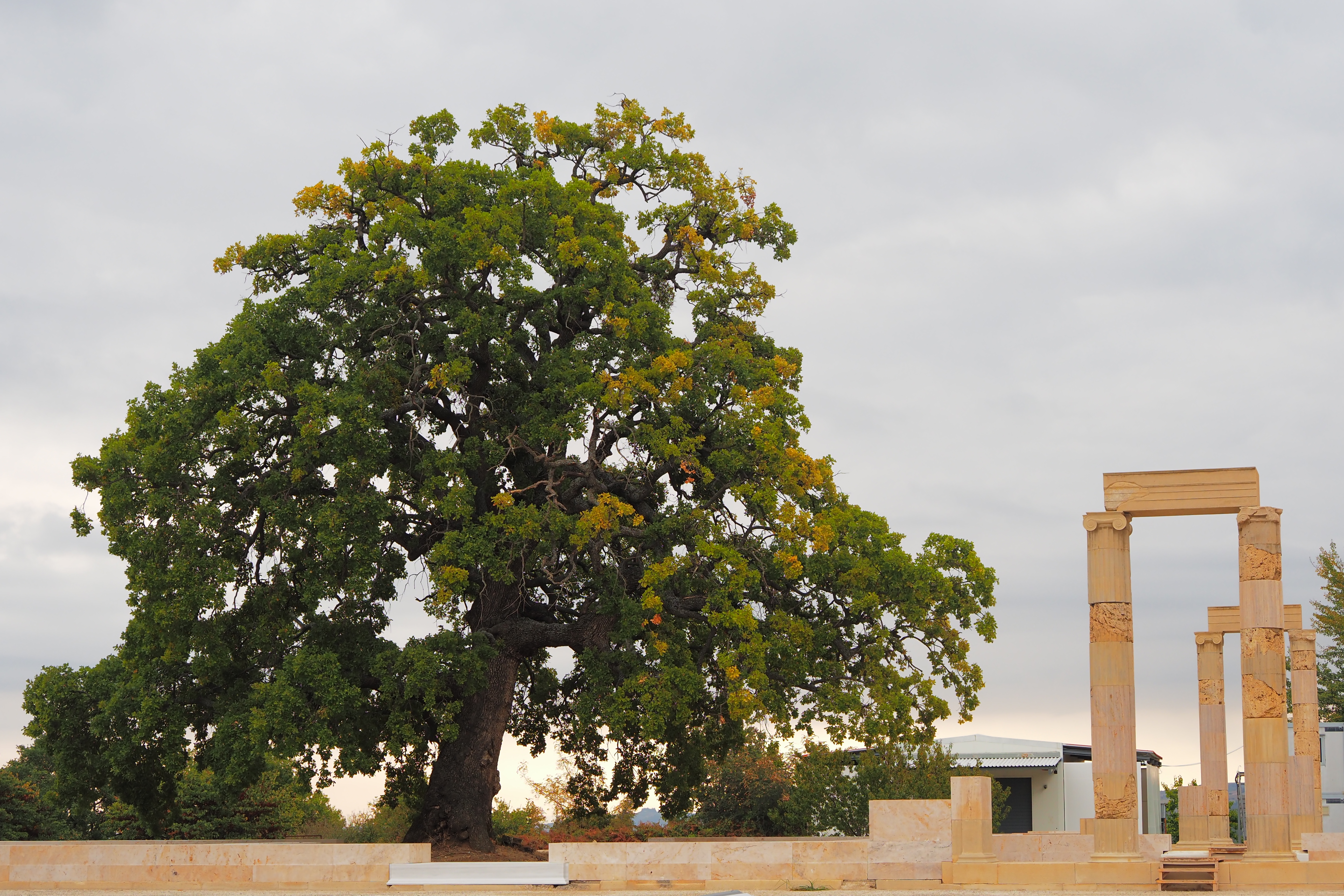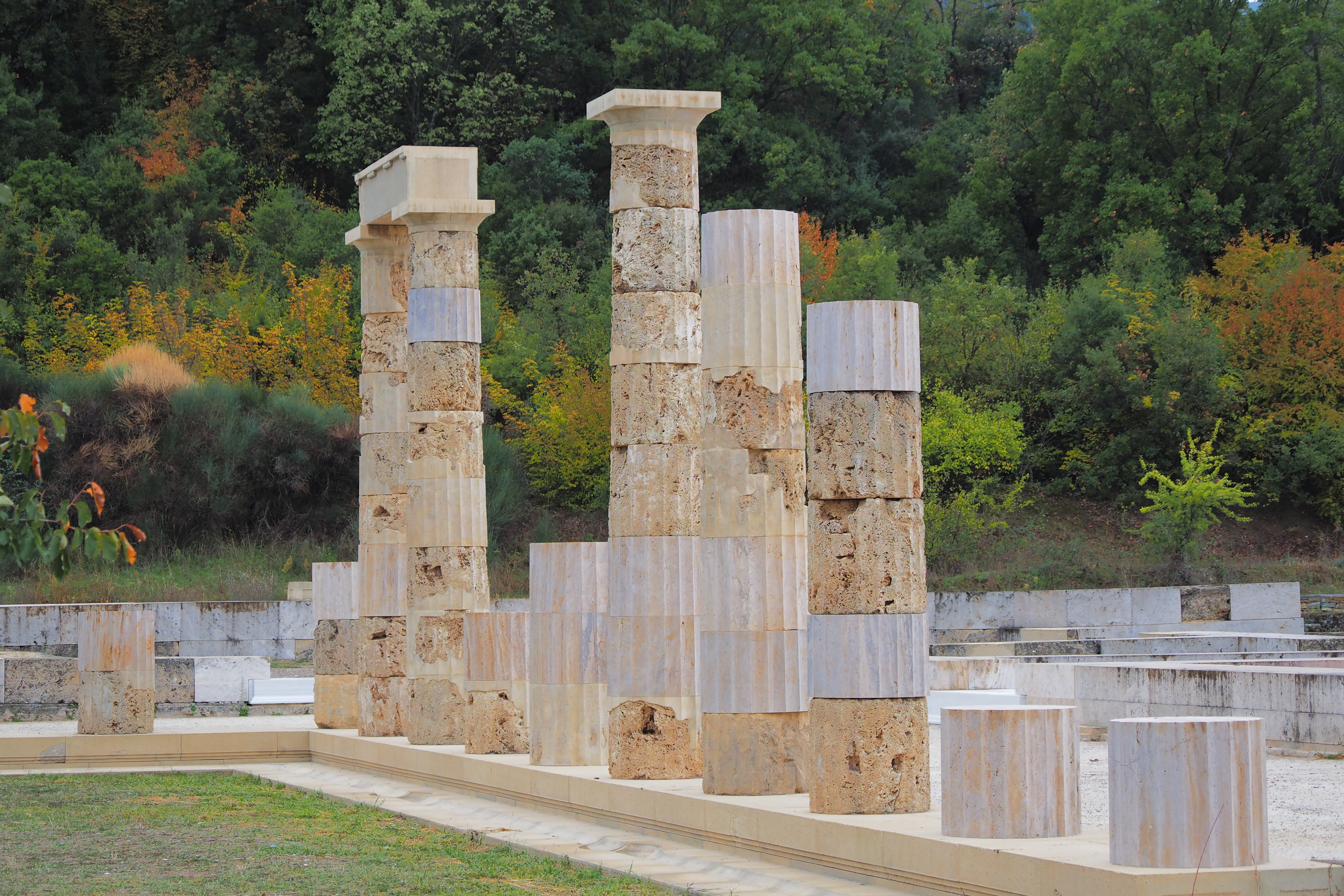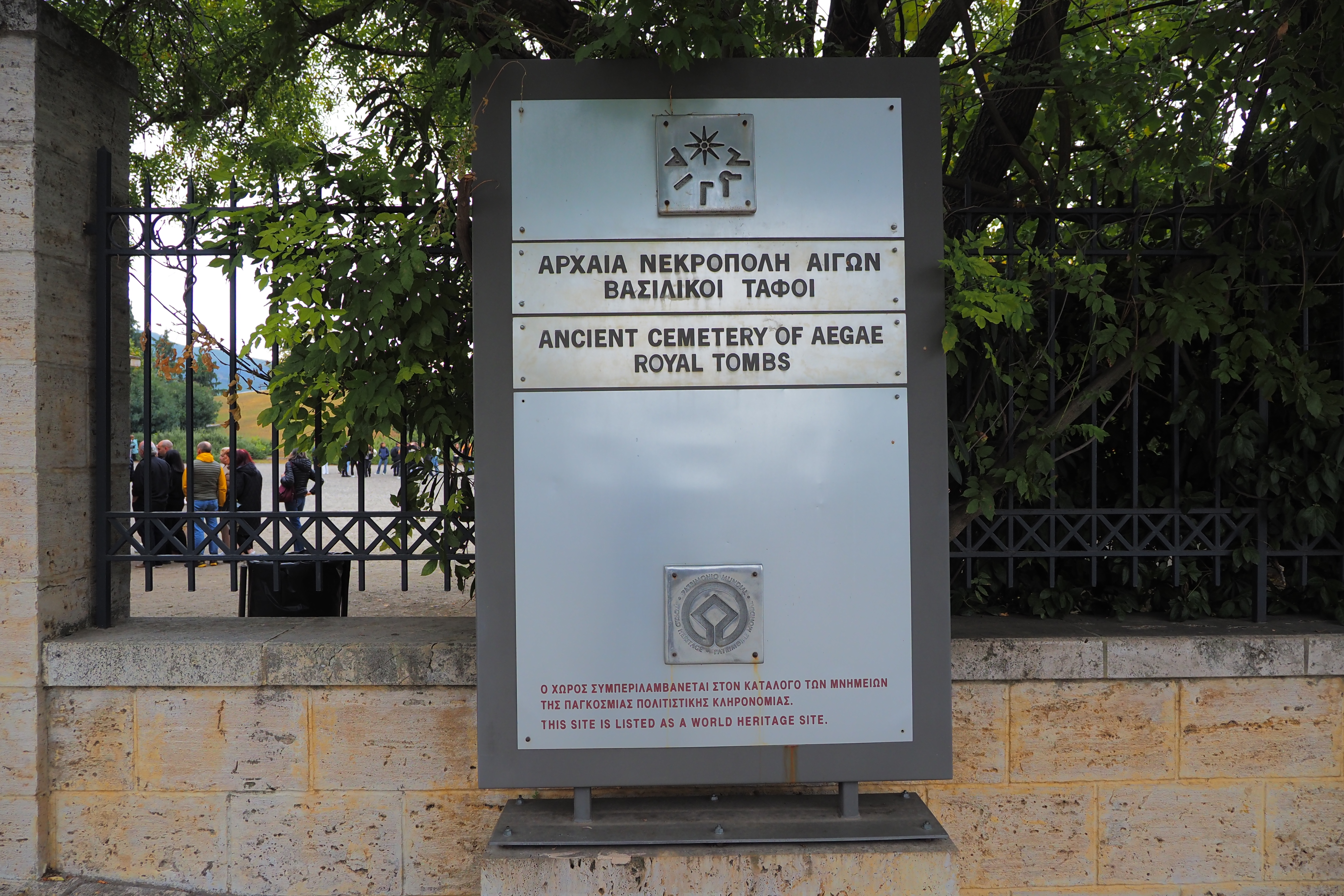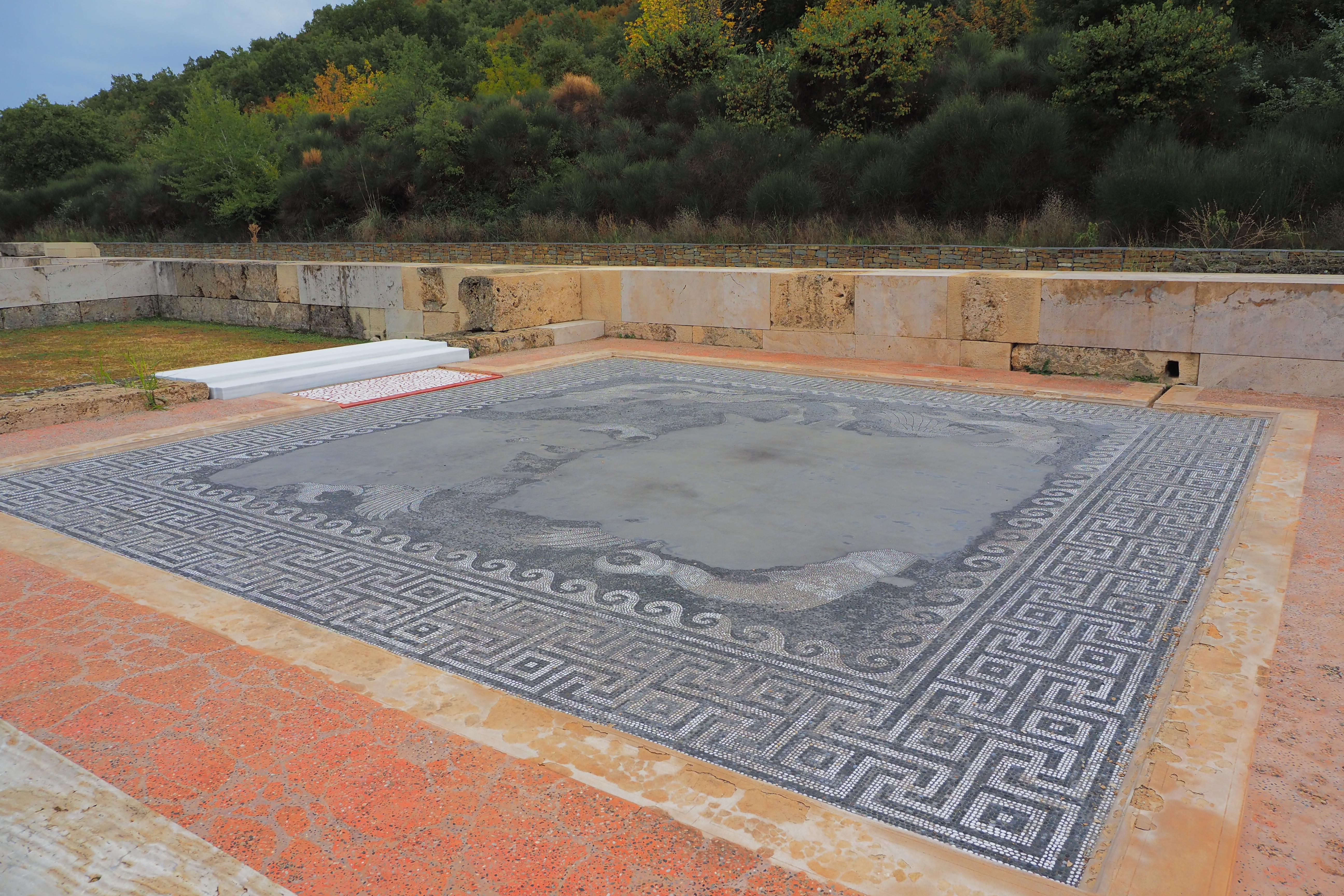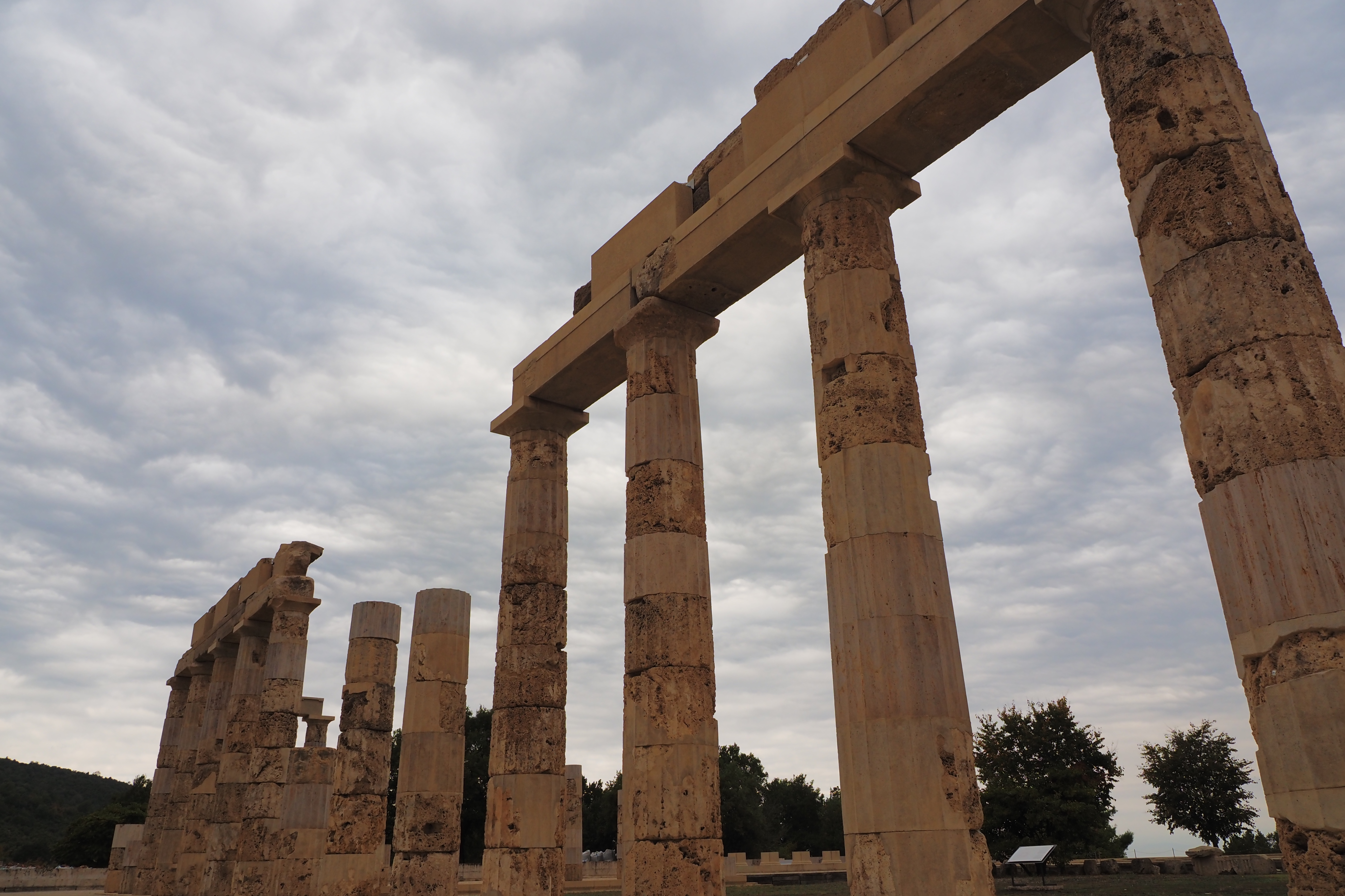 ドーリア式の列柱ペリスタイルに囲まれた広大な中庭が特徴的な遺構で、紀元前413年にPella; ペラに遷都されるまで古代マケドニア王国の首都だった場所だ。遺跡自体はかなり地味だけど、ここにかつて建っていたアイガイ宮殿は、あの有名なアテネのパルテノン神殿などと並んで古代ギリシア最大の建築物のひとつだったらしい。