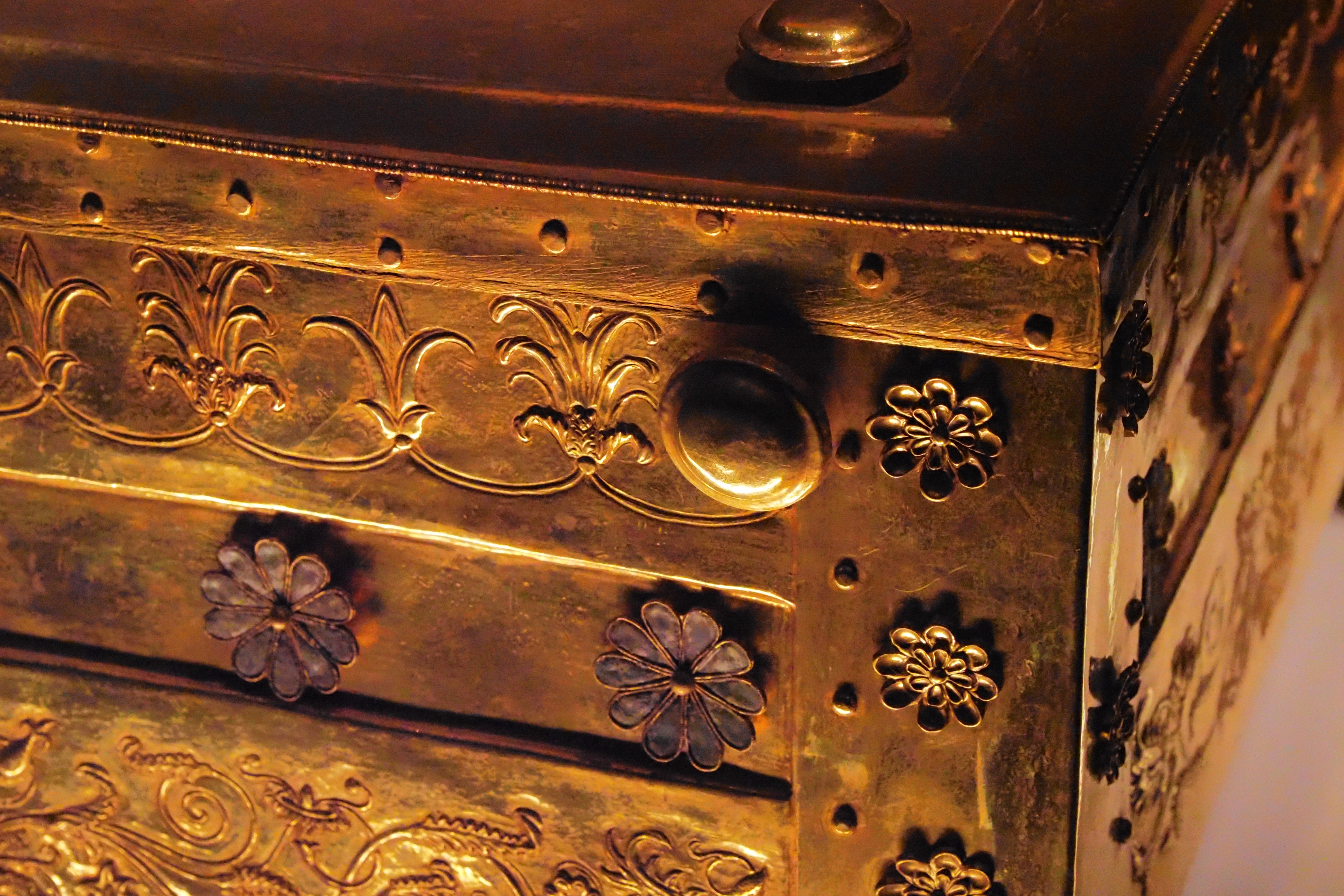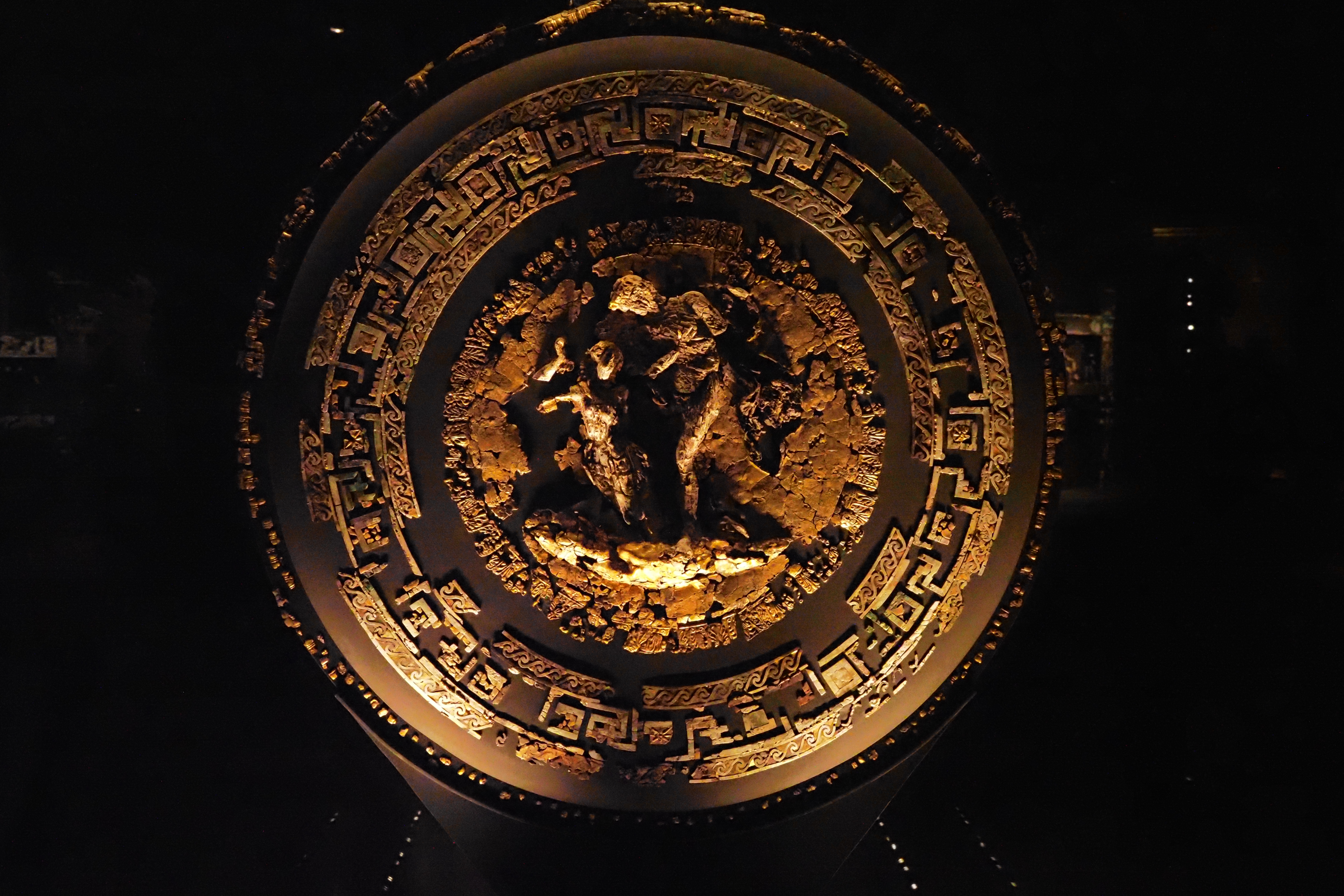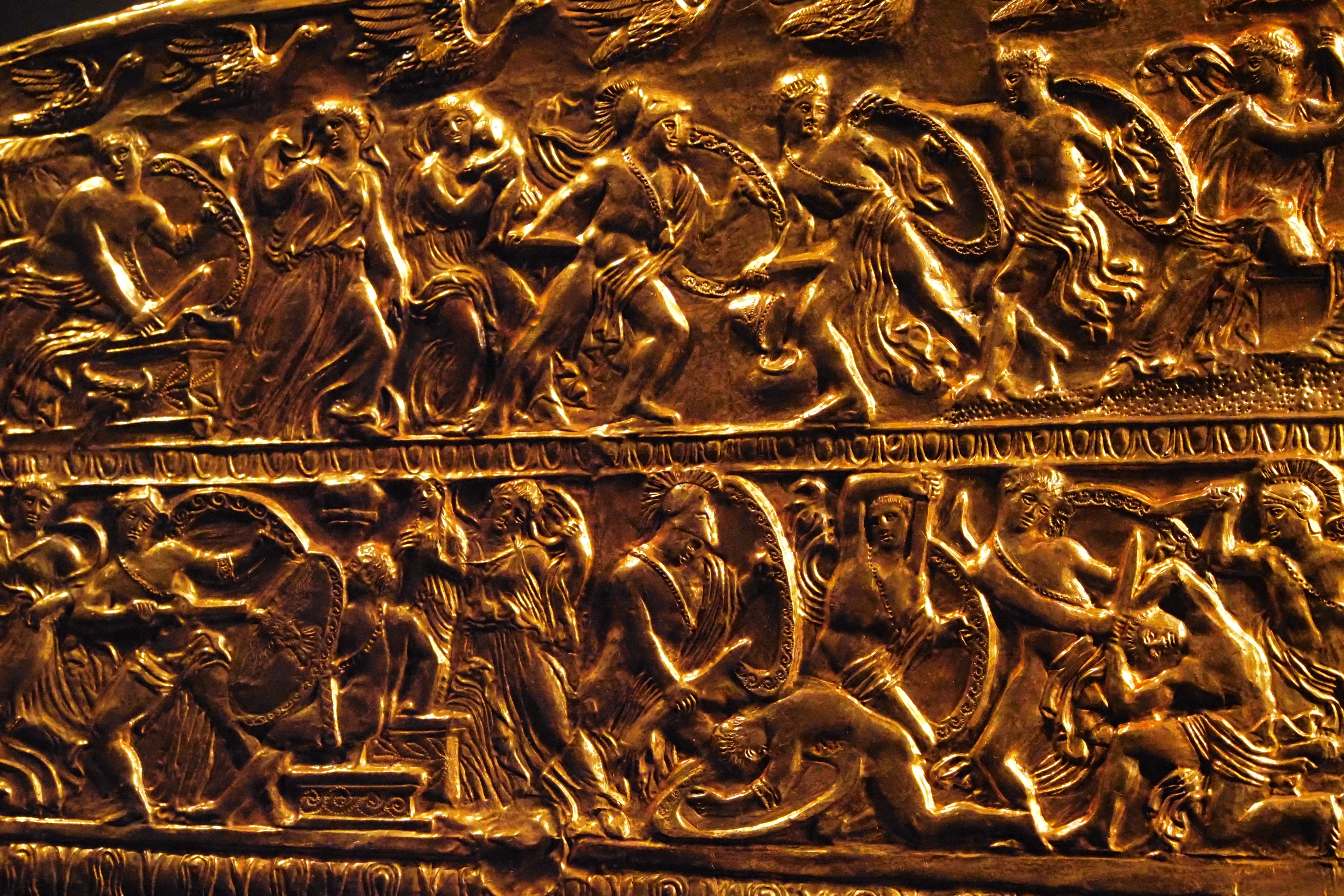 表面の精密な彫金はトロイ征服の様子らしい。