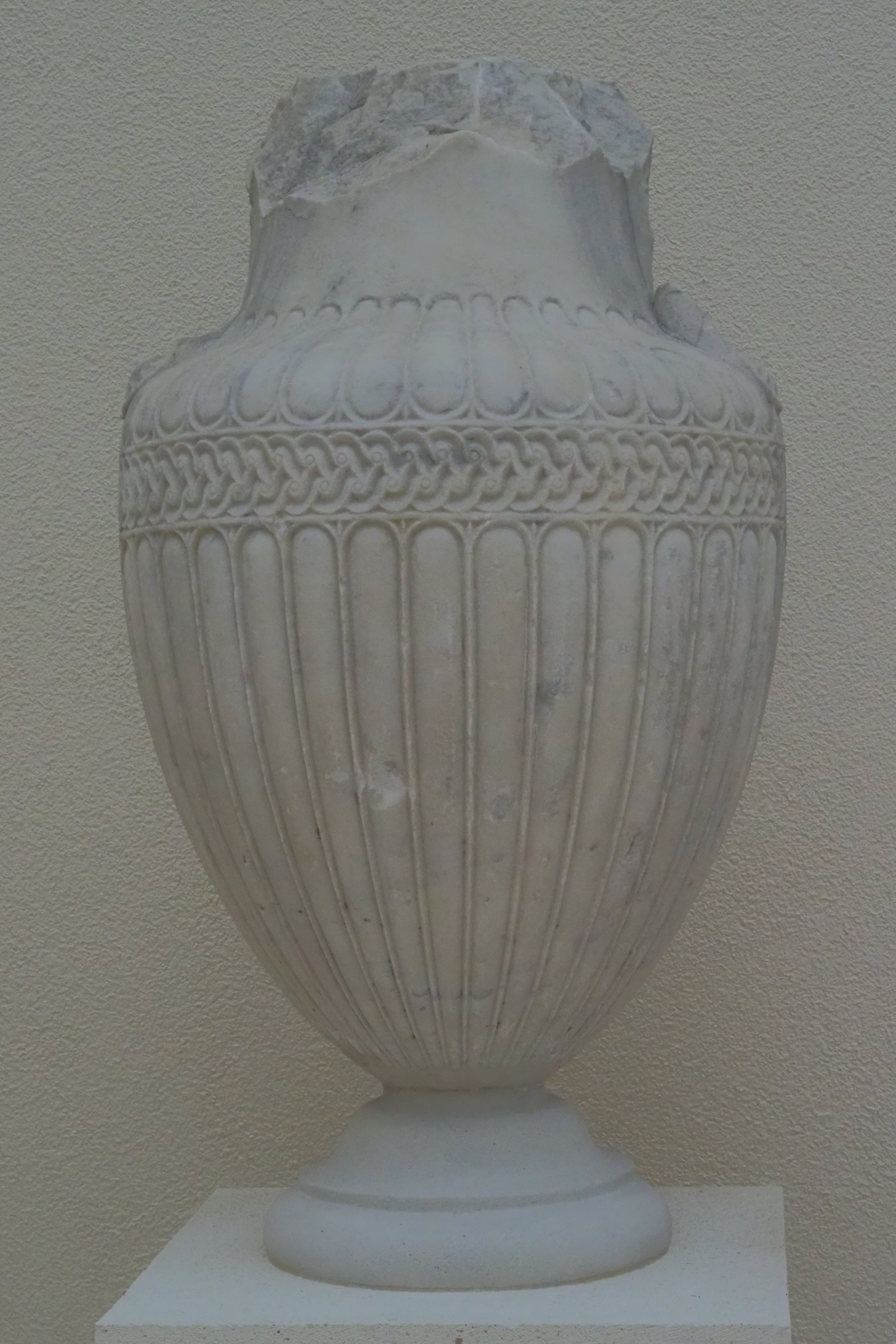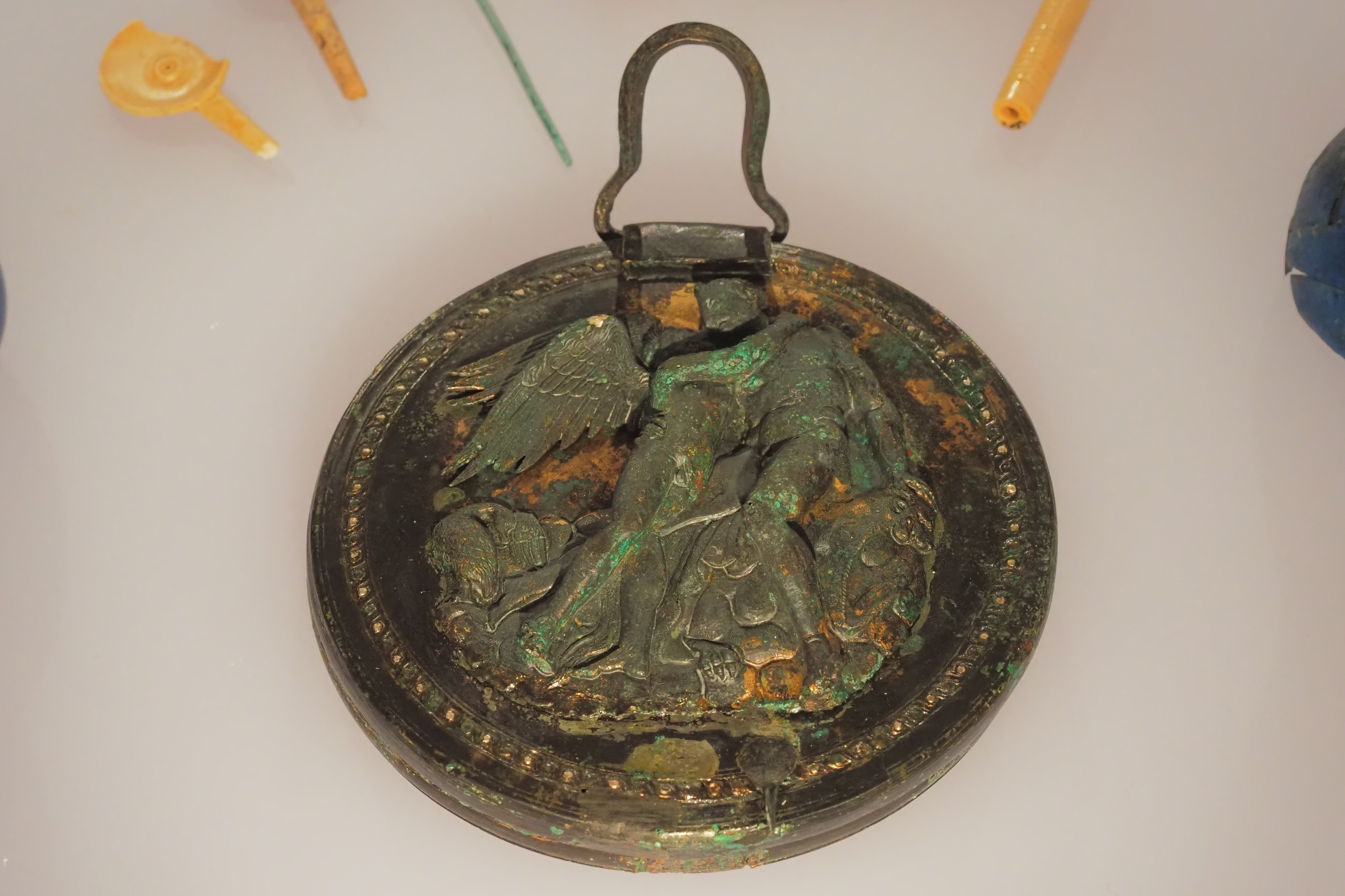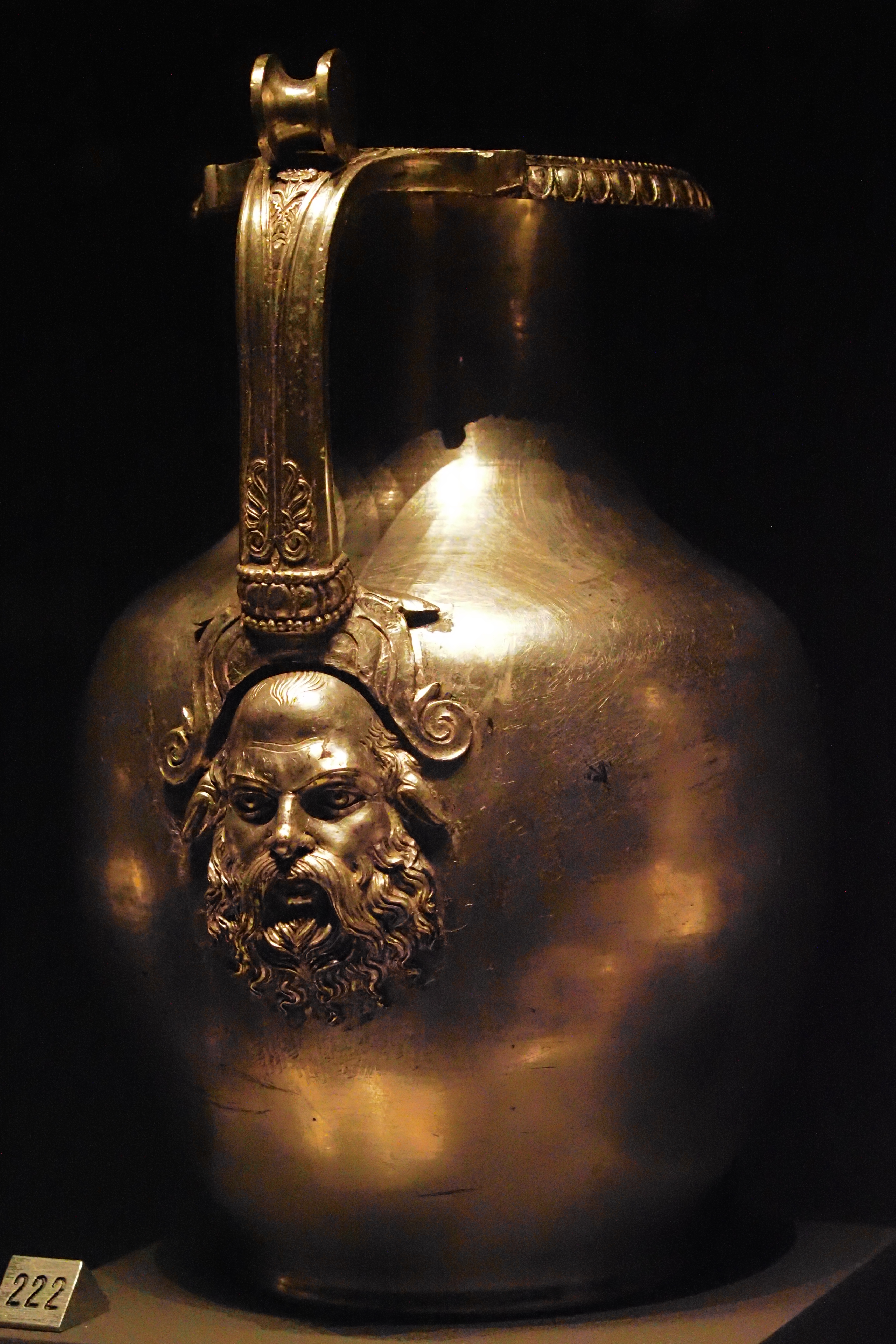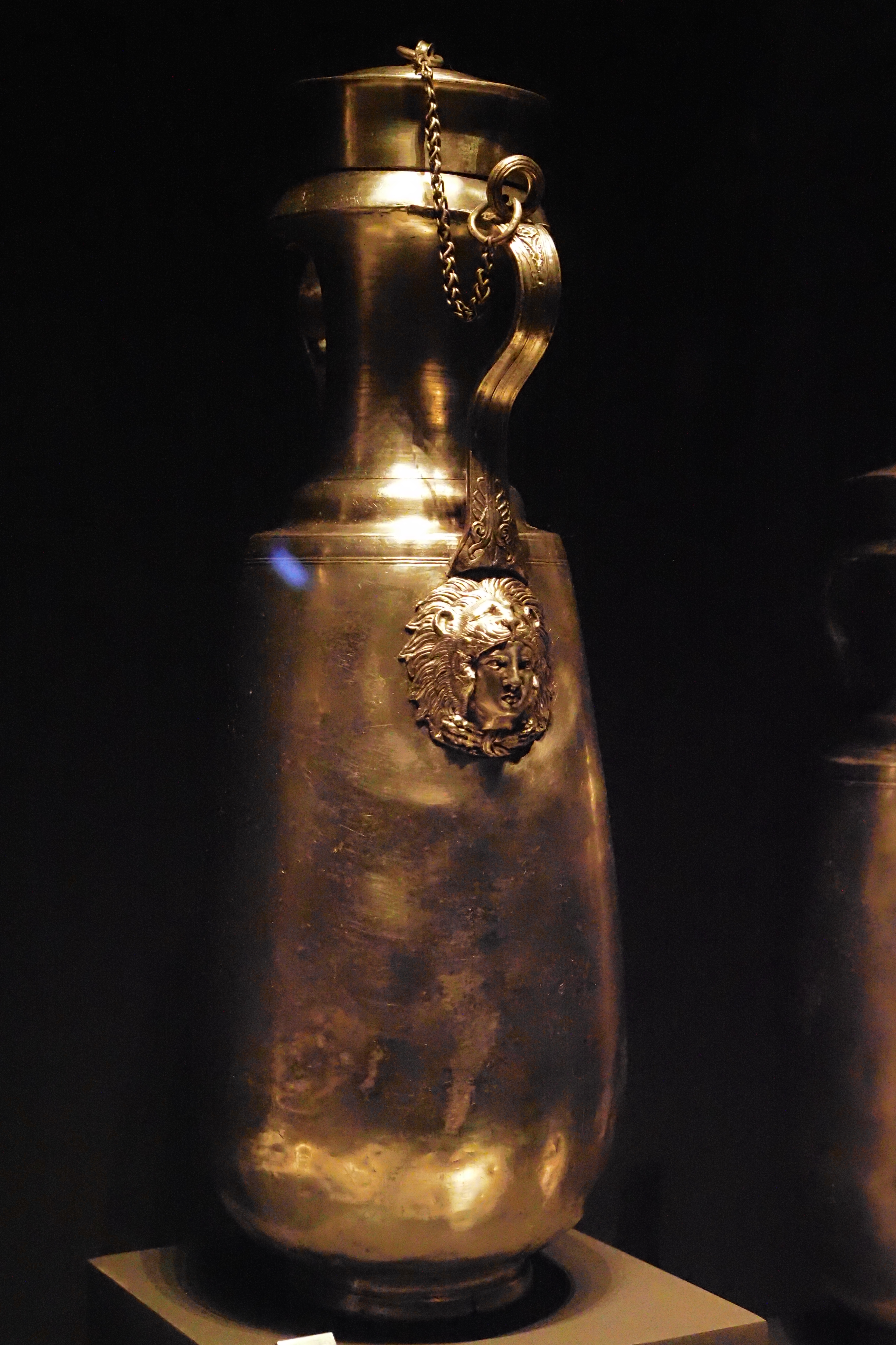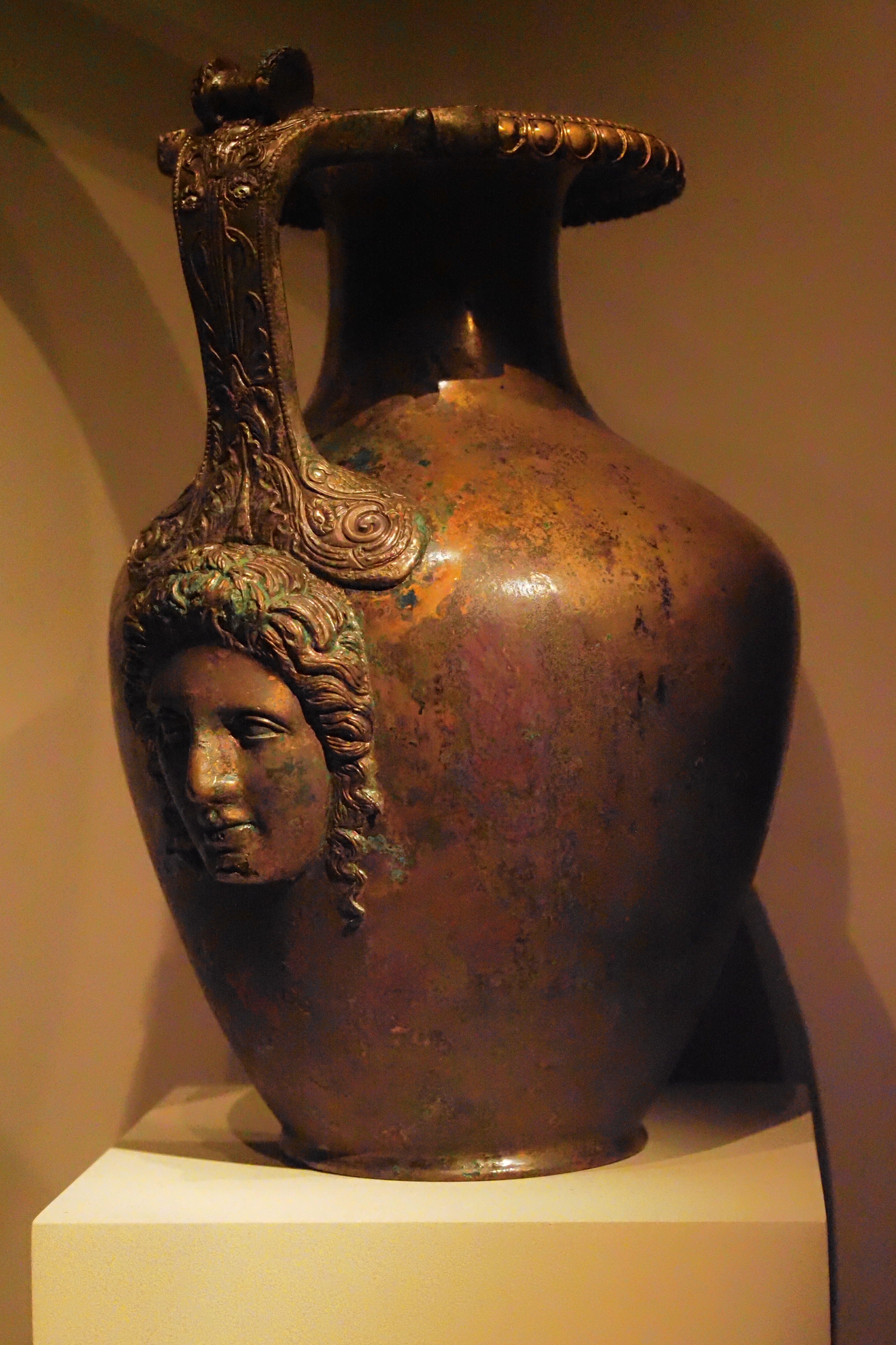 館内看板の説明によれば、これは遺体の洗浄のために使われた青銅製のHydria; ヒュドリア とよばれる水壺。