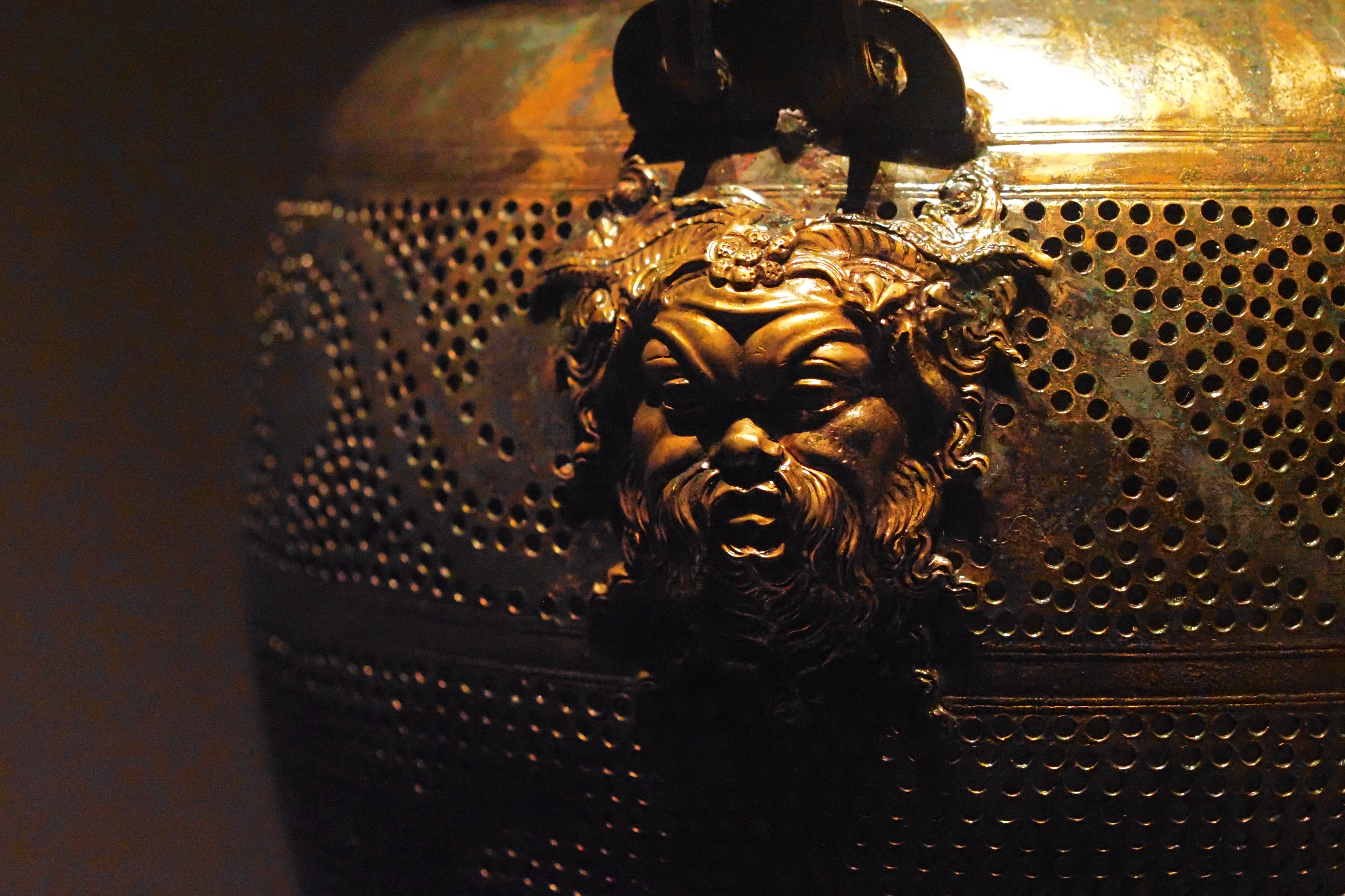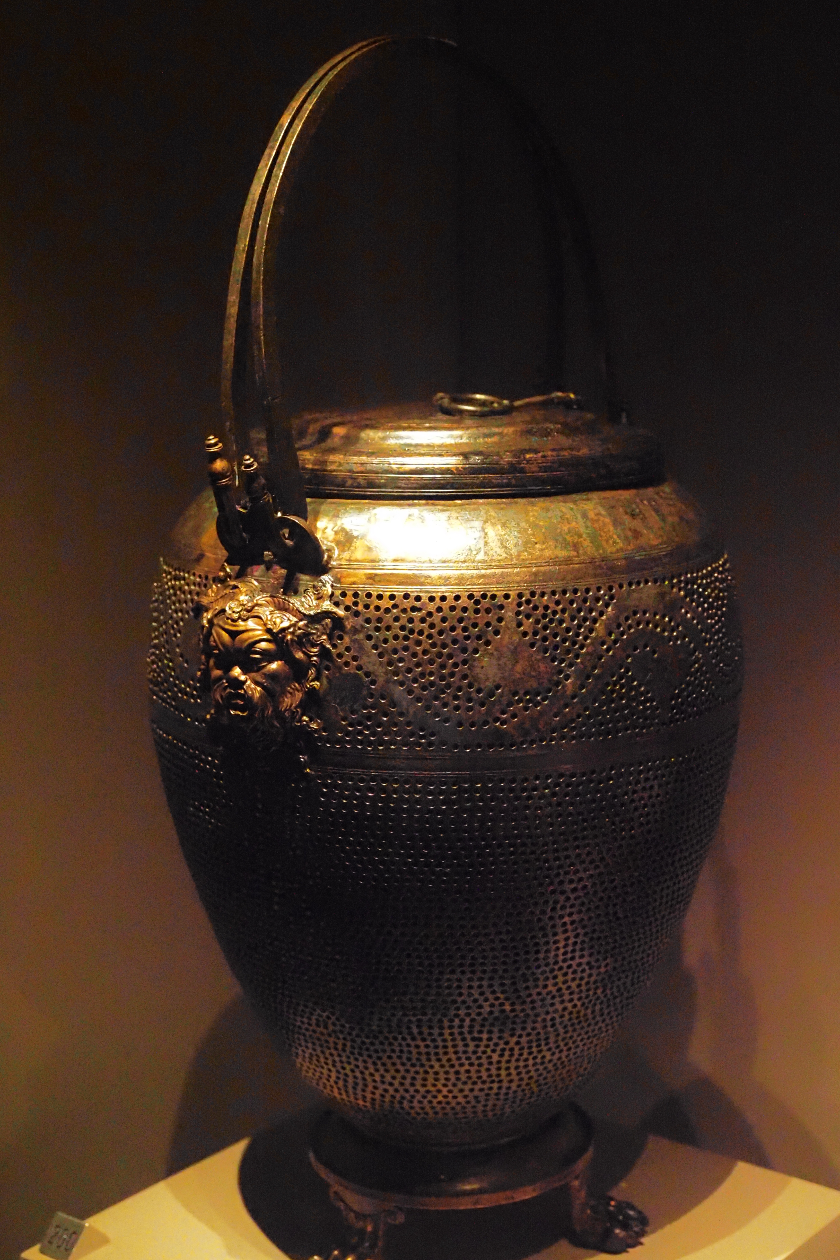 同じく青銅製のランタン。半獣の牧神 Pan; パン のレリーフが施されている。