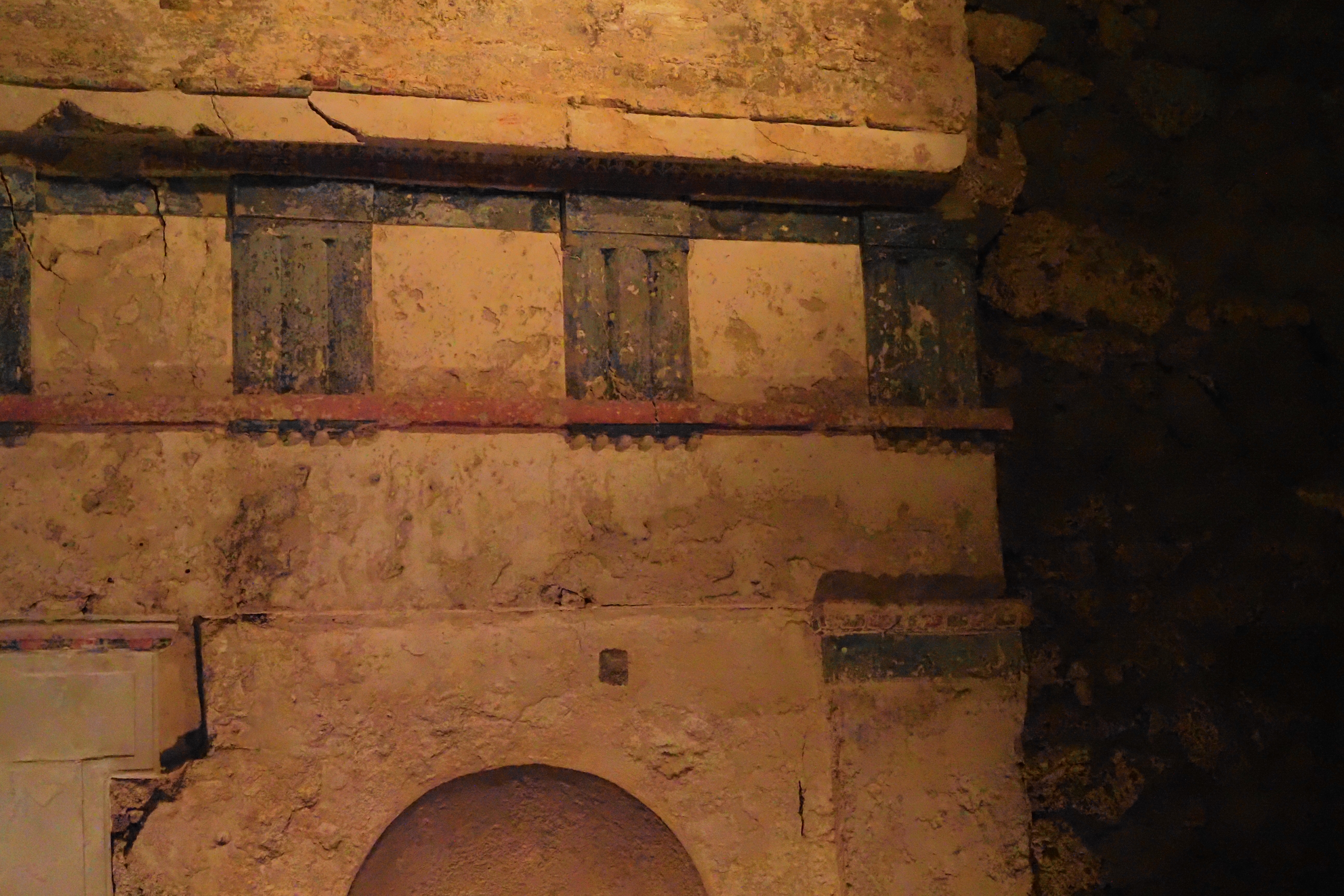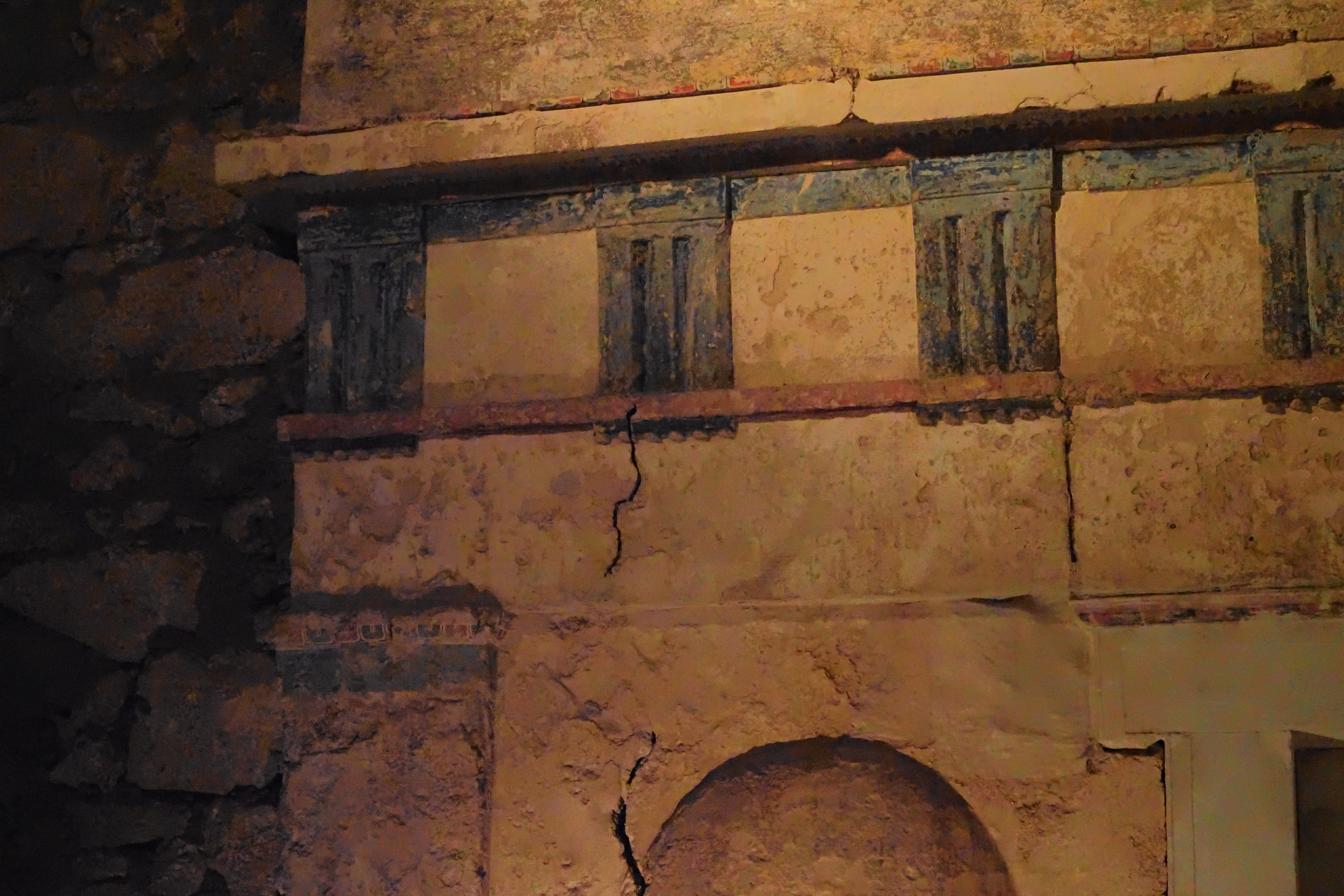 上段にはやっぱり壁画があったようだけど、ほとんど原画をうかがい知るのは難しい状態だった。