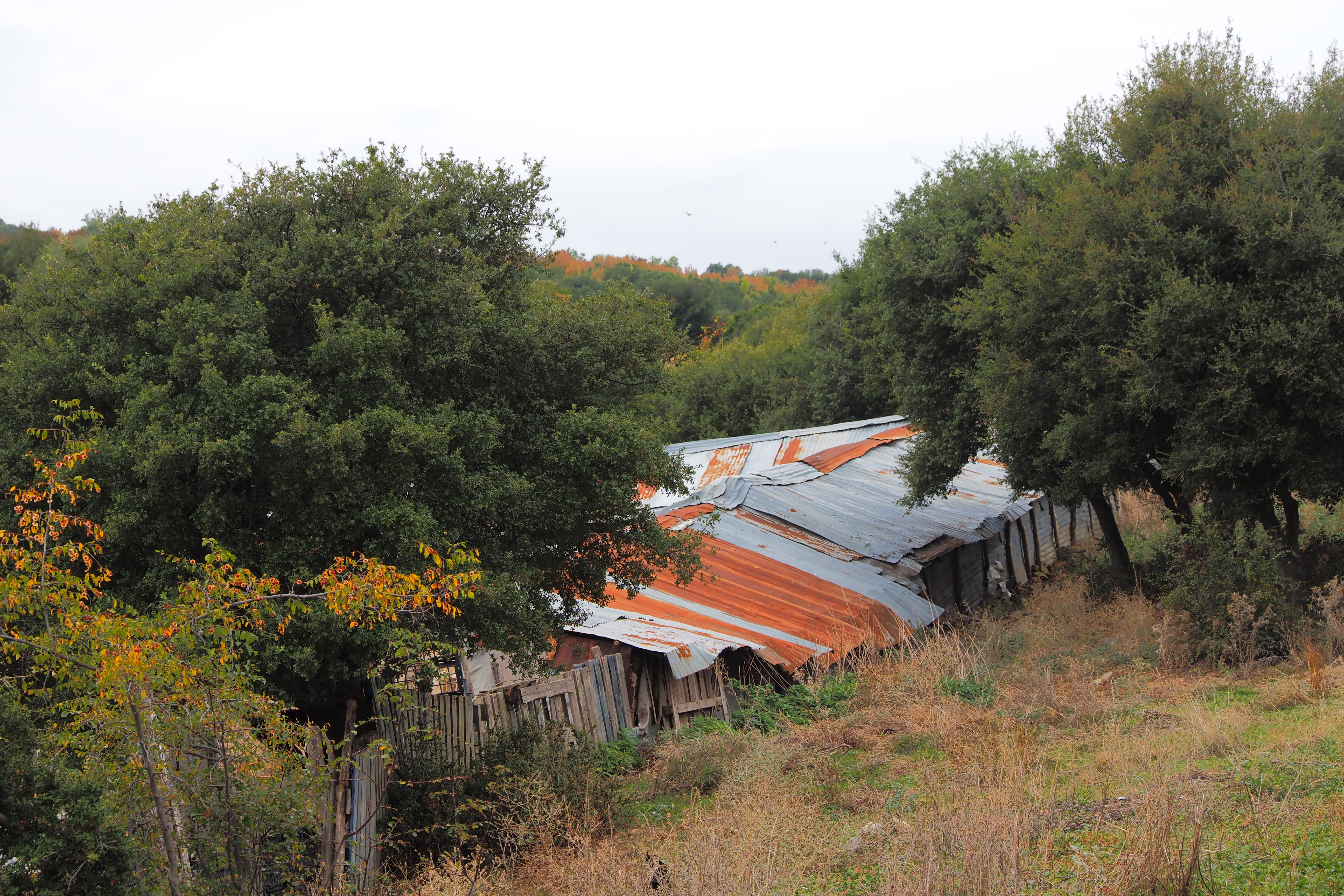 ふと悪臭がただよってきたと思ったら、トタン屋根のスラムのような集落があった。