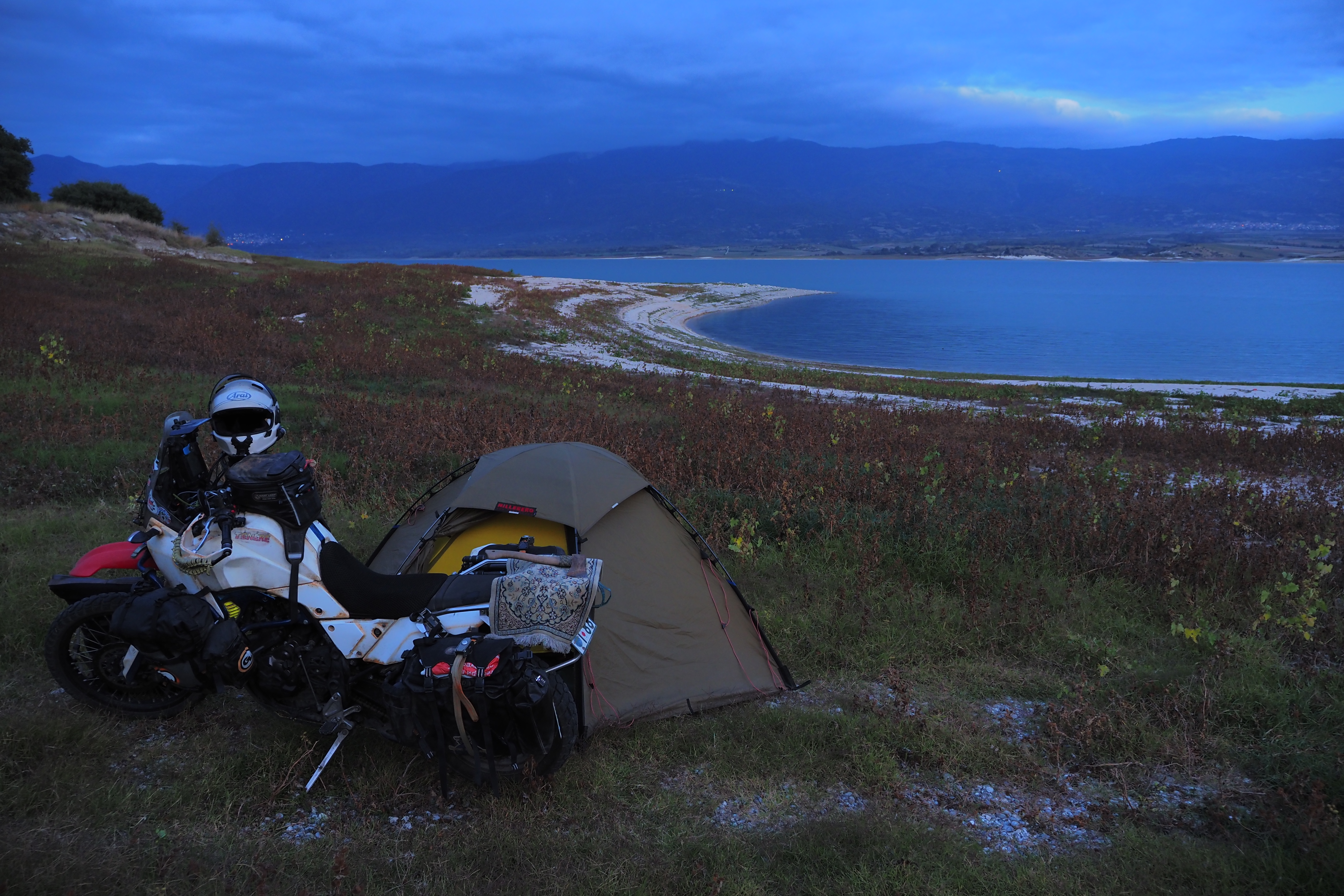 もうそろそろ暗くなるなぁというところで、おあつらえ向きに穏やかな湖を発見。