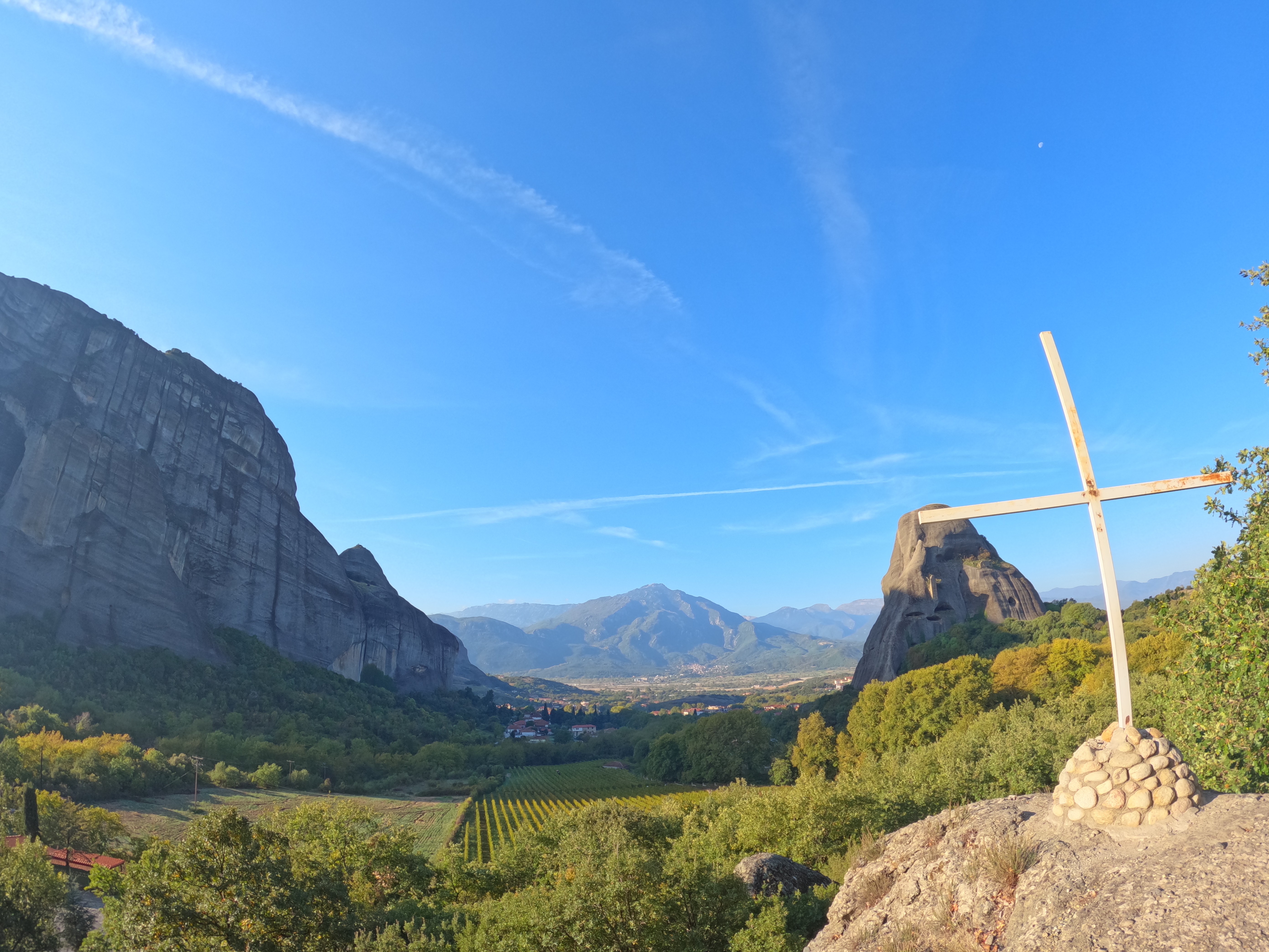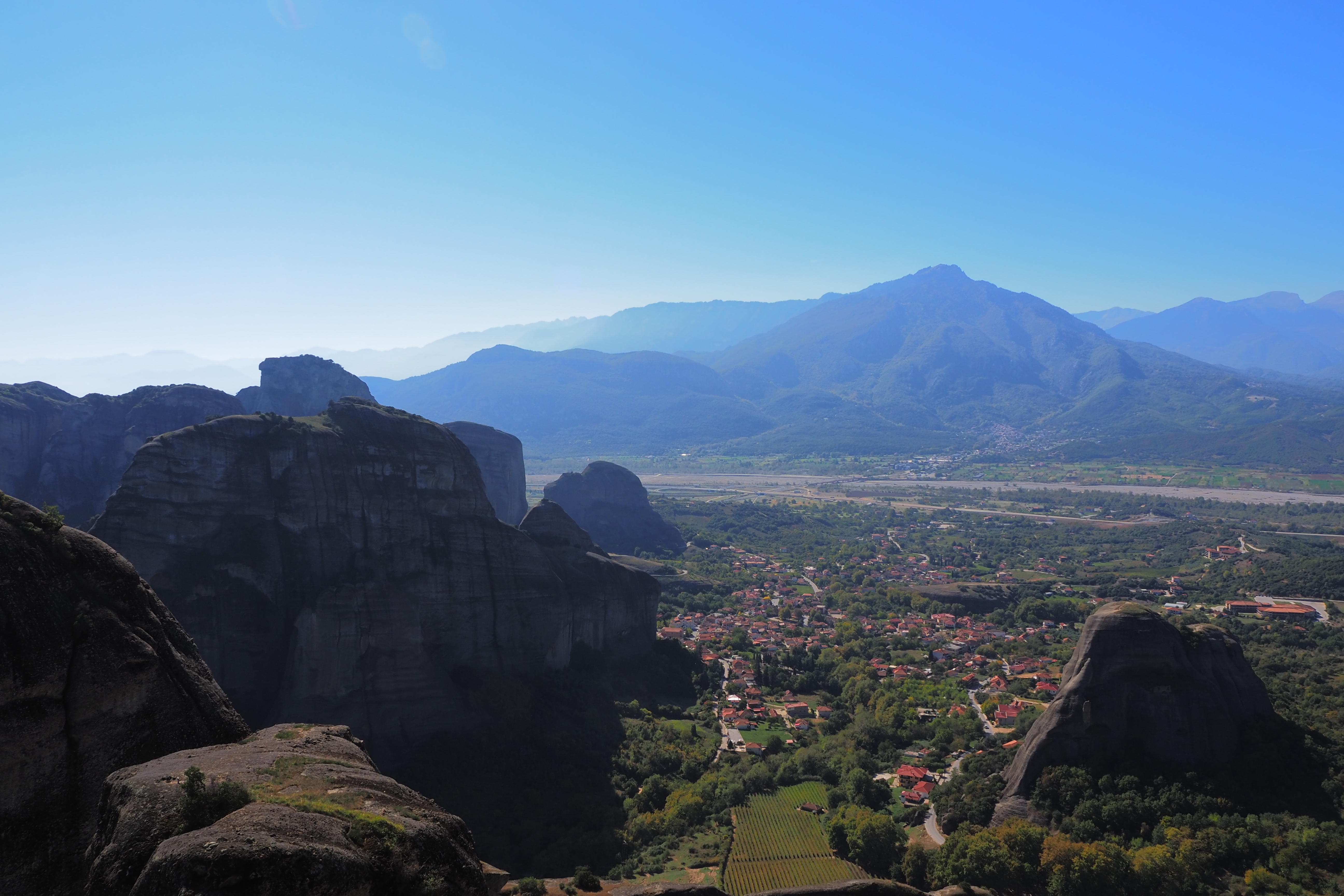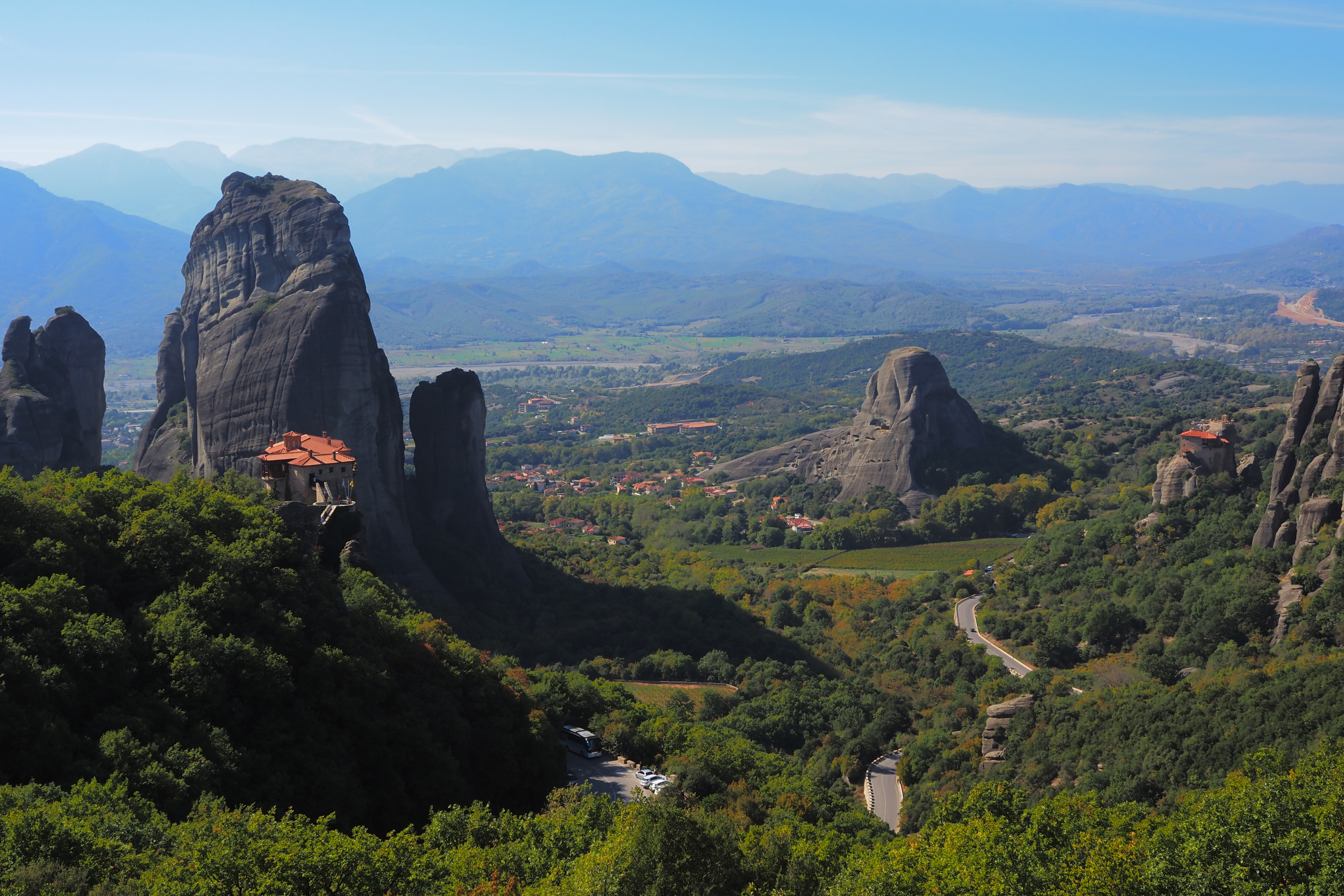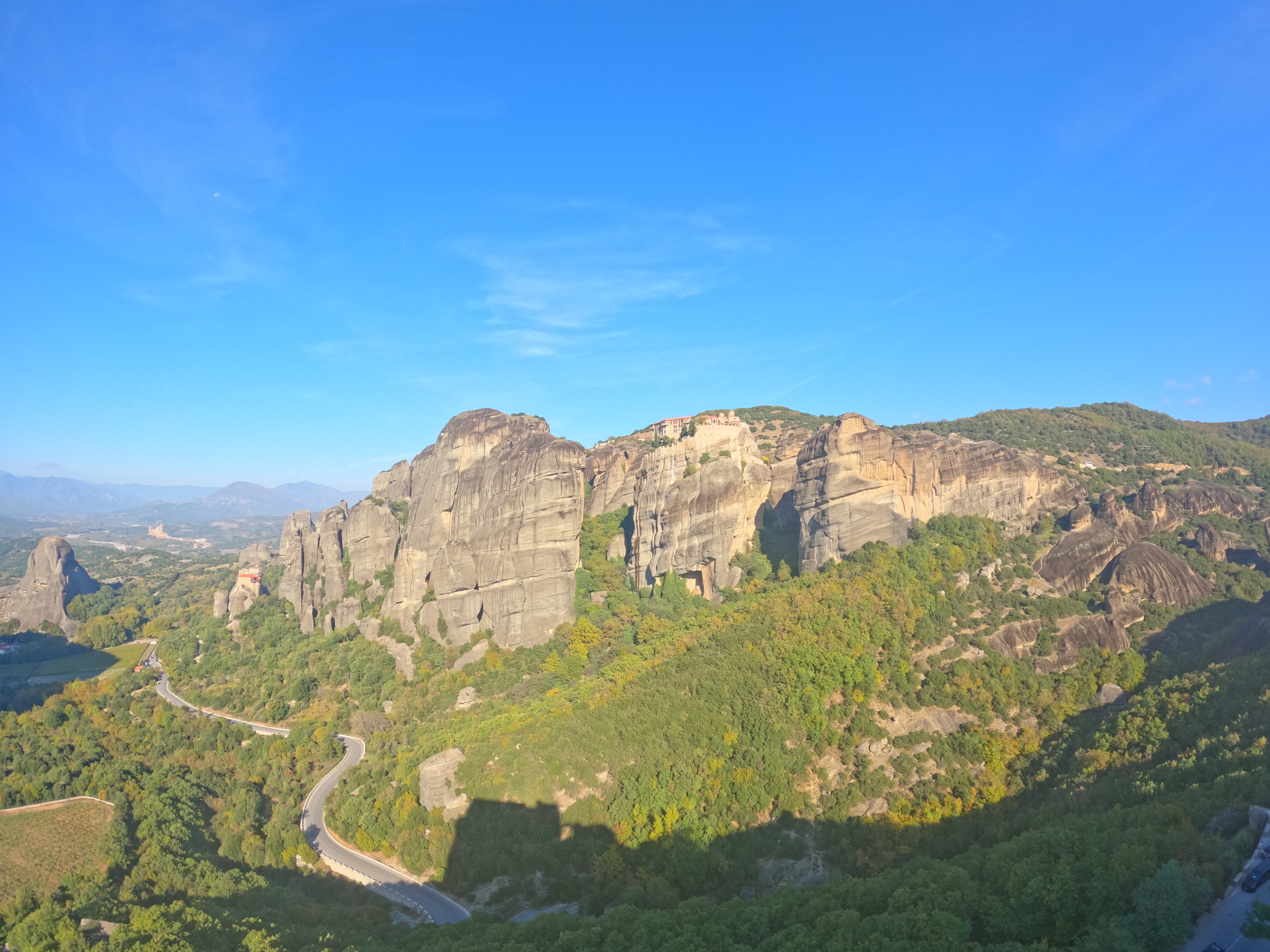 北の更に高台には 右手に Varlaam 修道院、左手に Great Meteoron 修道院が見える。