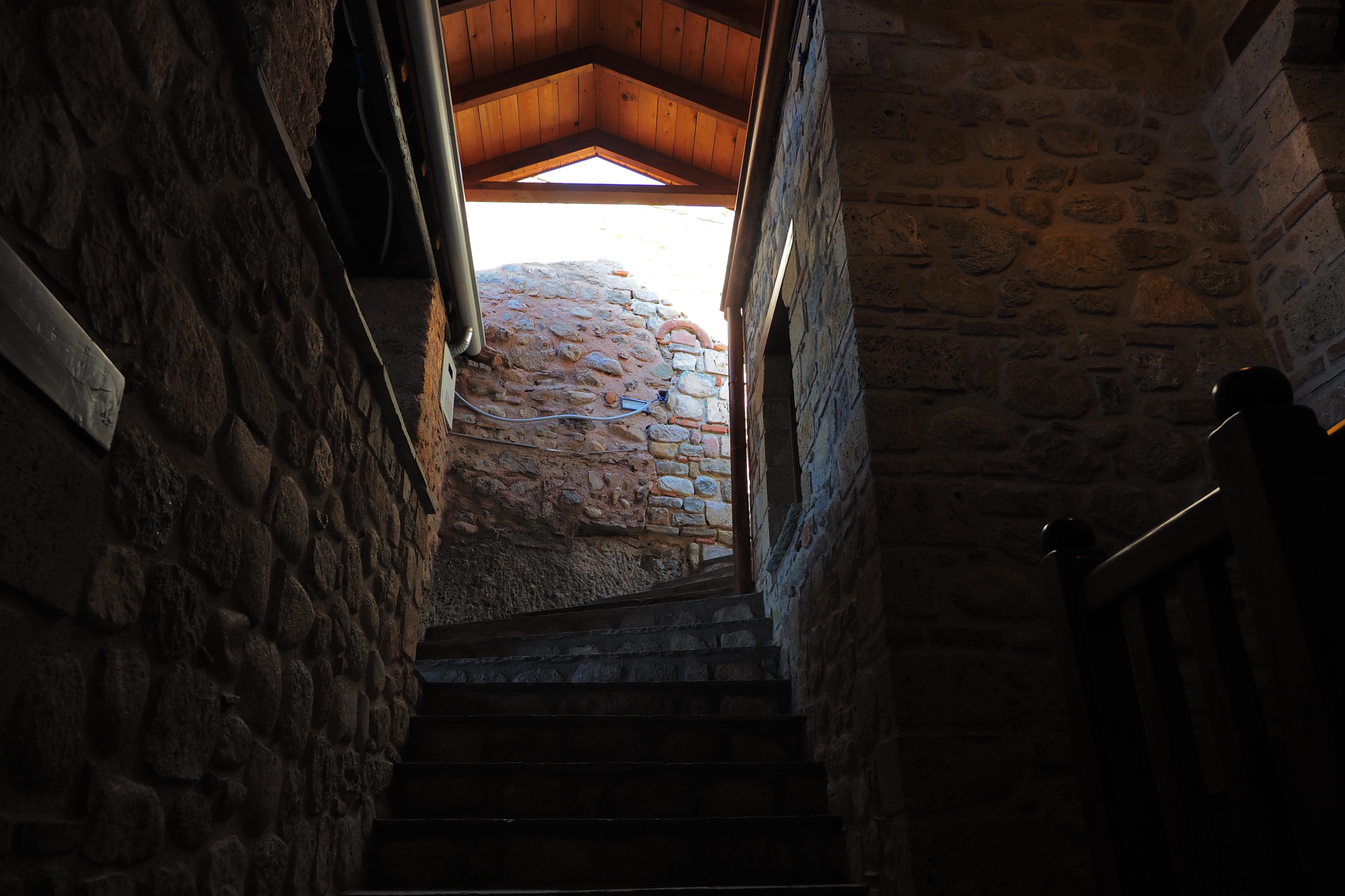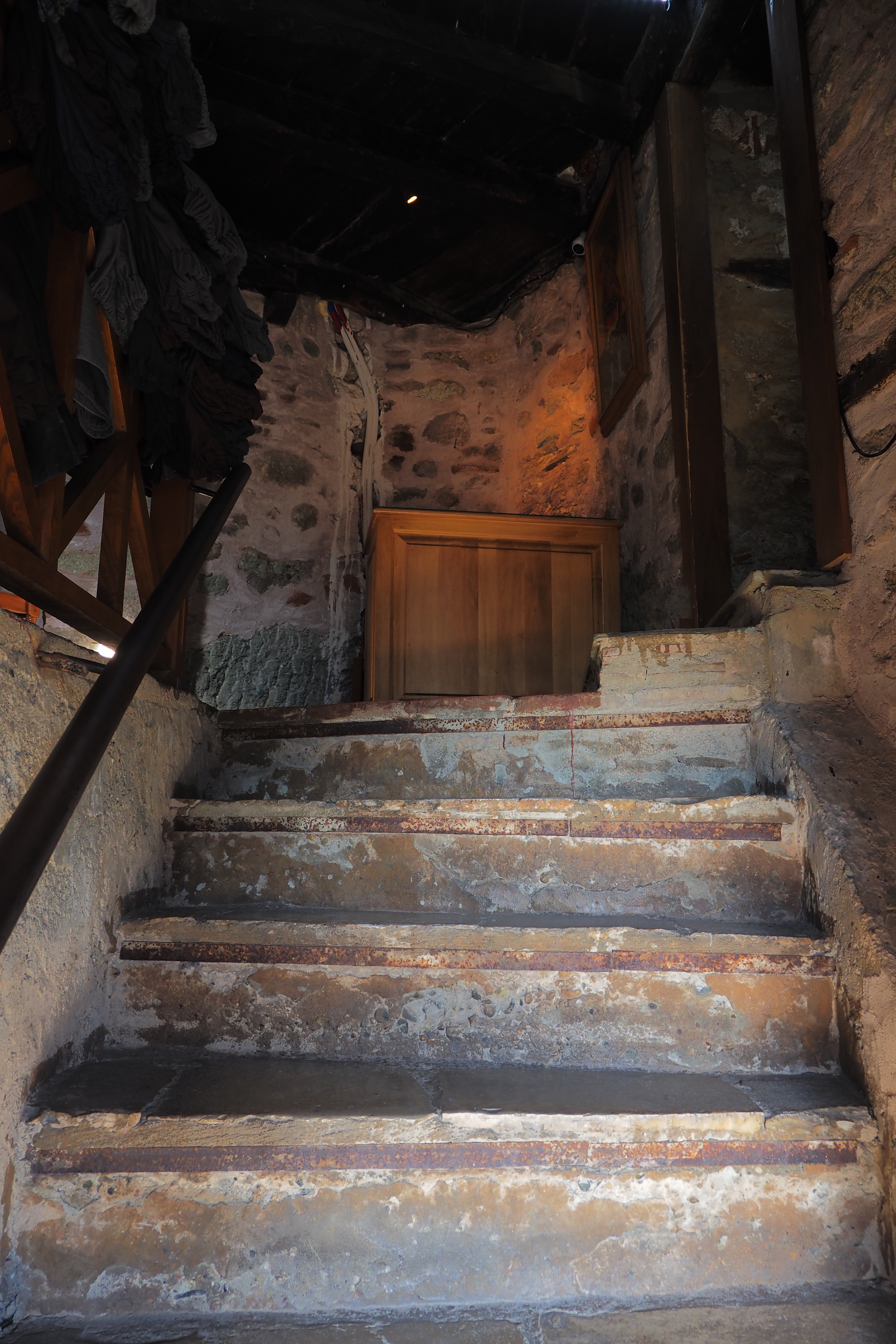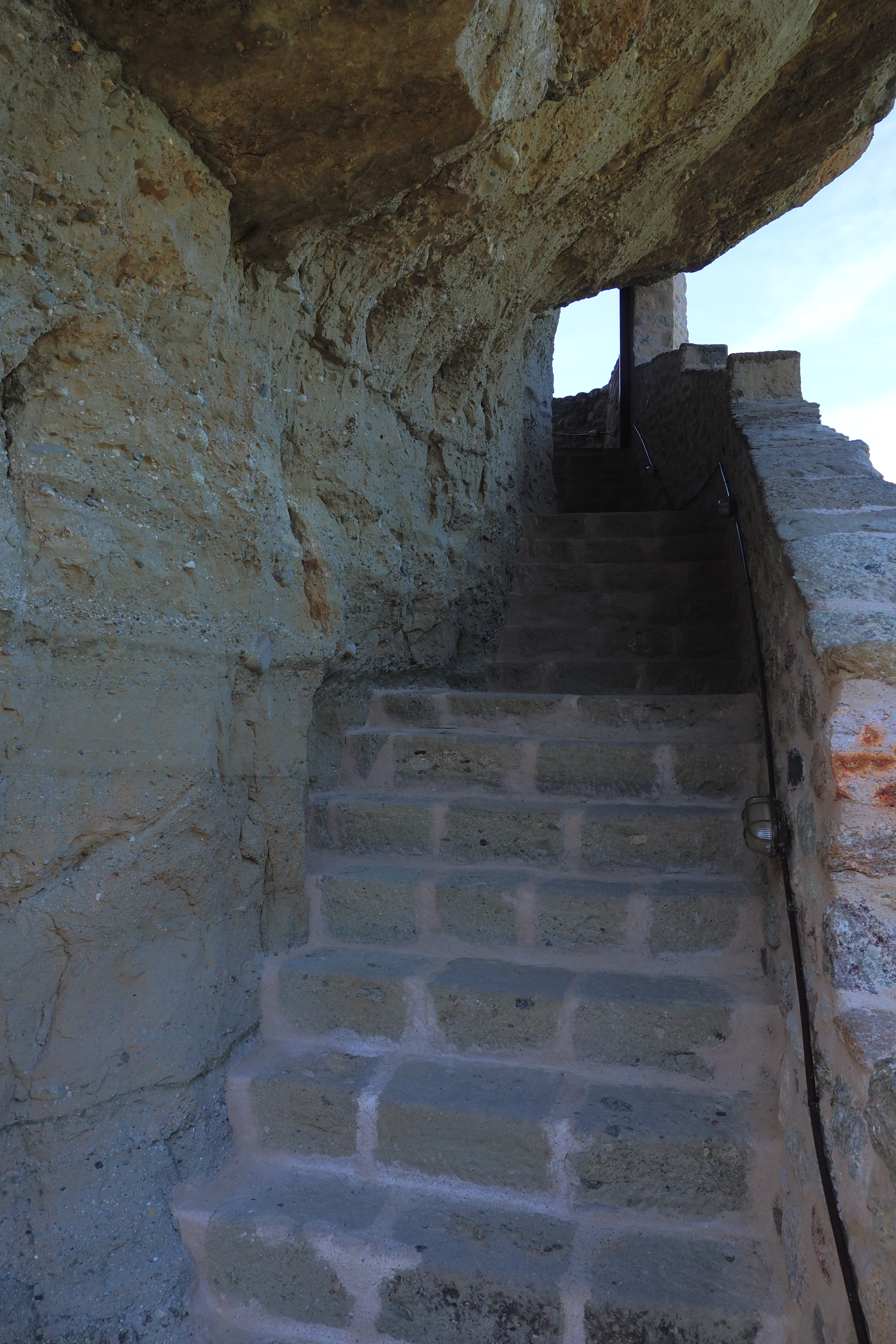 内部へ。巨大な奇岩の頂上に建つから、面積を有効活用するように3階構造になっている。