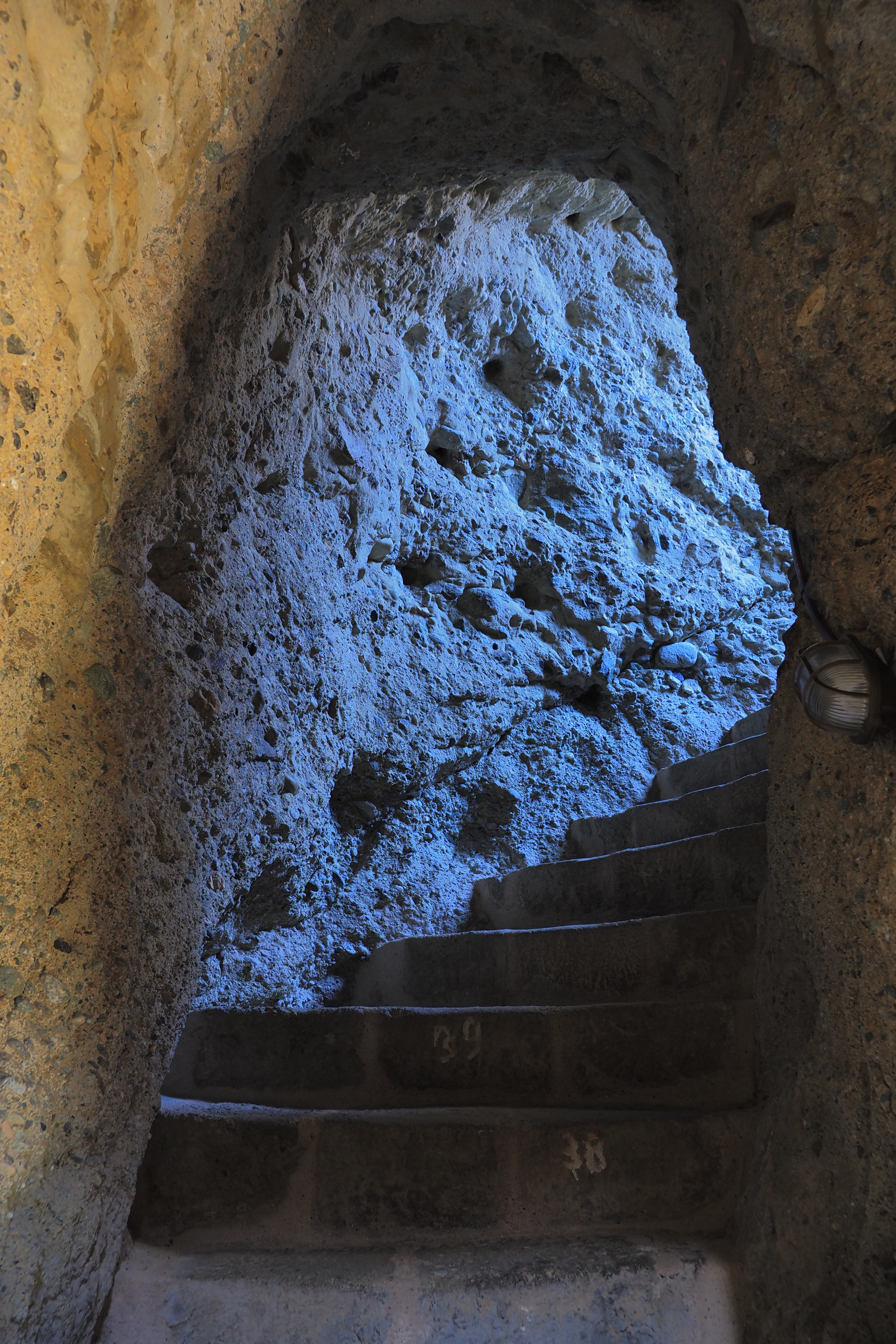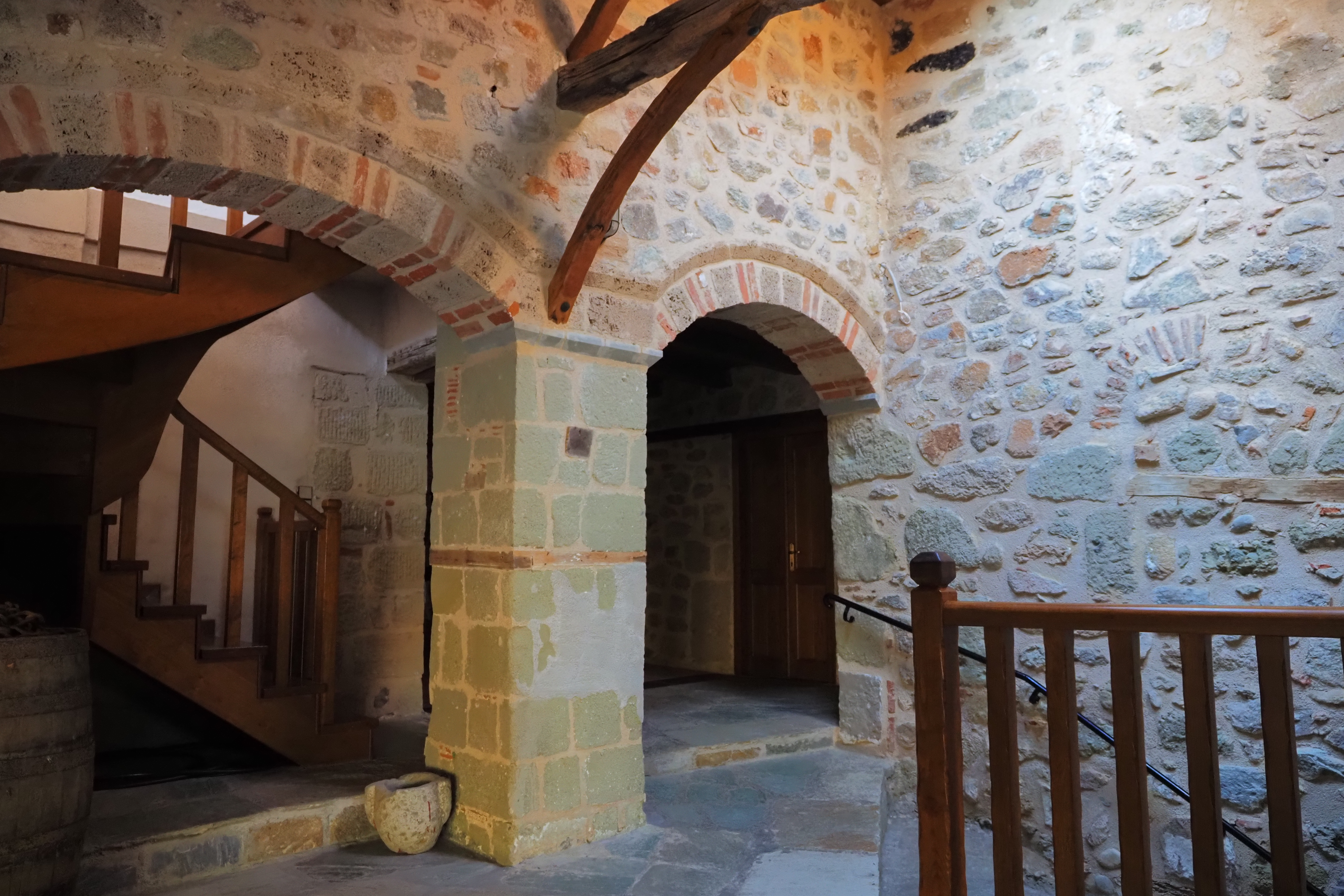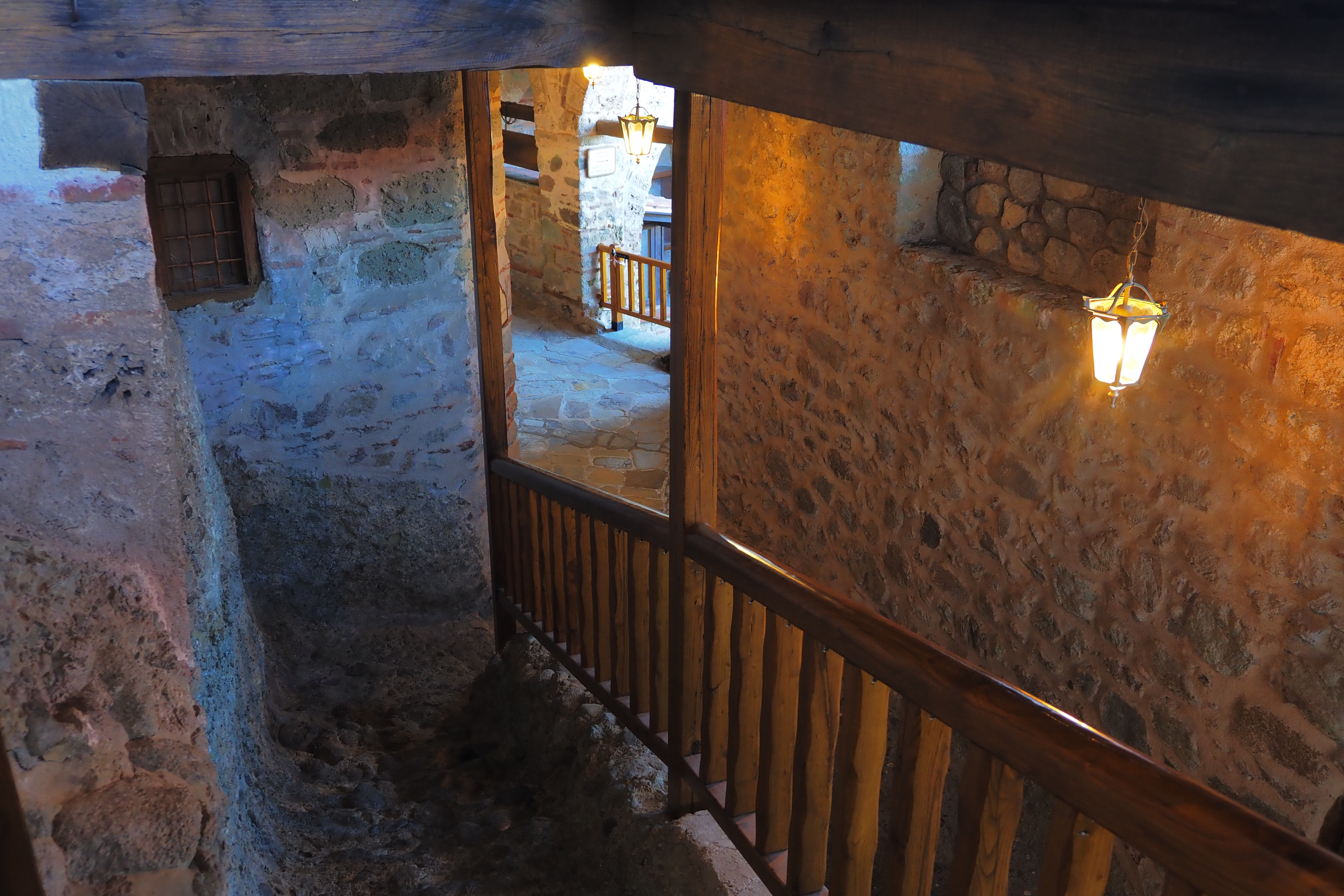 内部へ。巨大な奇岩の頂上に建つから、面積を有効活用するように3階構造になっている。