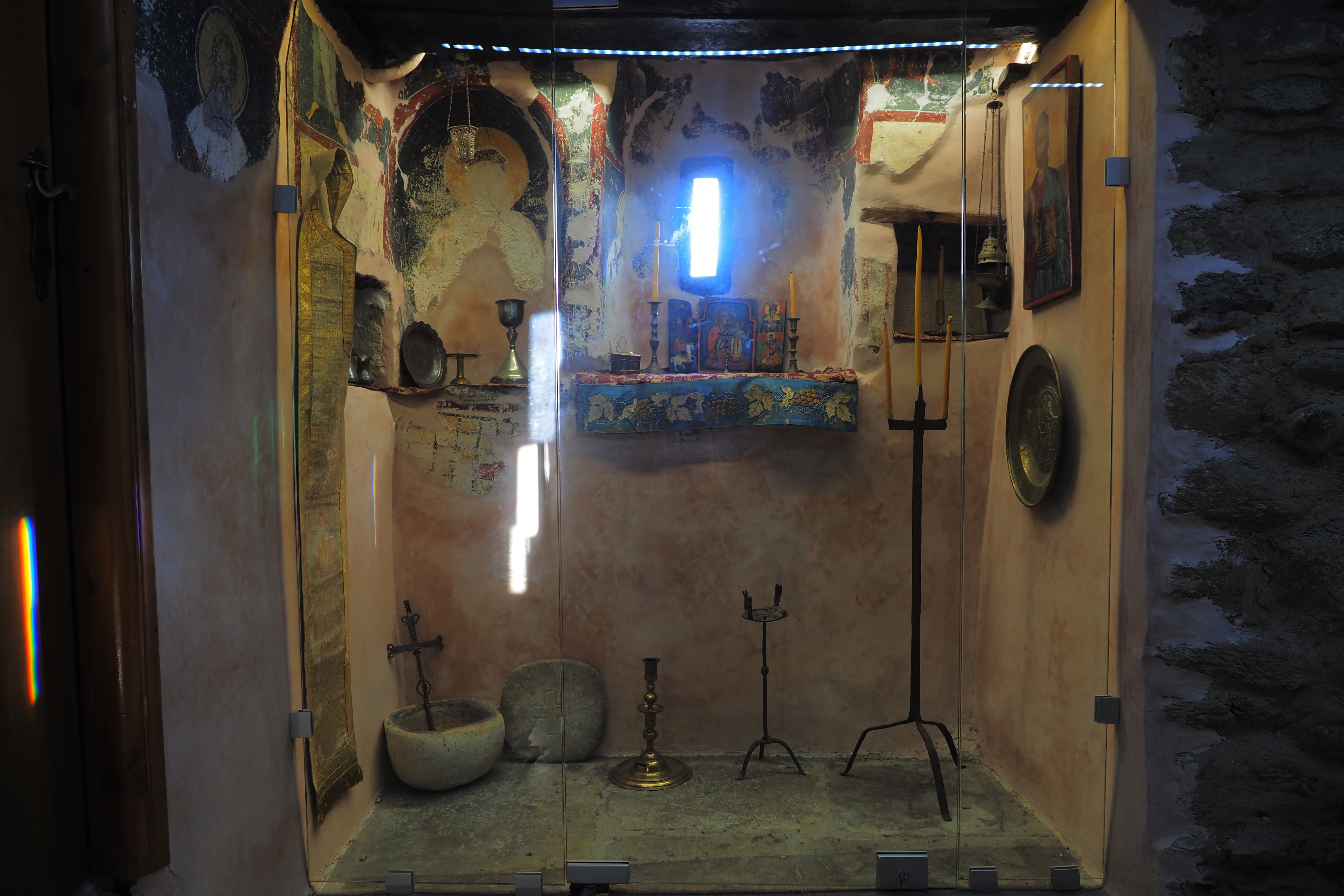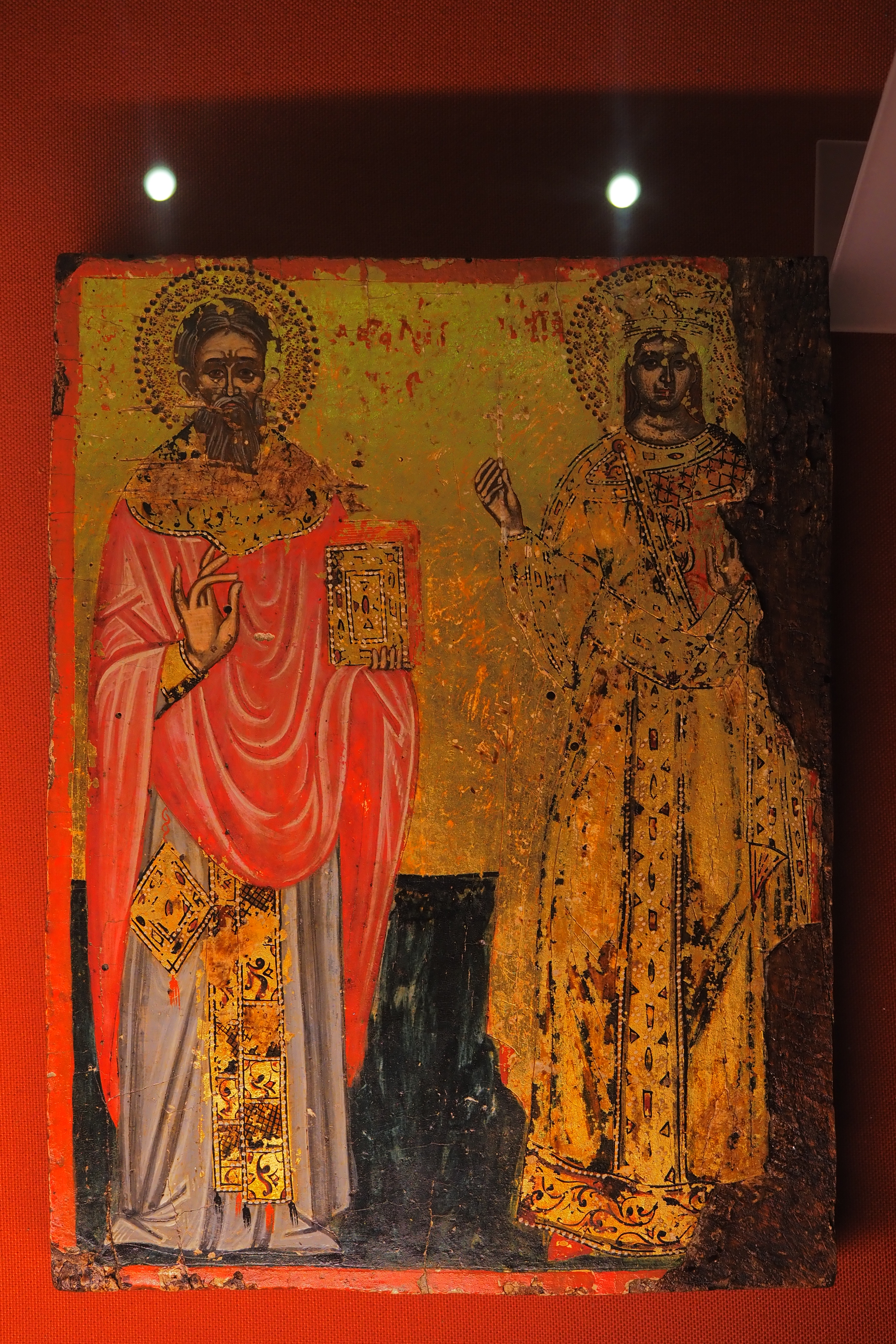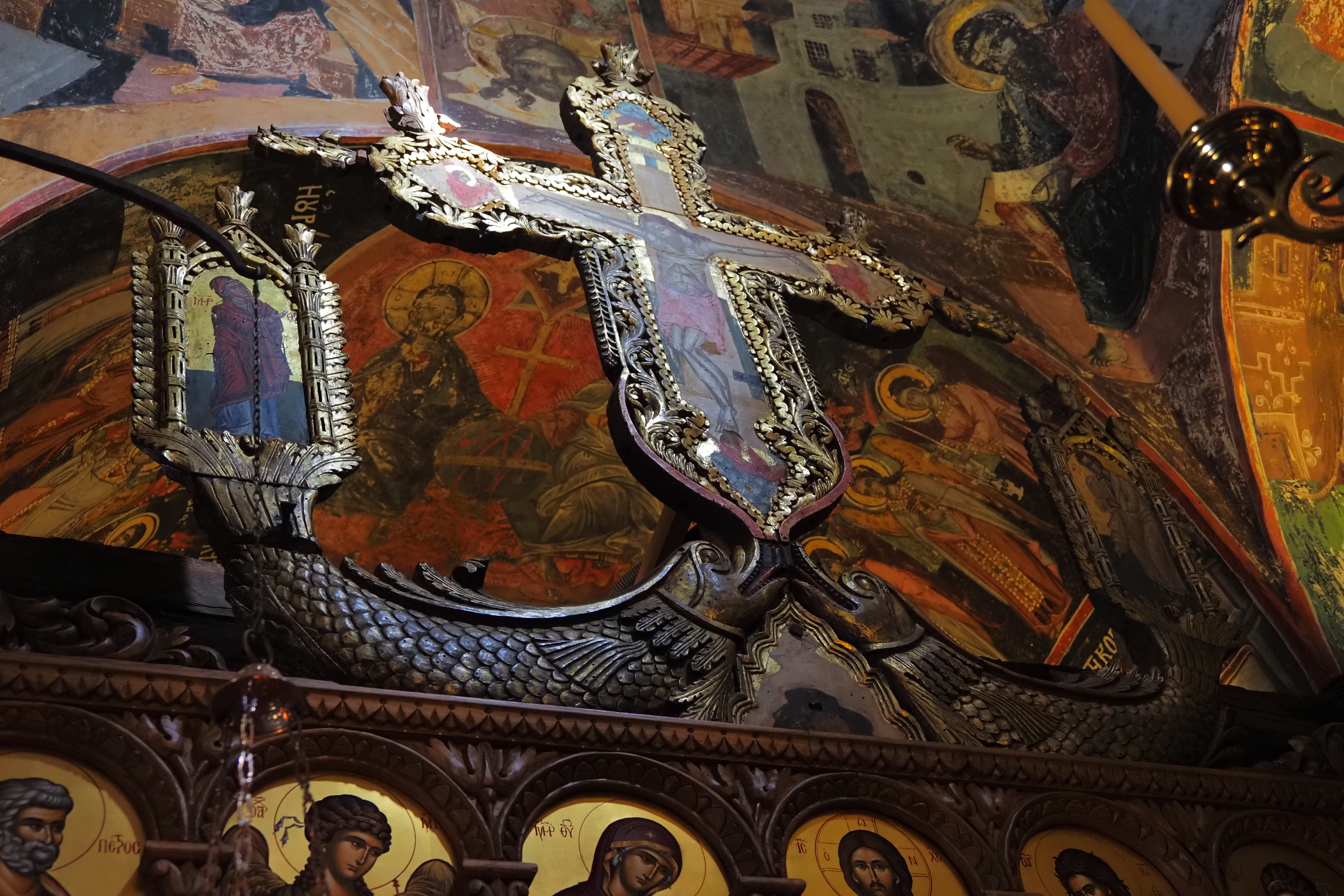 2階が主教会堂なわけだけど、残念ながら教会堂内の写真は撮ることができなかった。内部ではTheophanis Strelitzas というクレタの画家による1527年作のオリジナルのフレスコ画を見る事ができる。これはポスト・ビザンティン壁画の中では最古級のもの。