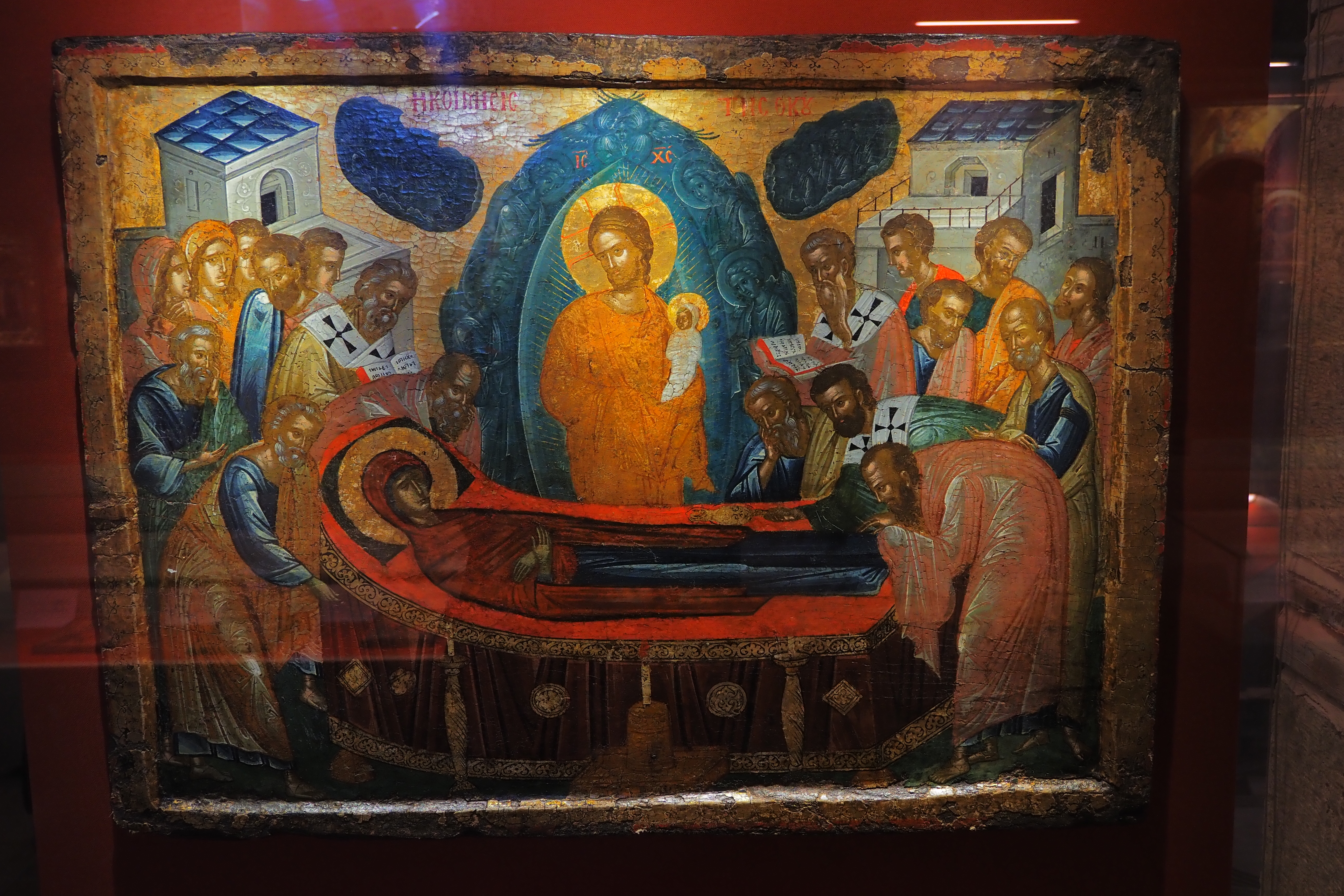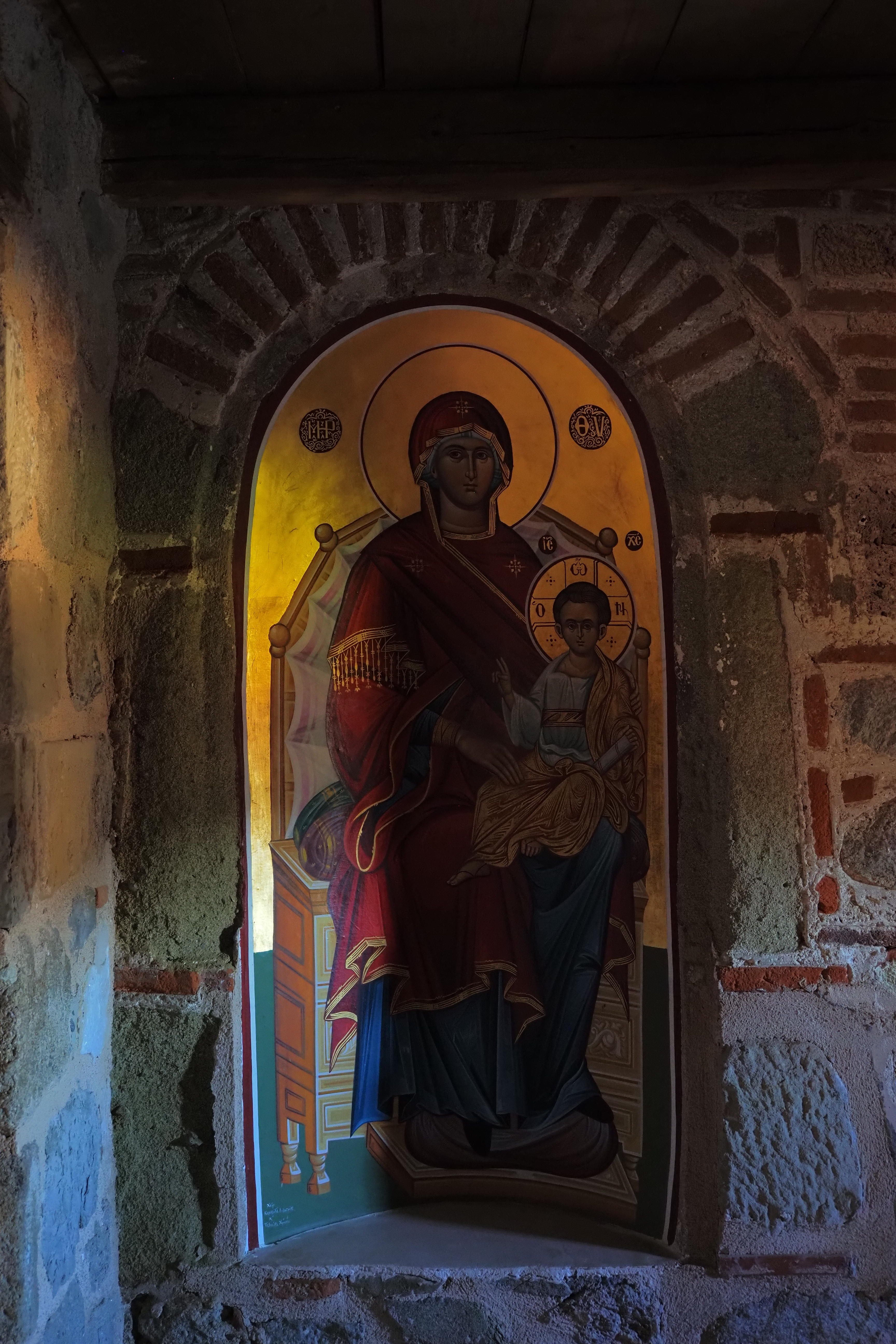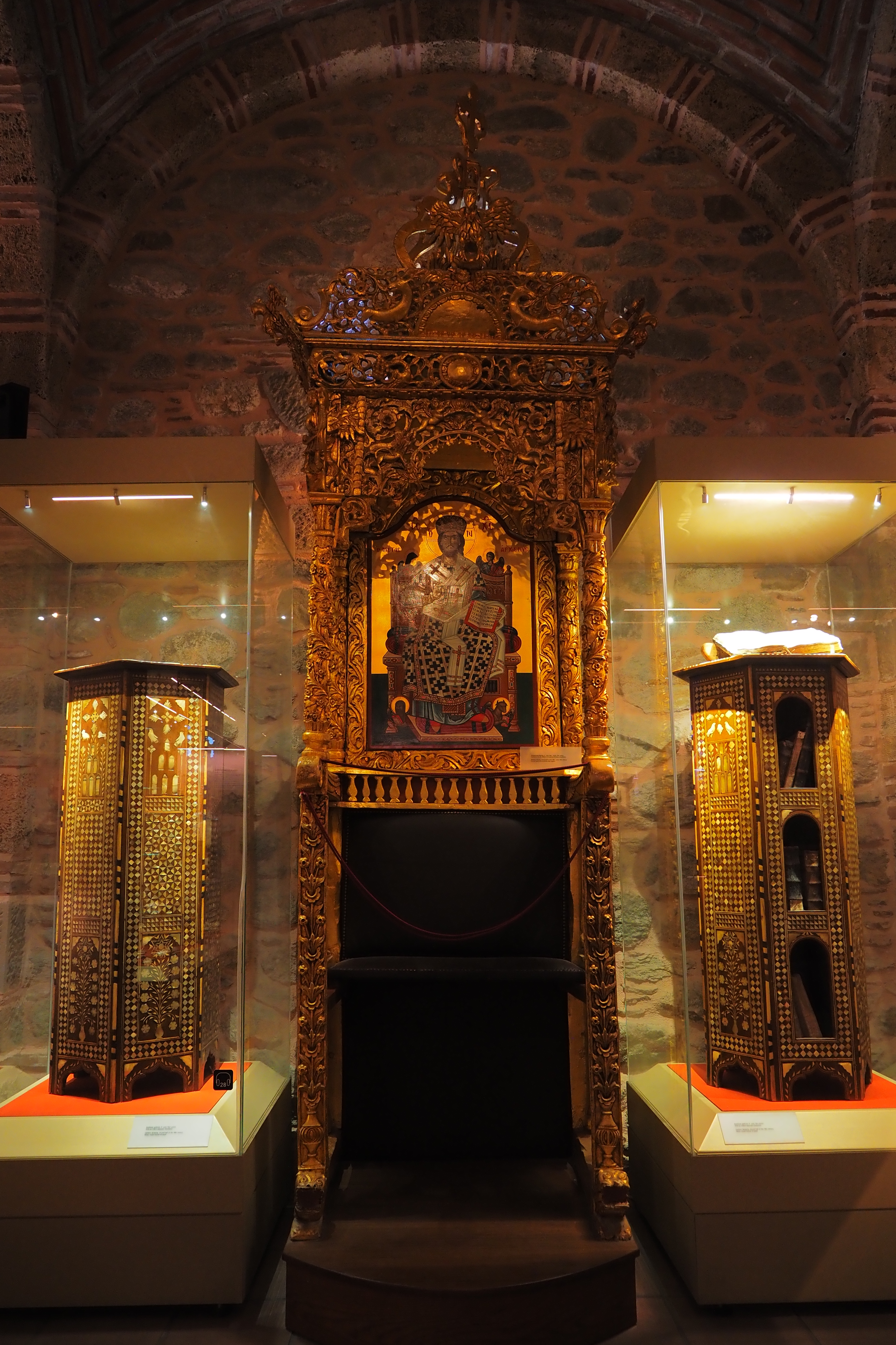 2階が主教会堂なわけだけど、残念ながら教会堂内の写真は撮ることができなかった。内部ではTheophanis Strelitzas というクレタの画家による1527年作のオリジナルのフレスコ画を見る事ができる。これはポスト・ビザンティン壁画の中では最古級のもの。