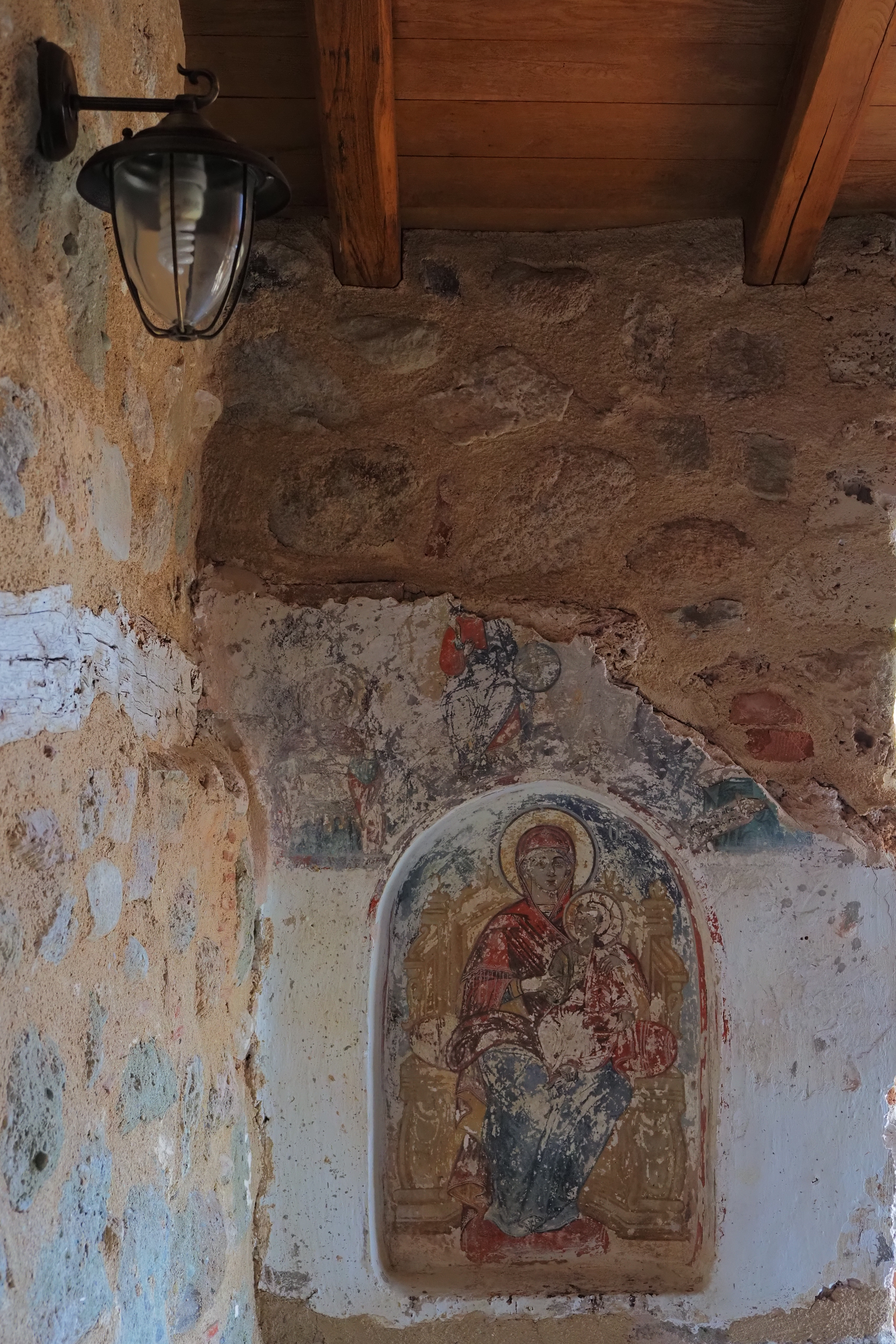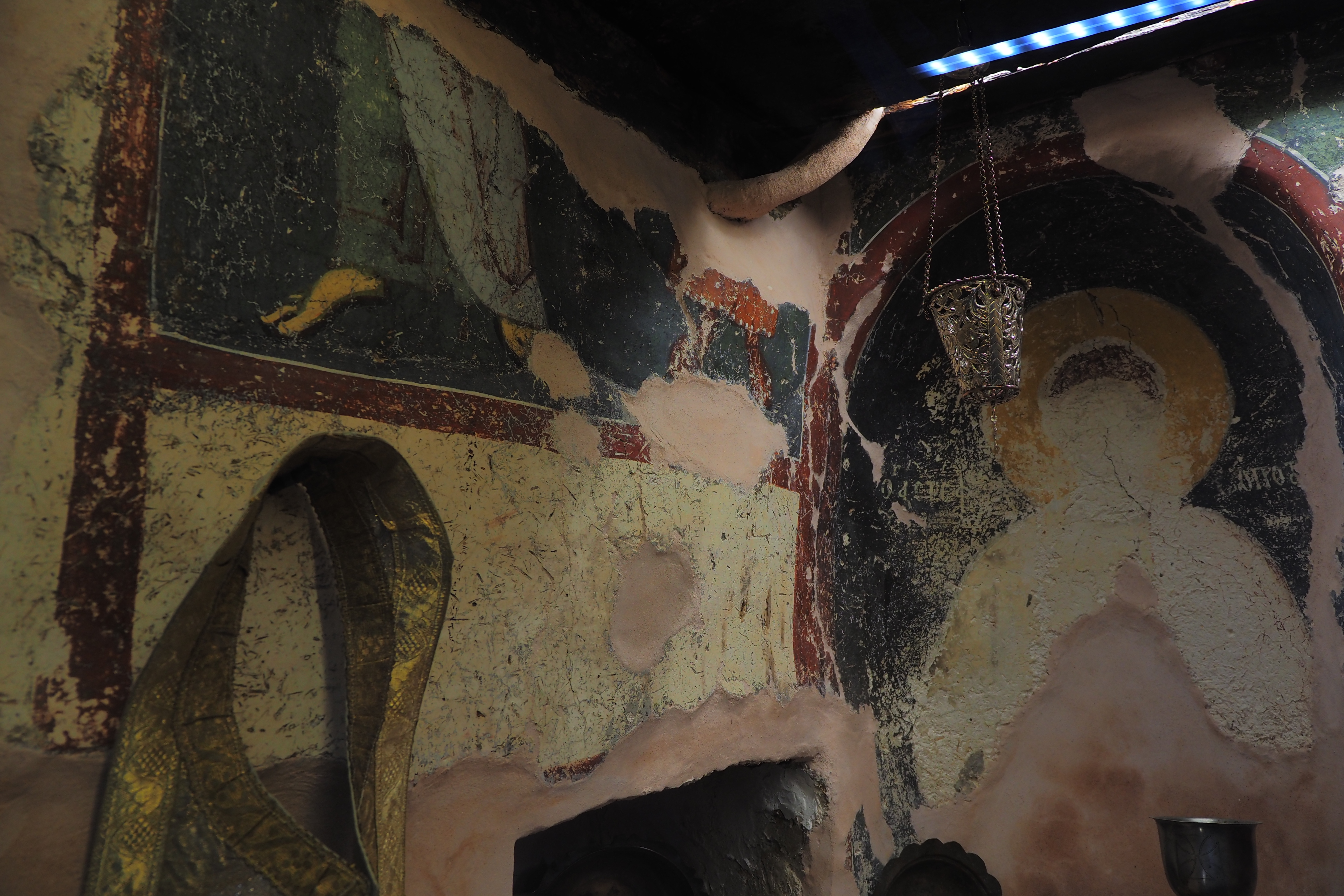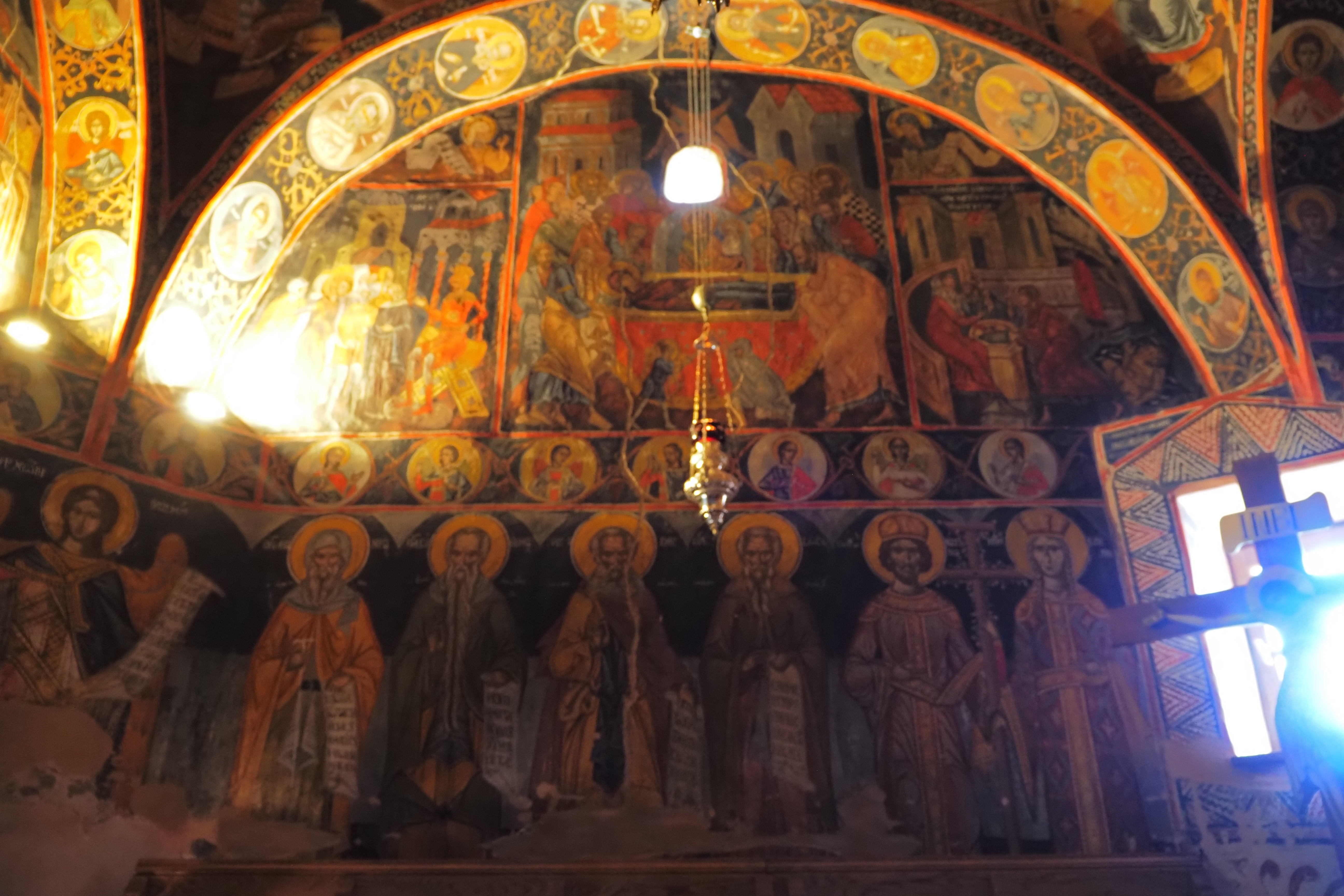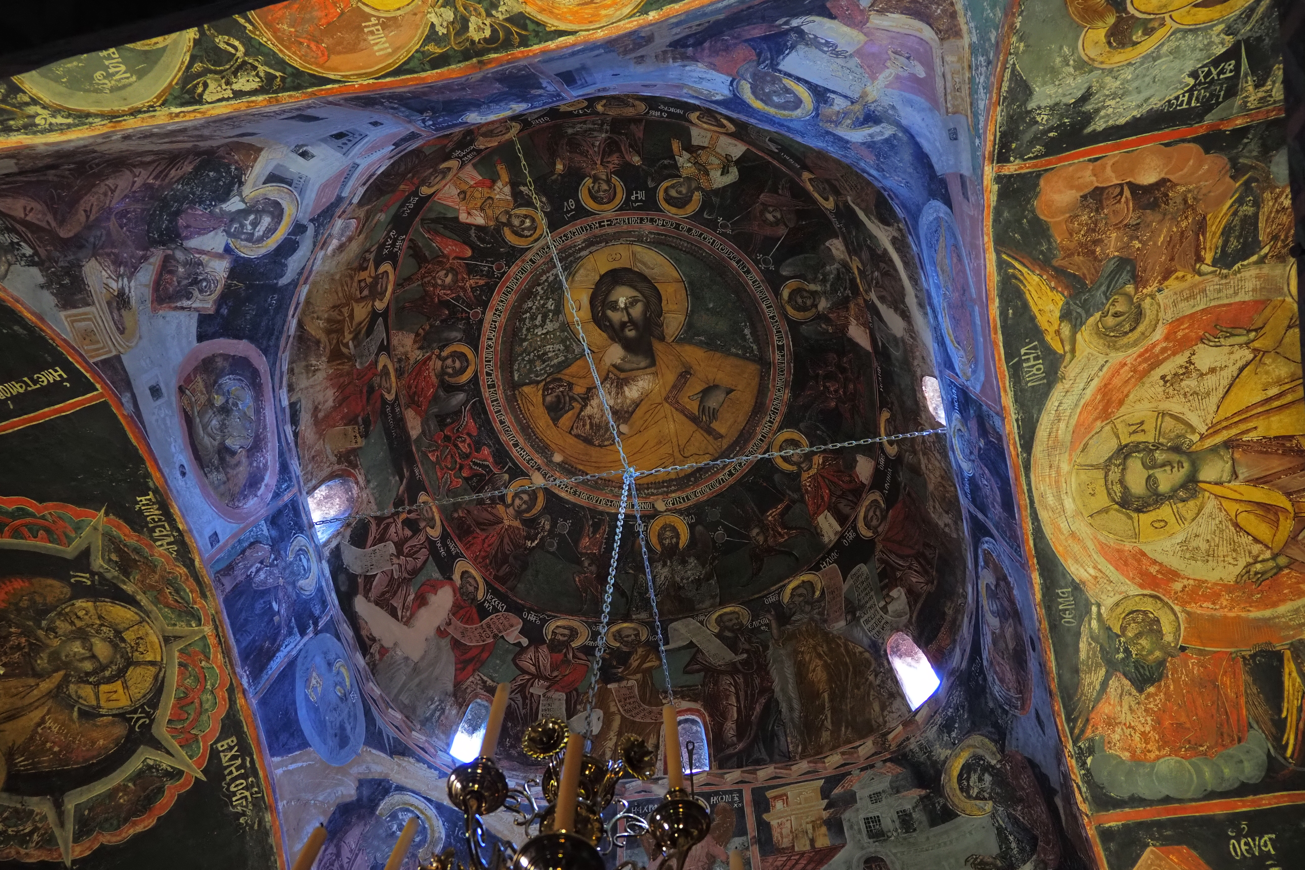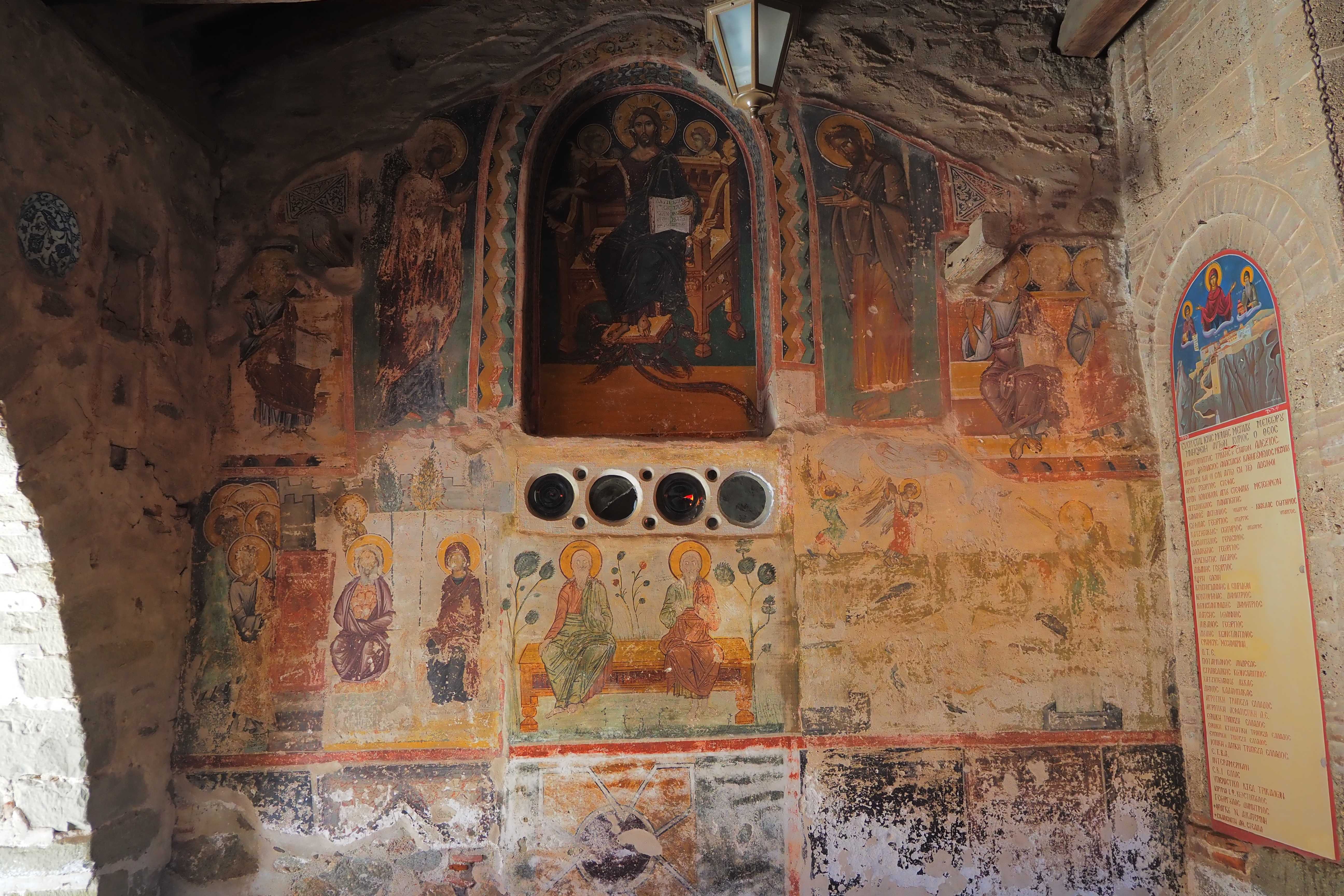1741年に仕上げられたという 内部のフレスコ画は、画家でもあった司祭 Antonios と、その兄弟の Nicholas によるもの。