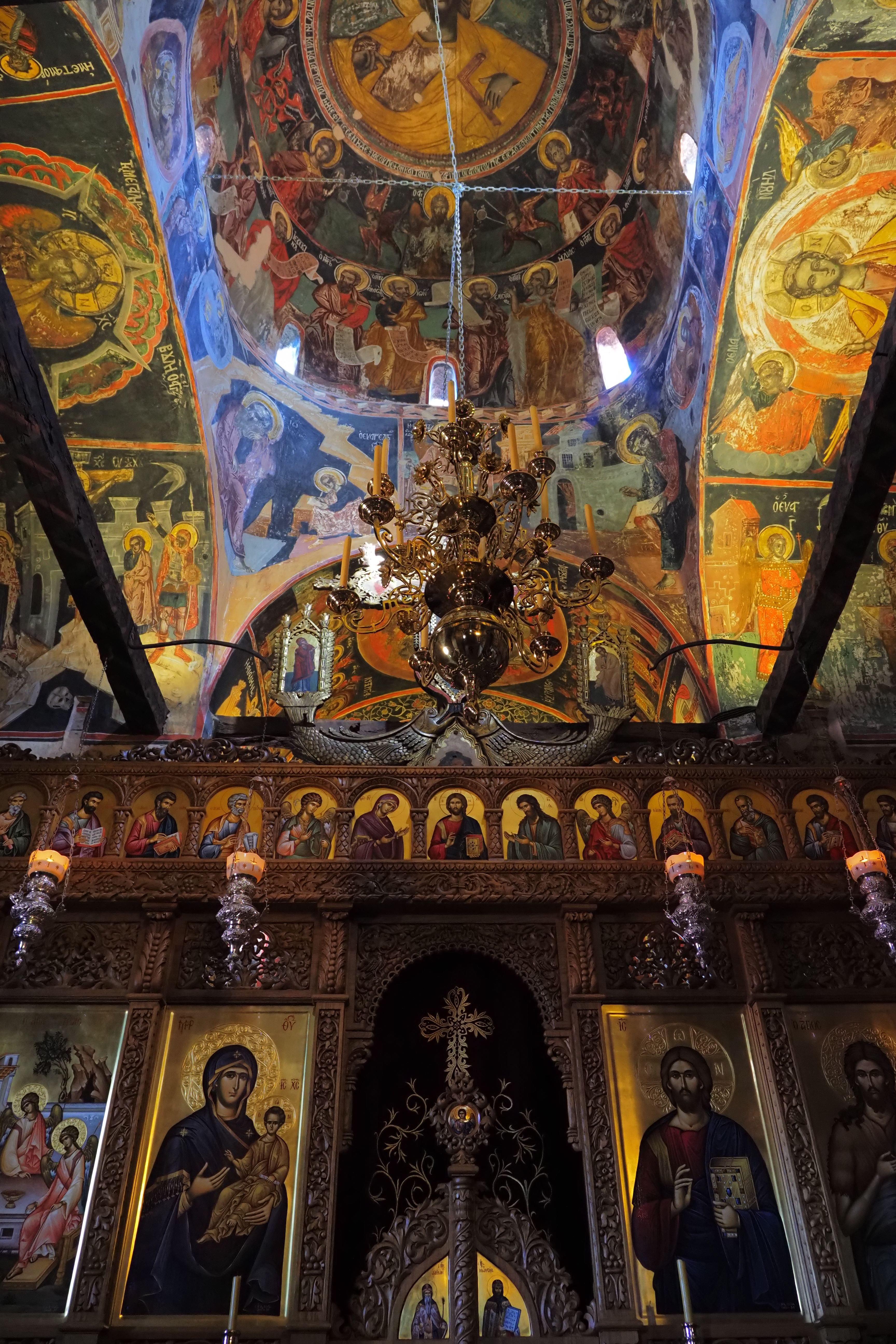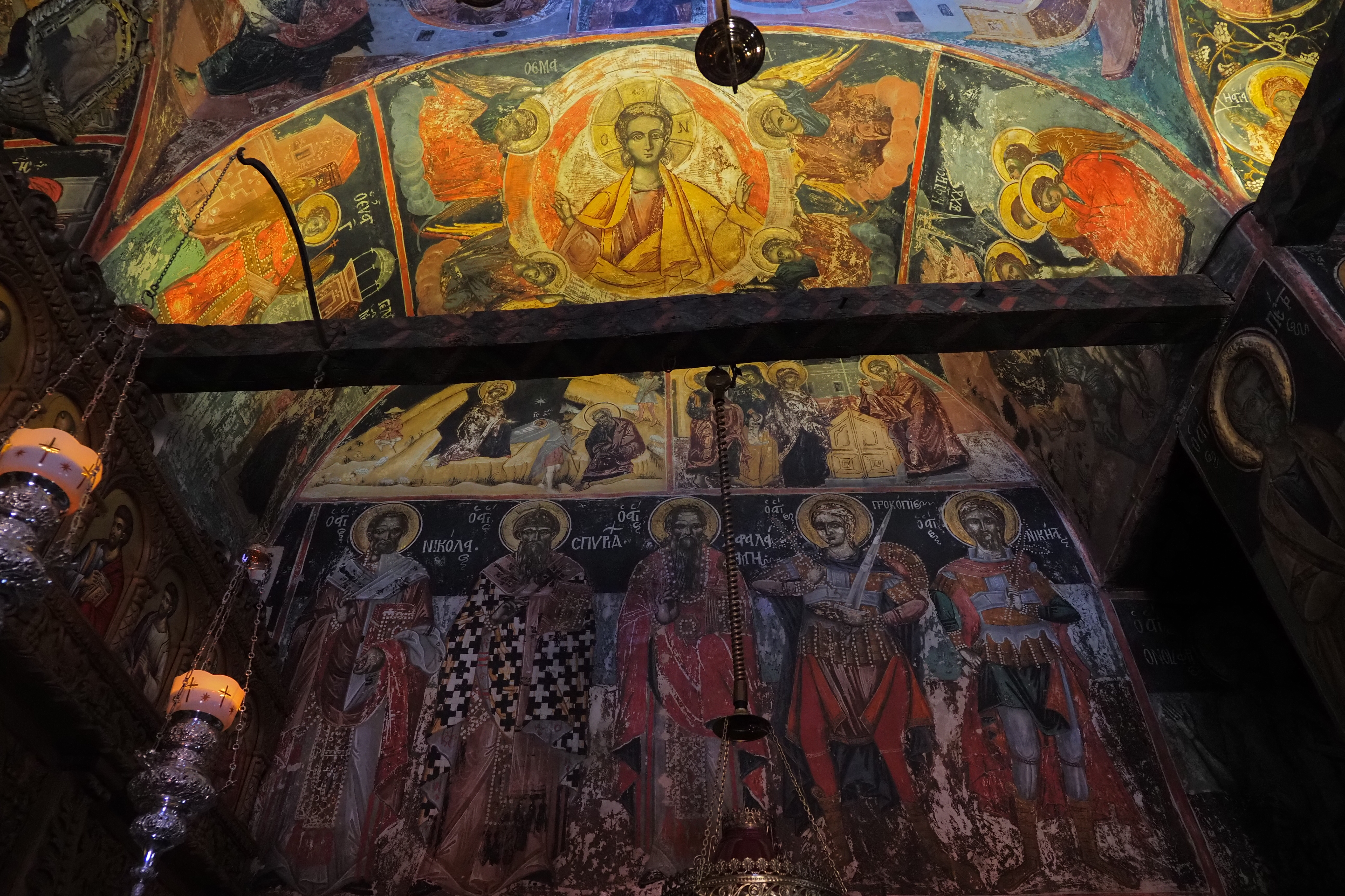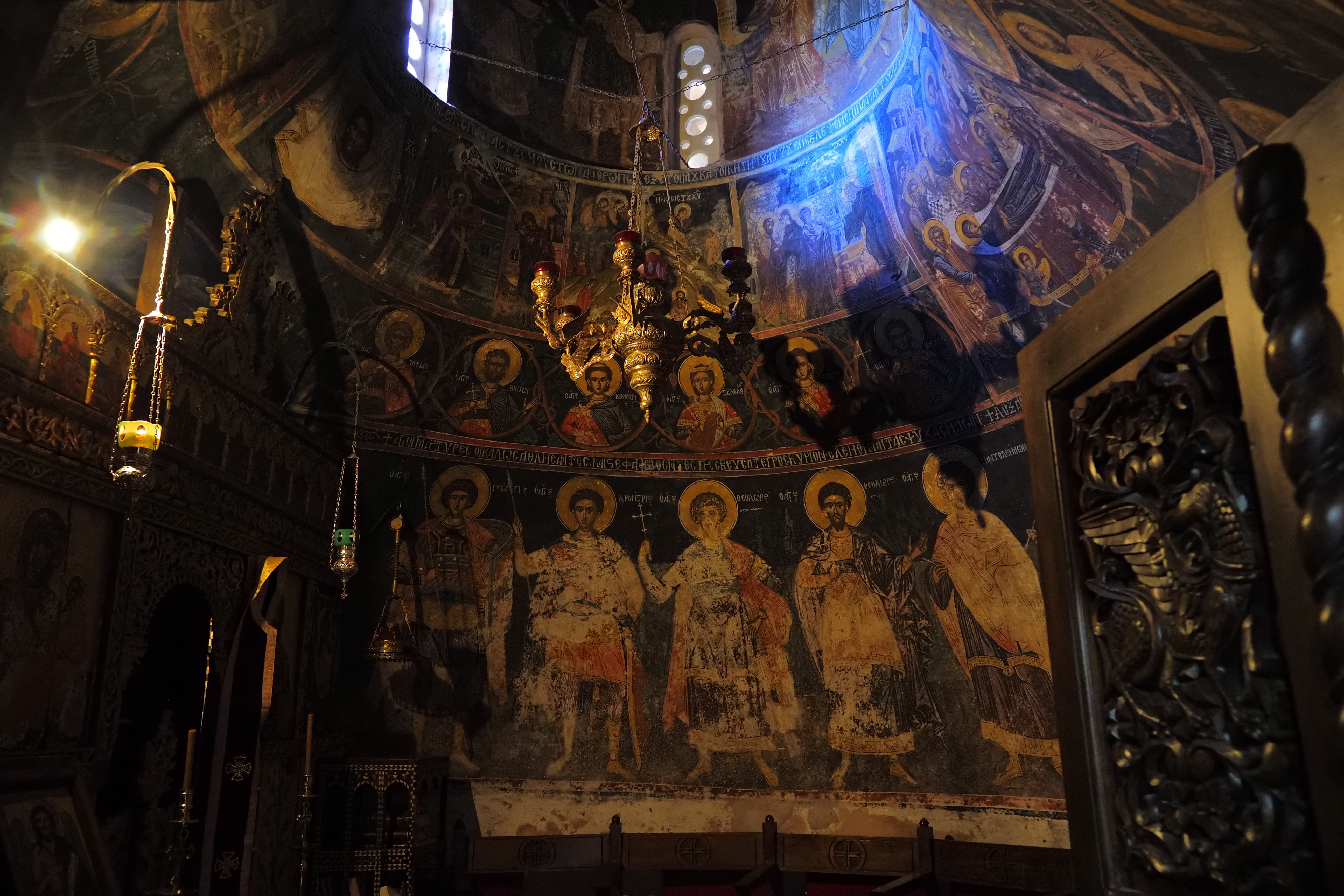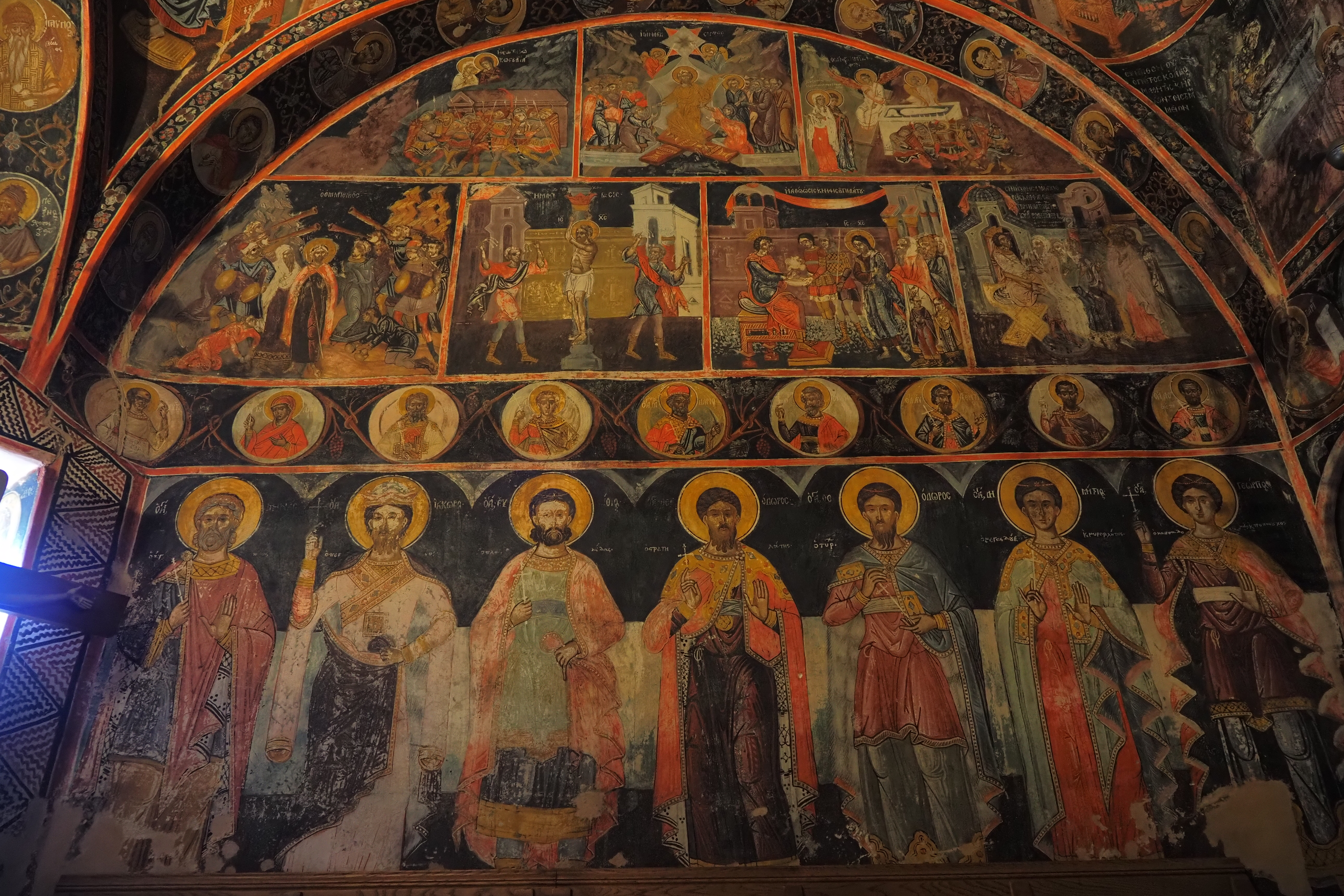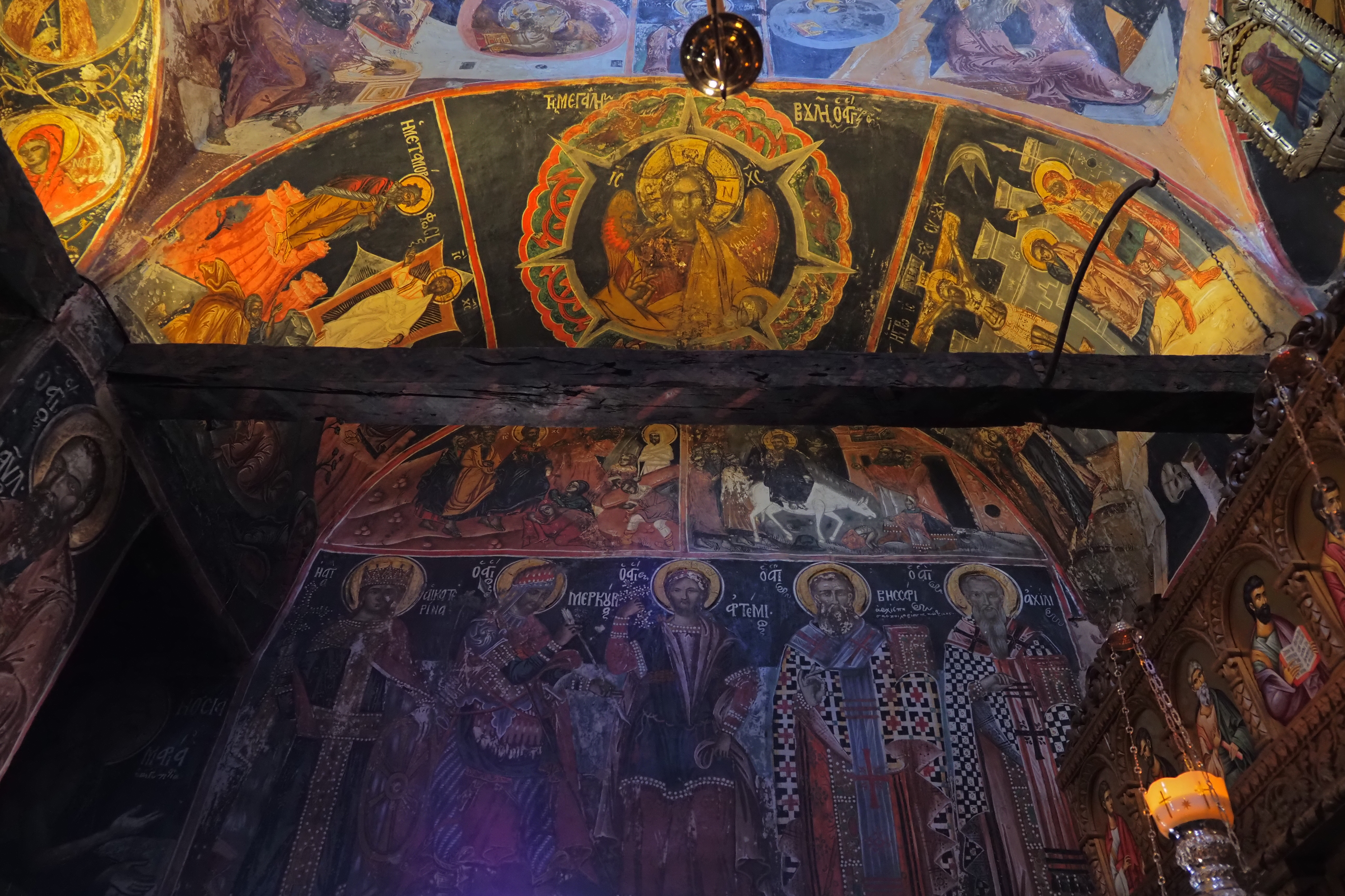 1741年に仕上げられたという 内部のフレスコ画は、画家でもあった司祭 Antonios と、その兄弟の Nicholas によるもの。