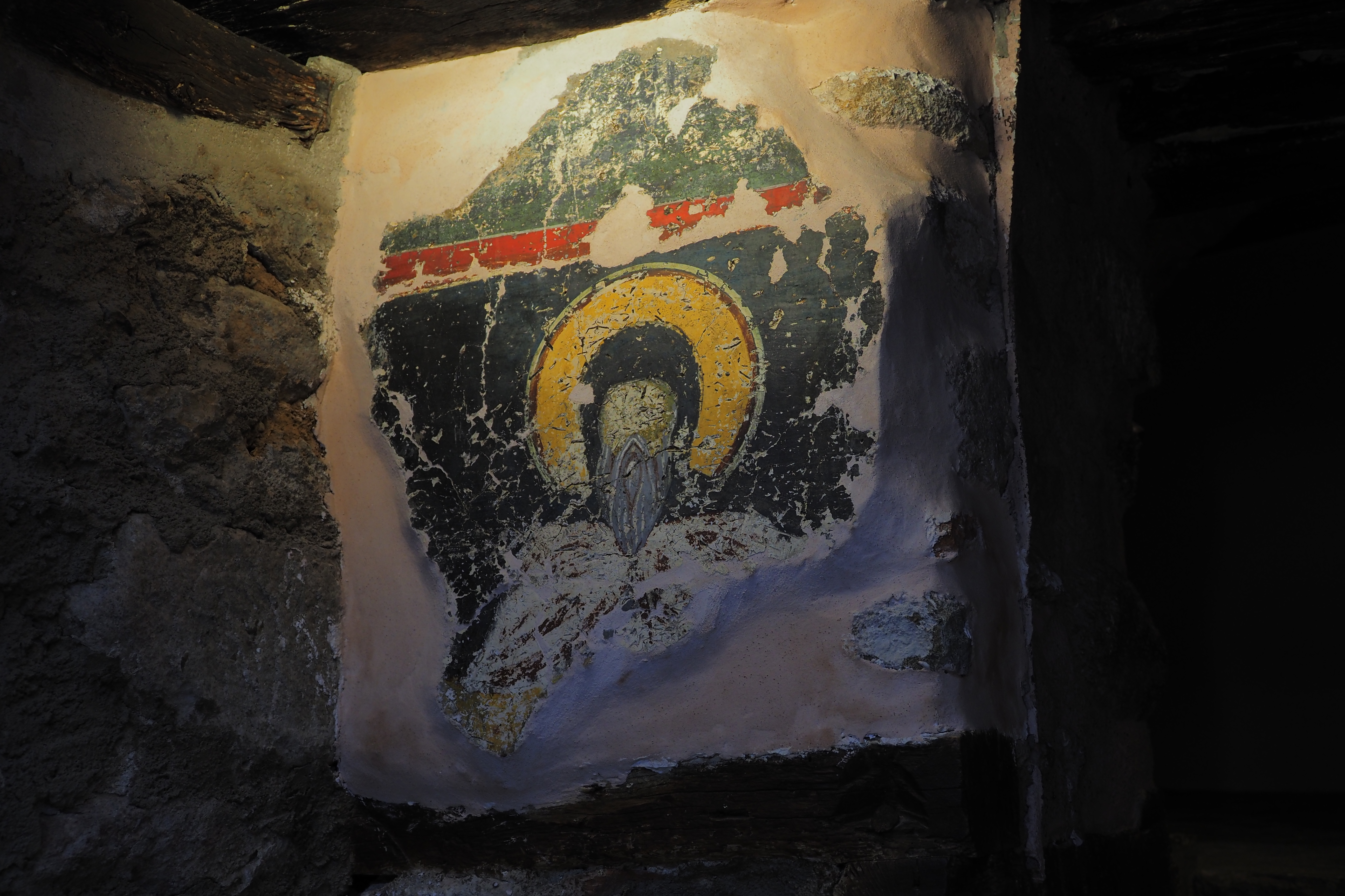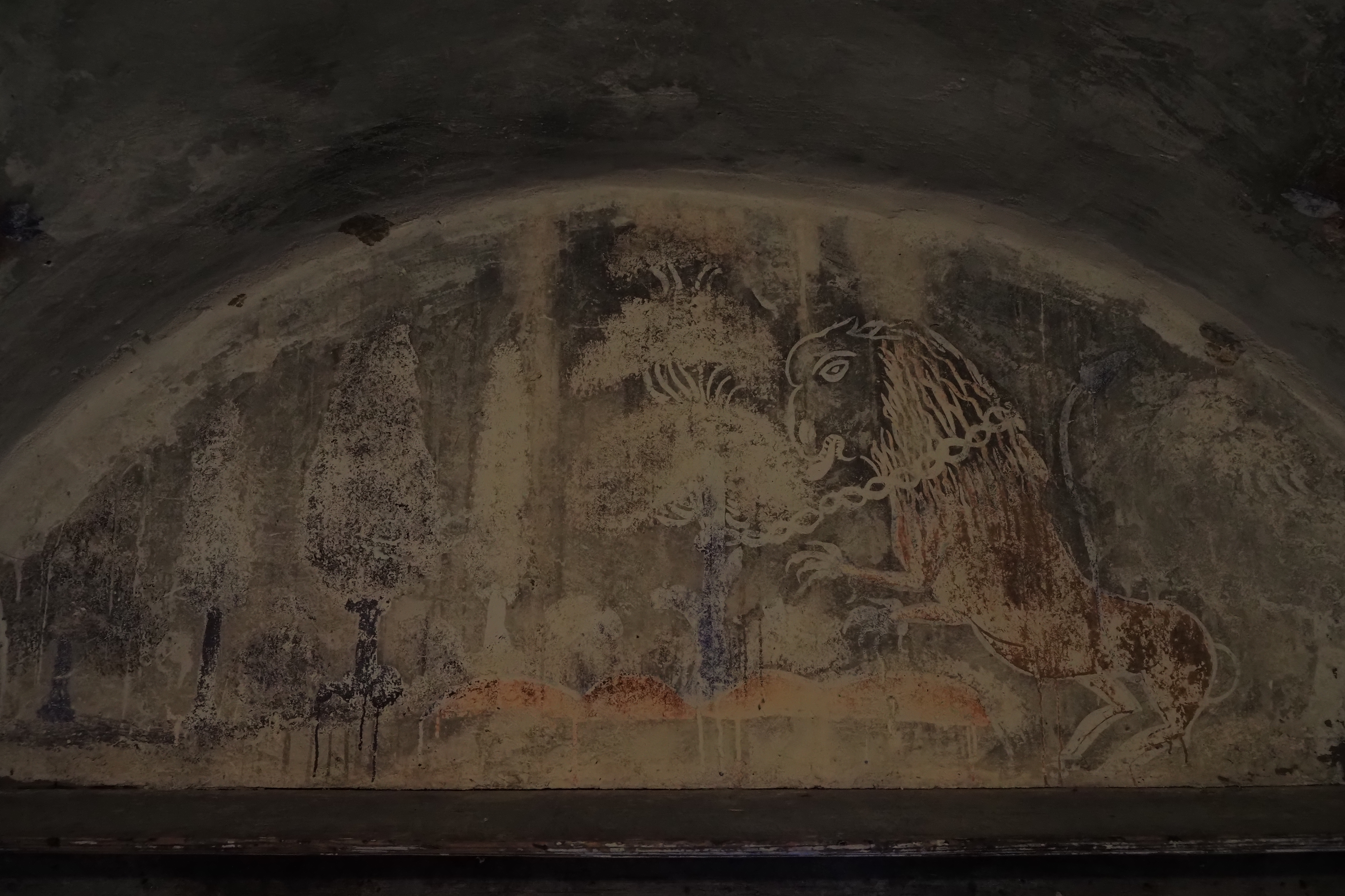 ヴォールトの側面にあった消えかかりのフレスコ画。