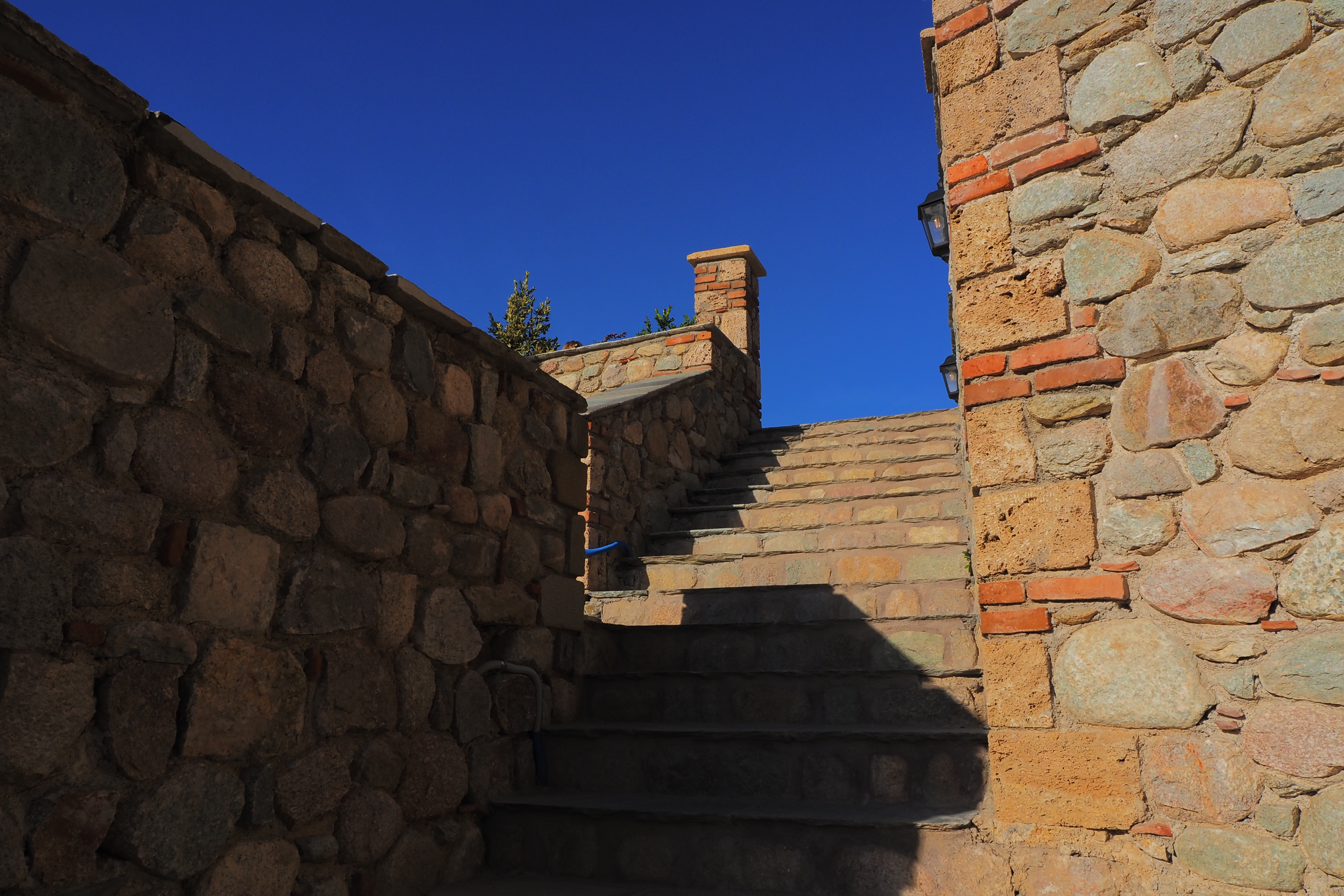 特異な地形と、その頂に聳え建つ修道院に西日が差して 改めて溜息の出るほどユニークな造形が浮き上がってくる。