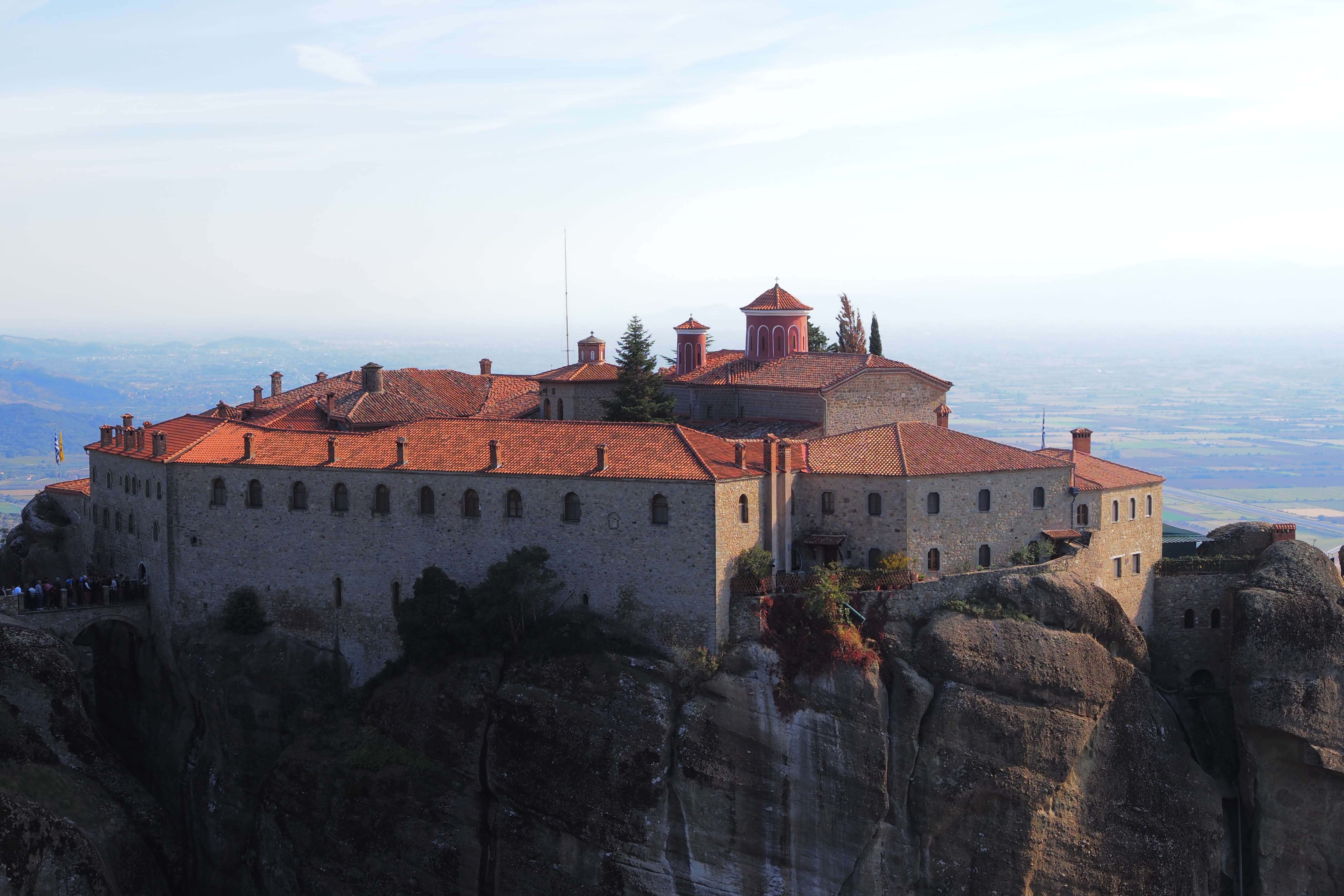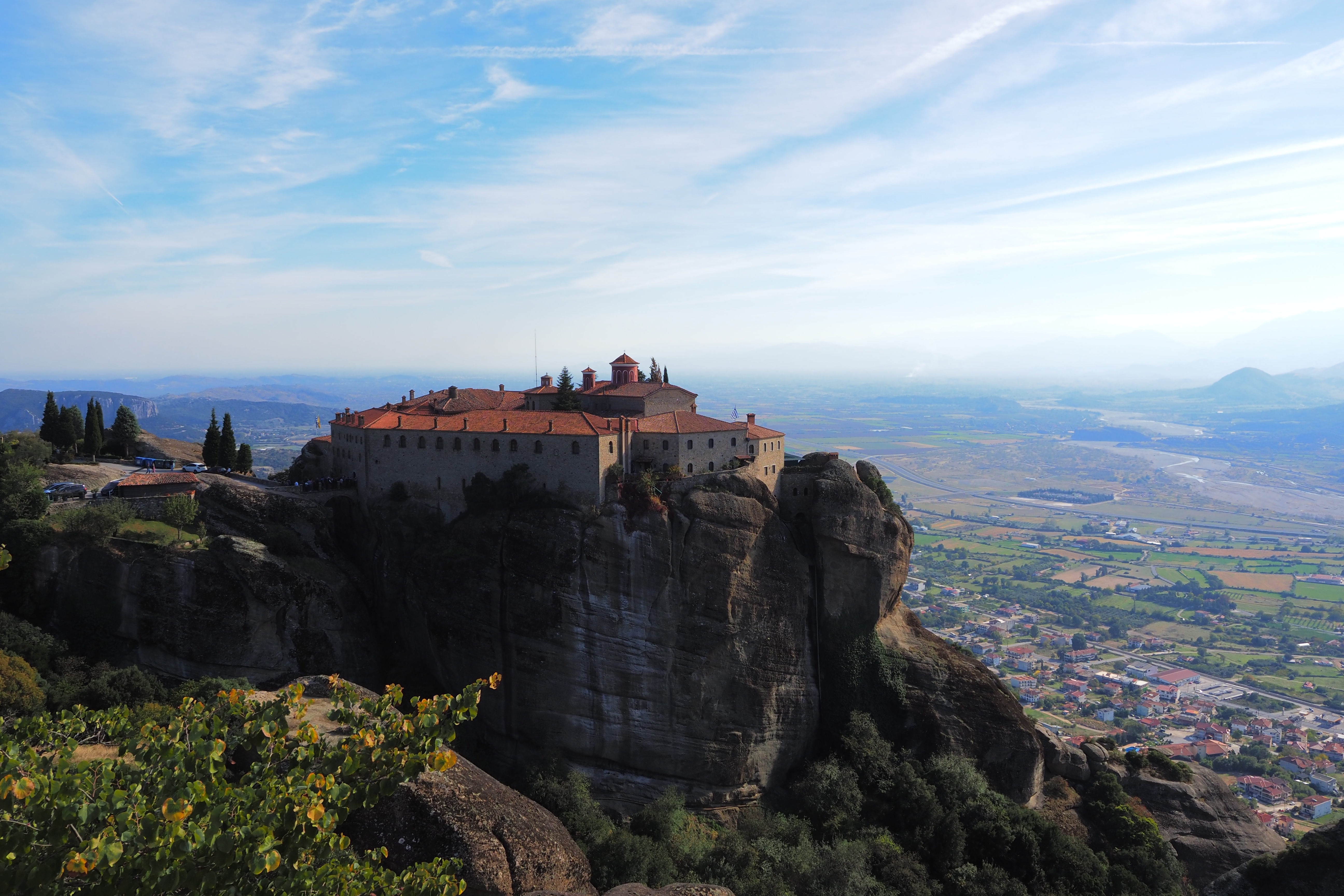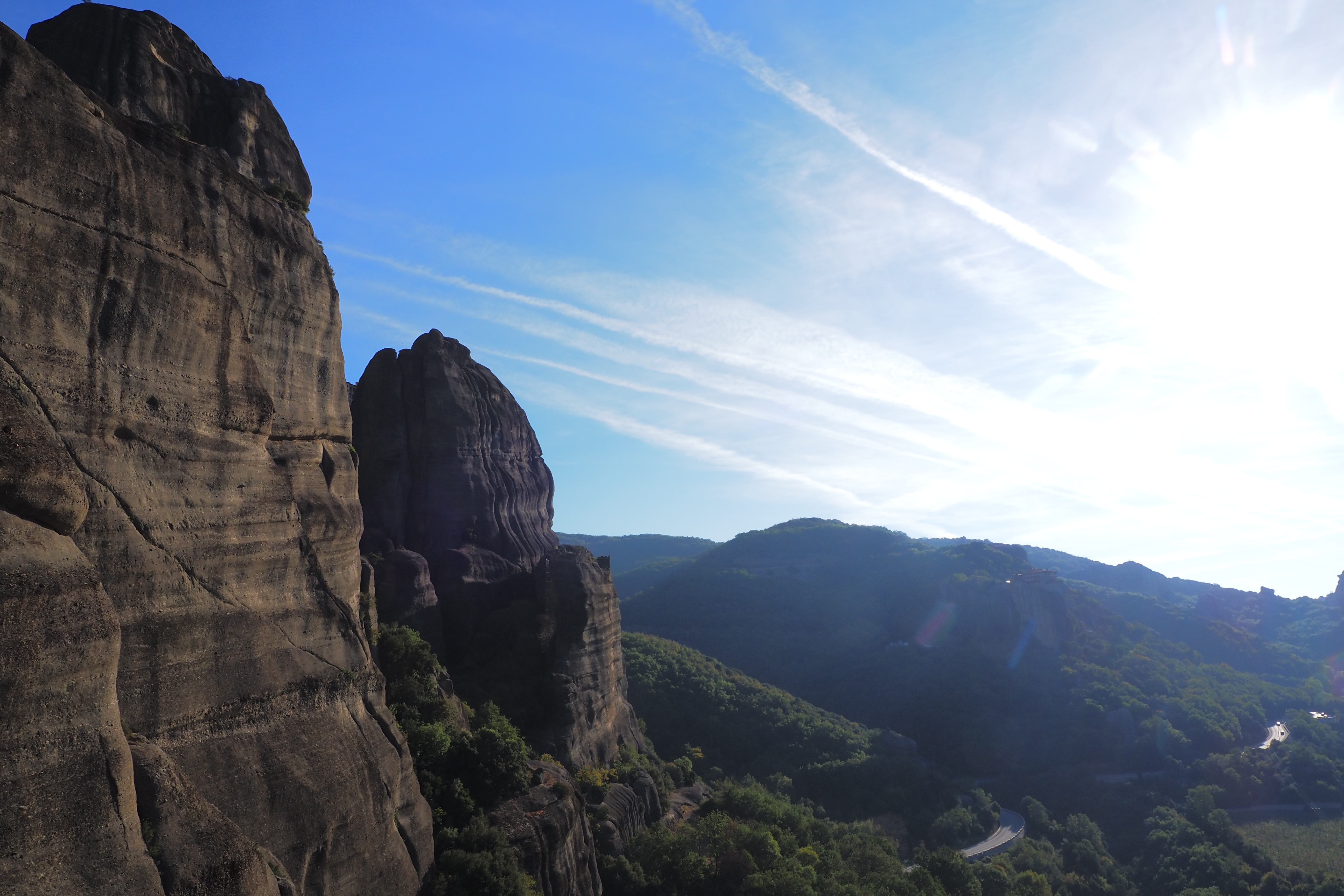 デッキからの眺望。似たような奇岩群は世界にいくつかあるだろうけど、その上に修道院が建っているユニークな景観は本当に唯一無二だと感じた。