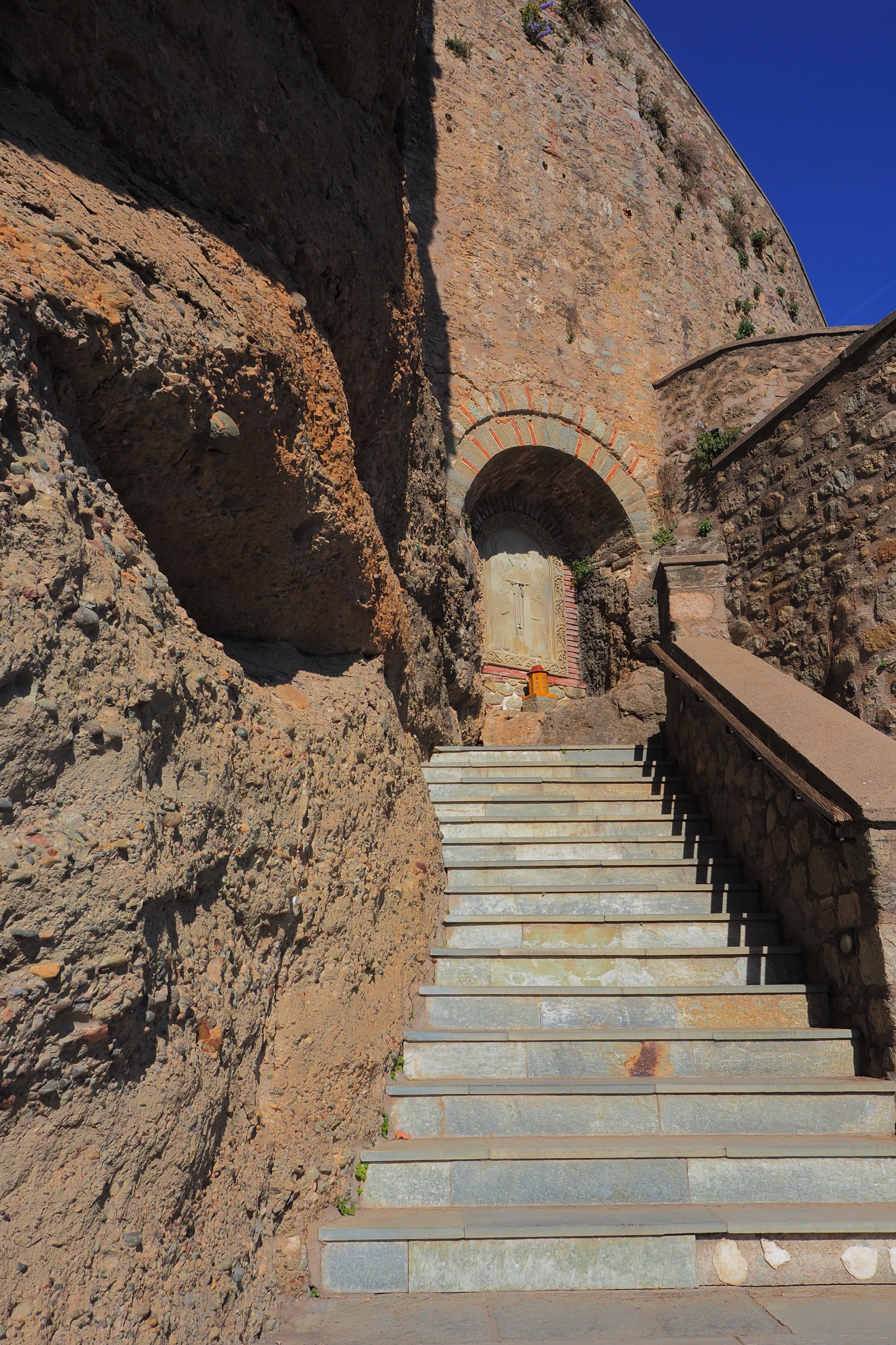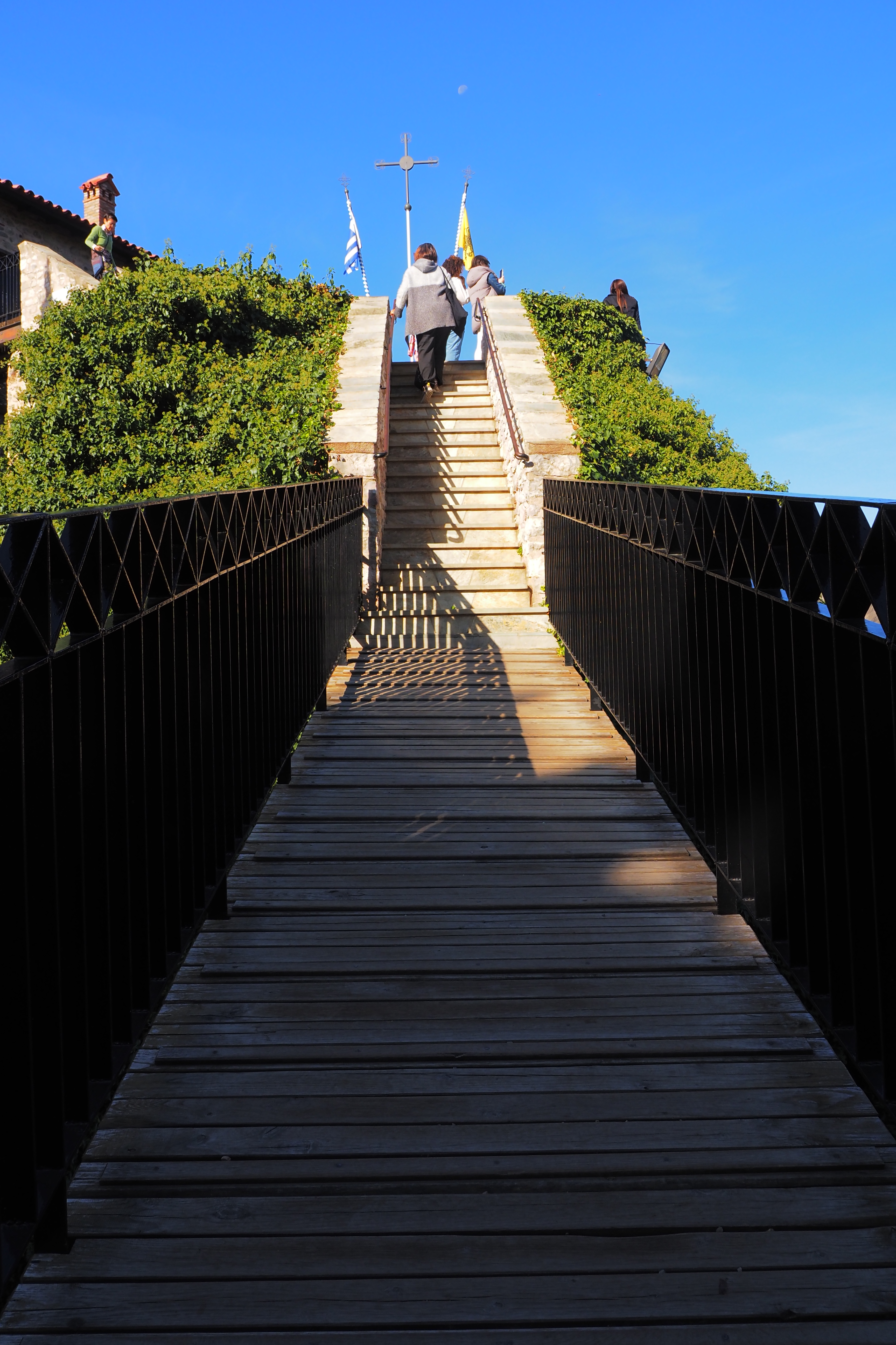 修道院の建つ断崖へと上っていく。景色は最高にいい。