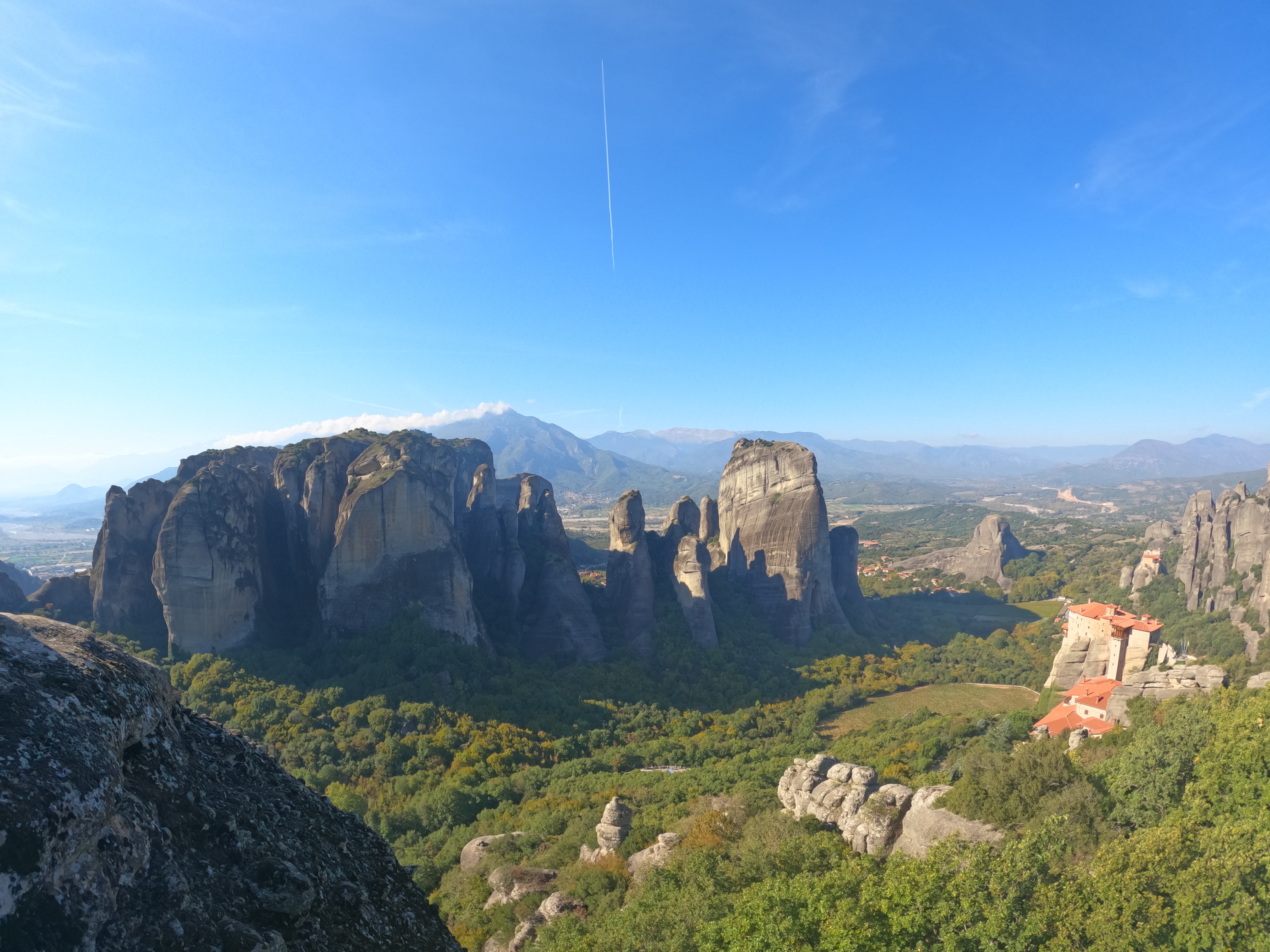 メテオラを成す奇岩群を一望できるポイントに出た。これは本当に壮大だ。
