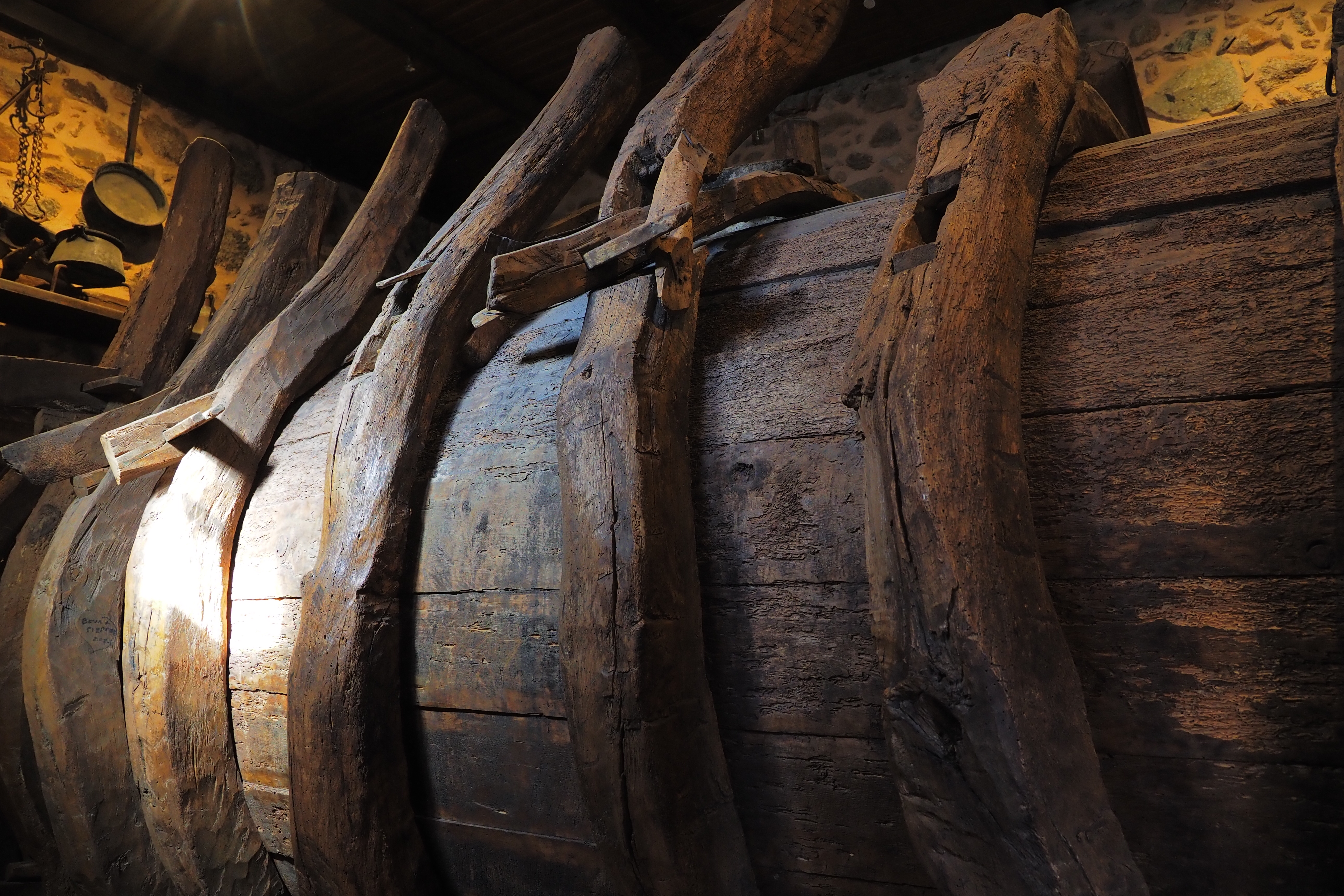修道院施設内に展示されていた 16世紀当時の樽。ワイン用・・・なのか?