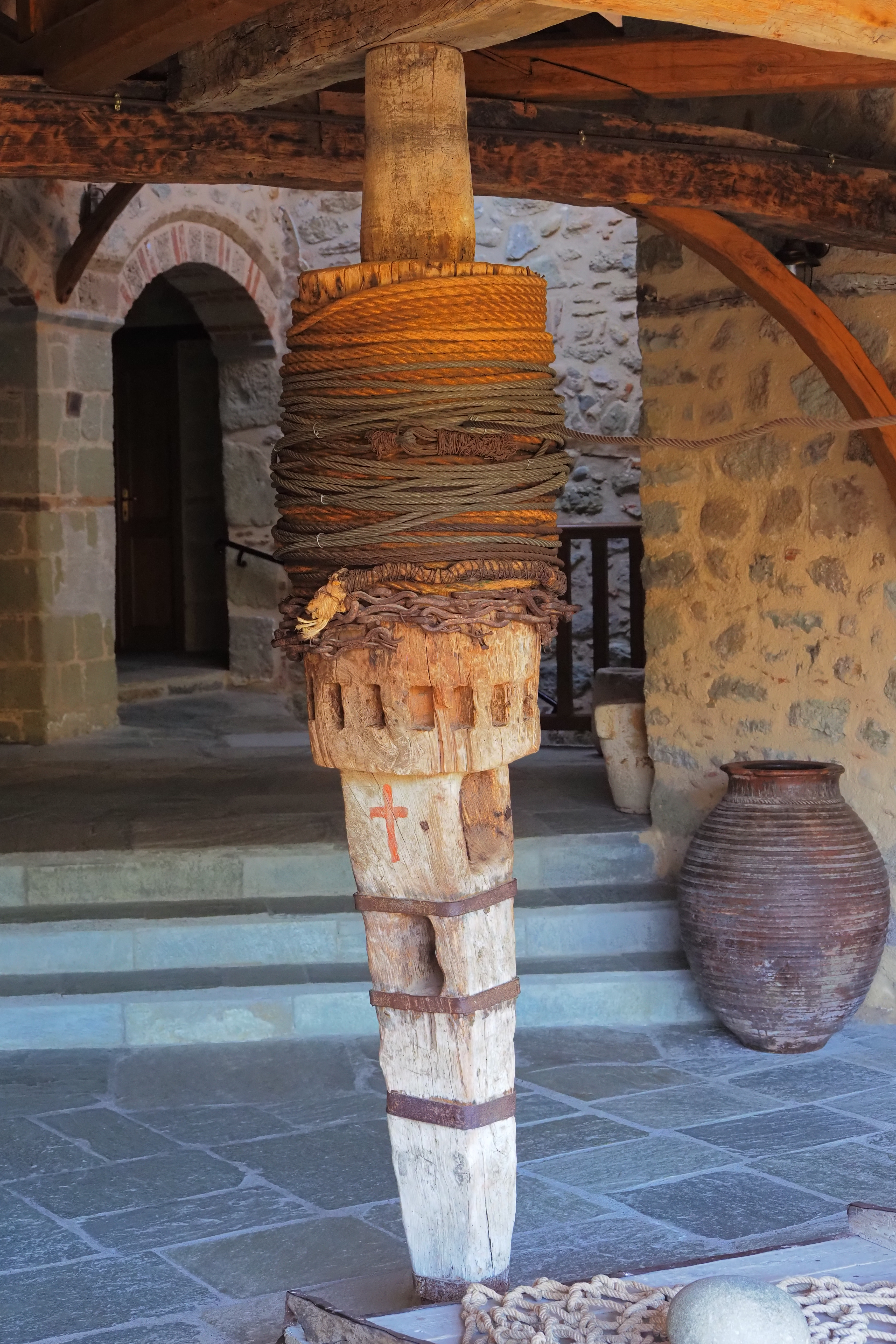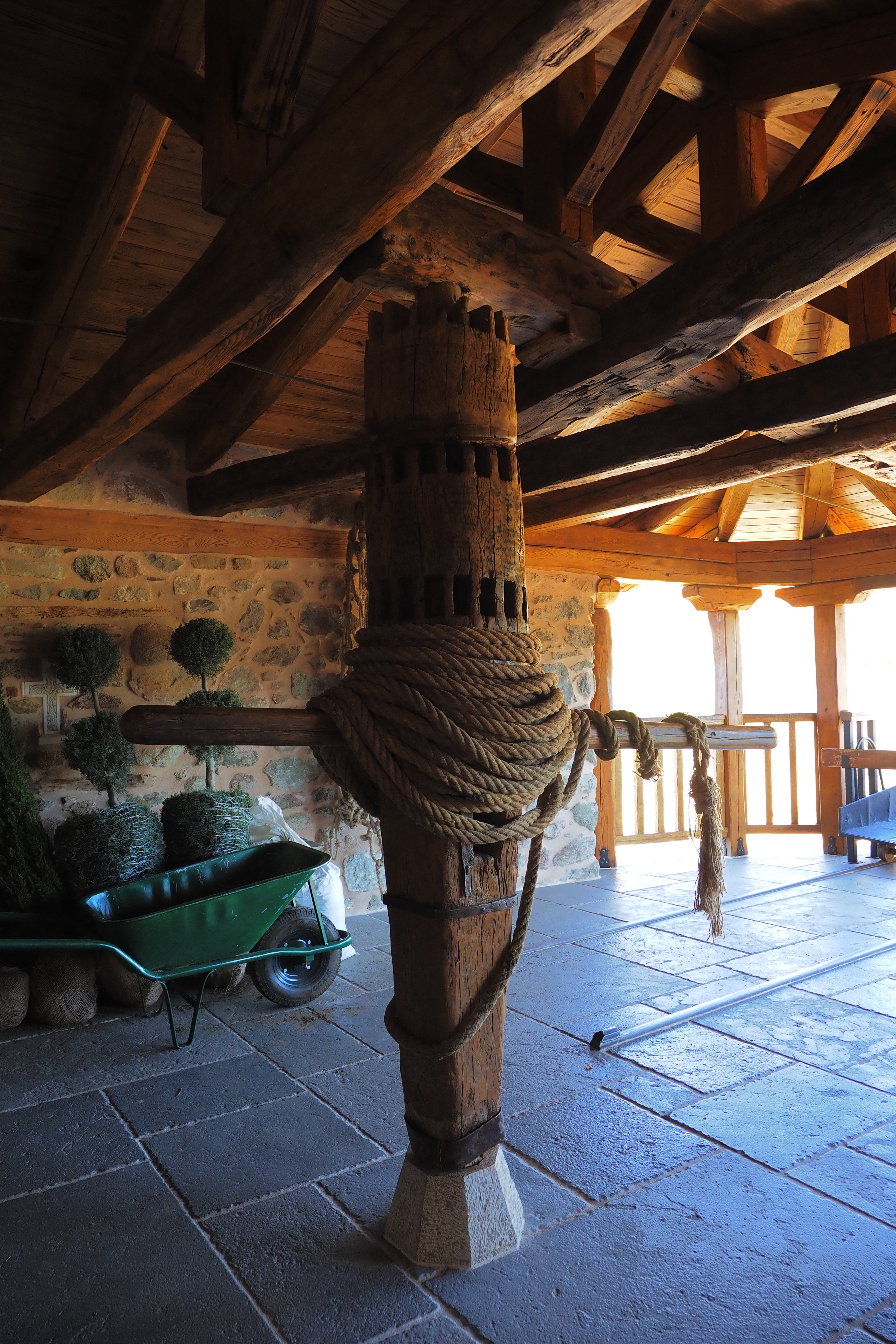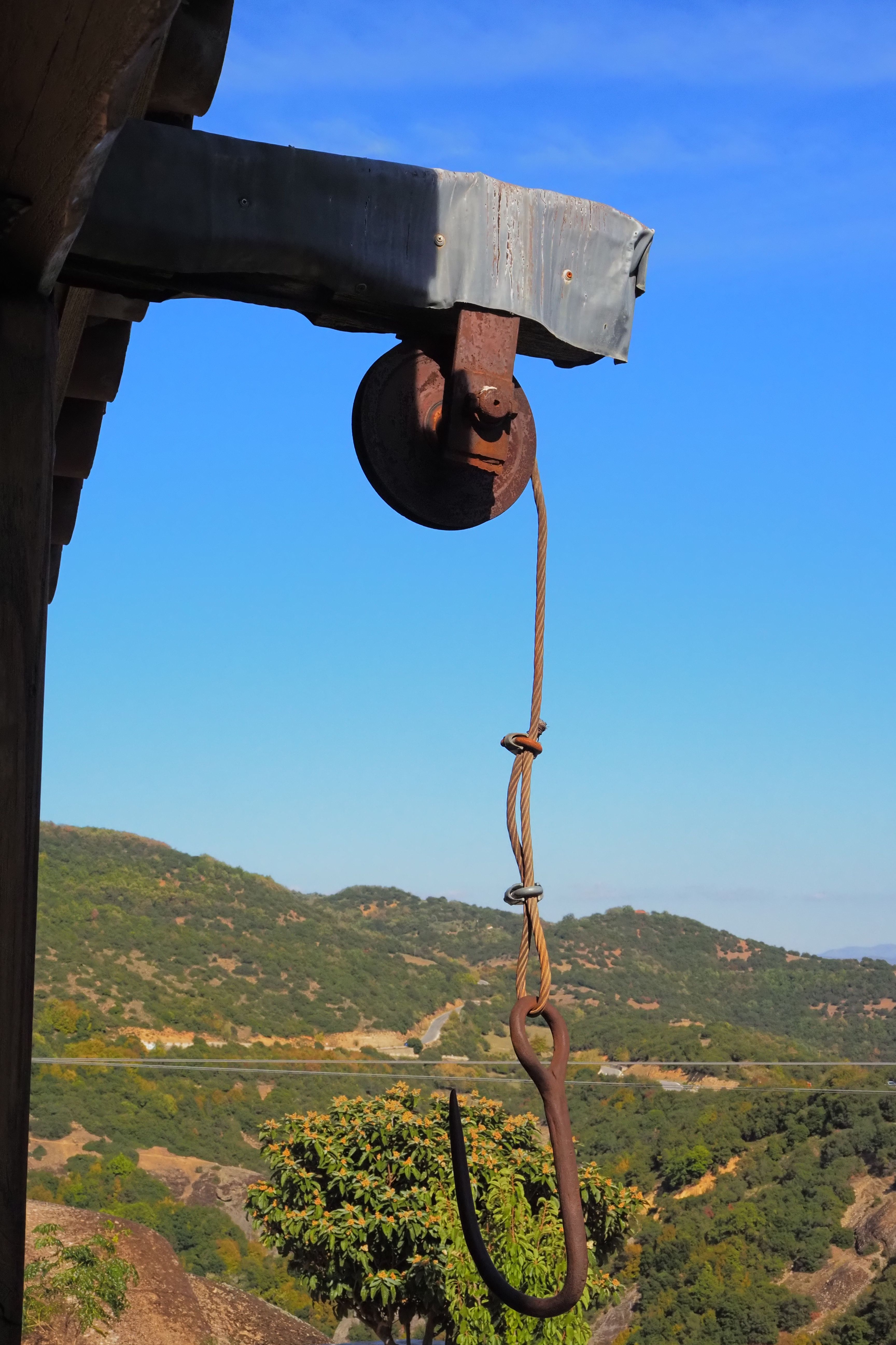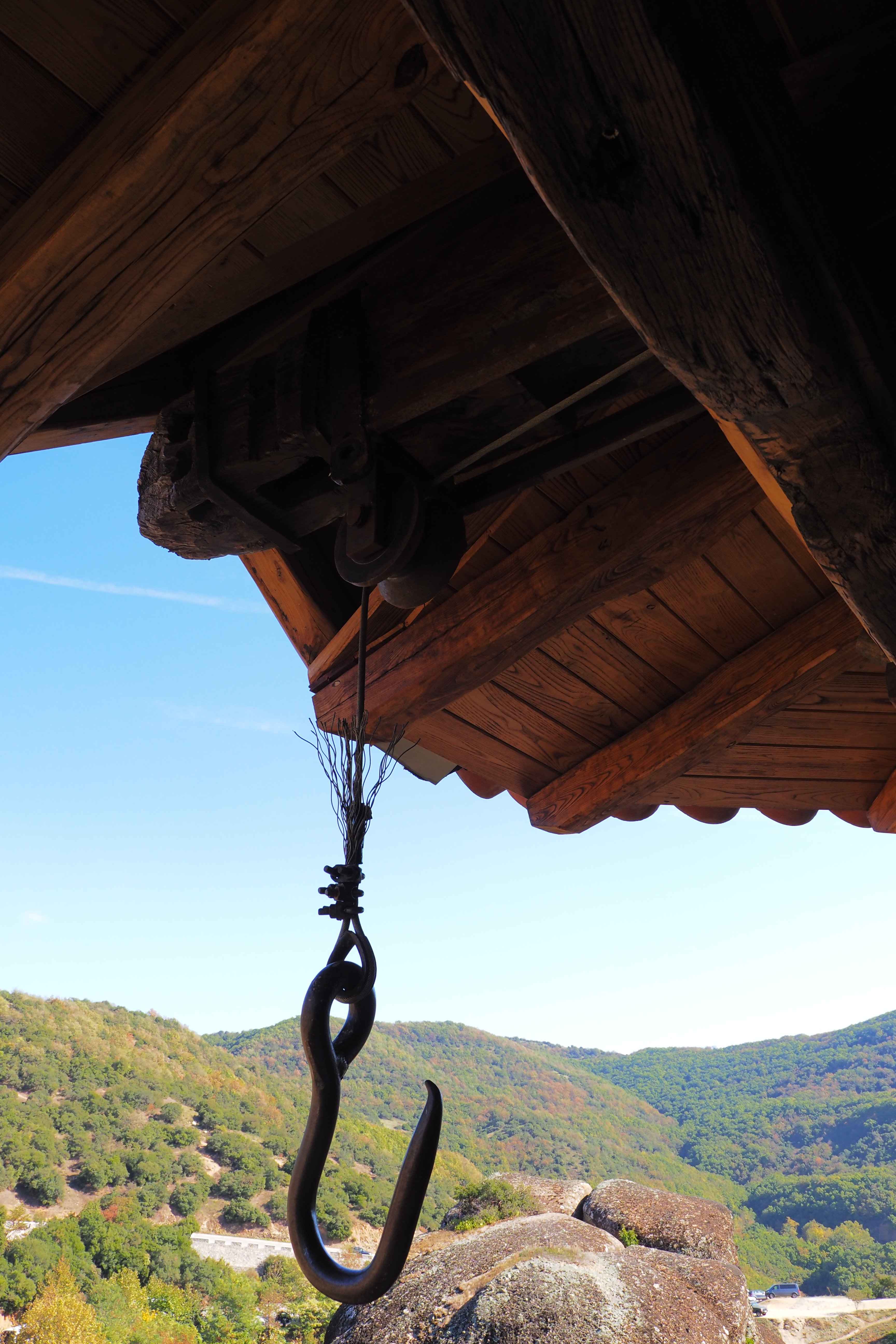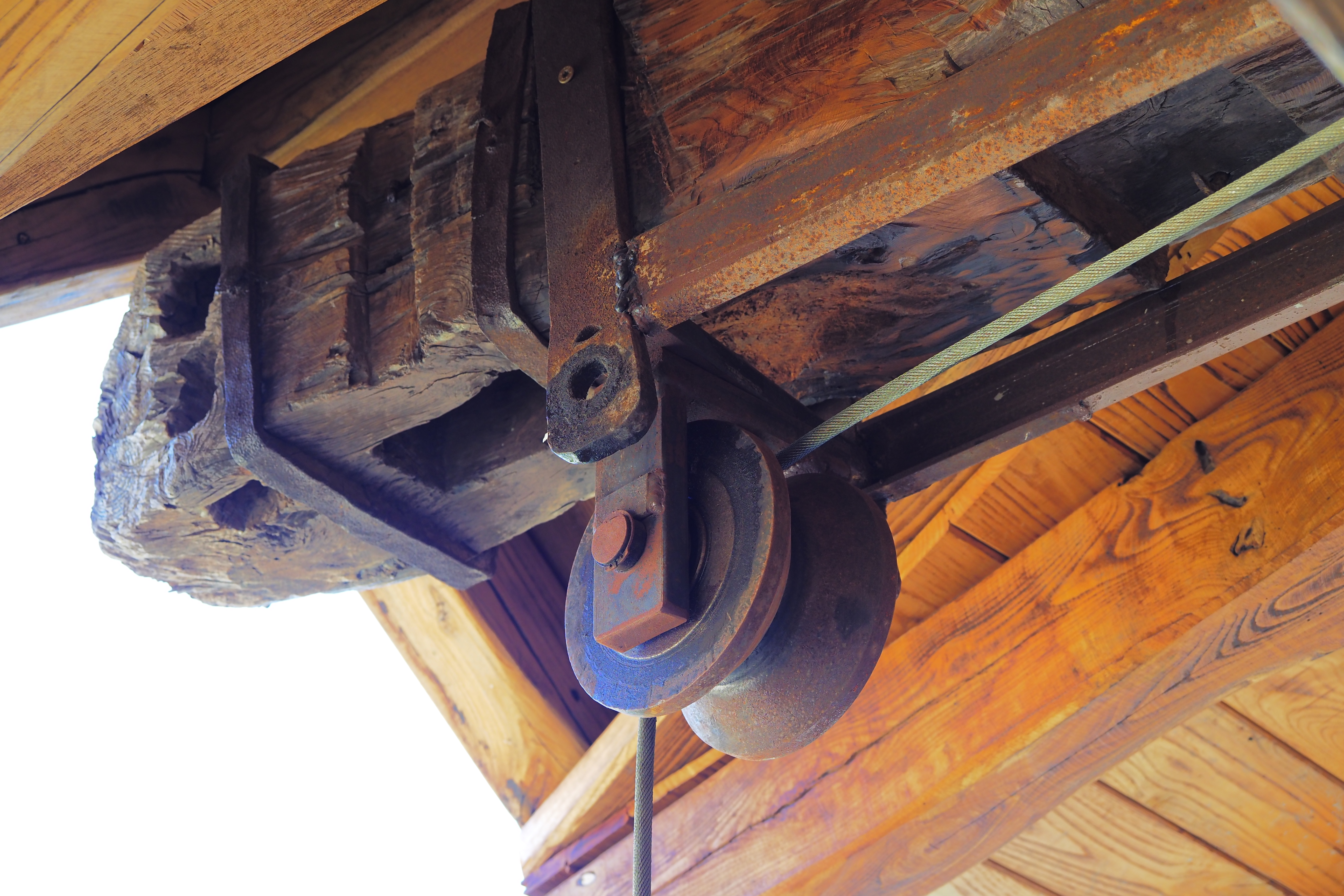 荷物を搬入するための巻き上げ式ロープと滑車がある。現役なのかな。