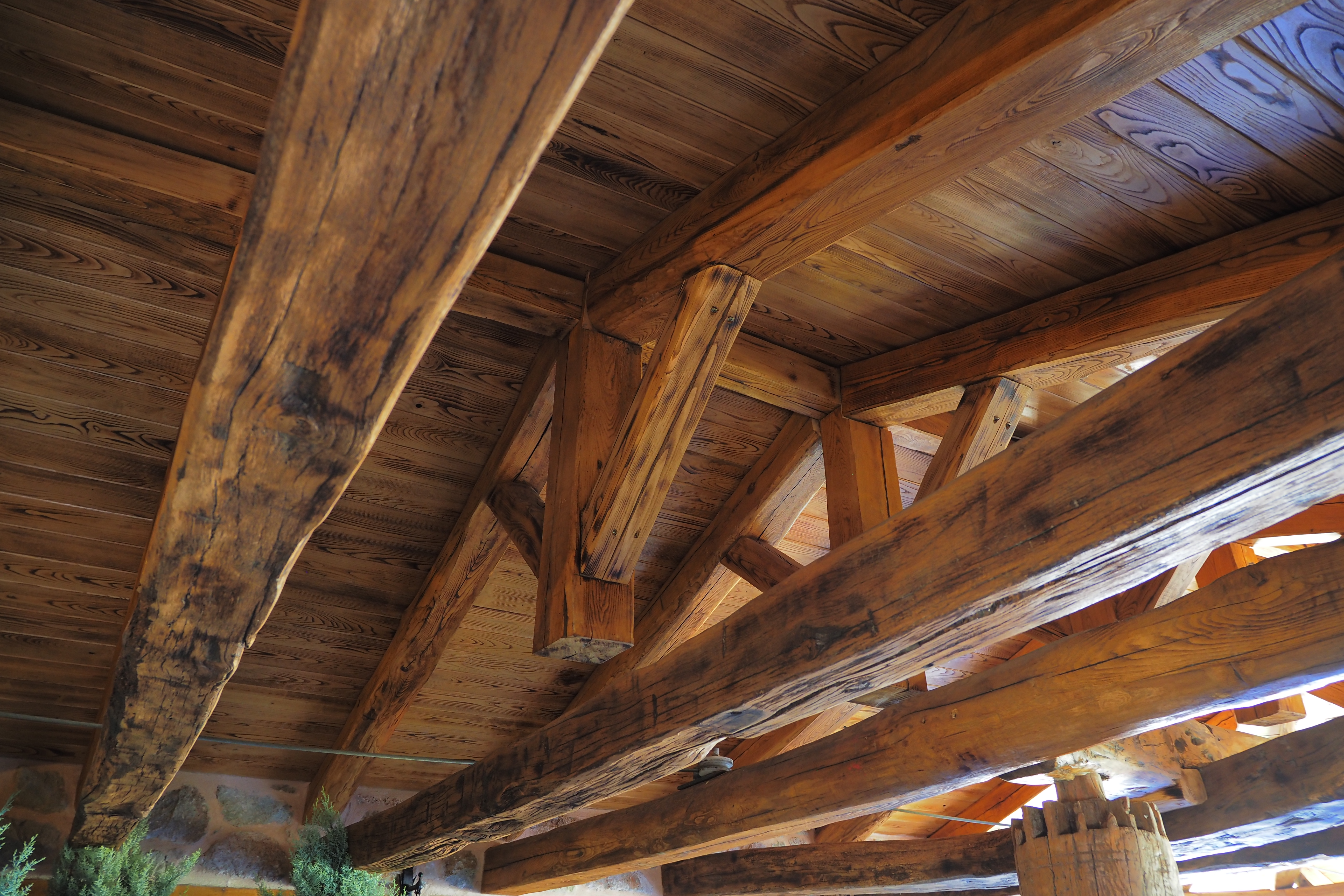 表からは石壁が見えてたけど、裏手にまわると木造の枠組みが見える。