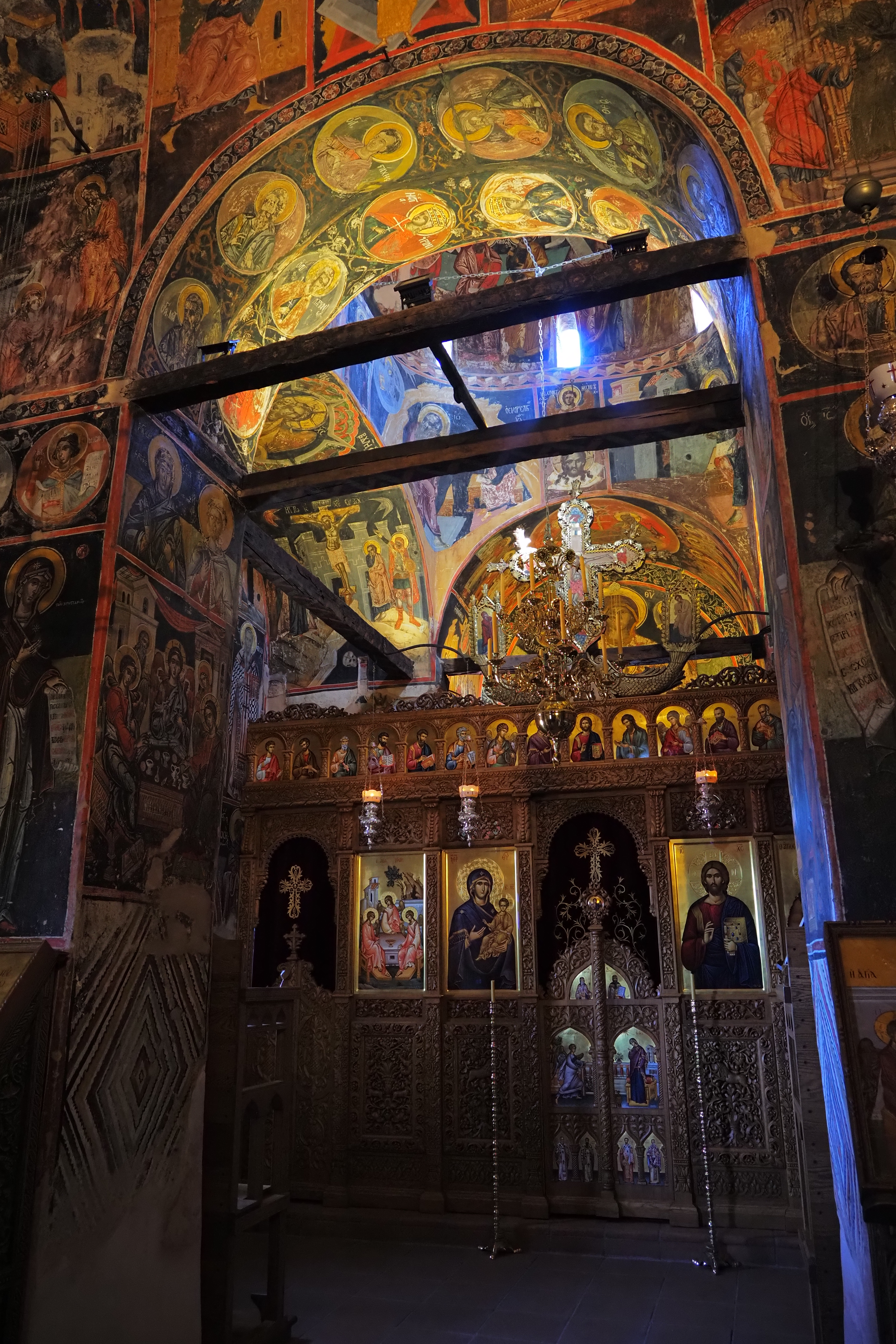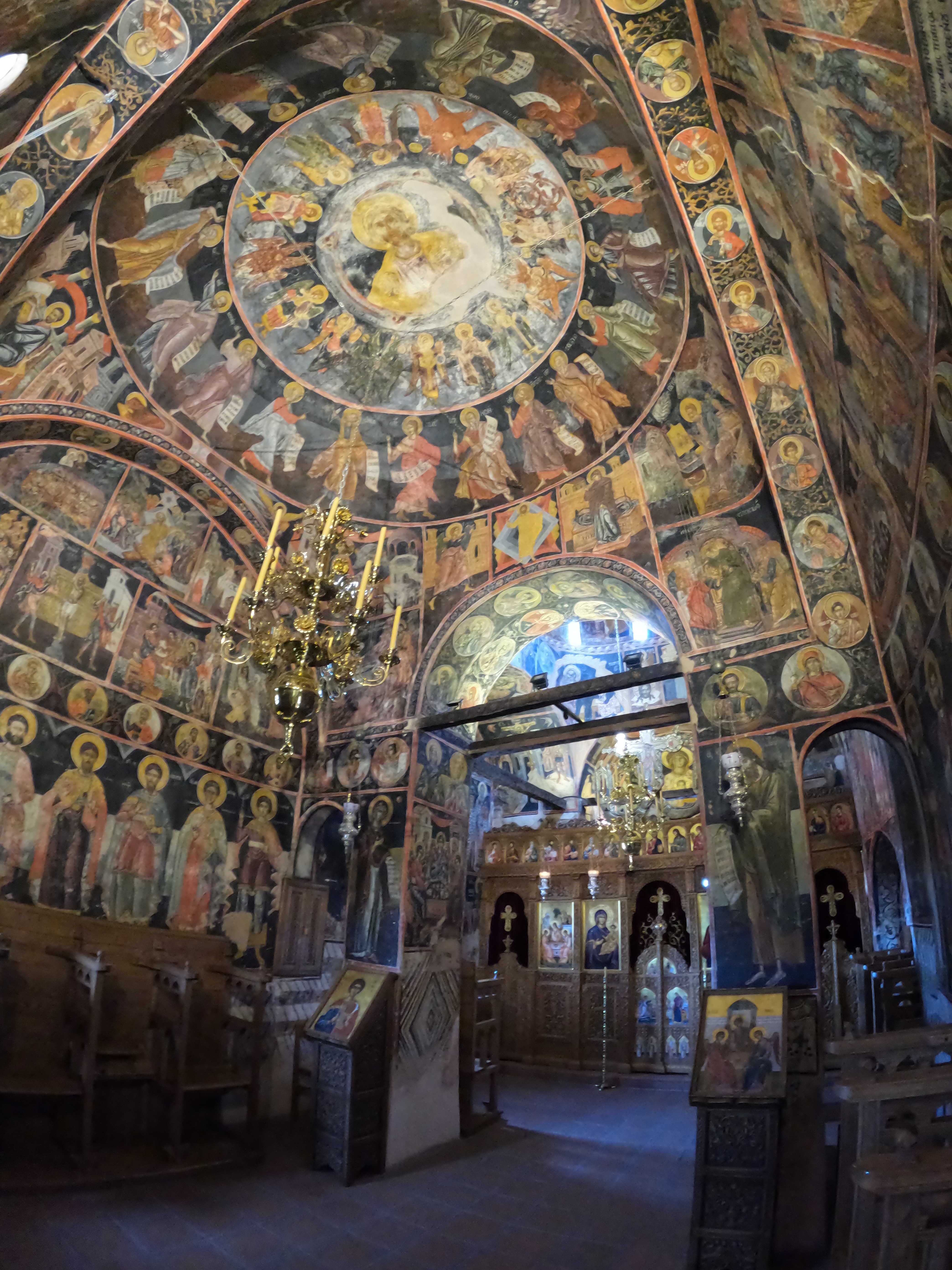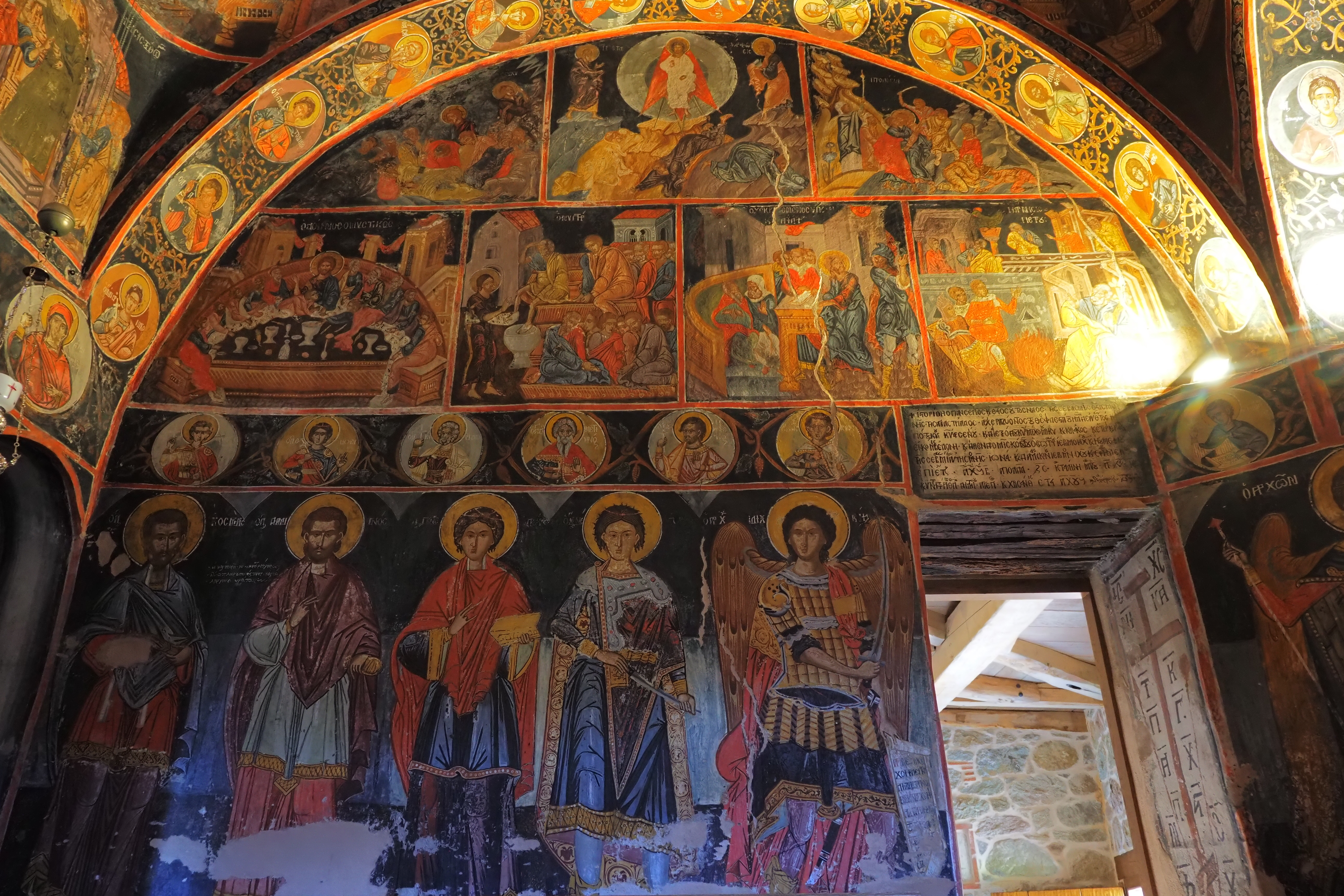修道生活がはじまったのは14世紀頃で、16世紀に教会堂が整備され、フレスコ画が描かれた。